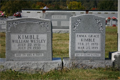Emma Grace Landes Kimble (b. Feb 27, 1870; d. March 25, 1899) daughter of Jesse and Christina Kimble Landes; wife of William Wesley Kimble. This is a conundrum because a second stone exists in the Cherry Hill Cemetery in Upper Tract, WV.
