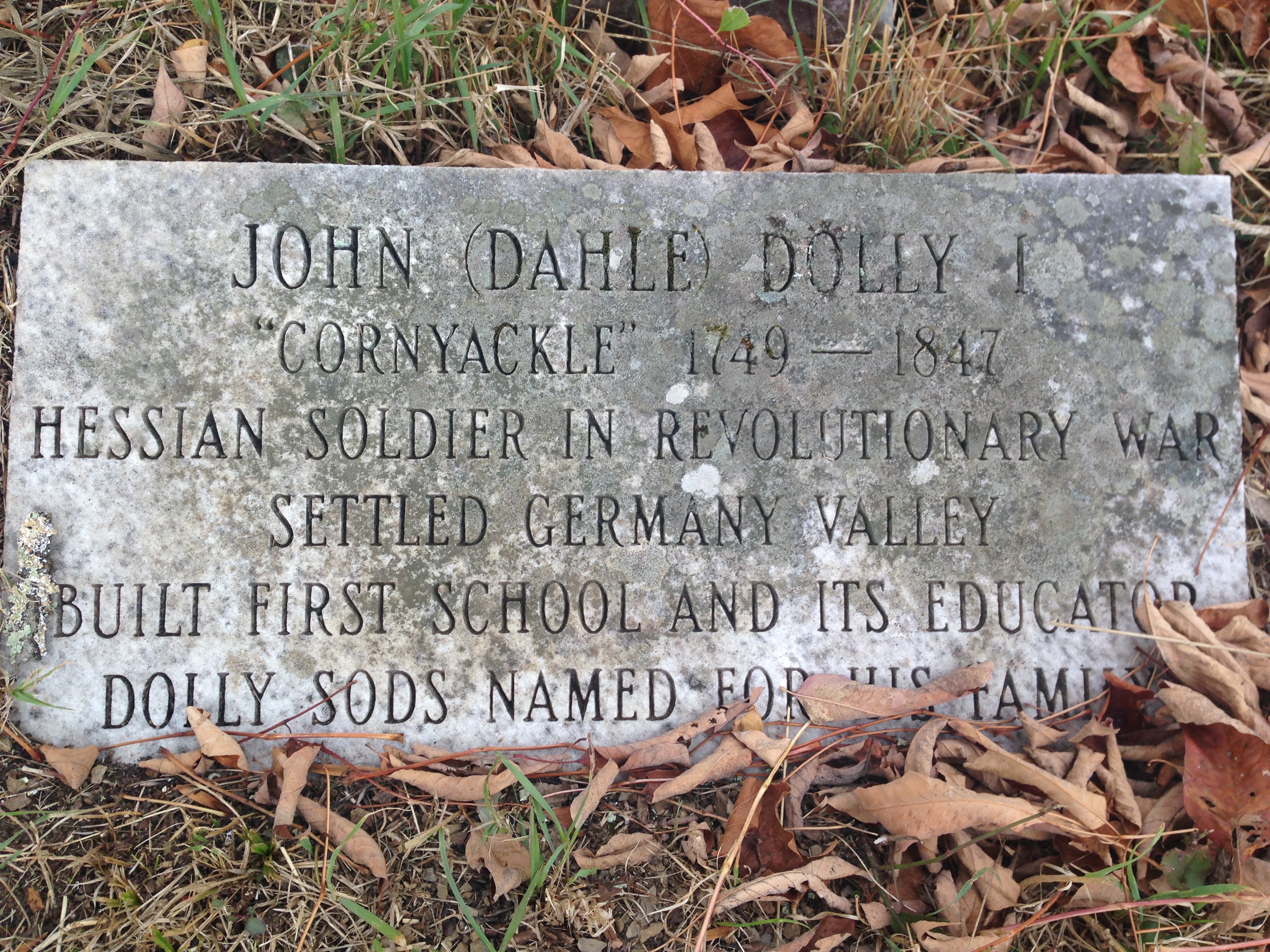 John Dolly I (Dahle) (1749-1847), the original 'pioneer' Dolly, first settled Germany Valley, the Dolly Sods is named for his family.