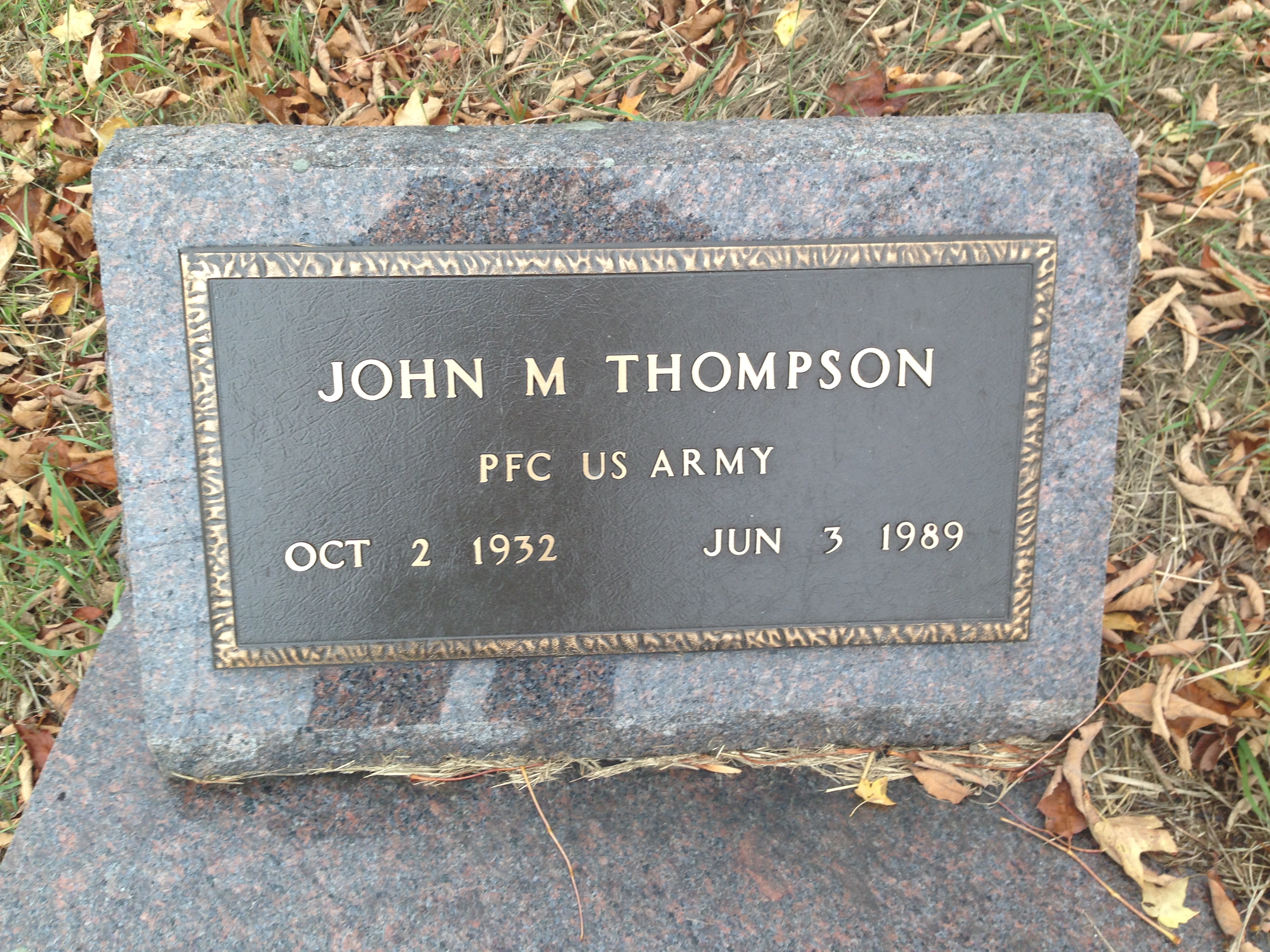 John M. Thompson (b. Oct 2, 1932; d. Jun 4, 1965), possibly son of Silas and Carrie S. Thompson.