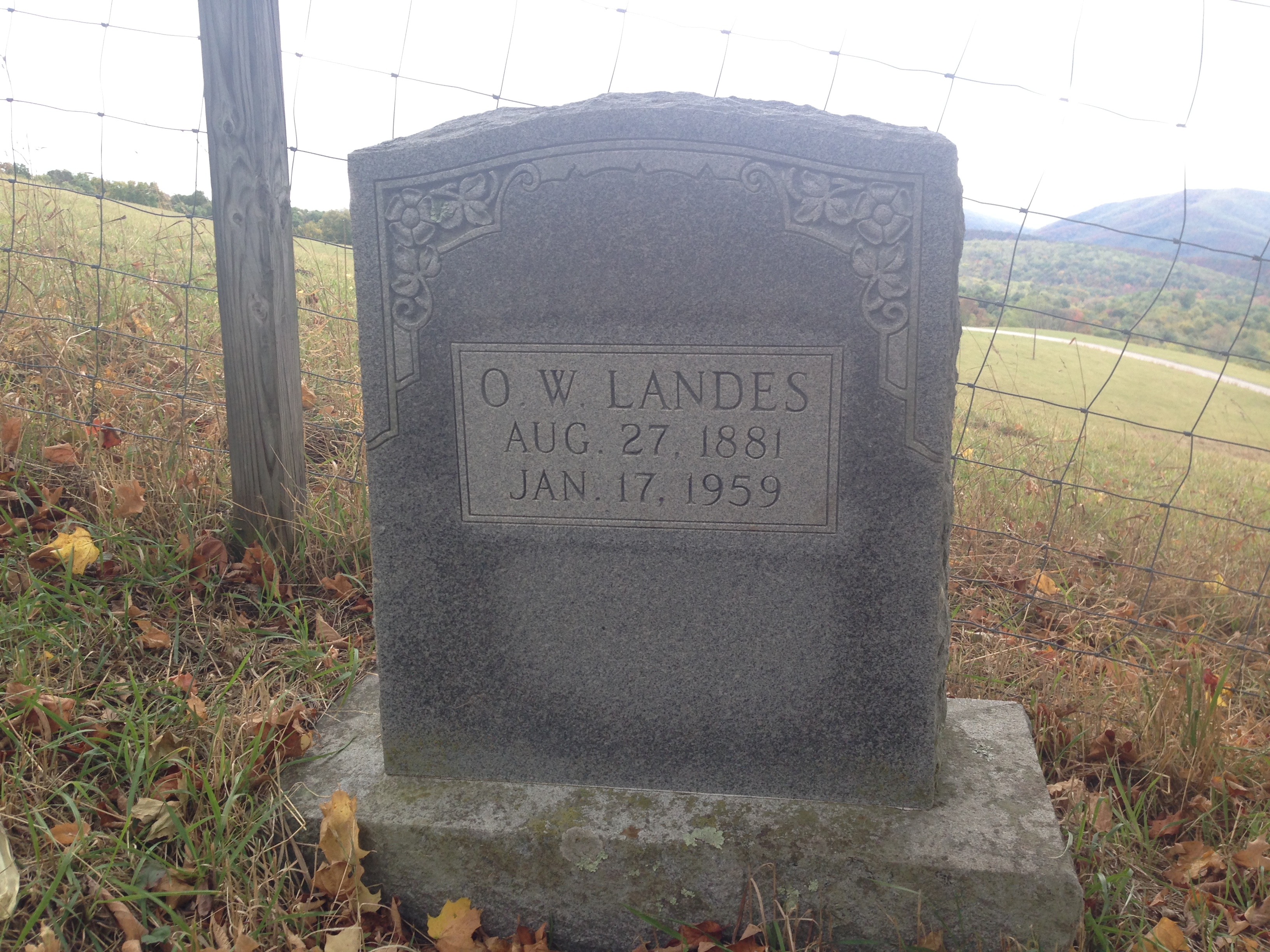 Oscar Wilson Landes (b. Aug 27, 1881; d. Jan 17, 1959), son of Daniel A and America R. Dolly Landes, husband of Verda Warner (Verdie) Landes.