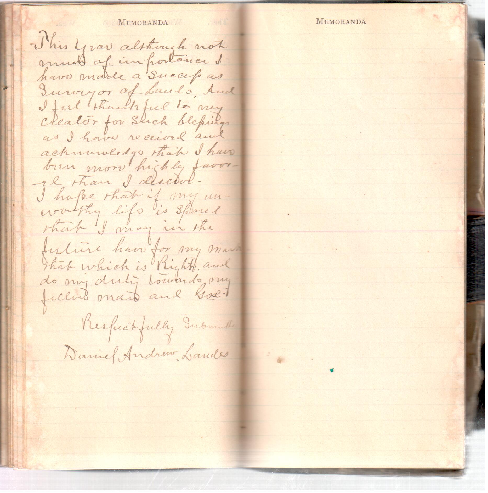 In his 1891 diary, Daniel writes that on December 7, 1891: " Went to Franklin and Qualified as Notary Public."