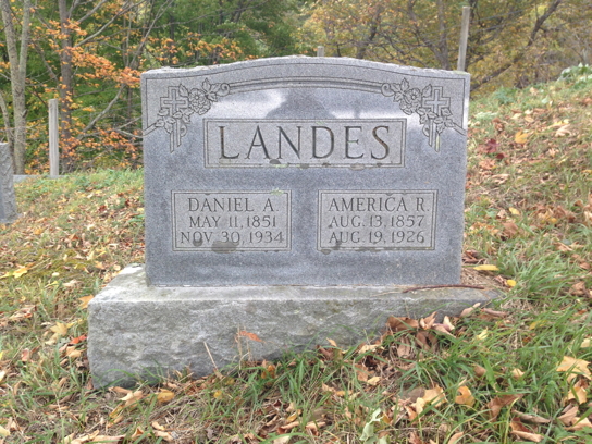 Daniel A. and America R. Landes are buried in the Landes-Dolly Cemetery (GPS: N38.72355 W79.40255) on a hillside of the original home place overlooking Germany Valley, in the Bland Hills near Riverton, WV. *