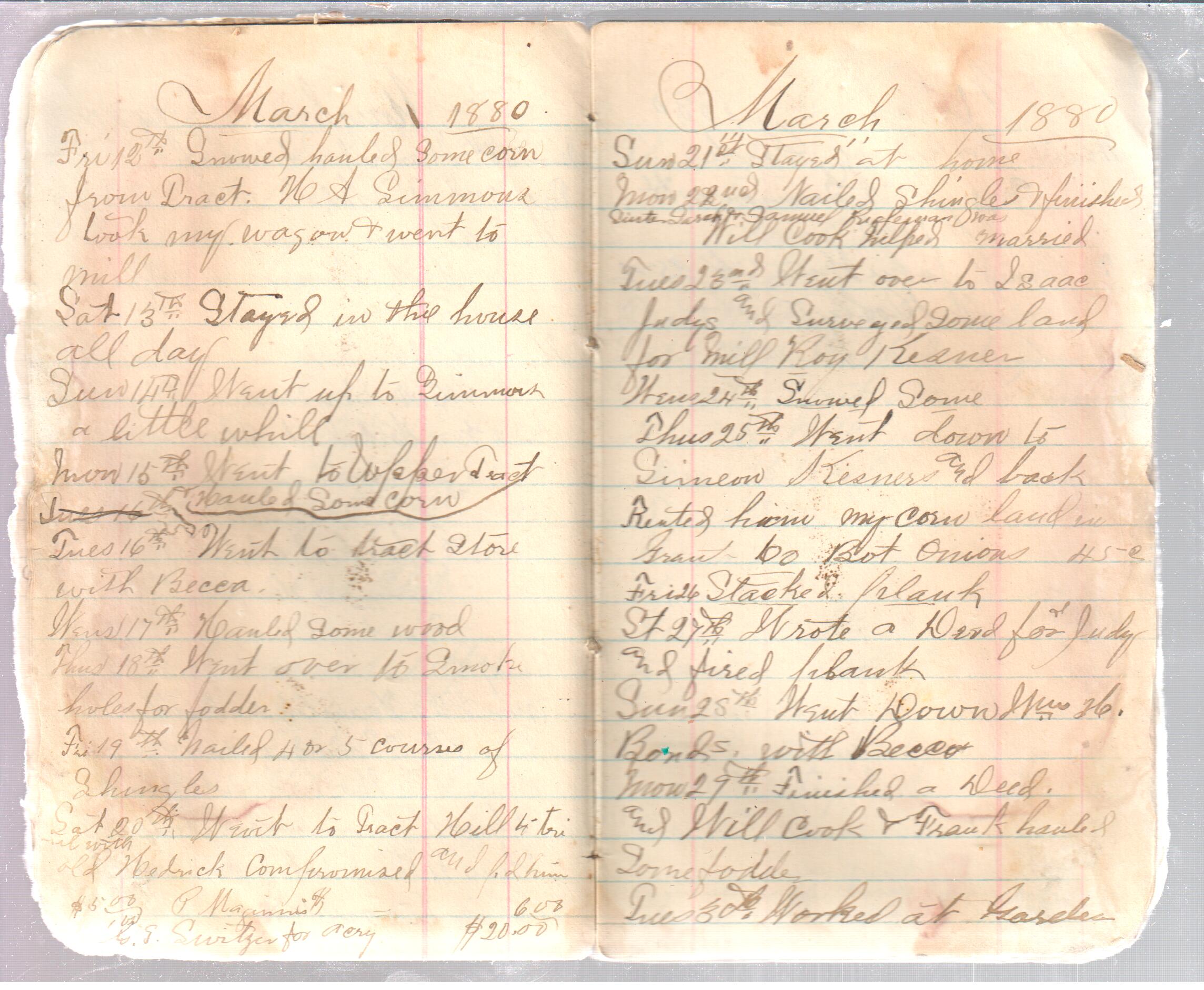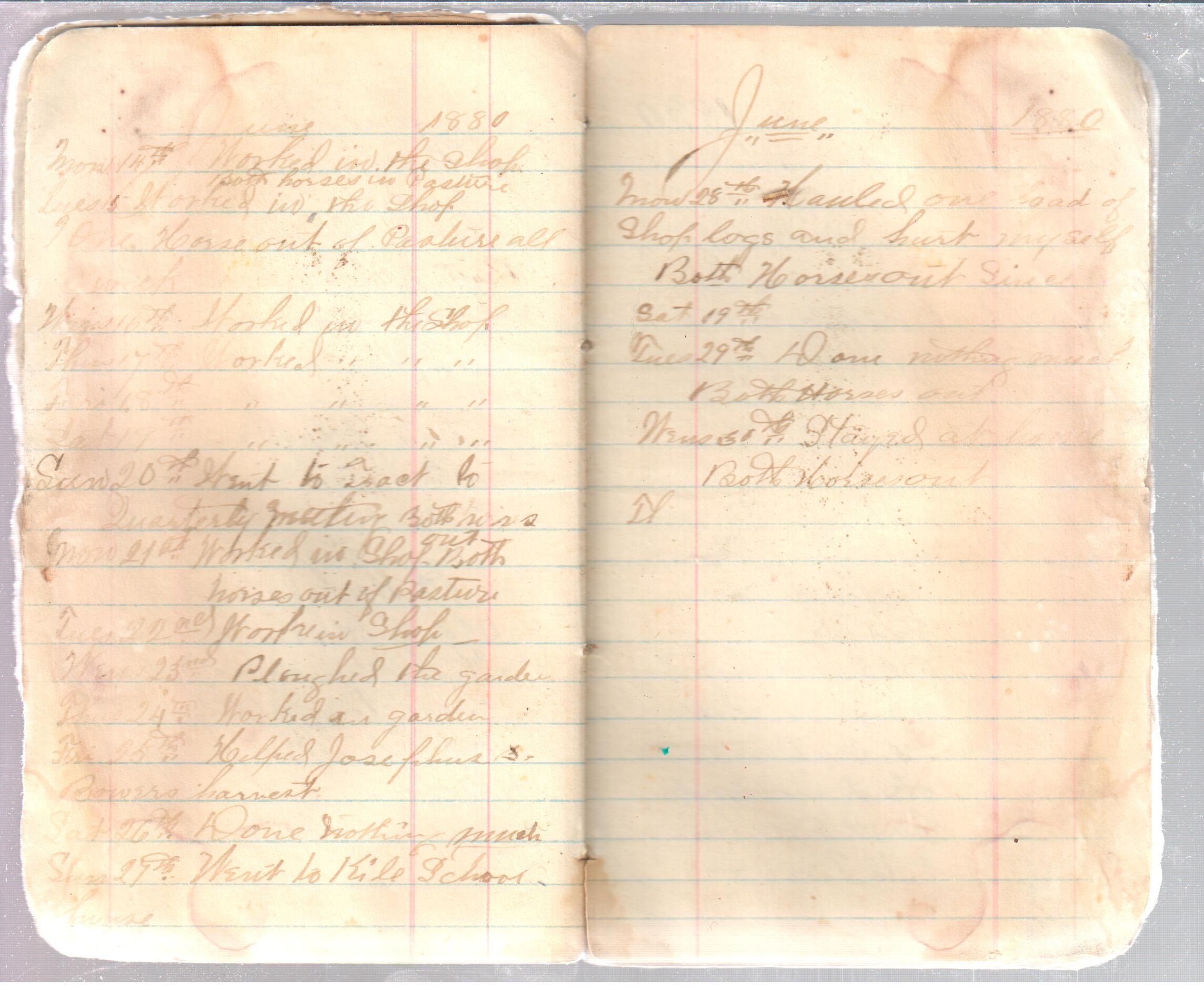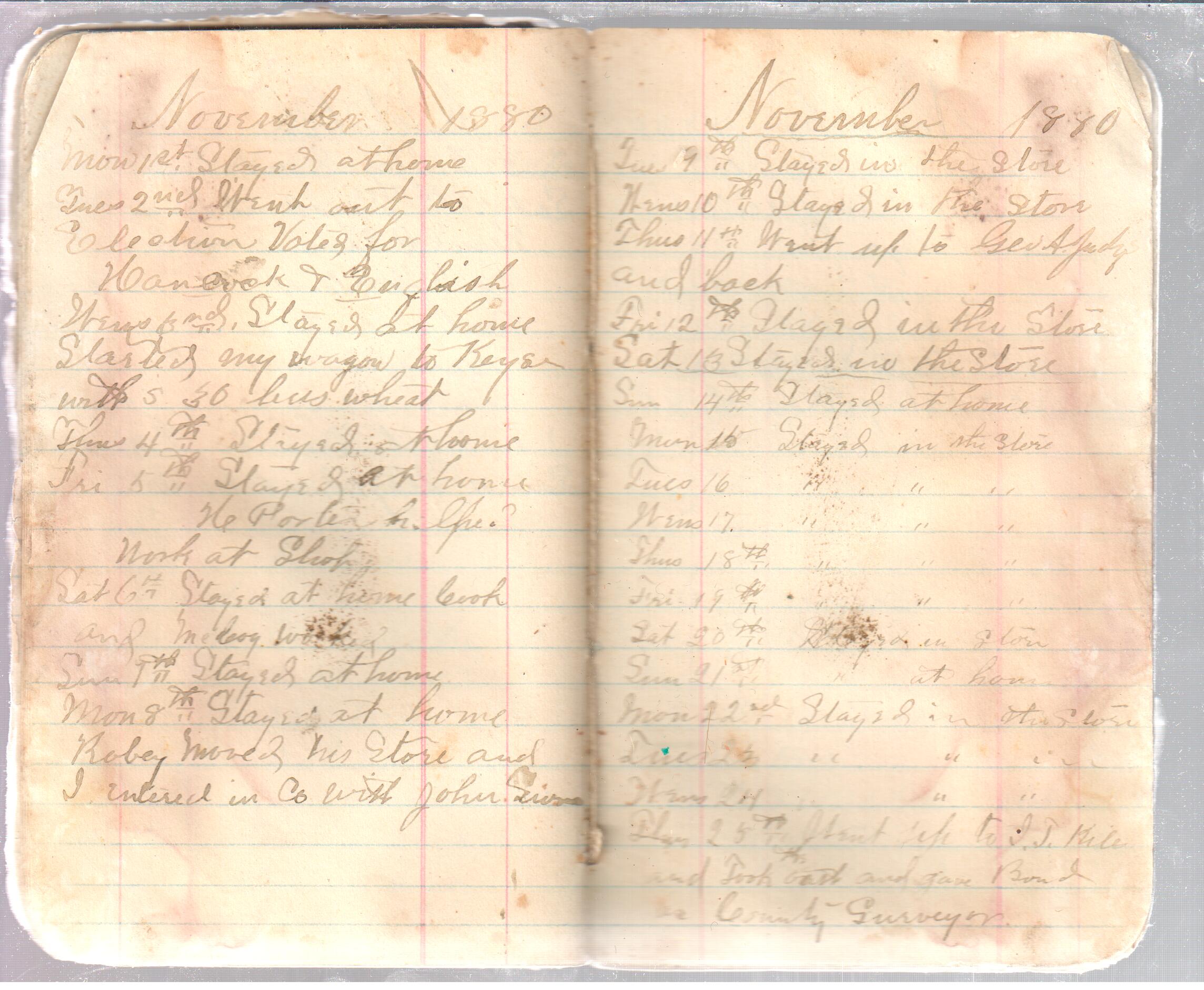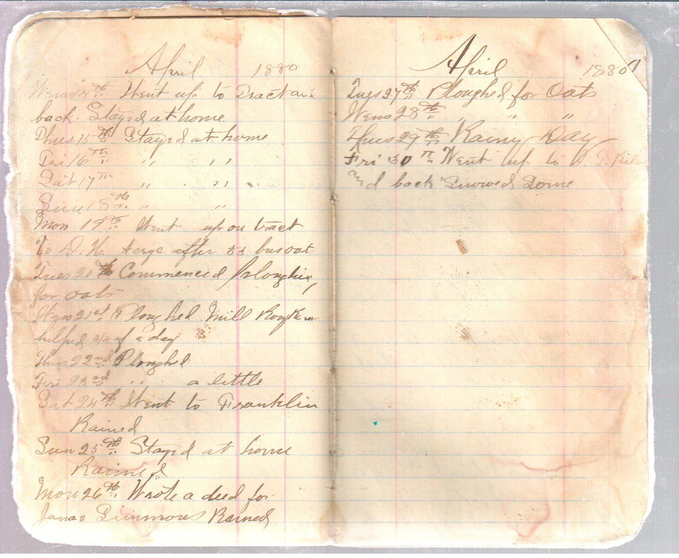D. A. Landes Diaries: 1880 To see a transcription, click here: Click here to see slideshow scans: slideshow Or see individual pages below: Outside Covers Inside Covers Pages 0-1 Pages 2-3 Pages 4-5 Pages 6-7 Pages 8-9 Pages 10-11 Pages 12-13 Pages 14-15 Pages 16-17 Pages 18-19 Pages 20-21 Pages 22-23 Pages 24-25 Pages 26-27 Pages 28-29 Pages 30-31 Pages 32-33 Pages 34-35 Pages 36-37 Pages 38-39 Pages 40-41 Pages 42-43 Pages 44-45 Pages 46-47 Pages 48-49 Pages 50-51 Pages 52-53 Pages 54-55 Pages 56-57 Pages 58-59 Pages 60-61 Pages 62-63 Pages 64-65 Pages 66-67 Pages 68-69 Pages 70-71 Pages 72-73 Pages 74-75 Pages 76-77 Pages 78-79 Pages 80-81