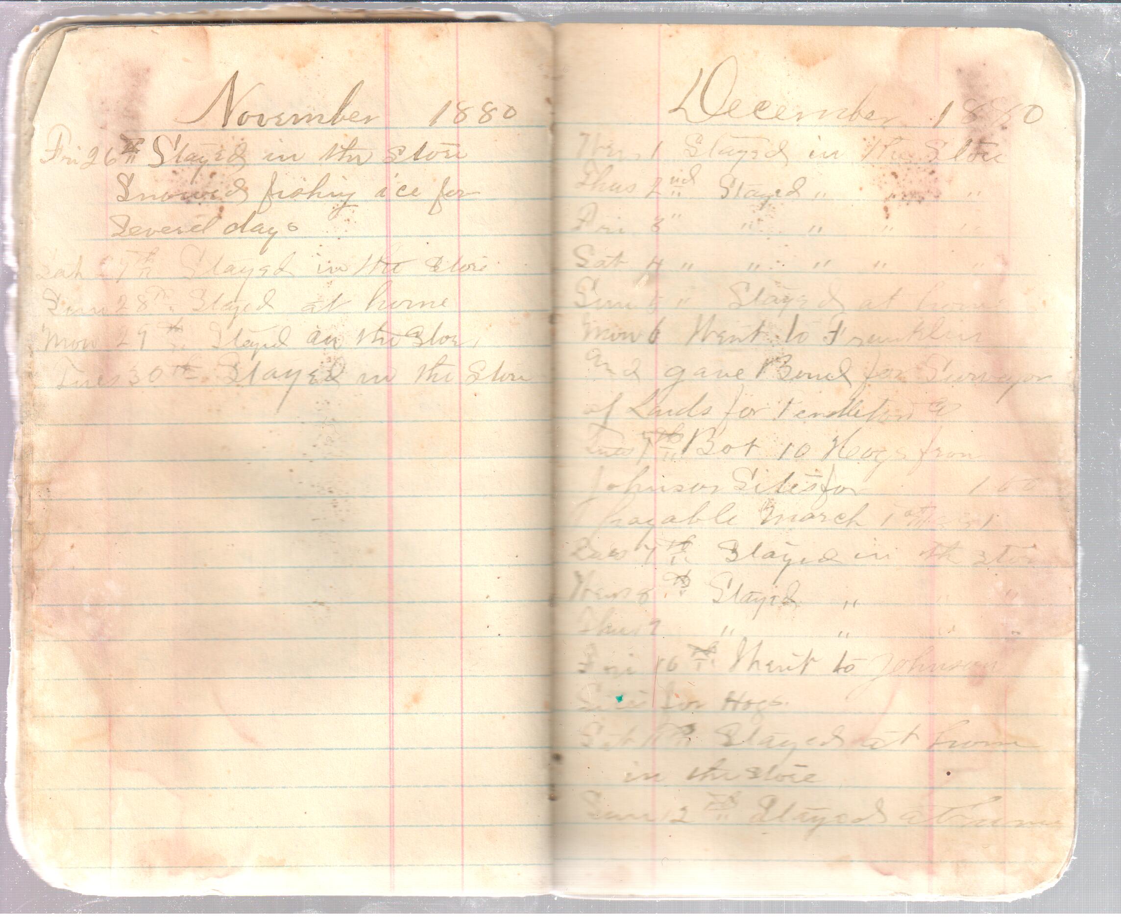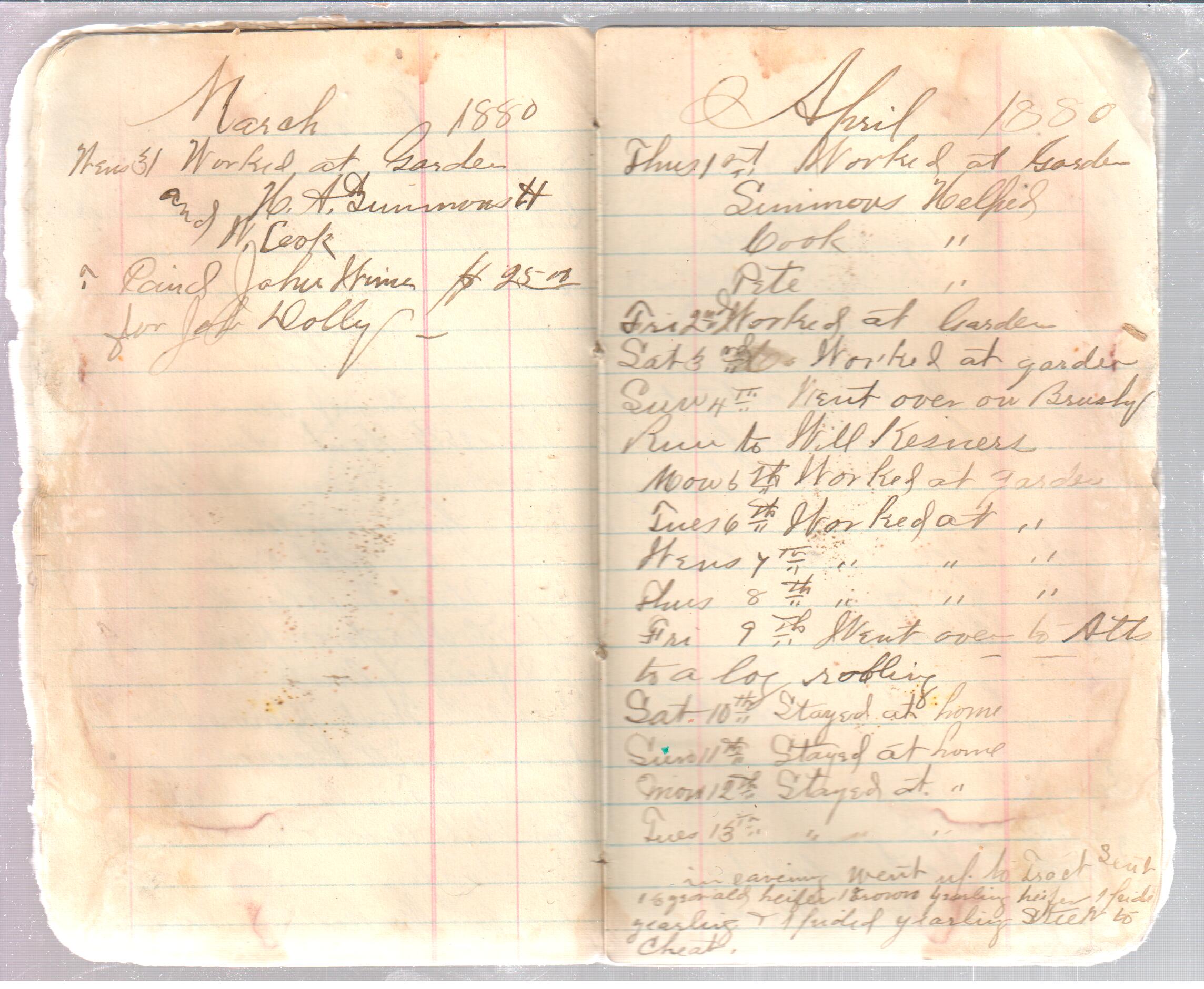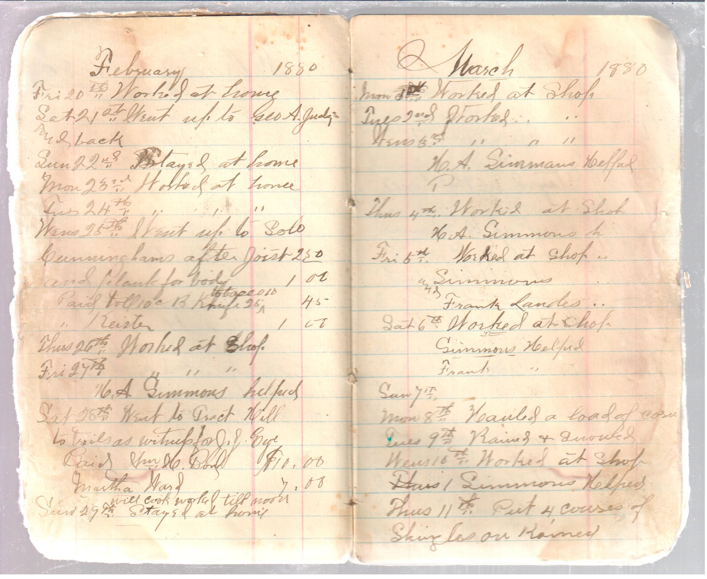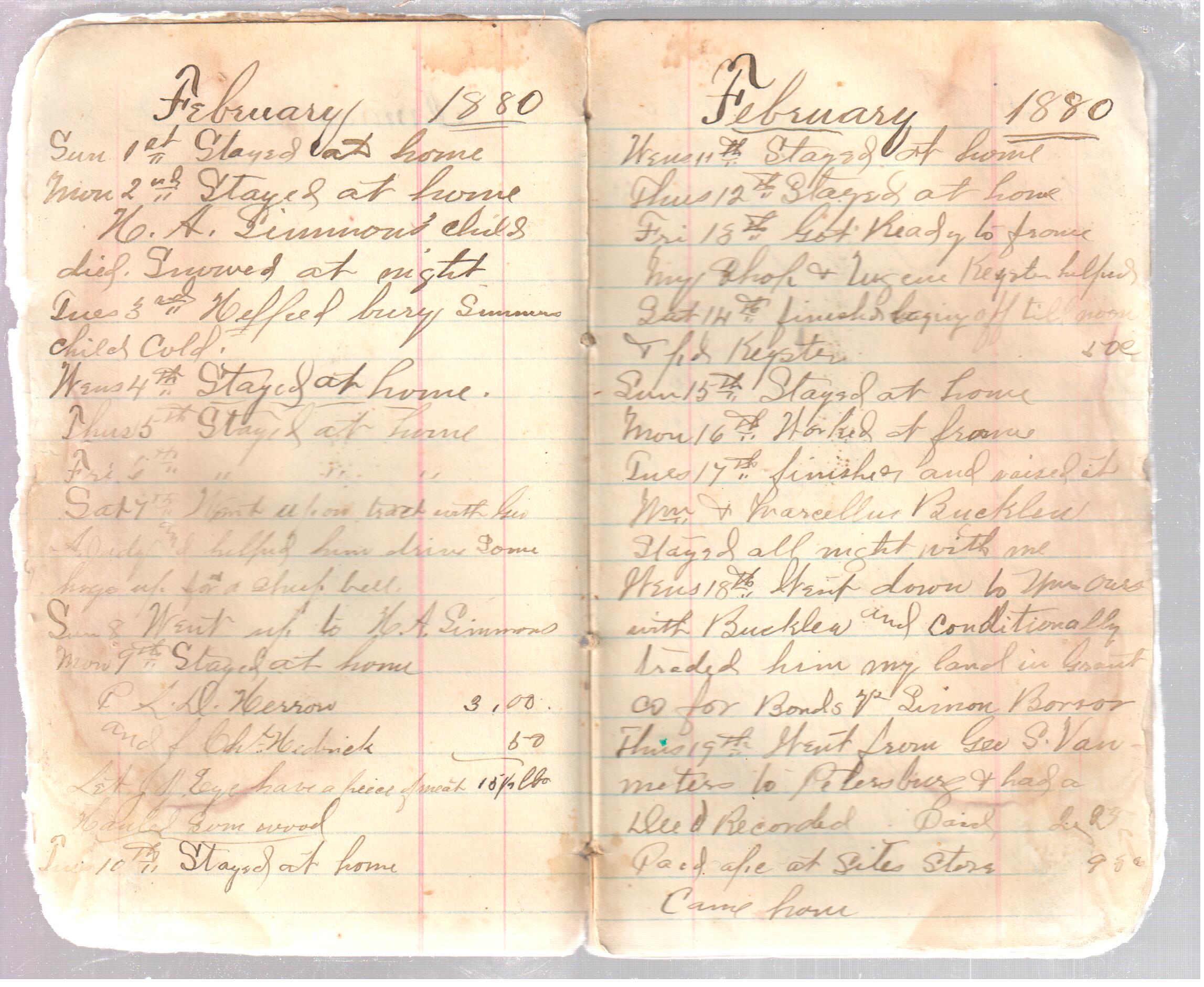 D. A. Landes Diaries: 1880 To see a transcription, click here: Click here to see slideshow scans: slideshow Or see individual pages below: Outside Covers Inside Covers Pages 0-1 Pages 2-3 Pages 4-5 Pages 6-7 Pages 8-9 Pages 10-11 Pages 12-13 Pages 14-15 Pages 16-17 Pages 18-19 Pages 20-21 Pages 22-23 Pages 24-25 Pages 26-27 Pages 28-29 Pages 30-31 Pages 32-33 Pages 34-35 Pages 36-37 Pages 38-39 Pages 40-41 Pages 42-43 Pages 44-45 Pages 46-47 Pages 48-49 Pages 50-51 Pages 52-53 Pages 54-55 Pages 56-57 Pages 58-59 Pages 60-61 Pages 62-63 Pages 64-65 Pages 66-67 Pages 68-69 Pages 70-71 Pages 72-73 Pages 74-75 Pages 76-77 Pages 78-79 Pages 80-81