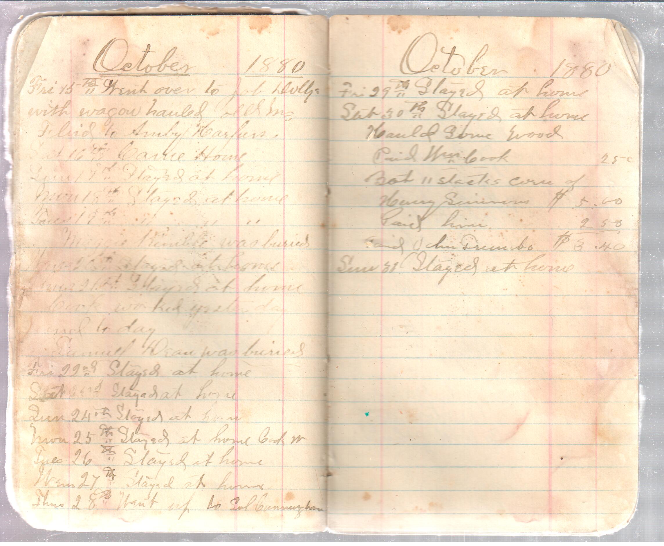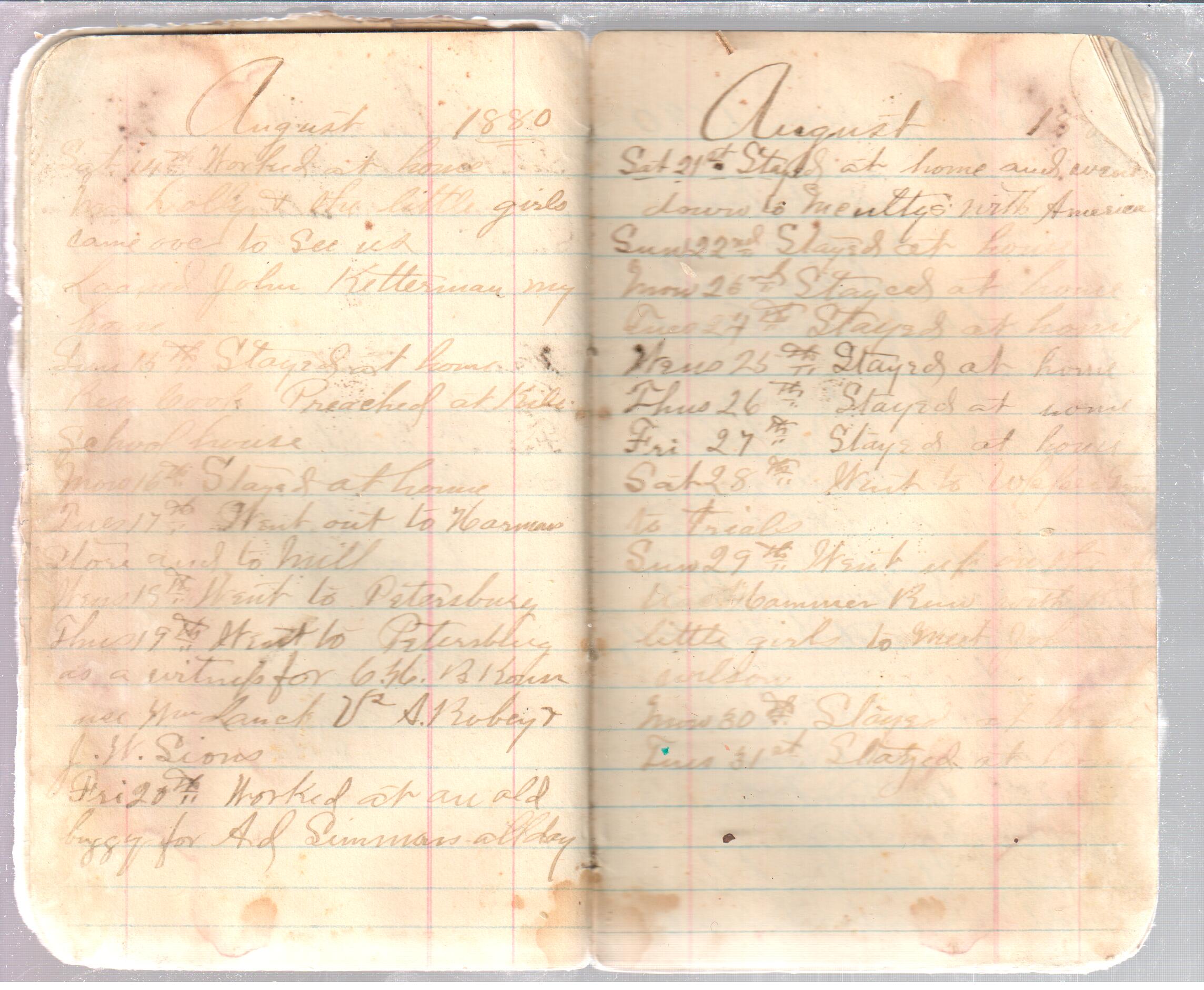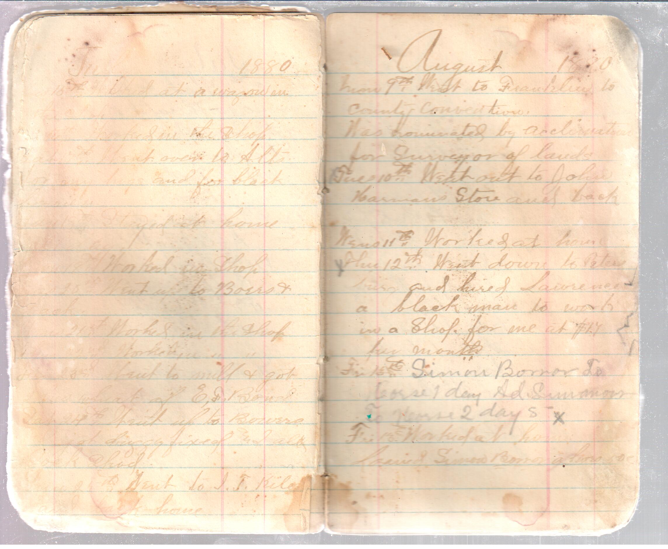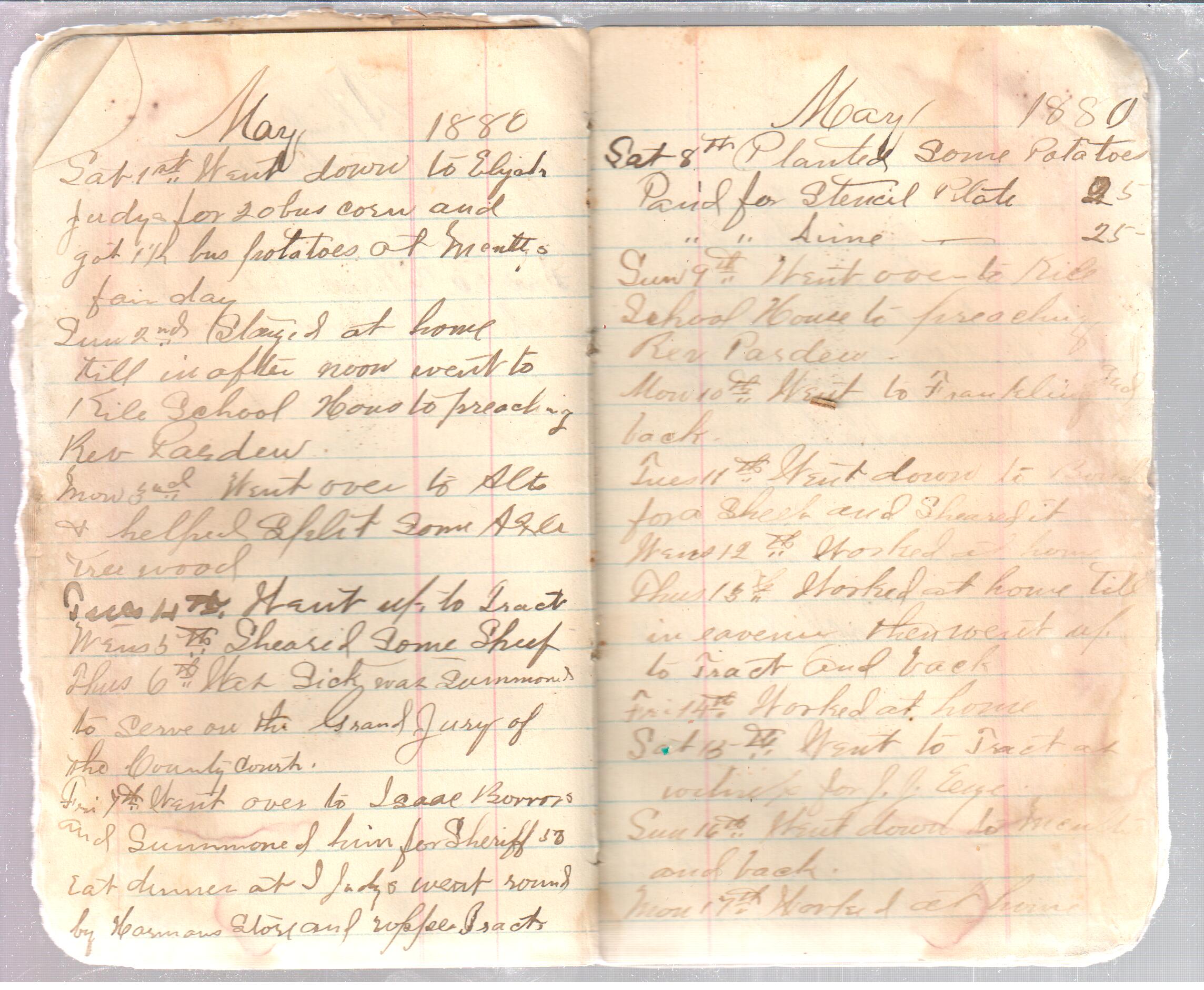 D. A. Landes Diaries: 1880 To see a transcription, click here: Click here to see slideshow scans: slideshow Or see individual pages below: Outside Covers Inside Covers Pages 0-1 Pages 2-3 Pages 4-5 Pages 6-7 Pages 8-9 Pages 10-11 Pages 12-13 Pages 14-15 Pages 16-17 Pages 18-19 Pages 20-21 Pages 22-23 Pages 24-25 Pages 26-27 Pages 28-29 Pages 30-31 Pages 32-33 Pages 34-35 Pages 36-37 Pages 38-39 Pages 40-41 Pages 42-43 Pages 44-45 Pages 46-47 Pages 48-49 Pages 50-51 Pages 52-53 Pages 54-55 Pages 56-57 Pages 58-59 Pages 60-61 Pages 62-63 Pages 64-65 Pages 66-67 Pages 68-69 Pages 70-71 Pages 72-73 Pages 74-75 Pages 76-77 Pages 78-79 Pages 80-81