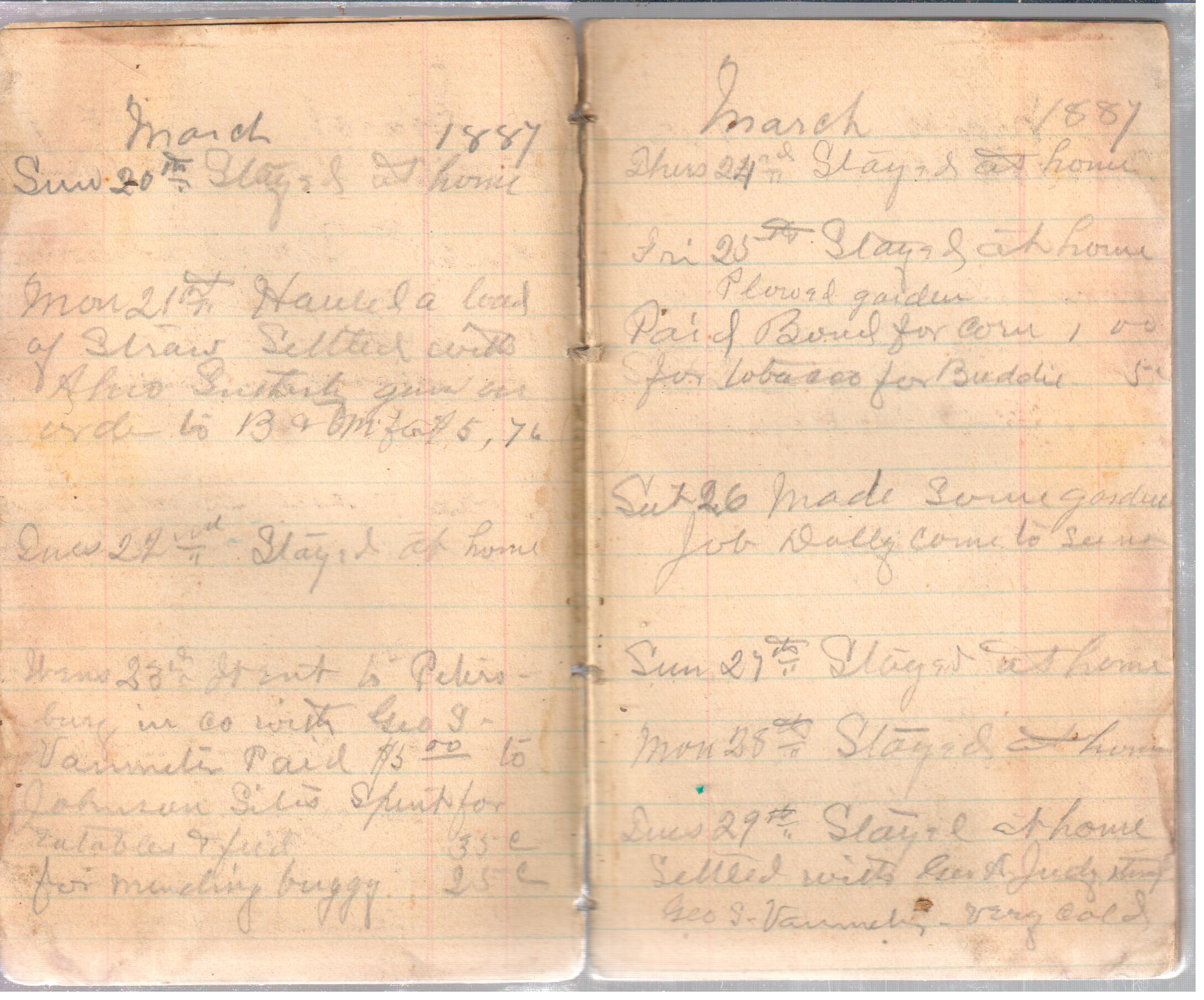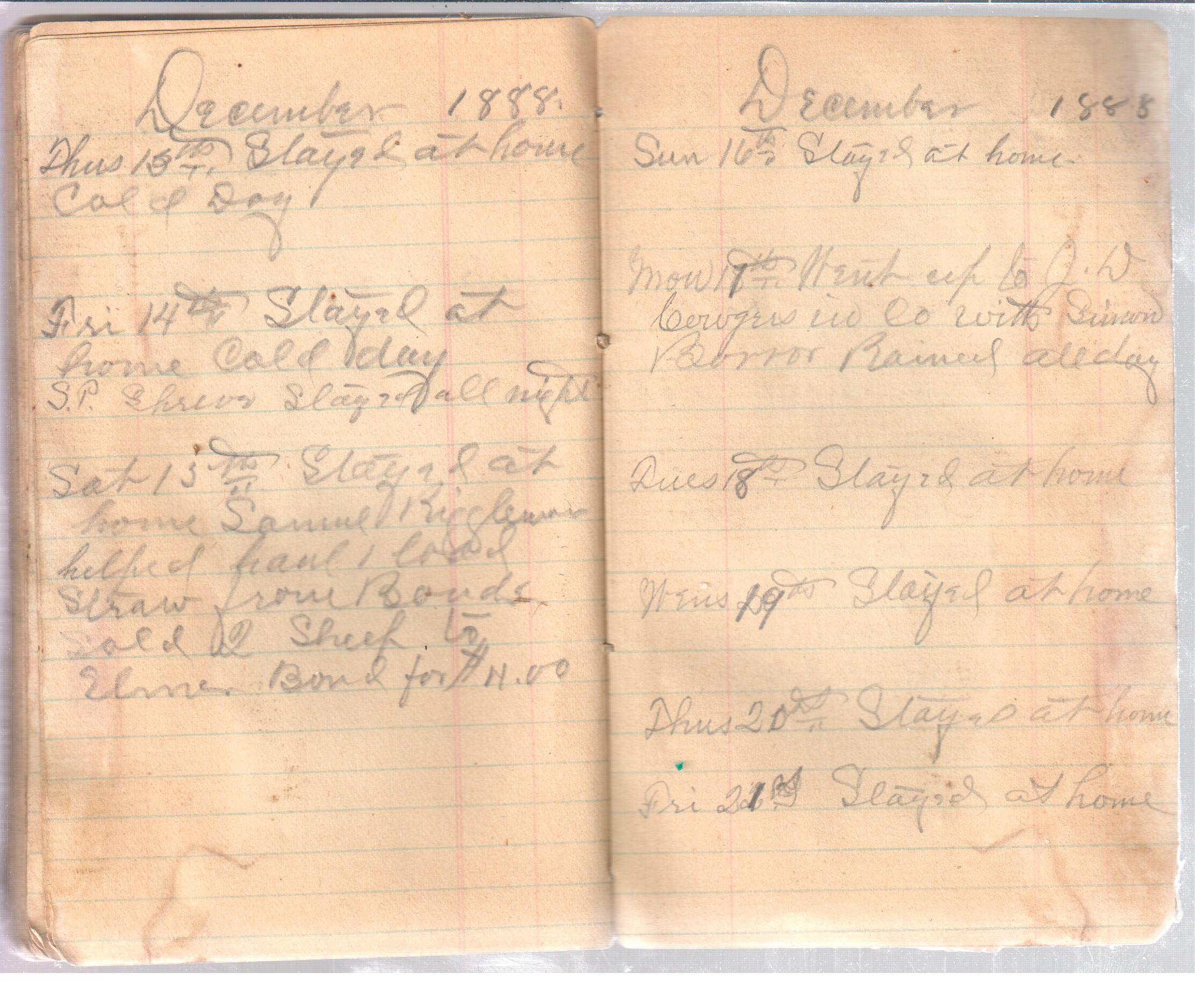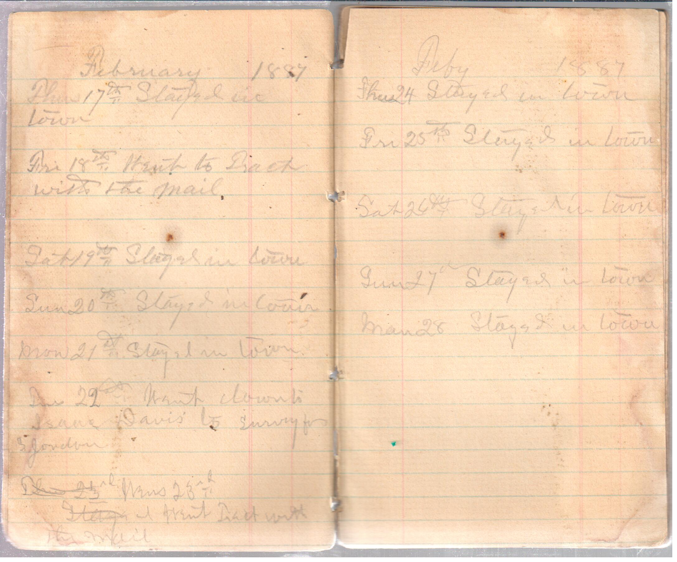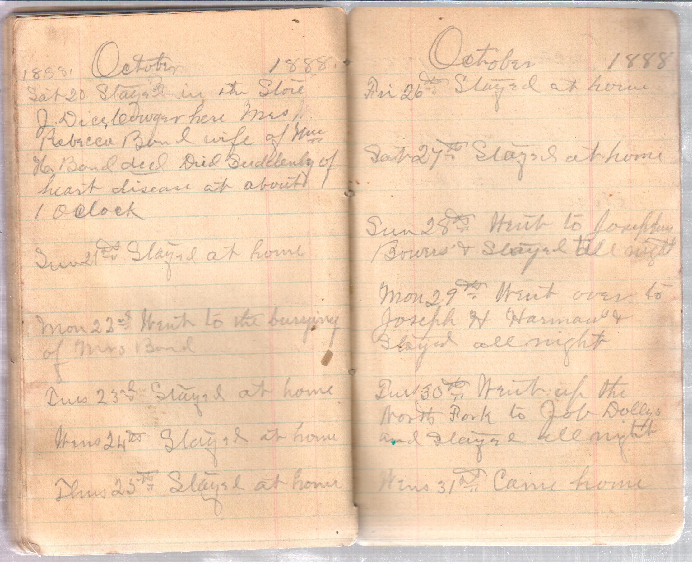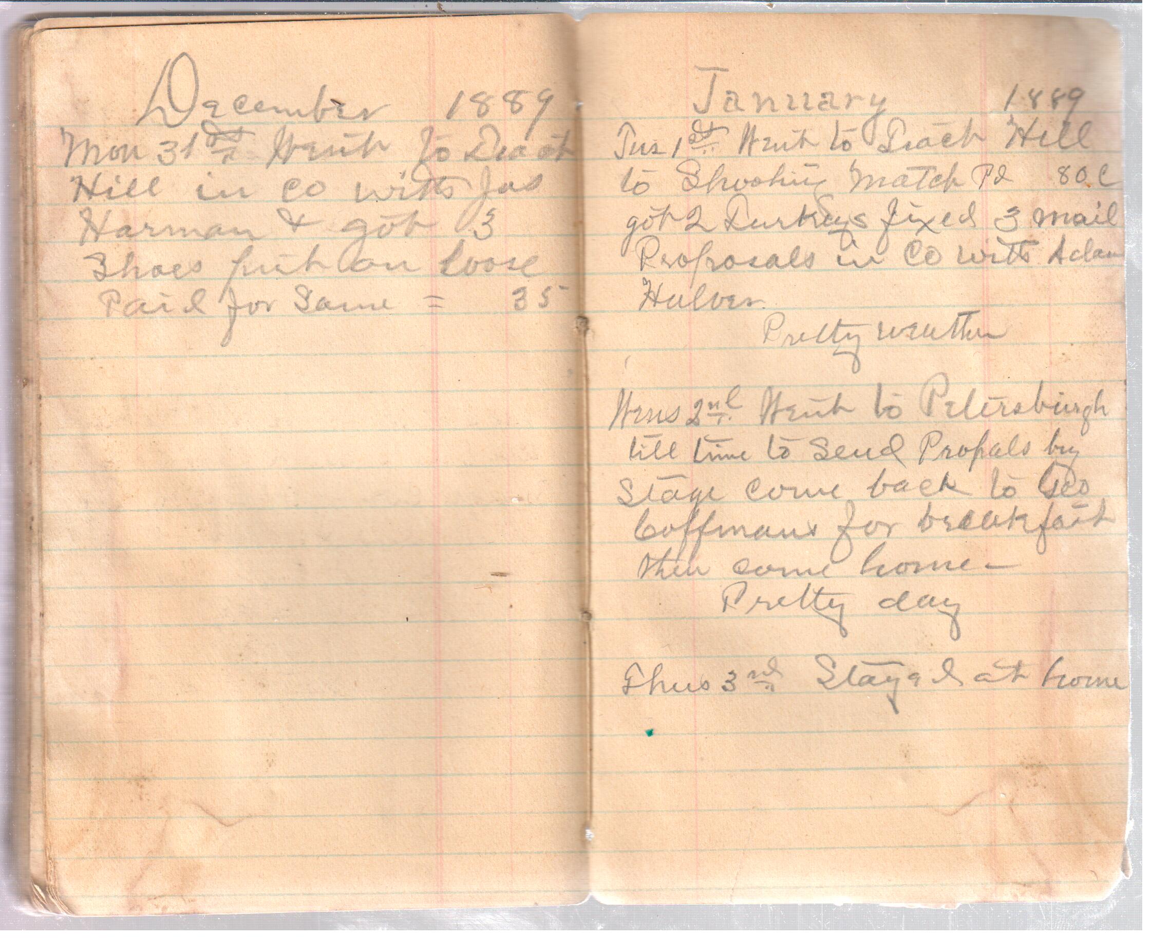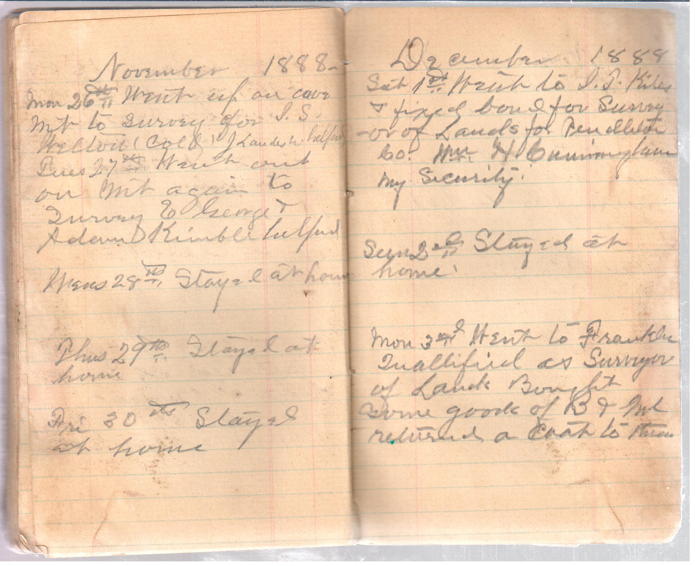 D. A. Landes Diaries: 1887-1888-1889 Only the first 2 weeks of 1889 are entered in this diary. The majority of 1889 is entered in a separate diary. Use slideshow or see pages individually: Page 0 Pages 1-2 Pages 2-3 Pages 4-5 Pages 6-7 Pages 9-10 Pages 11-12 Pages 13-14 Pages 15-16 Pages 17-18 Pages 19-20 Pages 21-22 Pages 23-24 Pages 25-26 Pages 27-28 Pages 29-30 Pages 31-32 Pages 33-34 Pages 35-36 Pages 37-38 Pages 39-40 Pages 41-42 Pages 43-44 Pages 45-46 Pages 47-48 Pages 49-50 Pages 51-52 Pages 53-54 Pages 55-56 Pages 57-58 Pages 59-60 Pages 61-62 Pages 63-64 Pages 65-66 Pages 67-68 Pages 69-70 Pages 71-72 Pages 73-74 Pages 75-76 Pages 77-78 Pages 79-80 Pages 81-82 Pages 83-84 Pages 85-86 Pages 87-88 Pages 89-90 Pages 91-92 Pages 93-94 Pages 95-96 Pages 97-98 Pages 99-100 Pages 101-102 Pages 103-104 Pages 105-106 Pages 107-108 Pages 109-110 Pages 111-112 Pages 113-114 Pages 115-116 Pages 117-118 Pages 119-120 Pages 121-122 Pages 123-124 Pages 125-126 Pages 127-128 Pages 129-130 Pages 131-132 Pages 133-134 Pages 135-136 Pages 137-138 Pages 139-140 Pages 141-142 Pages 143-144 Pages 145-146
