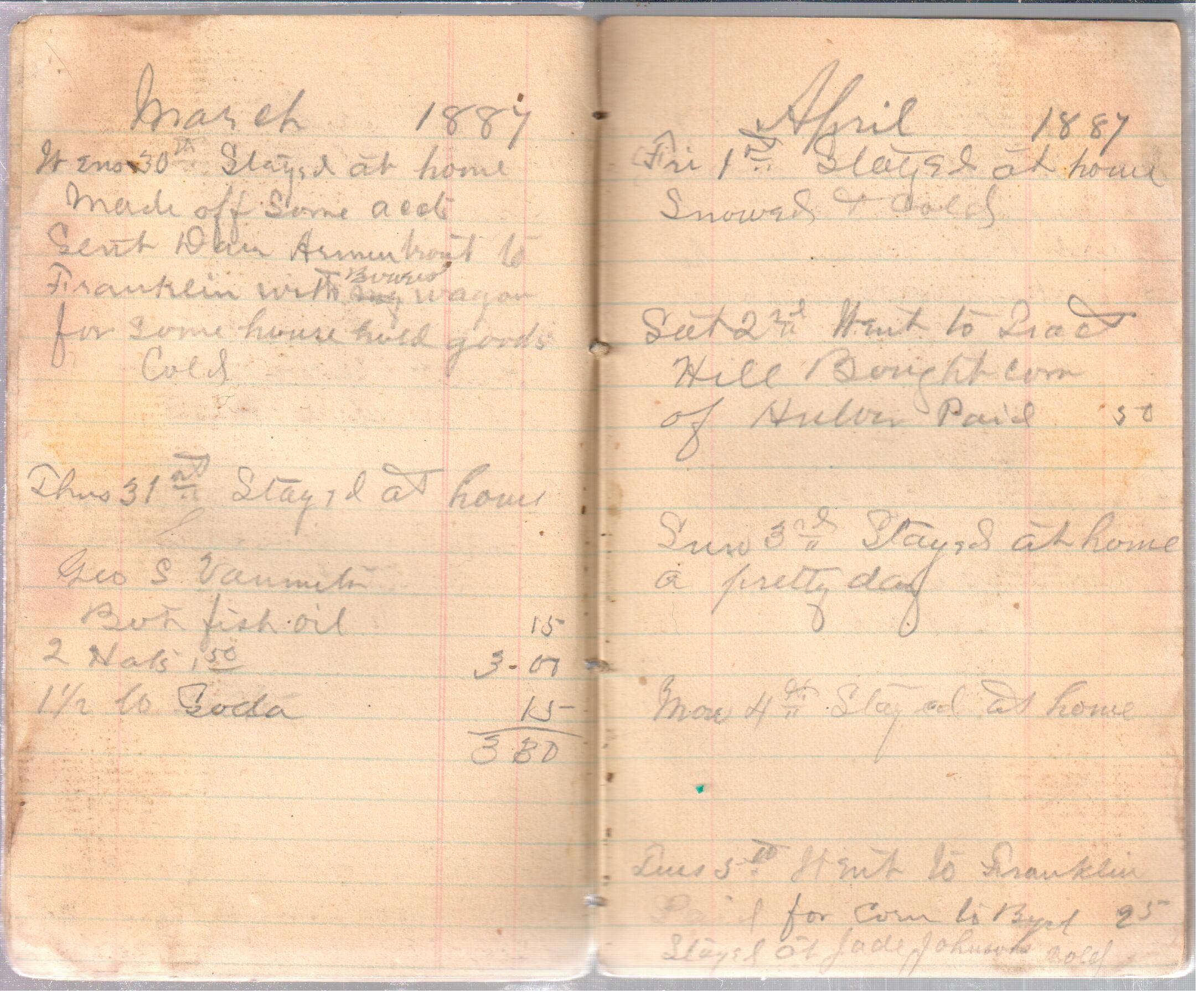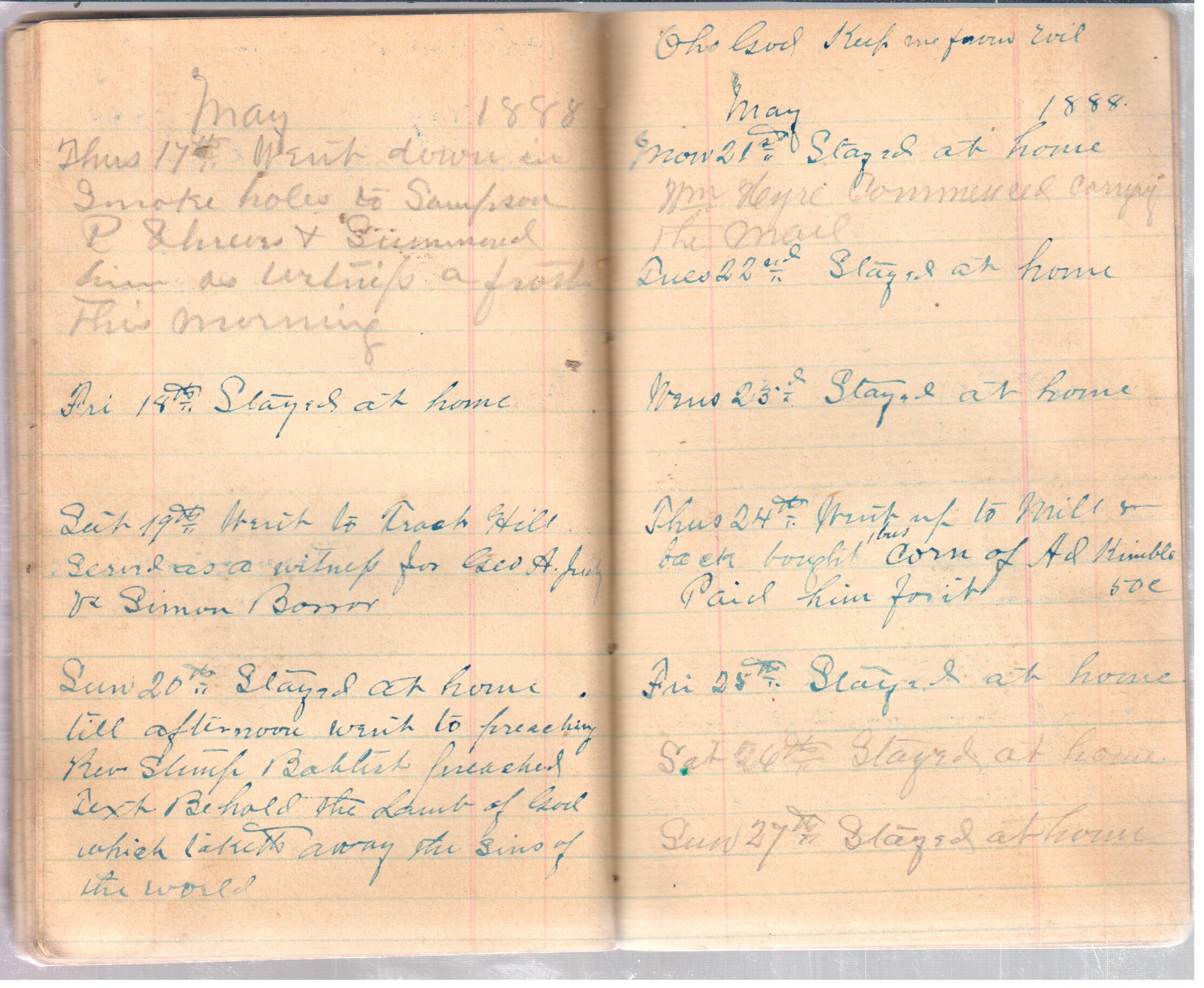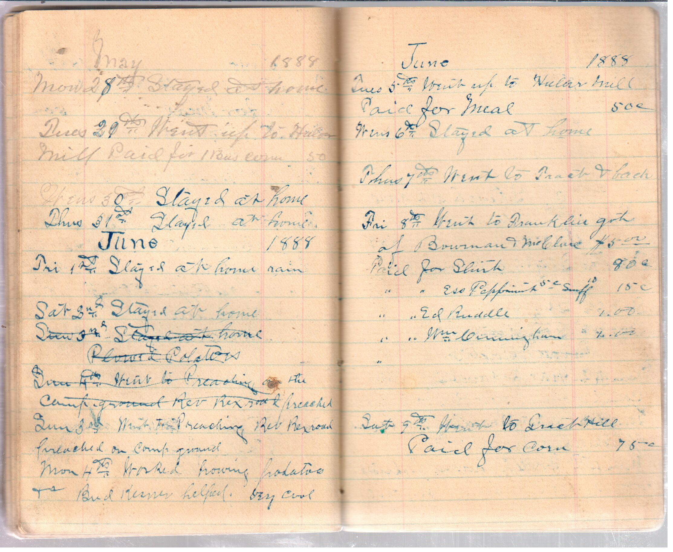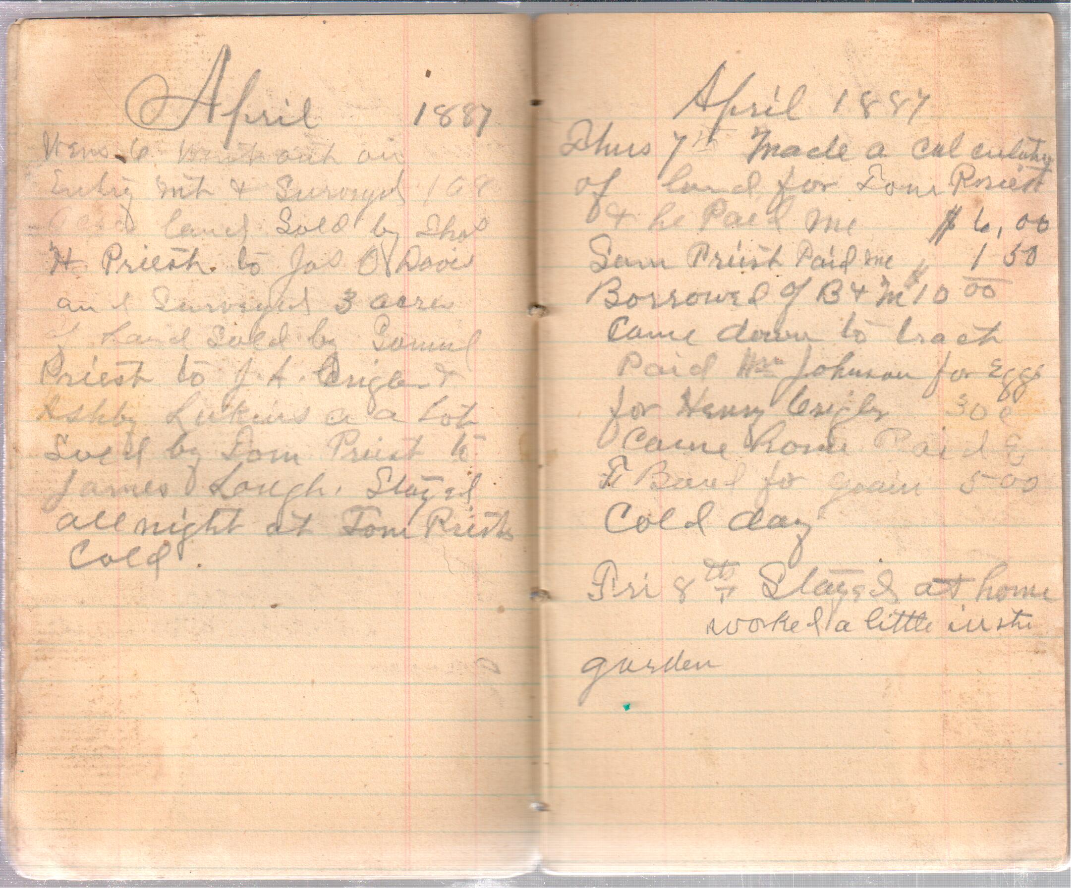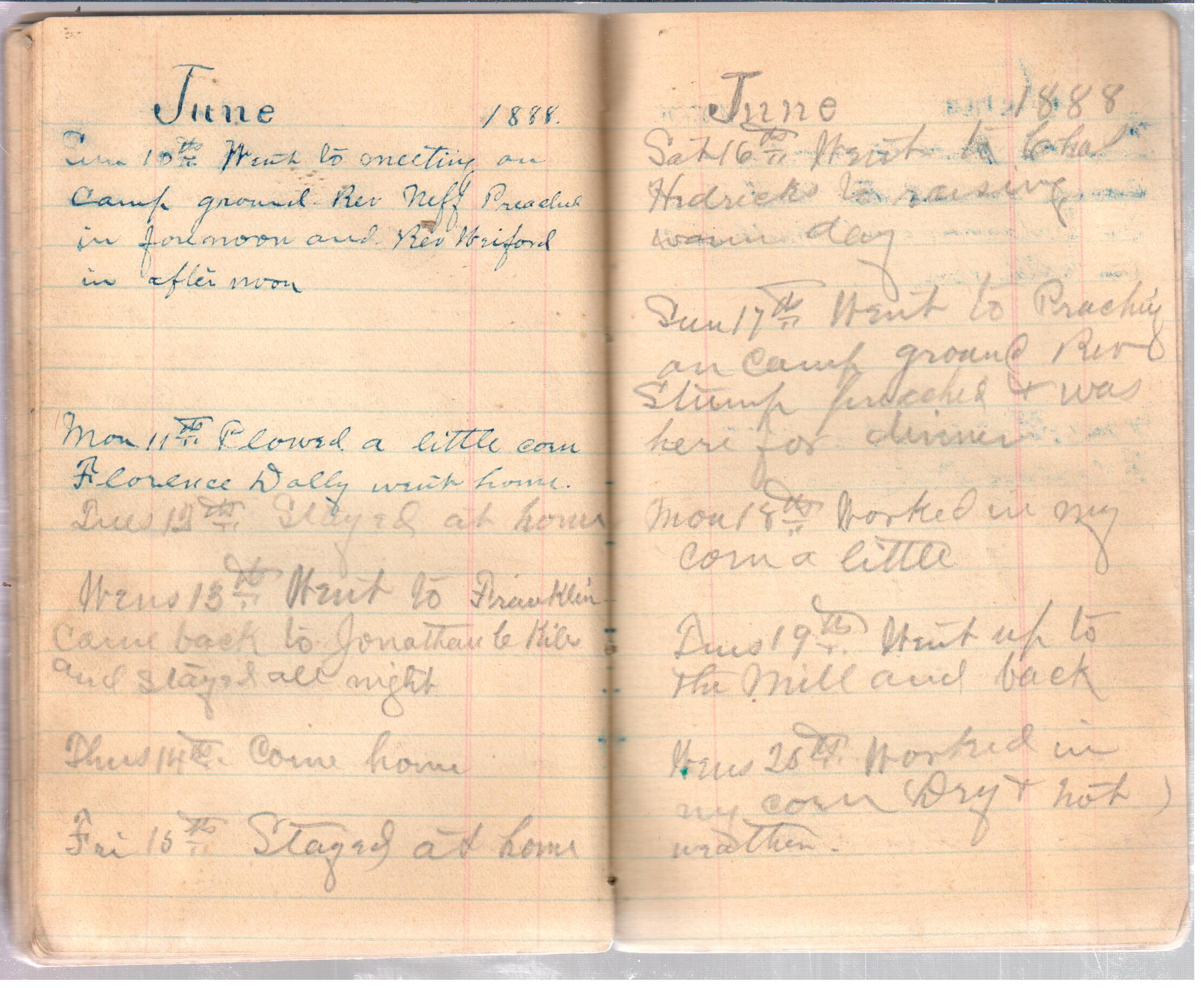 D. A. Landes Diaries: 1887-1888-1889 Only the first 2 weeks of 1889 are entered in this diary. The majority of 1889 is entered in a separate diary. Use slideshow or see pages individually: Page 0 Pages 1-2 Pages 2-3 Pages 4-5 Pages 6-7 Pages 9-10 Pages 11-12 Pages 13-14 Pages 15-16 Pages 17-18 Pages 19-20 Pages 21-22 Pages 23-24 Pages 25-26 Pages 27-28 Pages 29-30 Pages 31-32 Pages 33-34 Pages 35-36 Pages 37-38 Pages 39-40 Pages 41-42 Pages 43-44 Pages 45-46 Pages 47-48 Pages 49-50 Pages 51-52 Pages 53-54 Pages 55-56 Pages 57-58 Pages 59-60 Pages 61-62 Pages 63-64 Pages 65-66 Pages 67-68 Pages 69-70 Pages 71-72 Pages 73-74 Pages 75-76 Pages 77-78 Pages 79-80 Pages 81-82 Pages 83-84 Pages 85-86 Pages 87-88 Pages 89-90 Pages 91-92 Pages 93-94 Pages 95-96 Pages 97-98 Pages 99-100 Pages 101-102 Pages 103-104 Pages 105-106 Pages 107-108 Pages 109-110 Pages 111-112 Pages 113-114 Pages 115-116 Pages 117-118 Pages 119-120 Pages 121-122 Pages 123-124 Pages 125-126 Pages 127-128 Pages 129-130 Pages 131-132 Pages 133-134 Pages 135-136 Pages 137-138 Pages 139-140 Pages 141-142 Pages 143-144 Pages 145-146