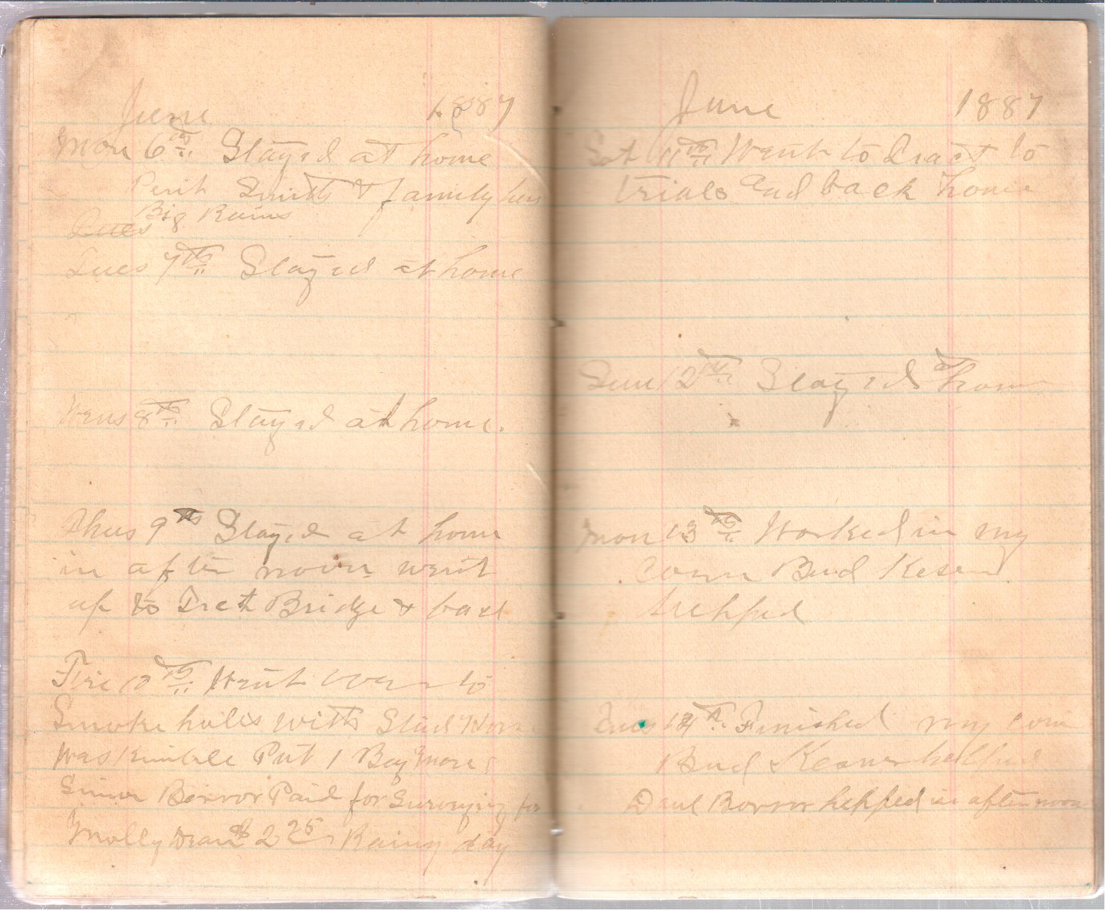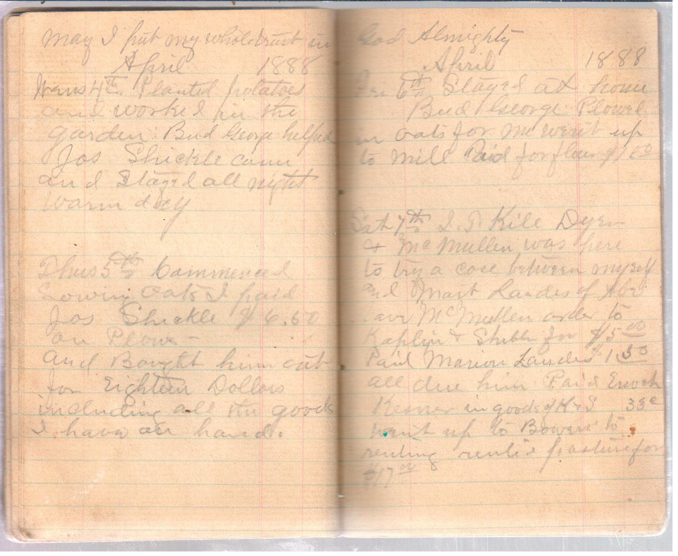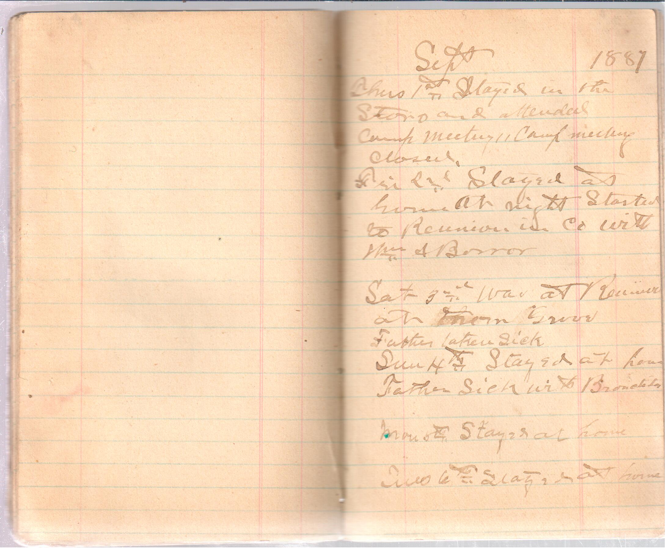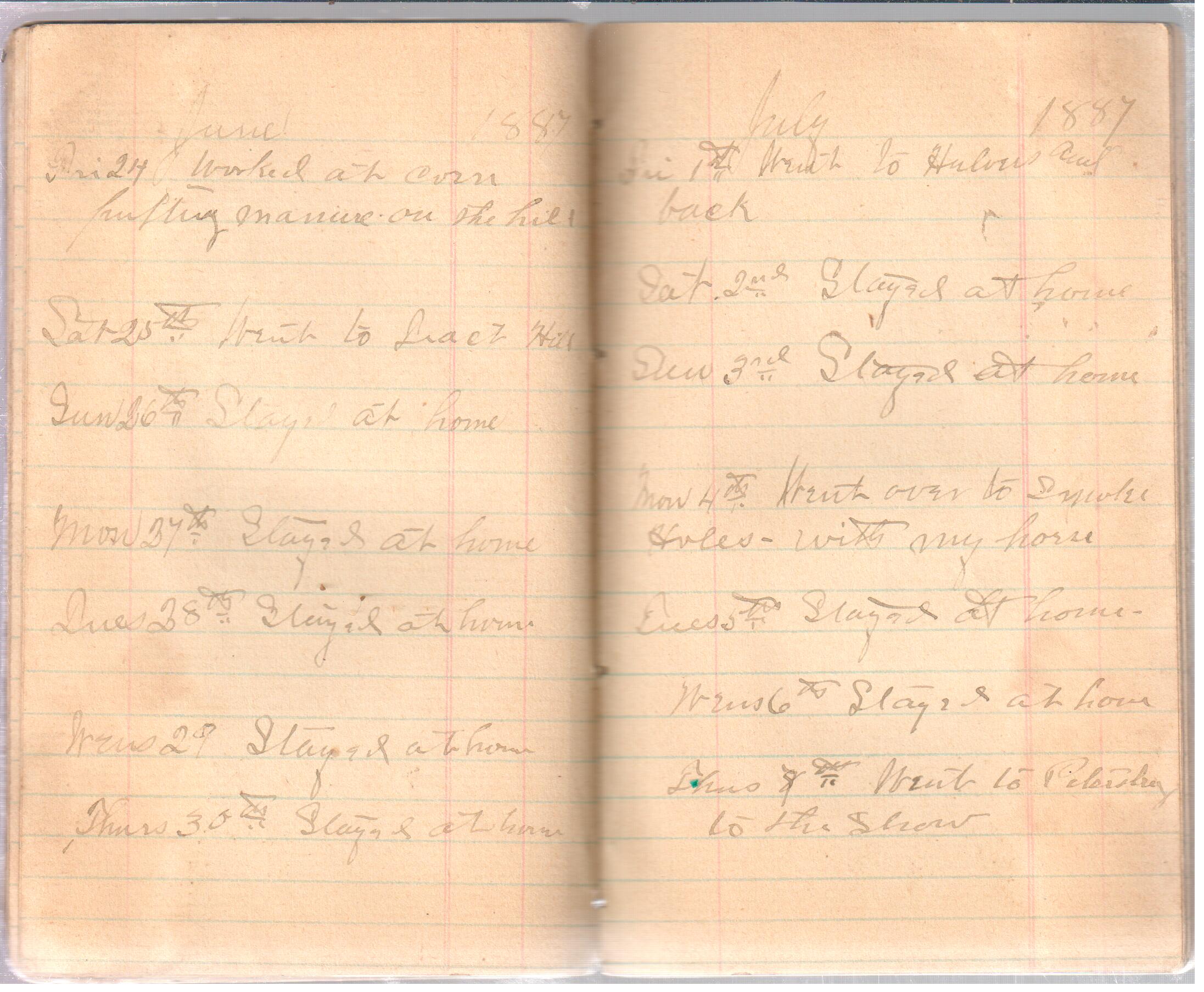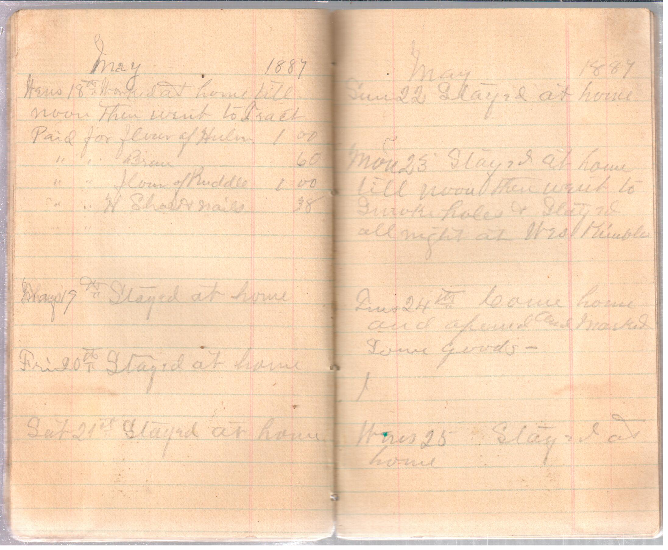 D. A. Landes Diaries: 1887-1888-1889 Only the first 2 weeks of 1889 are entered in this diary. The majority of 1889 is entered in a separate diary. Use slideshow or see pages individually: Page 0 Pages 1-2 Pages 2-3 Pages 4-5 Pages 6-7 Pages 9-10 Pages 11-12 Pages 13-14 Pages 15-16 Pages 17-18 Pages 19-20 Pages 21-22 Pages 23-24 Pages 25-26 Pages 27-28 Pages 29-30 Pages 31-32 Pages 33-34 Pages 35-36 Pages 37-38 Pages 39-40 Pages 41-42 Pages 43-44 Pages 45-46 Pages 47-48 Pages 49-50 Pages 51-52 Pages 53-54 Pages 55-56 Pages 57-58 Pages 59-60 Pages 61-62 Pages 63-64 Pages 65-66 Pages 67-68 Pages 69-70 Pages 71-72 Pages 73-74 Pages 75-76 Pages 77-78 Pages 79-80 Pages 81-82 Pages 83-84 Pages 85-86 Pages 87-88 Pages 89-90 Pages 91-92 Pages 93-94 Pages 95-96 Pages 97-98 Pages 99-100 Pages 101-102 Pages 103-104 Pages 105-106 Pages 107-108 Pages 109-110 Pages 111-112 Pages 113-114 Pages 115-116 Pages 117-118 Pages 119-120 Pages 121-122 Pages 123-124 Pages 125-126 Pages 127-128 Pages 129-130 Pages 131-132 Pages 133-134 Pages 135-136 Pages 137-138 Pages 139-140 Pages 141-142 Pages 143-144 Pages 145-146