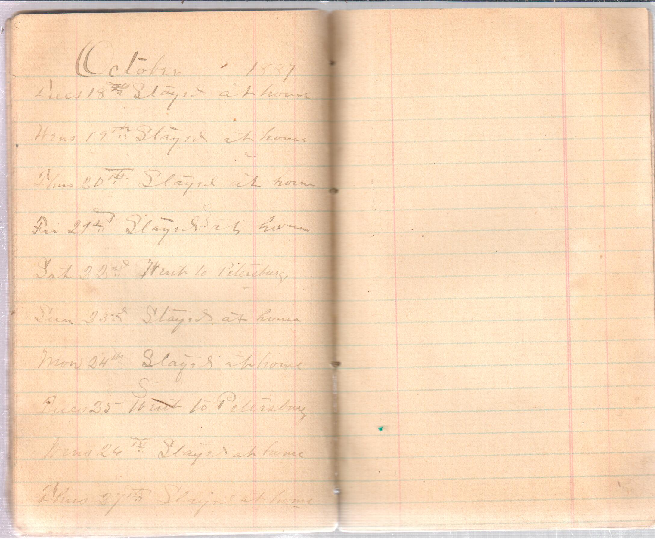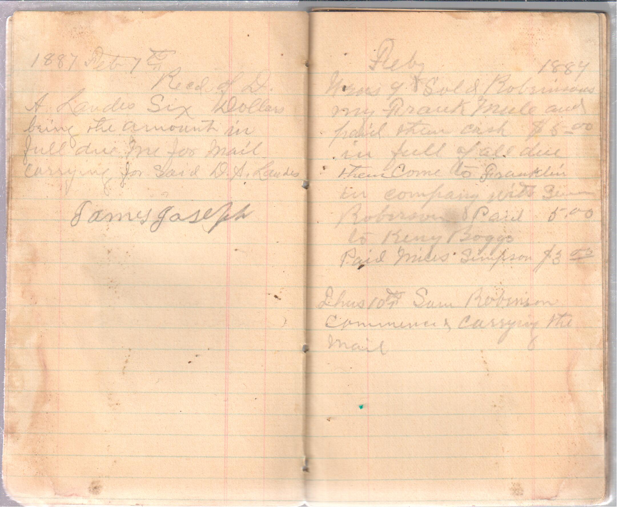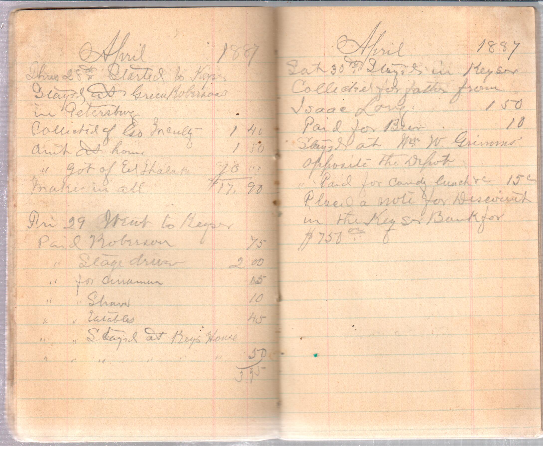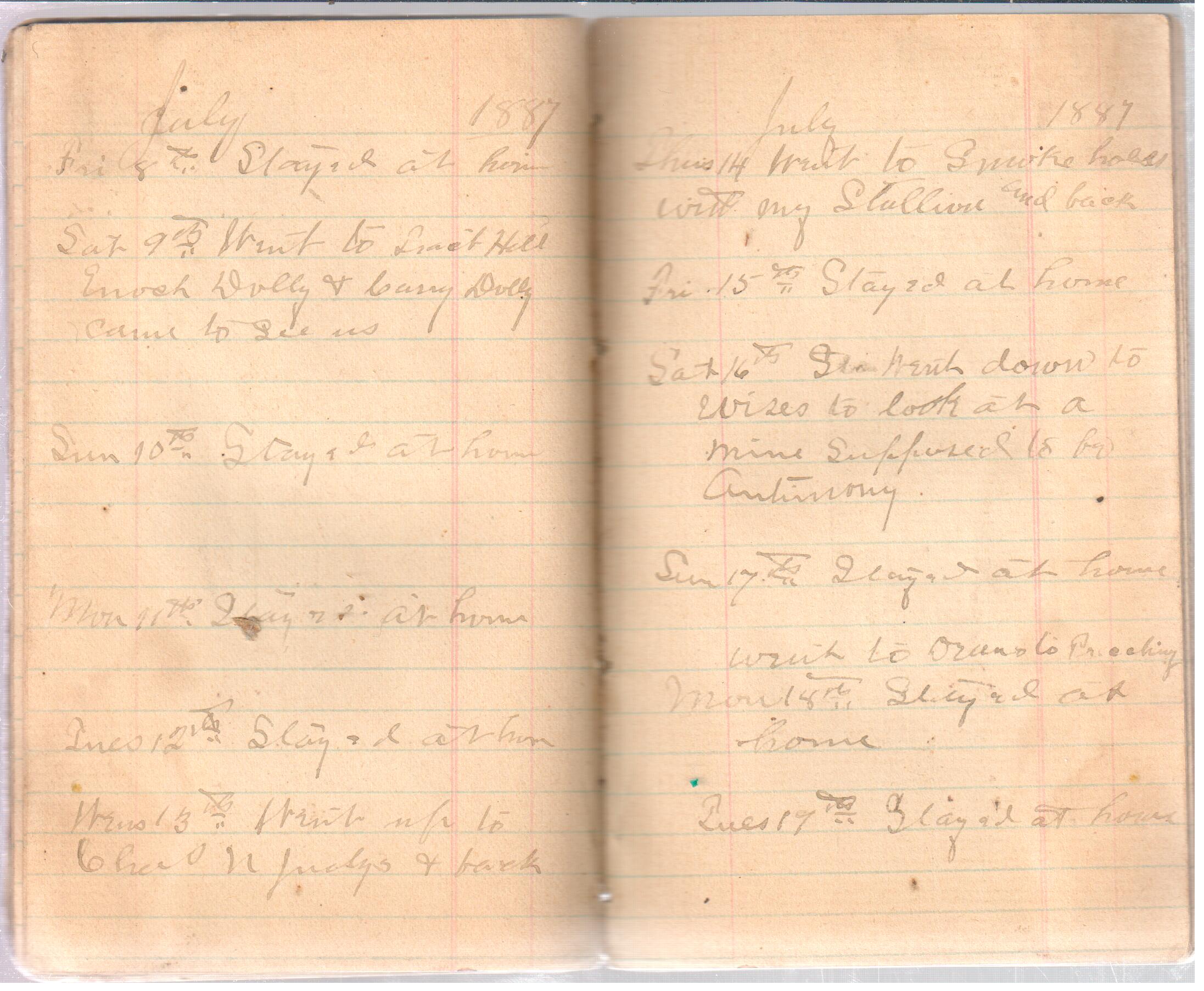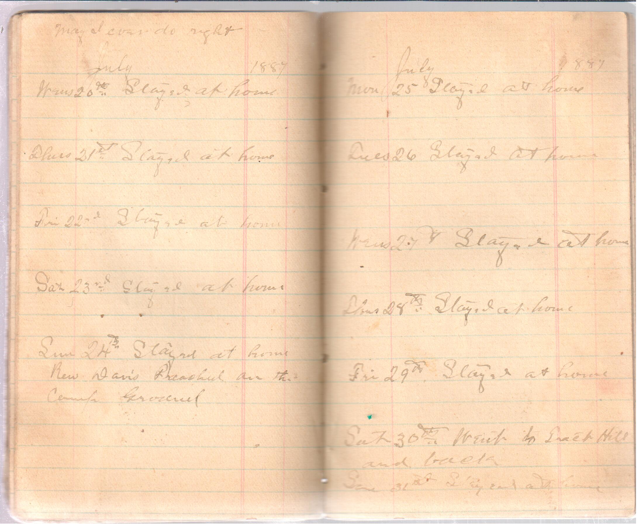 D. A. Landes Diaries: 1887-1888-1889 Only the first 2 weeks of 1889 are entered in this diary. The majority of 1889 is entered in a separate diary. Use slideshow or see pages individually: Page 0 Pages 1-2 Pages 2-3 Pages 4-5 Pages 6-7 Pages 9-10 Pages 11-12 Pages 13-14 Pages 15-16 Pages 17-18 Pages 19-20 Pages 21-22 Pages 23-24 Pages 25-26 Pages 27-28 Pages 29-30 Pages 31-32 Pages 33-34 Pages 35-36 Pages 37-38 Pages 39-40 Pages 41-42 Pages 43-44 Pages 45-46 Pages 47-48 Pages 49-50 Pages 51-52 Pages 53-54 Pages 55-56 Pages 57-58 Pages 59-60 Pages 61-62 Pages 63-64 Pages 65-66 Pages 67-68 Pages 69-70 Pages 71-72 Pages 73-74 Pages 75-76 Pages 77-78 Pages 79-80 Pages 81-82 Pages 83-84 Pages 85-86 Pages 87-88 Pages 89-90 Pages 91-92 Pages 93-94 Pages 95-96 Pages 97-98 Pages 99-100 Pages 101-102 Pages 103-104 Pages 105-106 Pages 107-108 Pages 109-110 Pages 111-112 Pages 113-114 Pages 115-116 Pages 117-118 Pages 119-120 Pages 121-122 Pages 123-124 Pages 125-126 Pages 127-128 Pages 129-130 Pages 131-132 Pages 133-134 Pages 135-136 Pages 137-138 Pages 139-140 Pages 141-142 Pages 143-144 Pages 145-146