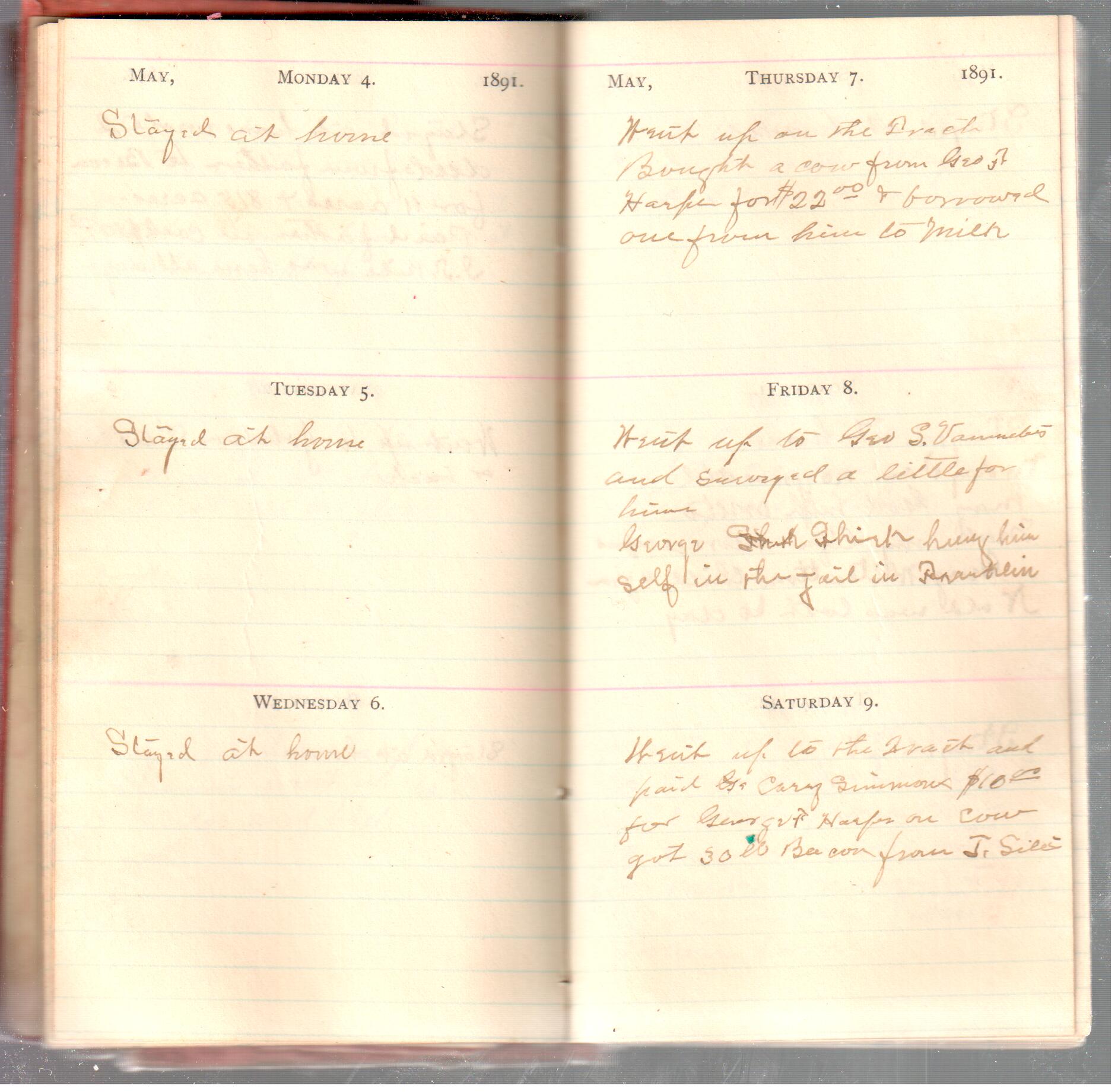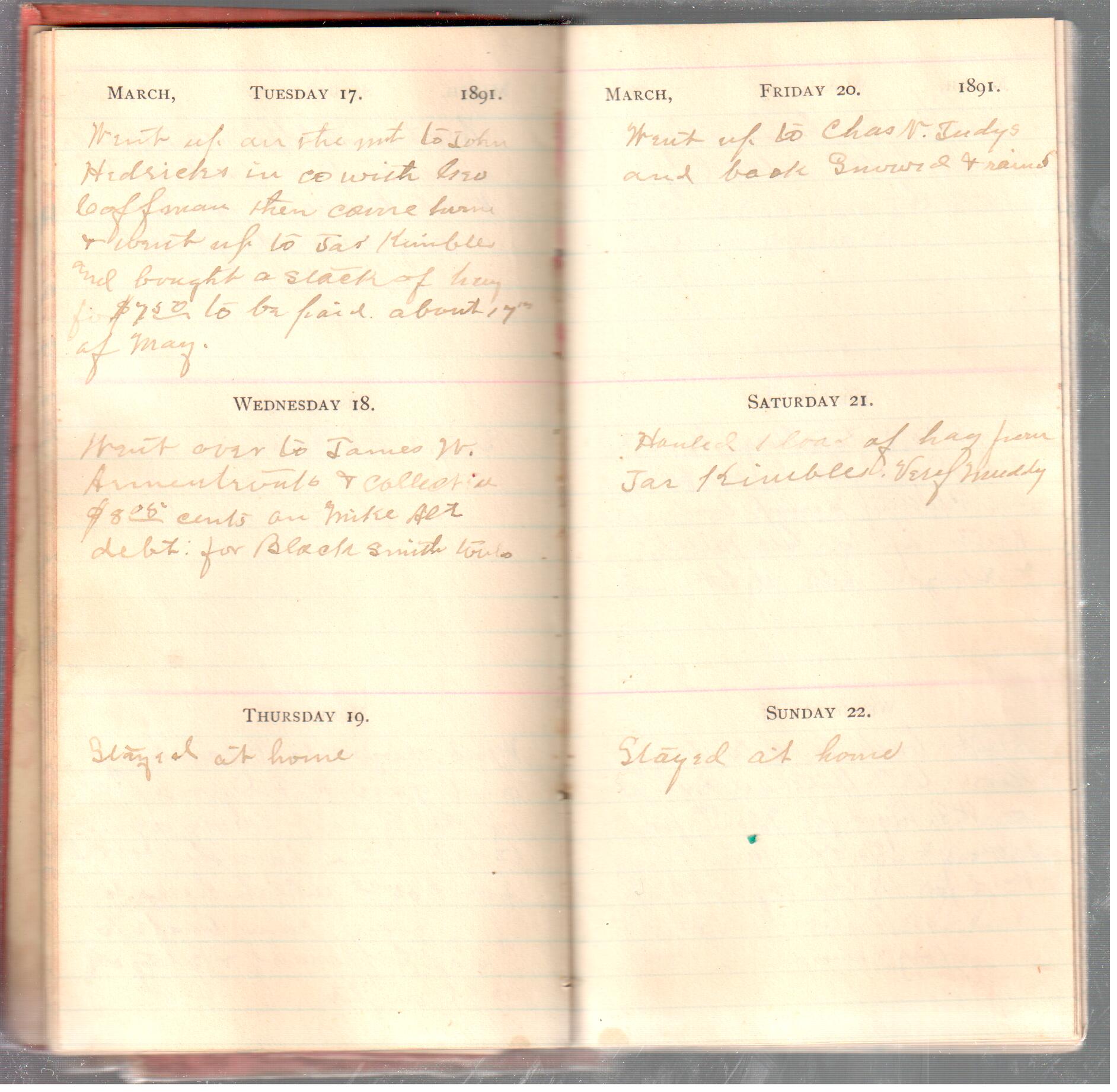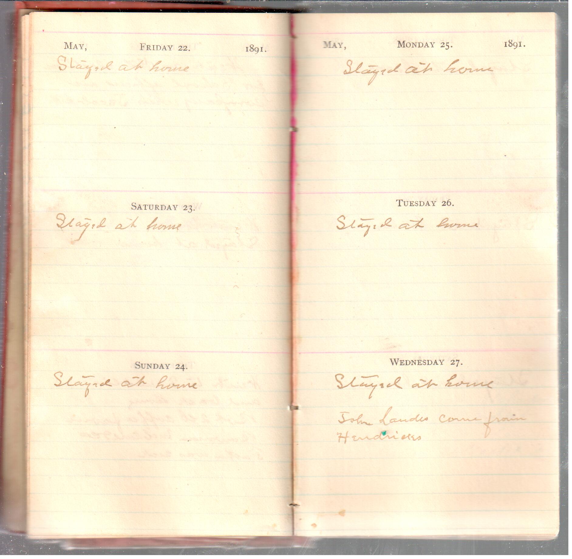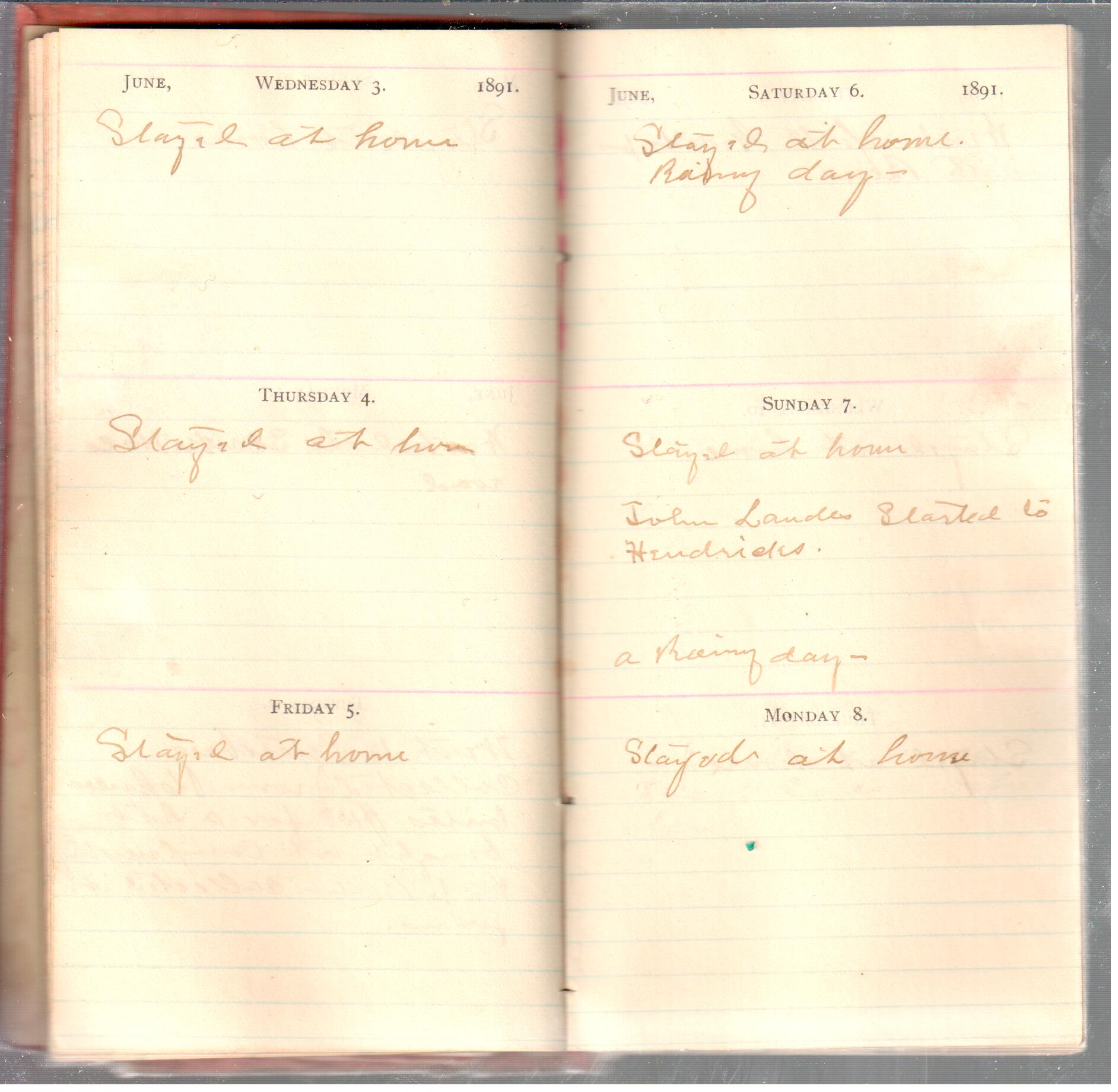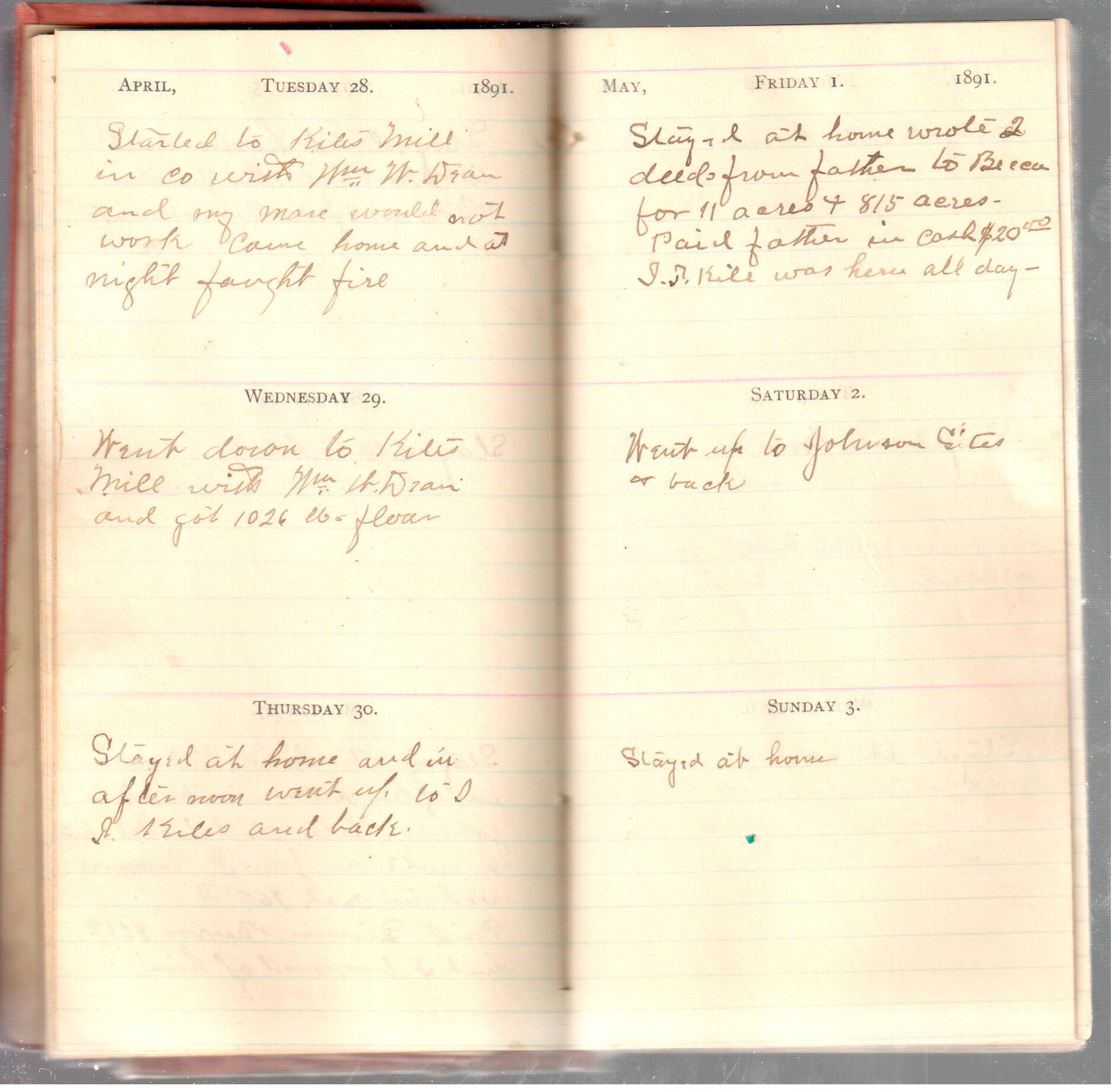 D. A. Landes Diaries: 1891 Use slideshow or see pages individually: Outside covers Pages Frontpiece Pages 1-2 Pages 3-4 Pages 5-6 Pages 6-7 Pages 7-8 Pages 9-10 Pages 11-12 Pages 13-14 Pages 15-16 Pages 17-18 Pages 19-20 Pages 21-22 Pages 23-24 Pages 25-26 Pages 27-28 Pages 29-30 Pages 31-32 Pages 33-34 Pages 35-36 Pages 37-38 Pages 39-40 Pages 41-42 Pages 43-44 Pages 45-46 Pages 47-48 Pages 49-50 Pages 51-52 Pages 53-54 Pages 55-56 Pages 57-58 Pages 59-60 Pages 61-62 Pages 63-64 Pages 65-66 Pages 67-68 Pages 69-70 Pages 71-72 Pages 73-74 Pages 75-76 Pages 77-78 Pages 79-80 Pages 81-82 Pages 83-84 Pages 85-86 Pages 87-88 Pages 89-90 Pages 91-92 Pages 93-94 Pages 95-96 Pages 97-98 Pages 99-100 Pages 101-102 Pages 103-104 Pages 105-106 Pages 107-108 Pages 109-110 Pages 111-112 Pages 113-114 Pages 115-116 Pages 117-118 Pages 119-120 Pages 121-122 Pages 123-124 Pages 125-126 Pages 127-128 Pages 129-130
