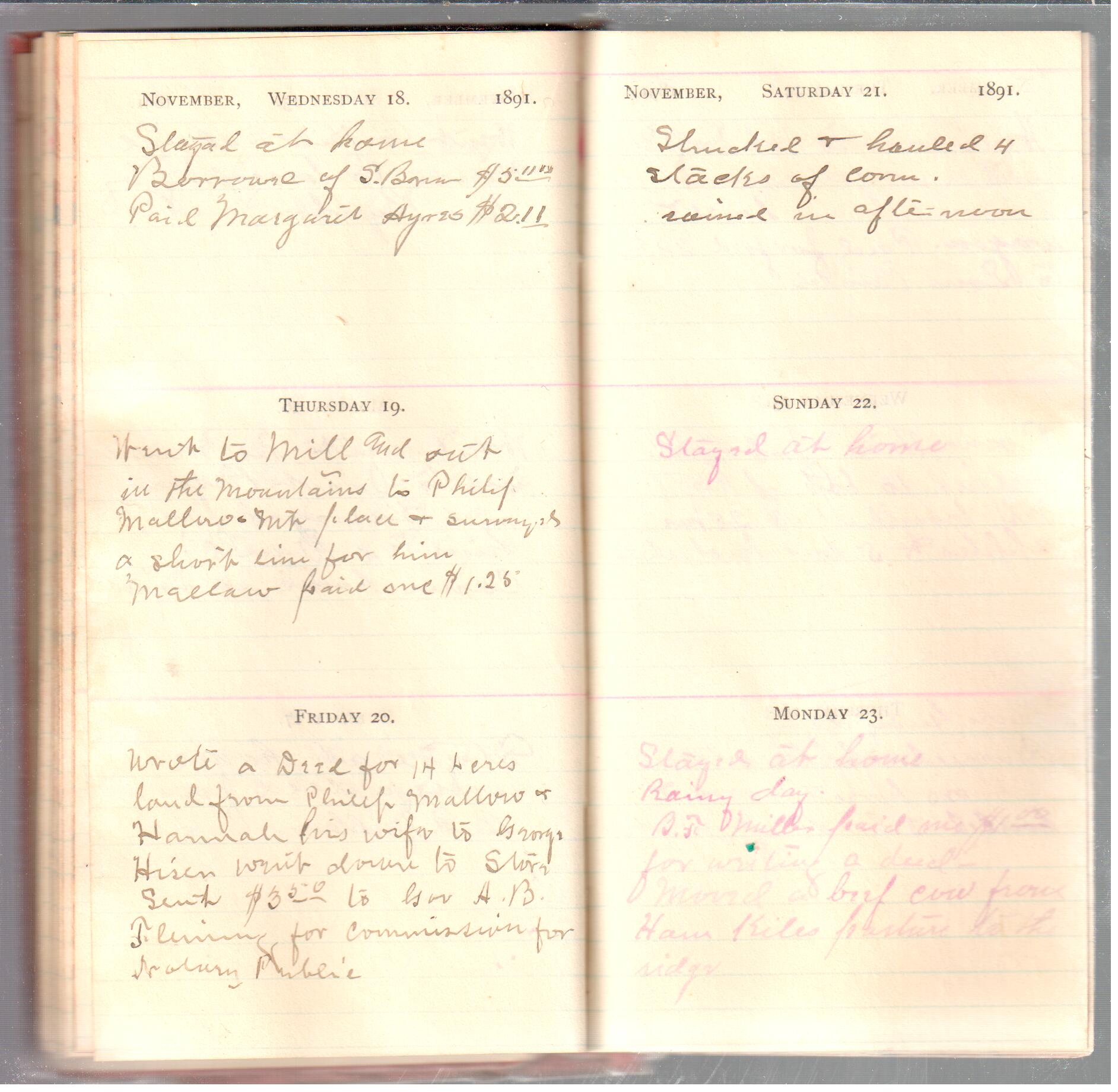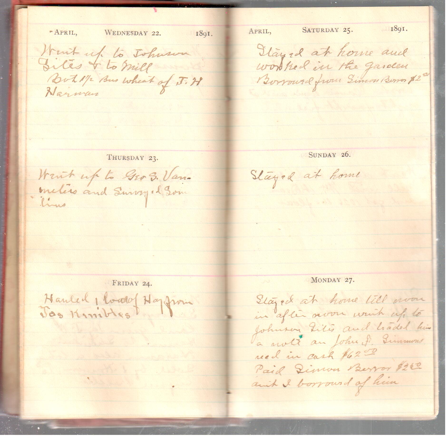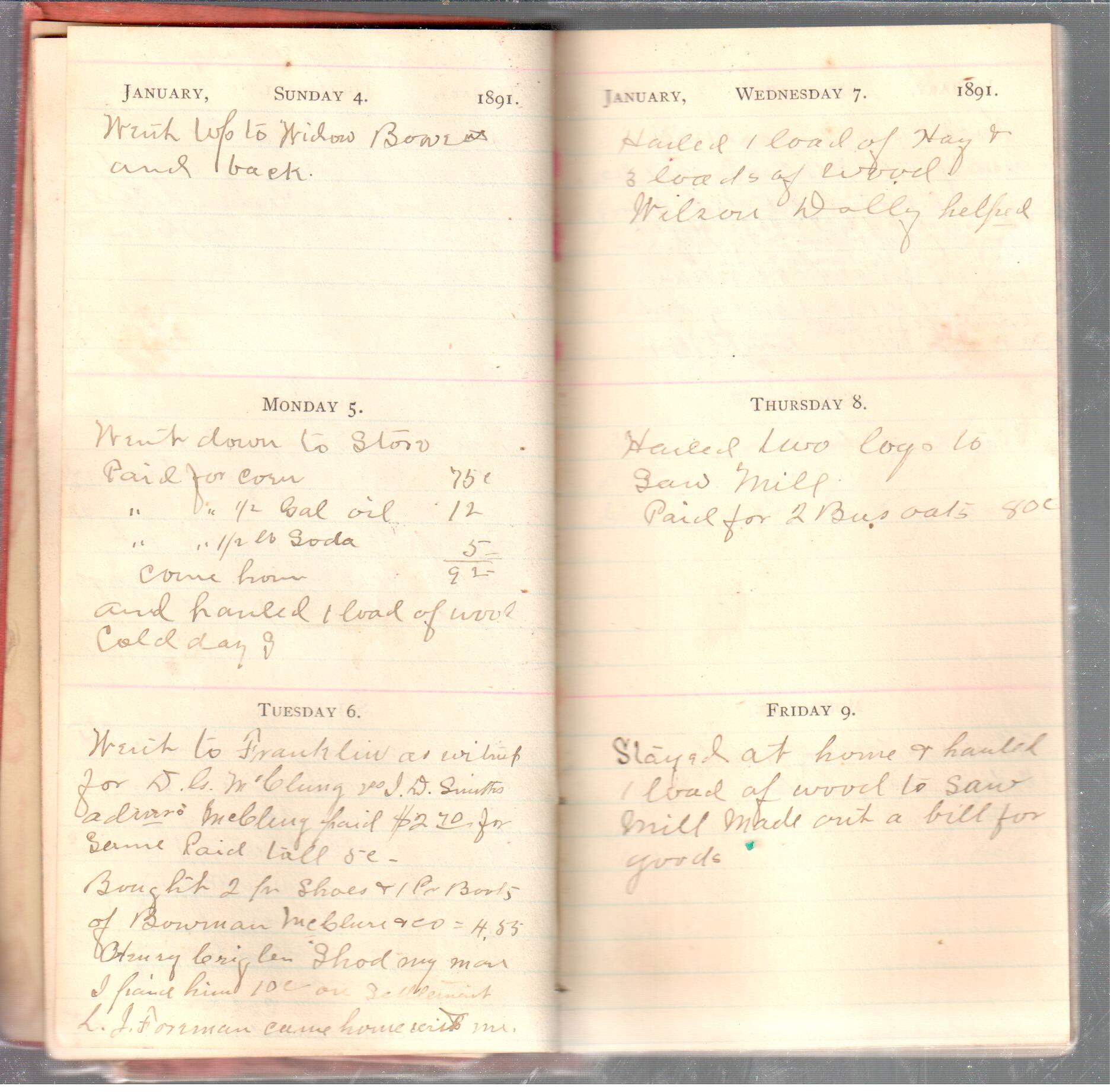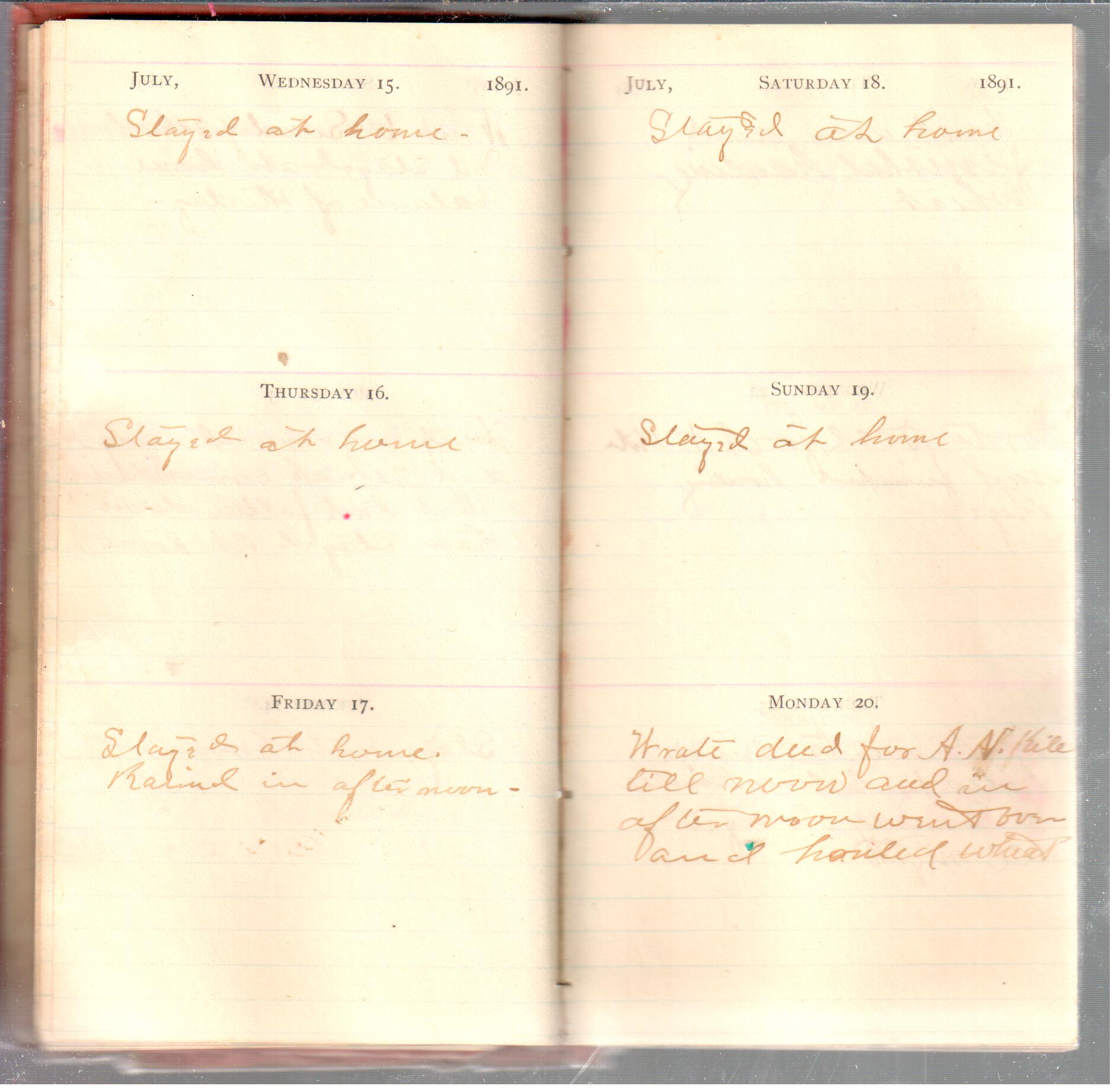 D. A. Landes Diaries: 1891 Use slideshow or see pages individually: Outside covers Pages Frontpiece Pages 1-2 Pages 3-4 Pages 5-6 Pages 6-7 Pages 7-8 Pages 9-10 Pages 11-12 Pages 13-14 Pages 15-16 Pages 17-18 Pages 19-20 Pages 21-22 Pages 23-24 Pages 25-26 Pages 27-28 Pages 29-30 Pages 31-32 Pages 33-34 Pages 35-36 Pages 37-38 Pages 39-40 Pages 41-42 Pages 43-44 Pages 45-46 Pages 47-48 Pages 49-50 Pages 51-52 Pages 53-54 Pages 55-56 Pages 57-58 Pages 59-60 Pages 61-62 Pages 63-64 Pages 65-66 Pages 67-68 Pages 69-70 Pages 71-72 Pages 73-74 Pages 75-76 Pages 77-78 Pages 79-80 Pages 81-82 Pages 83-84 Pages 85-86 Pages 87-88 Pages 89-90 Pages 91-92 Pages 93-94 Pages 95-96 Pages 97-98 Pages 99-100 Pages 101-102 Pages 103-104 Pages 105-106 Pages 107-108 Pages 109-110 Pages 111-112 Pages 113-114 Pages 115-116 Pages 117-118 Pages 119-120 Pages 121-122 Pages 123-124 Pages 125-126 Pages 127-128 Pages 129-130