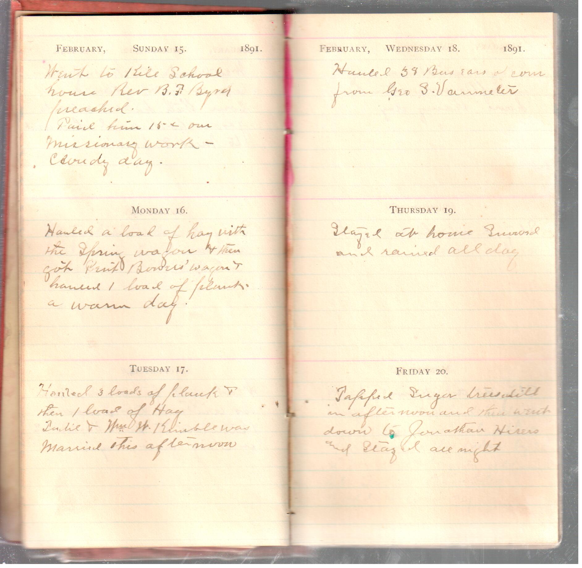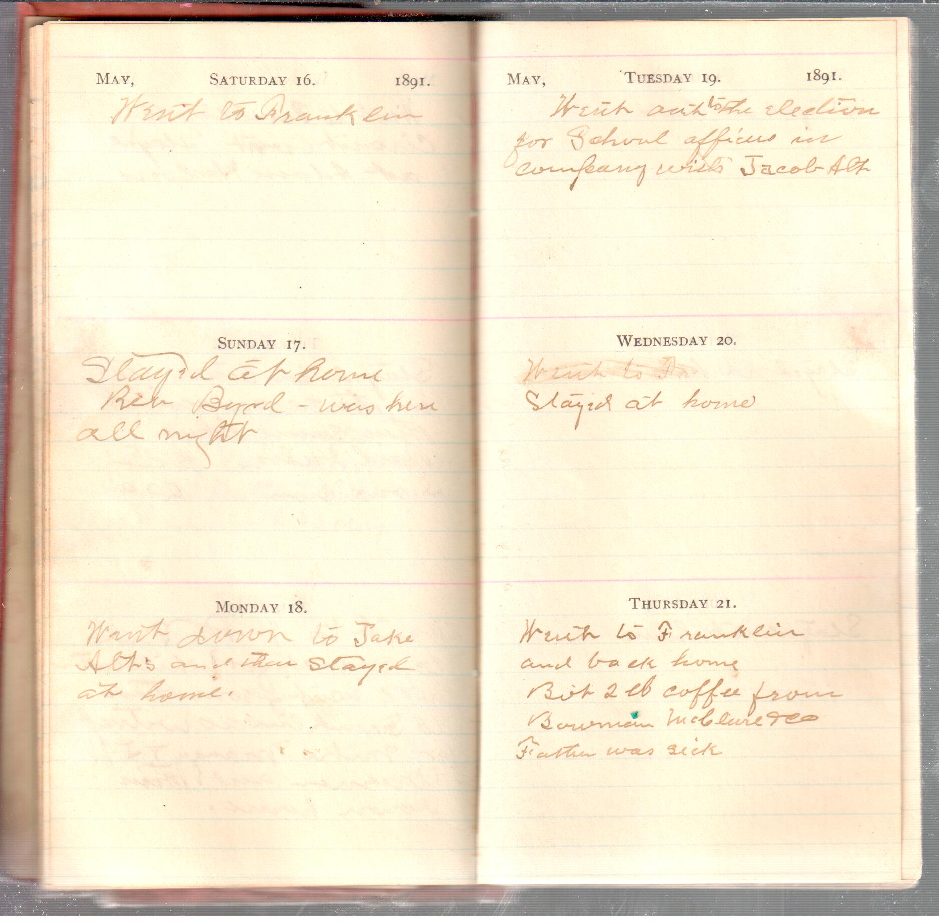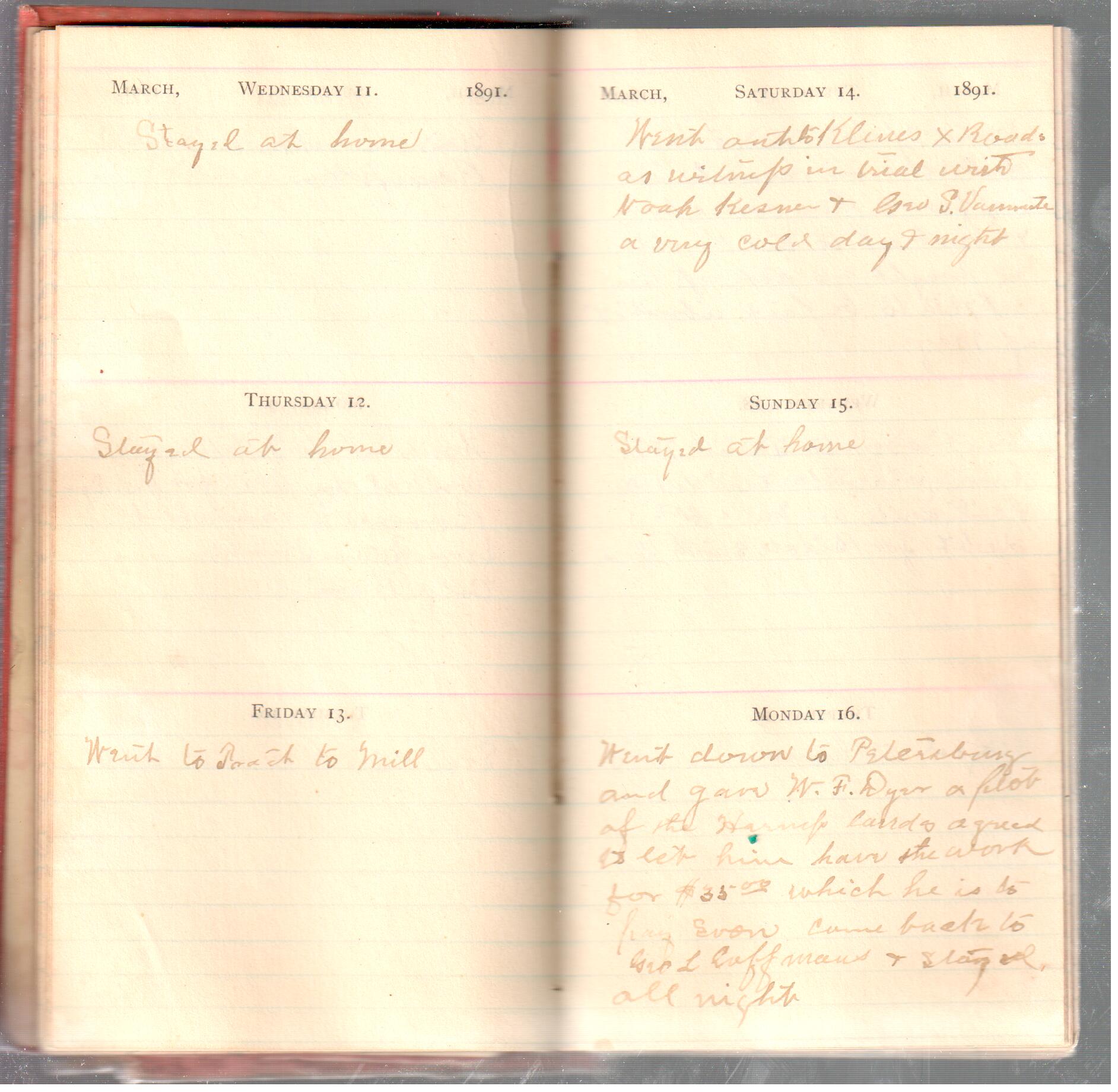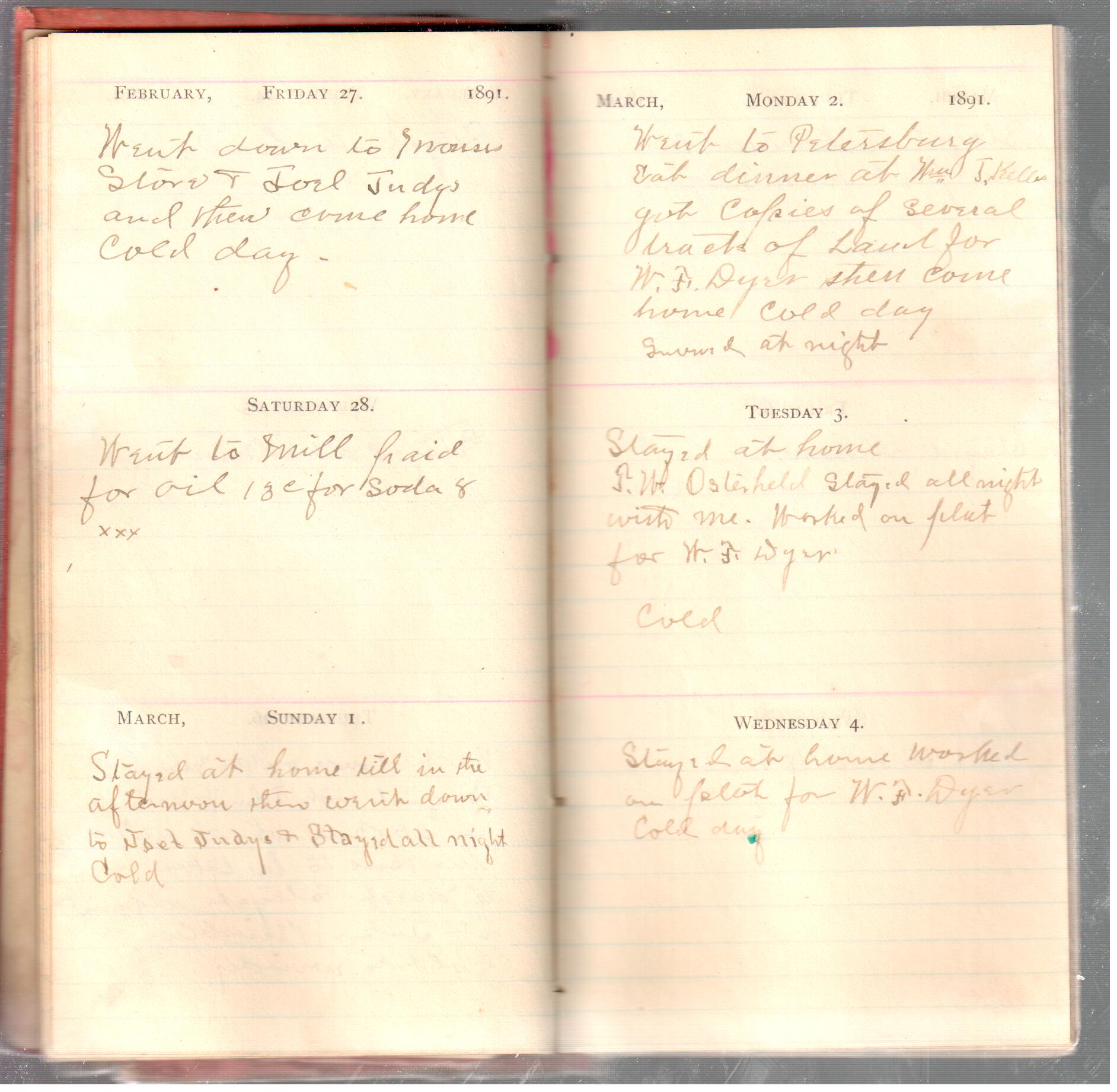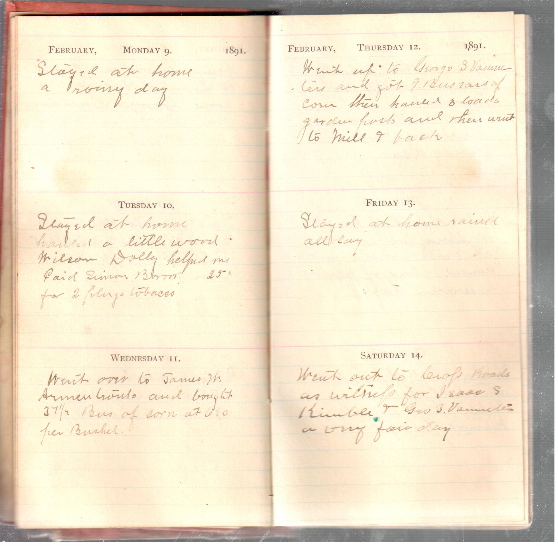 D. A. Landes Diaries: 1891 Use slideshow or see pages individually: Outside covers Pages Frontpiece Pages 1-2 Pages 3-4 Pages 5-6 Pages 6-7 Pages 7-8 Pages 9-10 Pages 11-12 Pages 13-14 Pages 15-16 Pages 17-18 Pages 19-20 Pages 21-22 Pages 23-24 Pages 25-26 Pages 27-28 Pages 29-30 Pages 31-32 Pages 33-34 Pages 35-36 Pages 37-38 Pages 39-40 Pages 41-42 Pages 43-44 Pages 45-46 Pages 47-48 Pages 49-50 Pages 51-52 Pages 53-54 Pages 55-56 Pages 57-58 Pages 59-60 Pages 61-62 Pages 63-64 Pages 65-66 Pages 67-68 Pages 69-70 Pages 71-72 Pages 73-74 Pages 75-76 Pages 77-78 Pages 79-80 Pages 81-82 Pages 83-84 Pages 85-86 Pages 87-88 Pages 89-90 Pages 91-92 Pages 93-94 Pages 95-96 Pages 97-98 Pages 99-100 Pages 101-102 Pages 103-104 Pages 105-106 Pages 107-108 Pages 109-110 Pages 111-112 Pages 113-114 Pages 115-116 Pages 117-118 Pages 119-120 Pages 121-122 Pages 123-124 Pages 125-126 Pages 127-128 Pages 129-130
