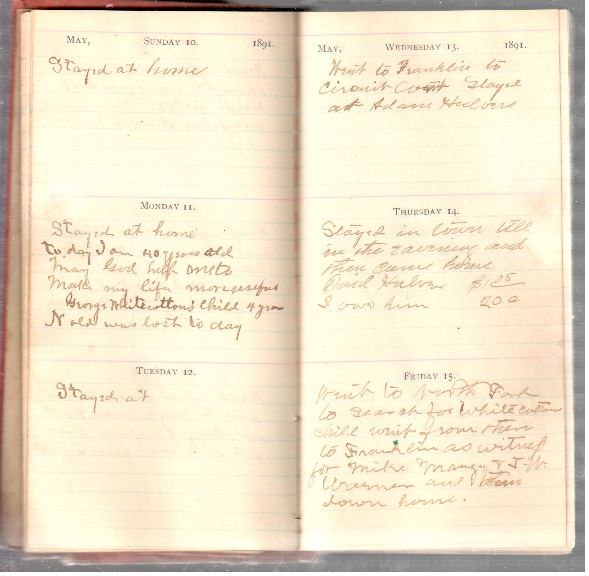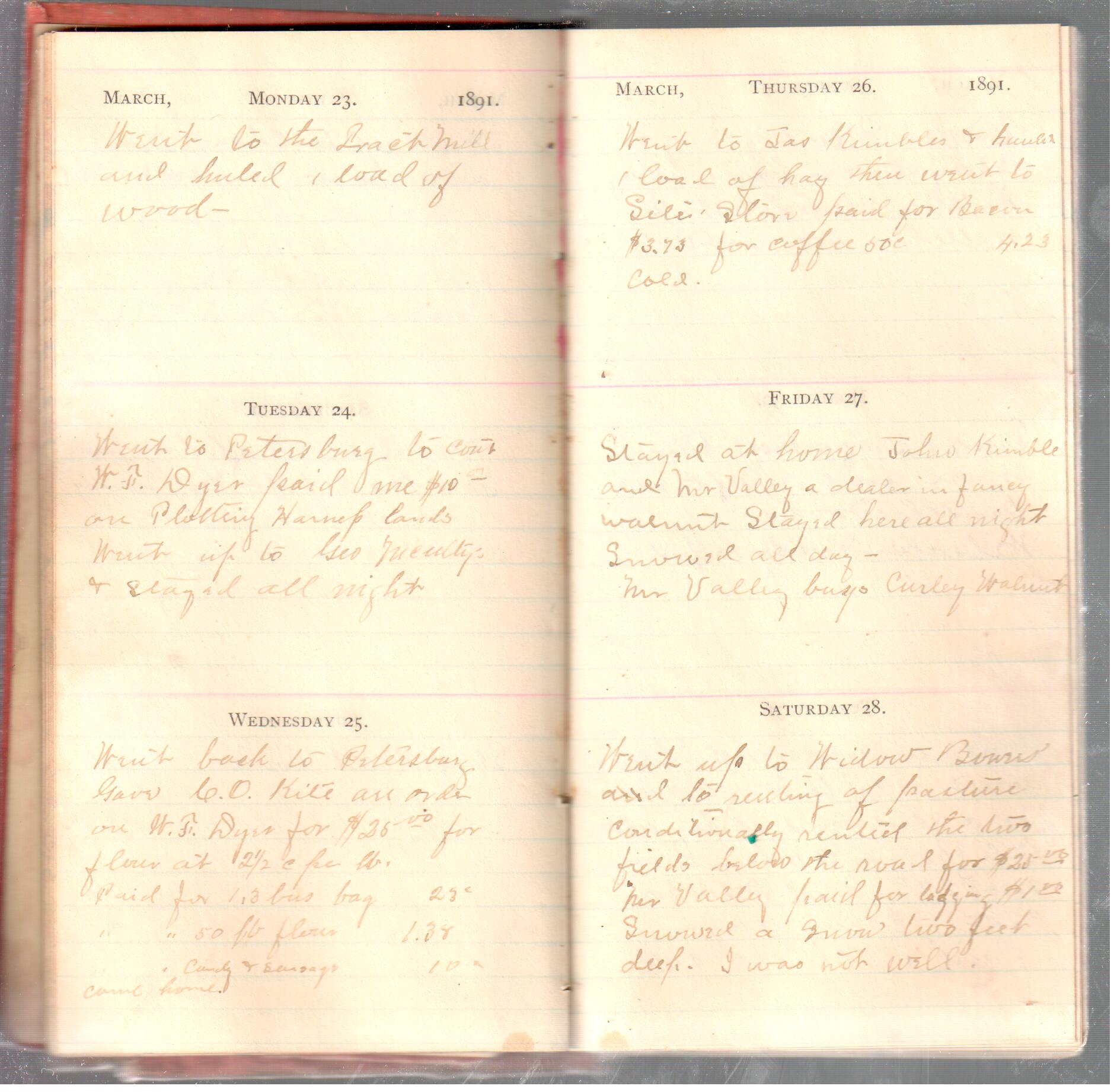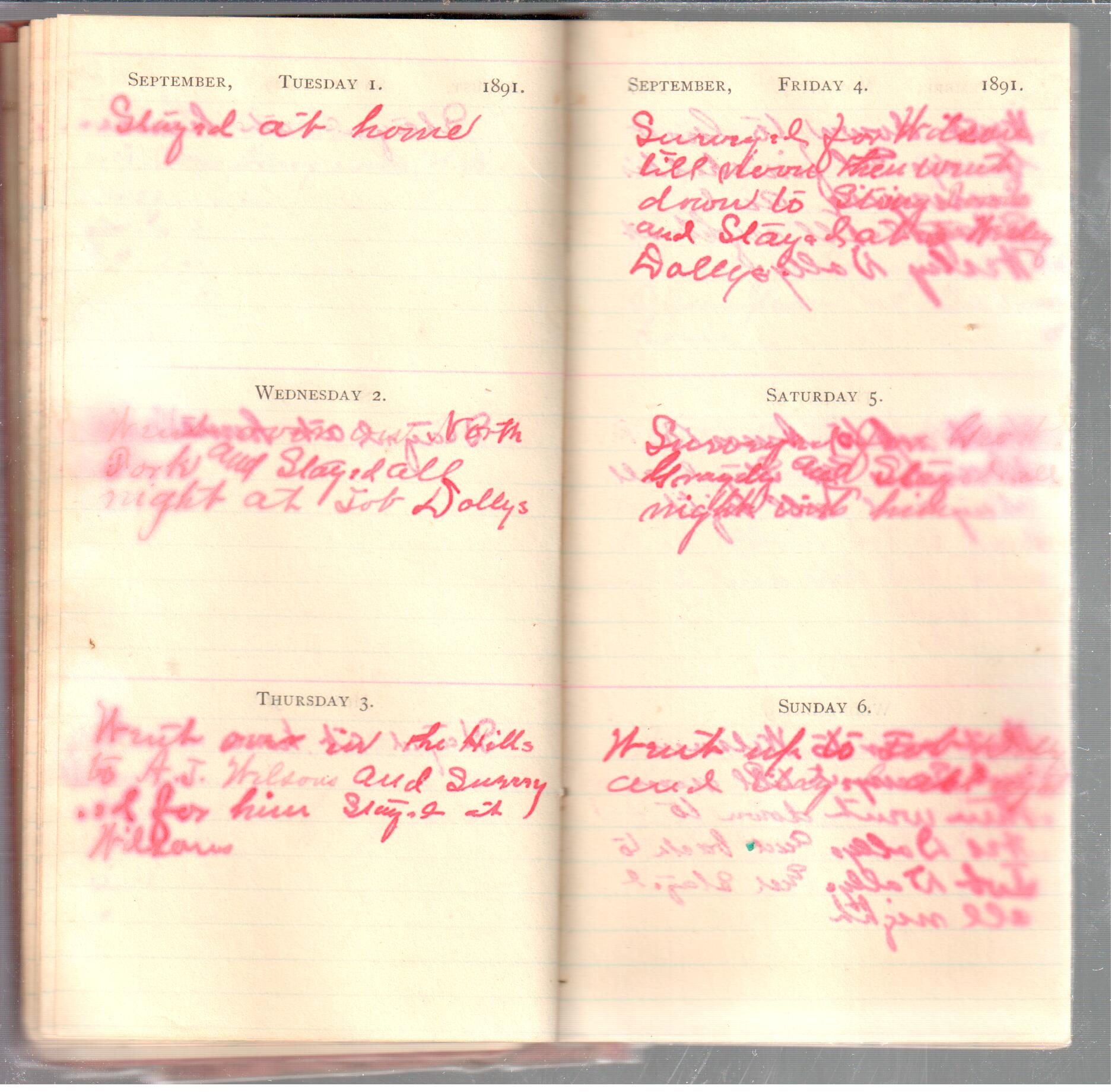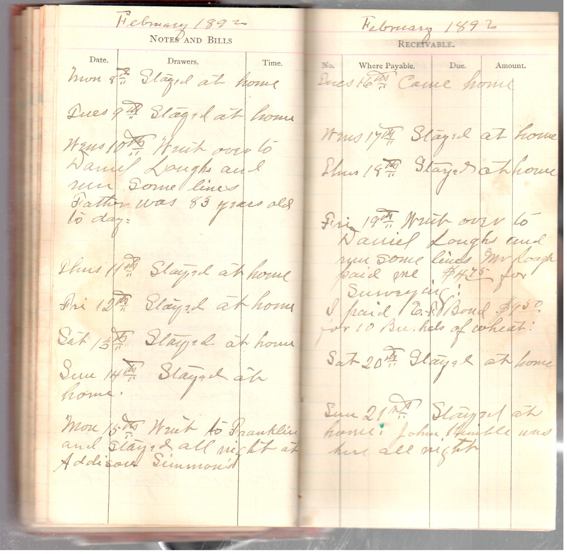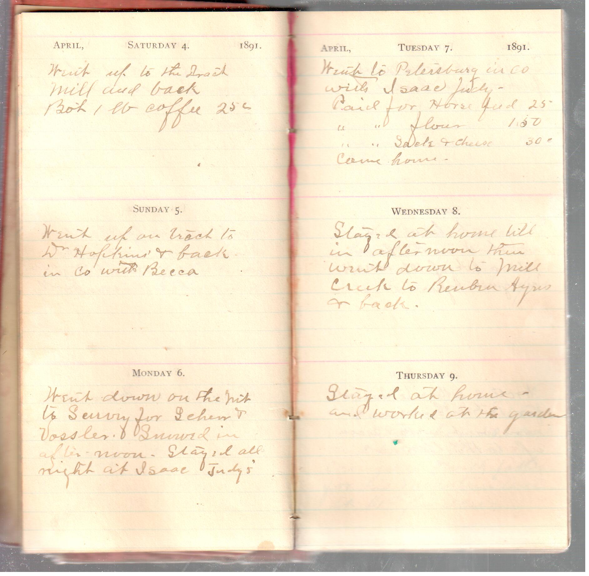 D. A. Landes Diaries: 1891 Use slideshow or see pages individually: Outside covers Pages Frontpiece Pages 1-2 Pages 3-4 Pages 5-6 Pages 6-7 Pages 7-8 Pages 9-10 Pages 11-12 Pages 13-14 Pages 15-16 Pages 17-18 Pages 19-20 Pages 21-22 Pages 23-24 Pages 25-26 Pages 27-28 Pages 29-30 Pages 31-32 Pages 33-34 Pages 35-36 Pages 37-38 Pages 39-40 Pages 41-42 Pages 43-44 Pages 45-46 Pages 47-48 Pages 49-50 Pages 51-52 Pages 53-54 Pages 55-56 Pages 57-58 Pages 59-60 Pages 61-62 Pages 63-64 Pages 65-66 Pages 67-68 Pages 69-70 Pages 71-72 Pages 73-74 Pages 75-76 Pages 77-78 Pages 79-80 Pages 81-82 Pages 83-84 Pages 85-86 Pages 87-88 Pages 89-90 Pages 91-92 Pages 93-94 Pages 95-96 Pages 97-98 Pages 99-100 Pages 101-102 Pages 103-104 Pages 105-106 Pages 107-108 Pages 109-110 Pages 111-112 Pages 113-114 Pages 115-116 Pages 117-118 Pages 119-120 Pages 121-122 Pages 123-124 Pages 125-126 Pages 127-128 Pages 129-130