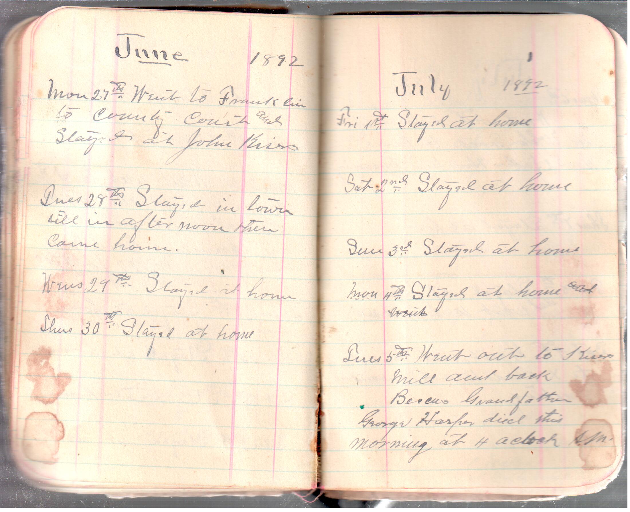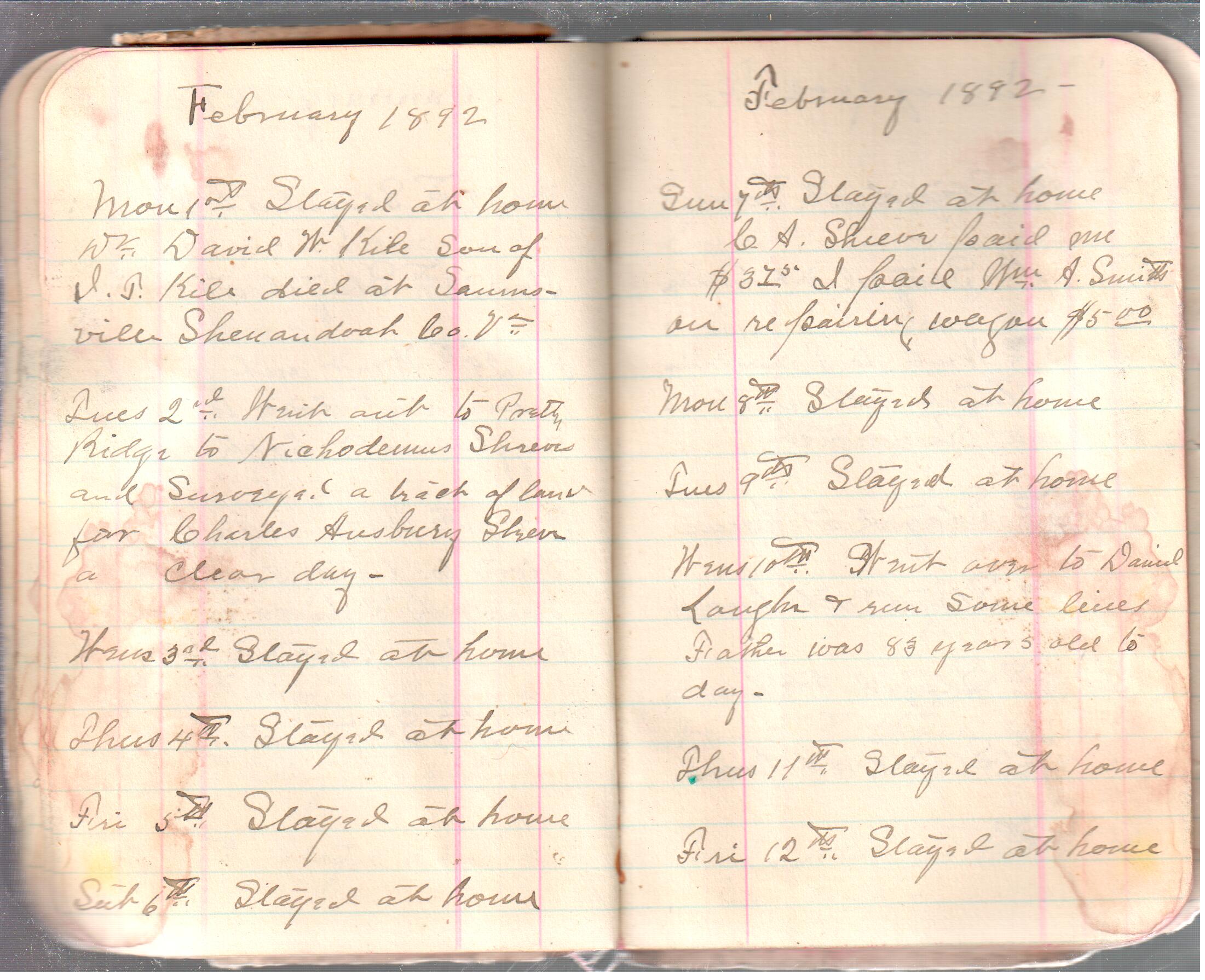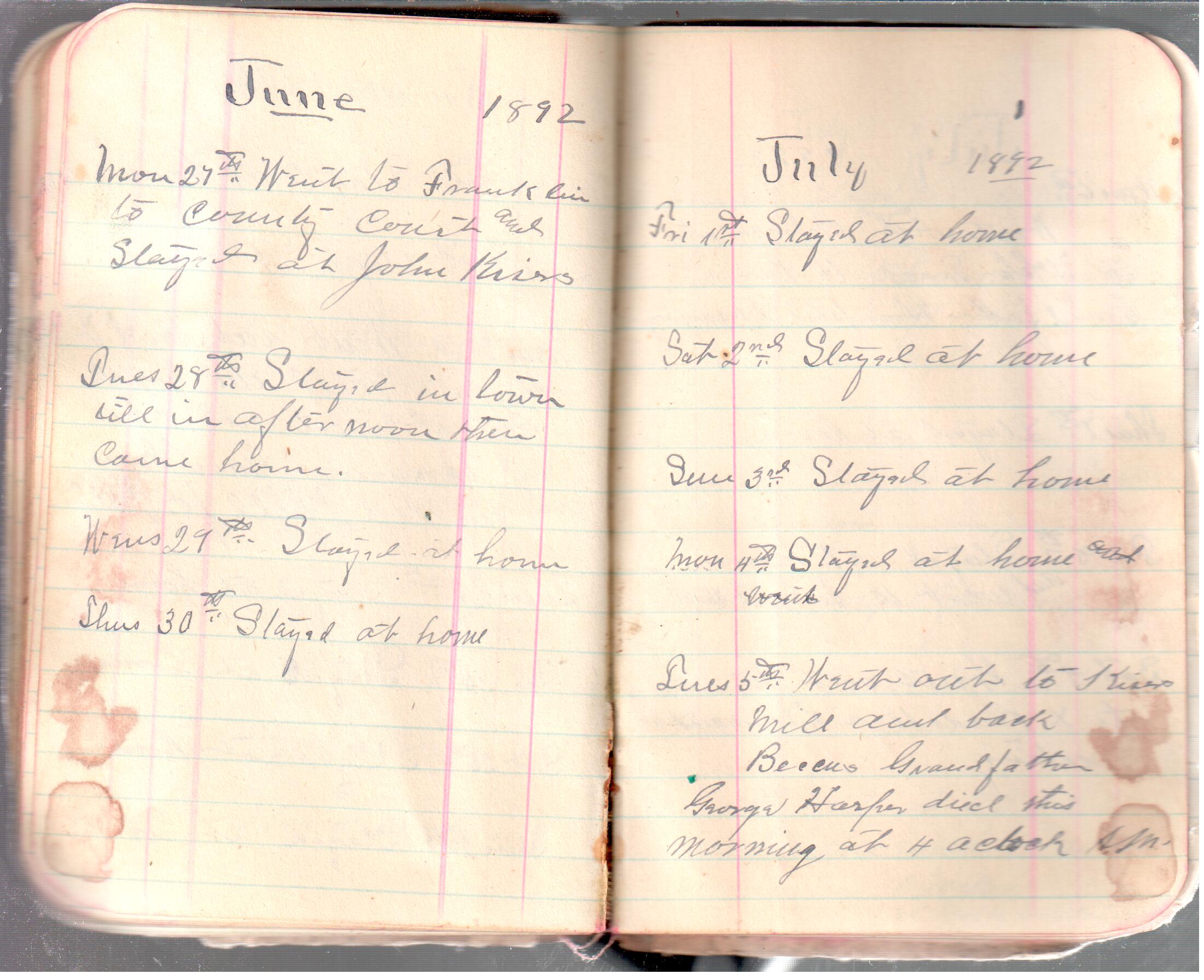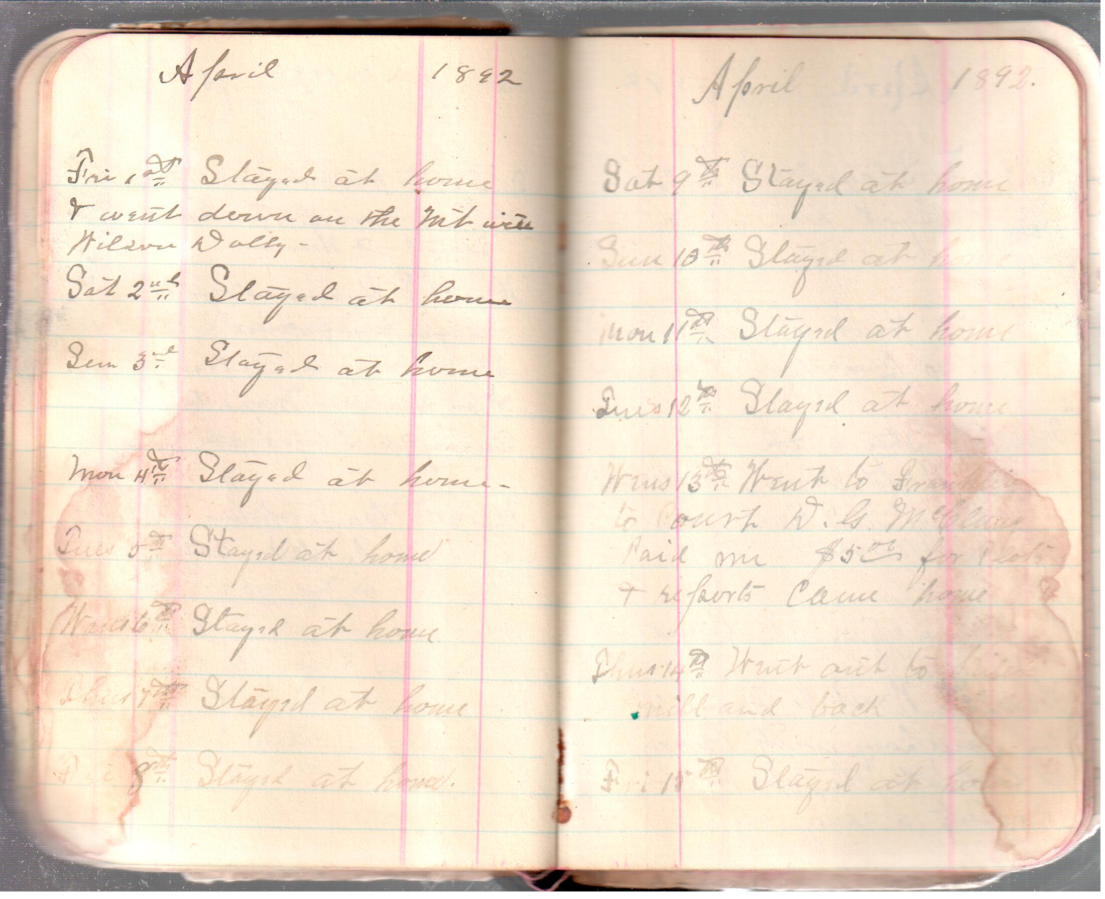 D. A. Landes Diaries: 1892 Use slideshow or see pages individually: Outside covers ABCD Index Pages 0-1 Pages 2-3 Pages 4-5 Pages 6-7 Pages 8-9 Pages 10-11 Pages 12-13 Pages 14-15 Pages 16-17 Pages 18-19 Pages 20-21 Pages 22-23 Pages 24-25 Pages 26-27 Pages 28-29 Pages 30-31 Pages 32-33 Pages 34-35 Pages 36-37 Pages 38-39 Pages 40-41 Pages 42-43 Pages 44-45 Pages 46-47 Pages 48-49 Pages 50-51 Pages 52-53 Pages 54-55 Pages 56-57 Pages 58-59 Pages 60-61 Pages 61-62 Pages 62-63 Pages 64-65 Pages 66-67 Pages 68-69 Pages 70-71 Pages 72-73 Pages 74-75 Pages 76-77 Inside back A receipt