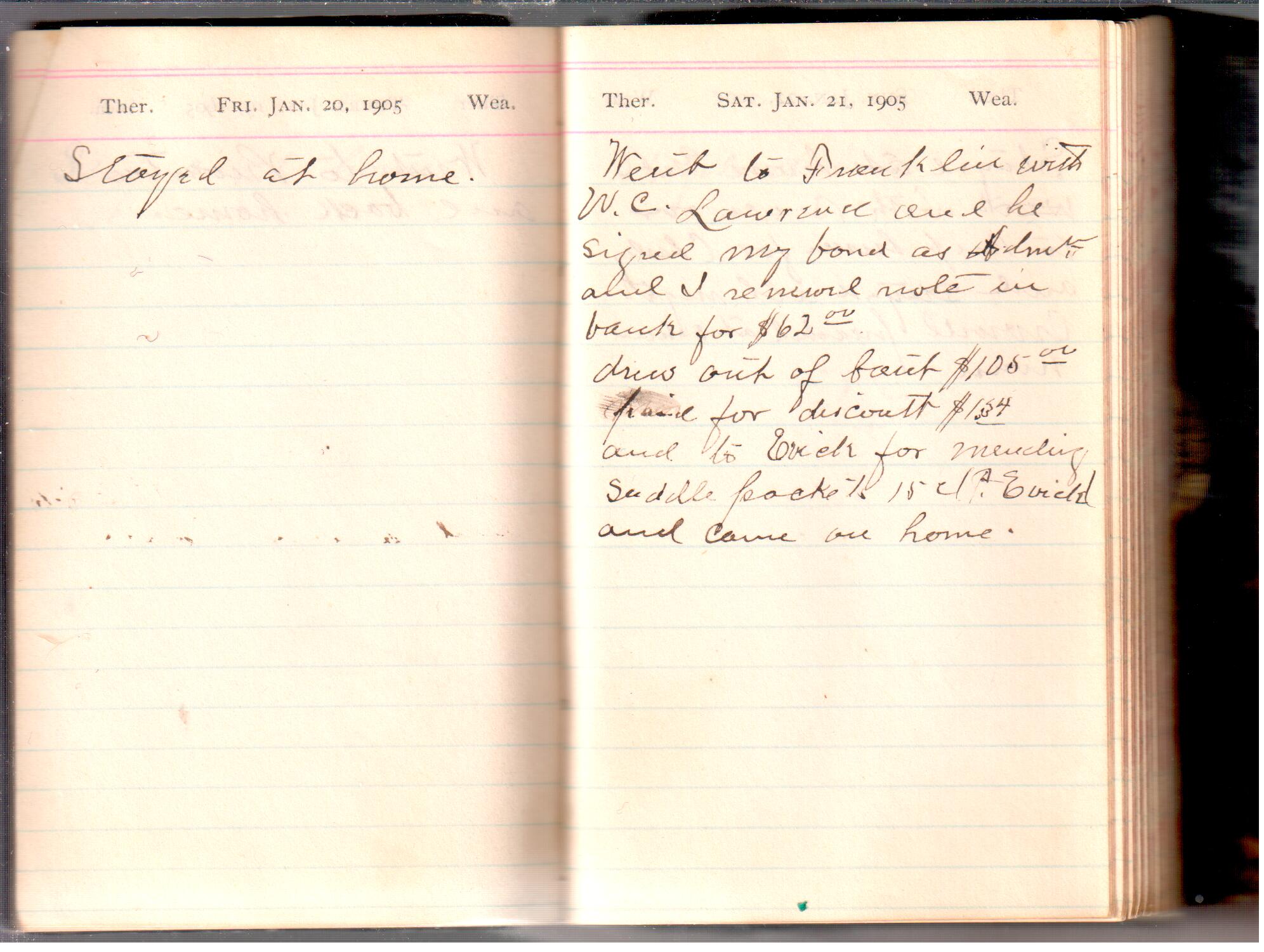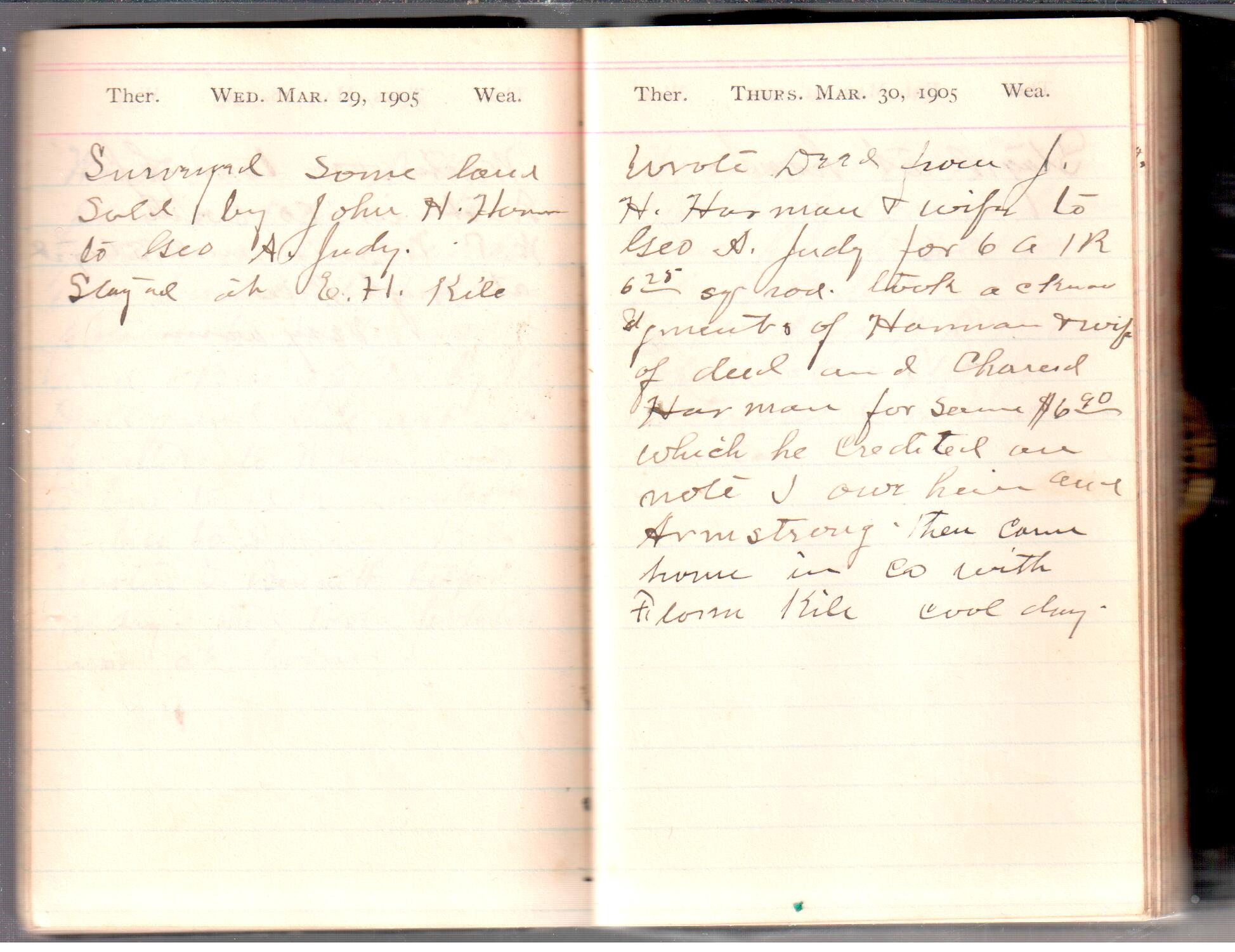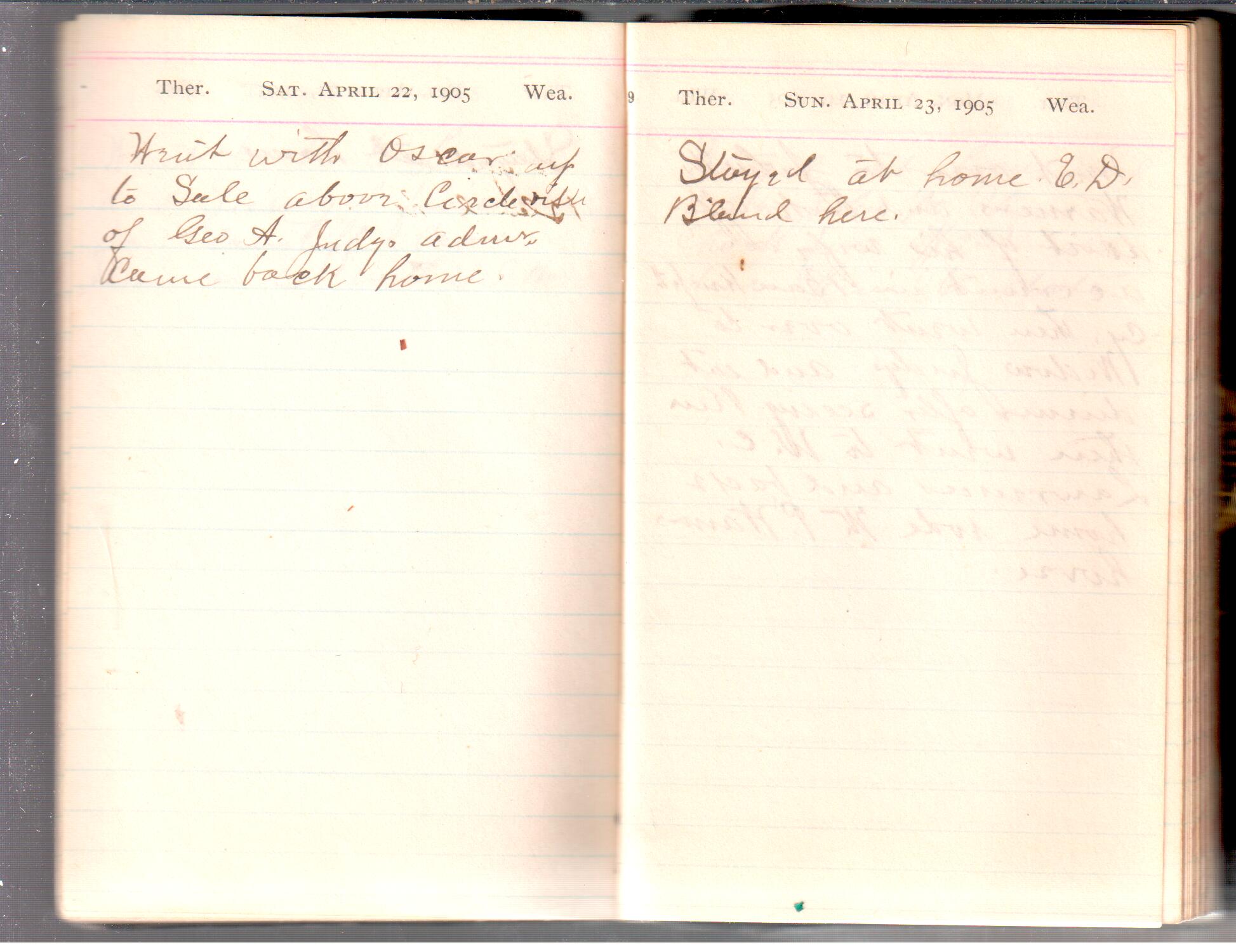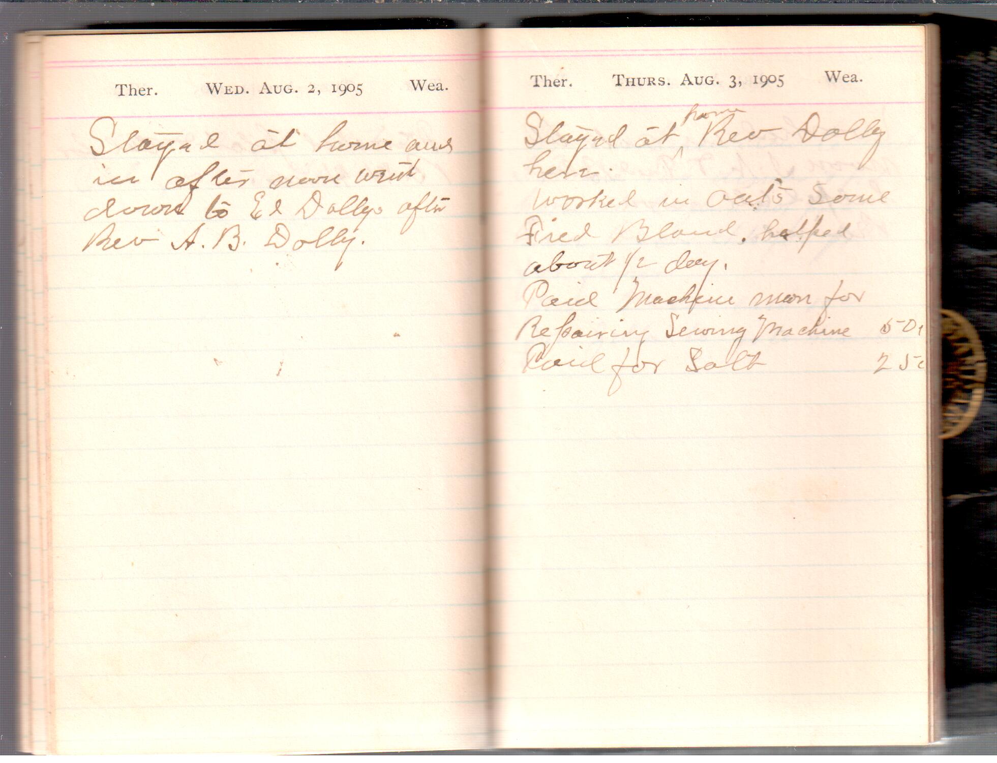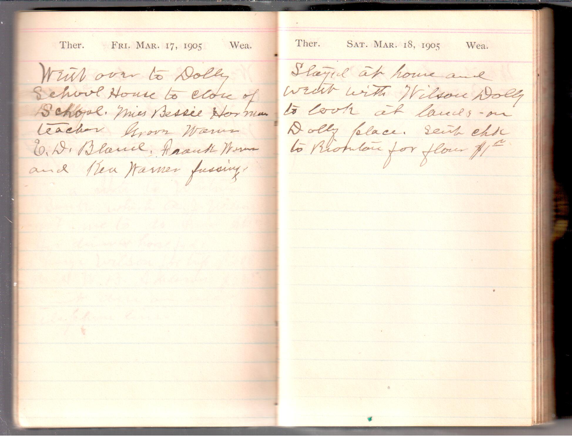 D. A. Landes Diaries: 1905 There are no entries for January 1 - January 11, 1905 Use slideshow or see pages individually: Pages 0-0 Pages 0-1 Pages 0-2 Pages 1-2 Pages 2-3 Pages 4-5 Pages 6-7 Pages 9-10 Pages 11-12 Pages 13-14 Pages 15-16 Pages 17-18 Pages 19-20 Pages 21-22 Pages 23-24 Pages 25-26 Pages 27-28 Pages 29-30 Pages 31-32 Pages 33-34 Pages 35-36 Pages 37-38 Pages 39-40 Pages 41-42 Pages 43-44 Pages 45-46 Pages 47-48 Pages 49-50 Pages 51-52 Pages 53-54 Pages 55-56 Pages 57-58 Pages 59-60 Pages 61-62 Pages 63-64 Pages 65-66 Pages 66-67 Pages 67-68 Pages 69-70 Pages 71-72 Pages 73-74 Pages 75-76 Pages 77-78 Pages 79-80 Pages 81-82 Pages 83-84 Pages 85-86 Pages 87-88 Pages 89-90 Pages 91-92 Pages 93-94 Pages 95-96 Pages 97-98 Pages 99-100 Pages 101-102 Pages 103-104 Pages 105-106 Pages 107-108 Pages 109-110 Pages 111-112 Pages 113-114 Pages 115-116 Pages 117-118 Pages 119-120 Pages 121-122 Pages 123-124 Pages 125-126 Pages 127-128 Pages 129-130 Pages 131-132 Pages 133-134 Pages 135-136 Pages 137-138 Pages 139-140 Pages 141-142 Pages 143-144 Pages 145-146 Pages 147-148 Pages 149-150 Pages 151-152 Pages 152-153 Pages 153-154 Pages 155-156 Pages 157-158 Pages 159-160 Pages 161-162 Pages 163-164 Pages 165-166 Pages 167-168 Pages 169-170 Pages 171-172 Pages 173-174 Pages 175-176 Pages 177-178 Pages 179-180 Pages 181-182 Pages 183-184 Pages 185-186 Pages 187-188 Pages 189-190 Pages 191-192 Pages 193-194 Pages 195-196 Pages 197-198 Pages 199-200 Pages 201-202 Pages 203-204 Pages 205-206 Pages 207-208 Pages 209-210 Pages 211-212 Pages 213-214 Pages 215-216 Pages 217-218 Pages 219-220 Pages 221-222 Pages 223-224 Pages 225-226 Pages 227-228 Pages 229-230 Pages 231-232 Pages 233-234 Pages 235-236 Pages 237-238 Pages 239-240 Pages 241-242 Pages 243-244 Pages 245-246 Pages 247-248 Pages 249-250 Pages 251-252 Pages 252-253 Pages 253-254 Pages 255-256 Pages 257-258 Pages 259-260 Pages 261-262 Pages 263-264 Pages 265-266 Pages 267-268 Pages 269-270 Pages 271-272 Pages 273-274 Pages 275-276 Pages 277-278 Pages 279-280 Pages 281-282 Pages 283-284 Pages 285-286 Pages 287-288 Pages 289-290 Pages 291-292 Pages 293-294 Pages 295-296 Pages 297-298 Pages 199-200 Pages 301-302 Pages 303-304 Pages 305-306 Pages 307-308 Pages 309-310 Pages 311-312 Pages 313-314 Pages 315-316 Pages 317-318 Pages 319-320 Pages 321-322 Pages 323-324 Pages 325-326 Pages 327-328 Pages 329-330 Pages 331-332 Pages 333-334 Pages 335-336 Pages 337-338 Pages 339-340 Pages 341-342 Pages 343-344 Pages 345-346 Pages 347-348 Pages 349-350 Pages 351-352 Pages 352-353 Pages 353-354 Pages 355-356 Pages 357-358 Pages 359-360 Pages 361-362 Pages 363-364