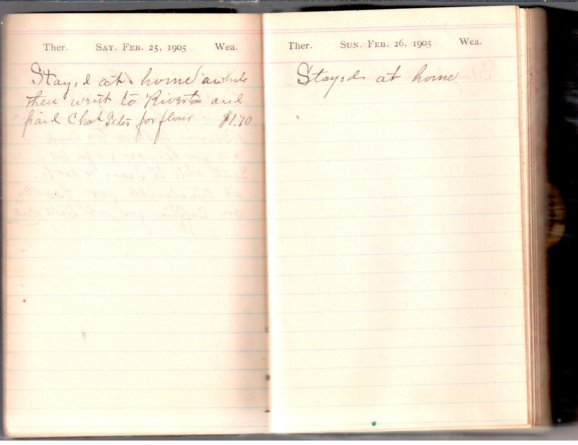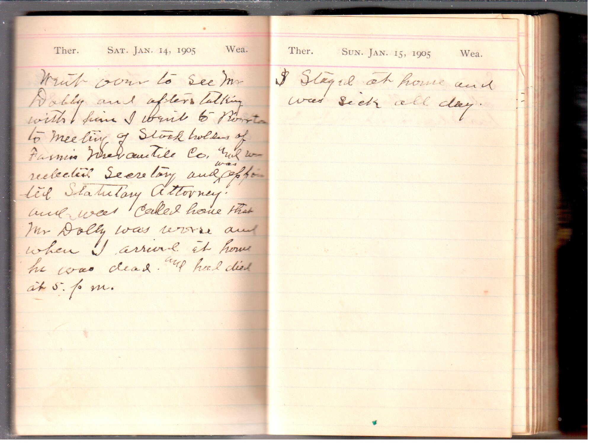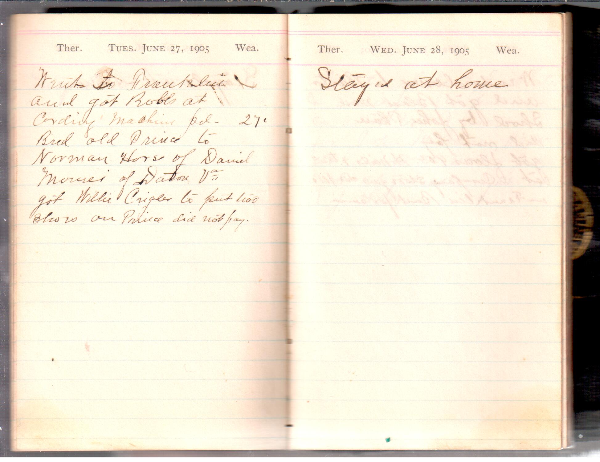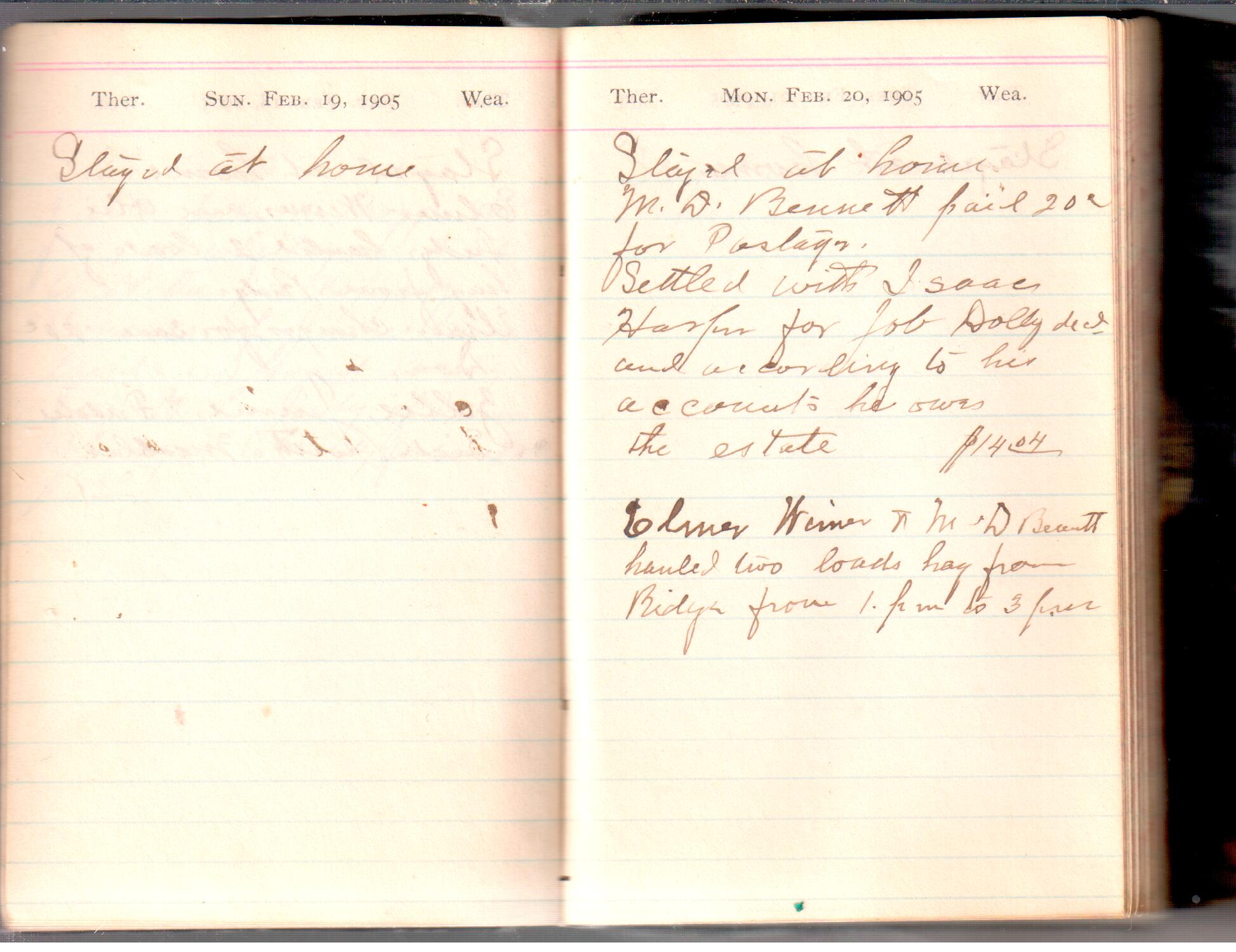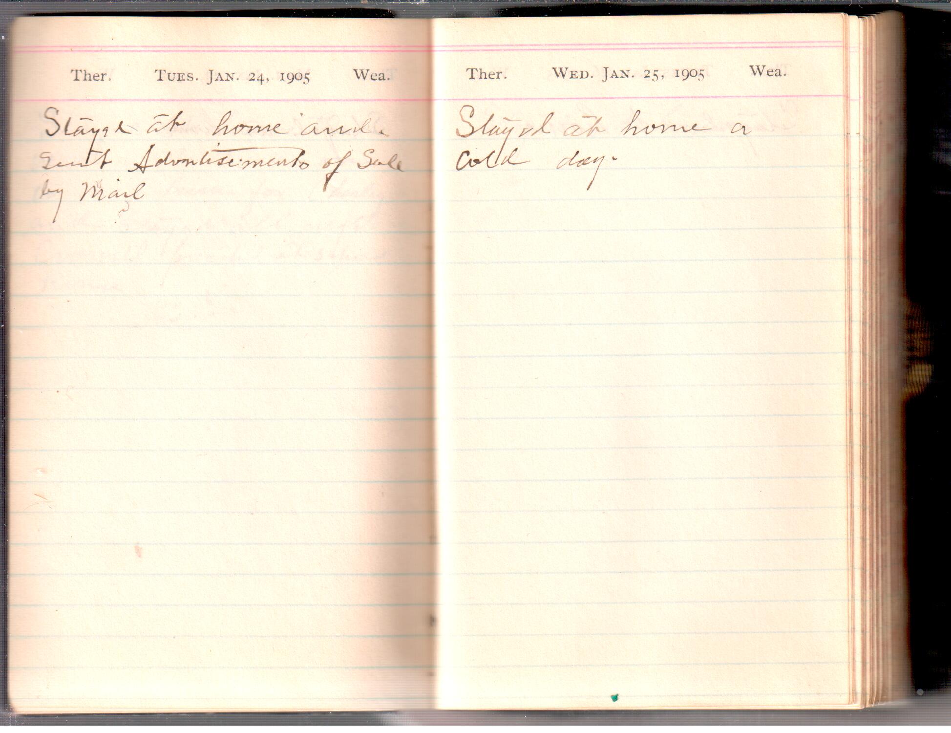 D. A. Landes Diaries: 1905 There are no entries for January 1 - January 11, 1905 Use slideshow or see pages individually: Pages 0-0 Pages 0-1 Pages 0-2 Pages 1-2 Pages 2-3 Pages 4-5 Pages 6-7 Pages 9-10 Pages 11-12 Pages 13-14 Pages 15-16 Pages 17-18 Pages 19-20 Pages 21-22 Pages 23-24 Pages 25-26 Pages 27-28 Pages 29-30 Pages 31-32 Pages 33-34 Pages 35-36 Pages 37-38 Pages 39-40 Pages 41-42 Pages 43-44 Pages 45-46 Pages 47-48 Pages 49-50 Pages 51-52 Pages 53-54 Pages 55-56 Pages 57-58 Pages 59-60 Pages 61-62 Pages 63-64 Pages 65-66 Pages 66-67 Pages 67-68 Pages 69-70 Pages 71-72 Pages 73-74 Pages 75-76 Pages 77-78 Pages 79-80 Pages 81-82 Pages 83-84 Pages 85-86 Pages 87-88 Pages 89-90 Pages 91-92 Pages 93-94 Pages 95-96 Pages 97-98 Pages 99-100 Pages 101-102 Pages 103-104 Pages 105-106 Pages 107-108 Pages 109-110 Pages 111-112 Pages 113-114 Pages 115-116 Pages 117-118 Pages 119-120 Pages 121-122 Pages 123-124 Pages 125-126 Pages 127-128 Pages 129-130 Pages 131-132 Pages 133-134 Pages 135-136 Pages 137-138 Pages 139-140 Pages 141-142 Pages 143-144 Pages 145-146 Pages 147-148 Pages 149-150 Pages 151-152 Pages 152-153 Pages 153-154 Pages 155-156 Pages 157-158 Pages 159-160 Pages 161-162 Pages 163-164 Pages 165-166 Pages 167-168 Pages 169-170 Pages 171-172 Pages 173-174 Pages 175-176 Pages 177-178 Pages 179-180 Pages 181-182 Pages 183-184 Pages 185-186 Pages 187-188 Pages 189-190 Pages 191-192 Pages 193-194 Pages 195-196 Pages 197-198 Pages 199-200 Pages 201-202 Pages 203-204 Pages 205-206 Pages 207-208 Pages 209-210 Pages 211-212 Pages 213-214 Pages 215-216 Pages 217-218 Pages 219-220 Pages 221-222 Pages 223-224 Pages 225-226 Pages 227-228 Pages 229-230 Pages 231-232 Pages 233-234 Pages 235-236 Pages 237-238 Pages 239-240 Pages 241-242 Pages 243-244 Pages 245-246 Pages 247-248 Pages 249-250 Pages 251-252 Pages 252-253 Pages 253-254 Pages 255-256 Pages 257-258 Pages 259-260 Pages 261-262 Pages 263-264 Pages 265-266 Pages 267-268 Pages 269-270 Pages 271-272 Pages 273-274 Pages 275-276 Pages 277-278 Pages 279-280 Pages 281-282 Pages 283-284 Pages 285-286 Pages 287-288 Pages 289-290 Pages 291-292 Pages 293-294 Pages 295-296 Pages 297-298 Pages 199-200 Pages 301-302 Pages 303-304 Pages 305-306 Pages 307-308 Pages 309-310 Pages 311-312 Pages 313-314 Pages 315-316 Pages 317-318 Pages 319-320 Pages 321-322 Pages 323-324 Pages 325-326 Pages 327-328 Pages 329-330 Pages 331-332 Pages 333-334 Pages 335-336 Pages 337-338 Pages 339-340 Pages 341-342 Pages 343-344 Pages 345-346 Pages 347-348 Pages 349-350 Pages 351-352 Pages 352-353 Pages 353-354 Pages 355-356 Pages 357-358 Pages 359-360 Pages 361-362 Pages 363-364