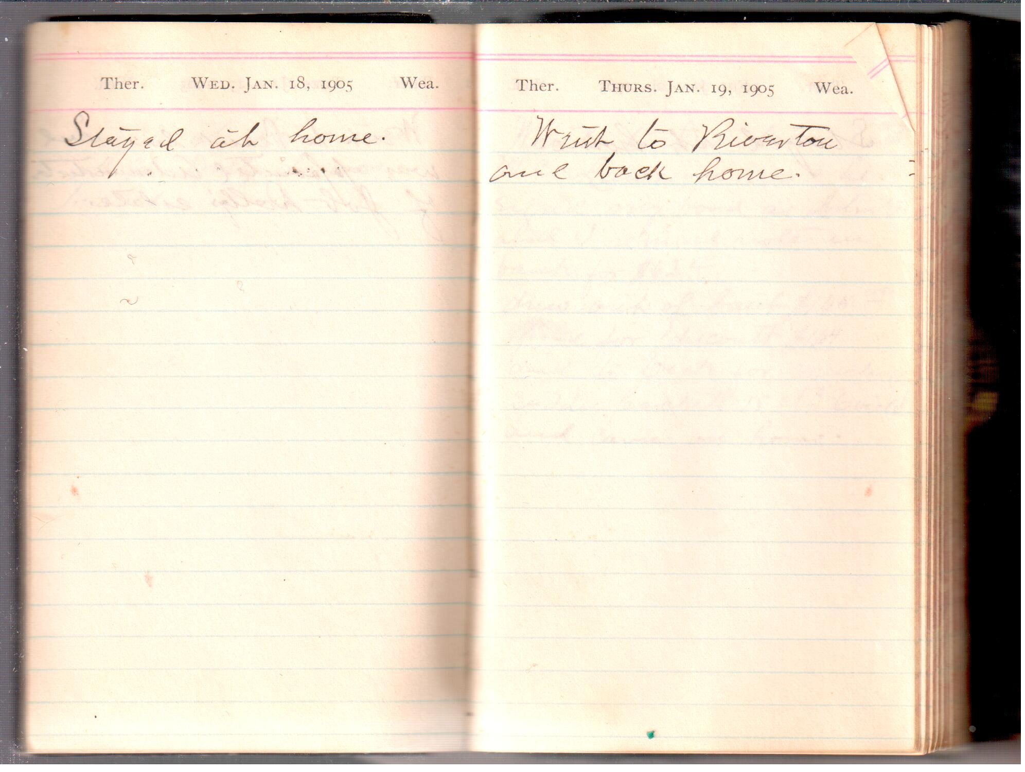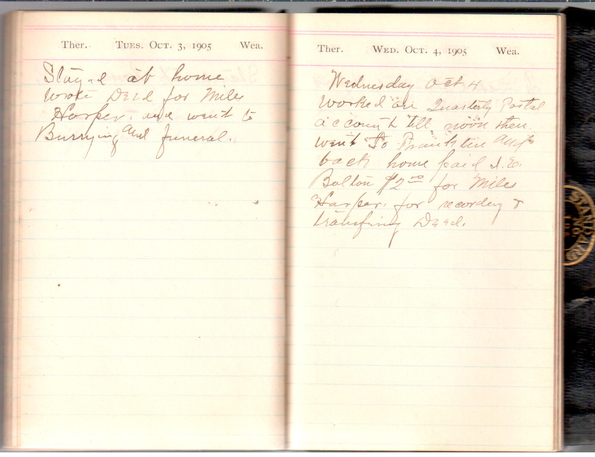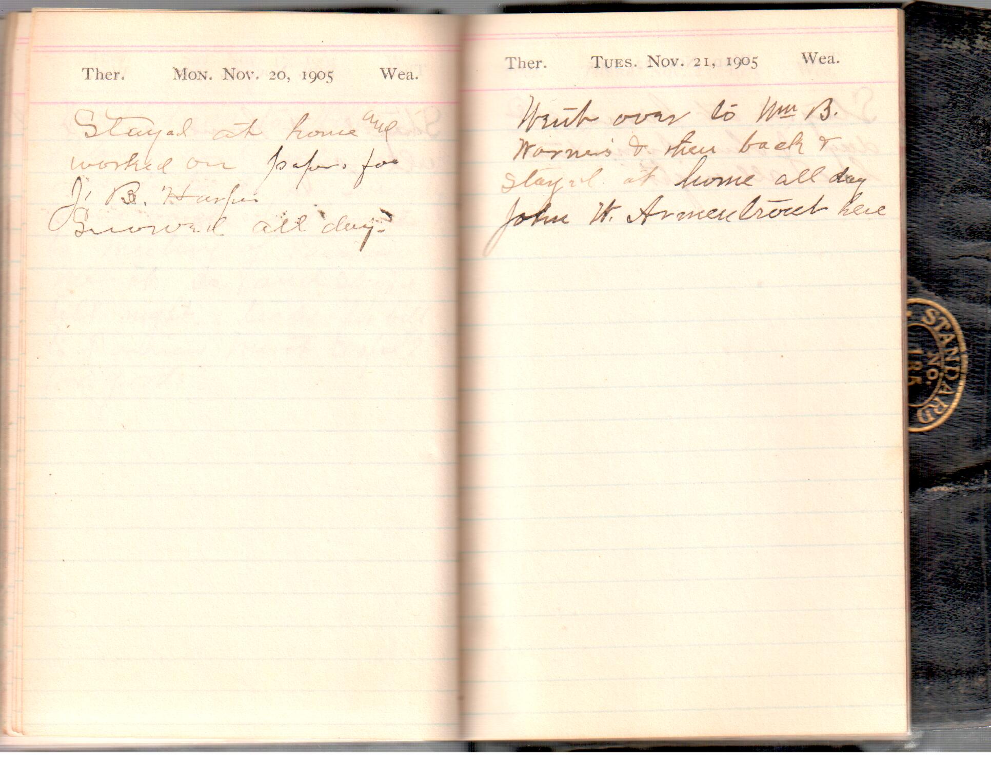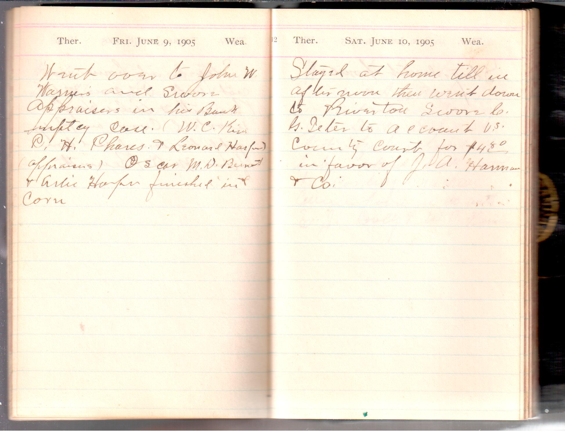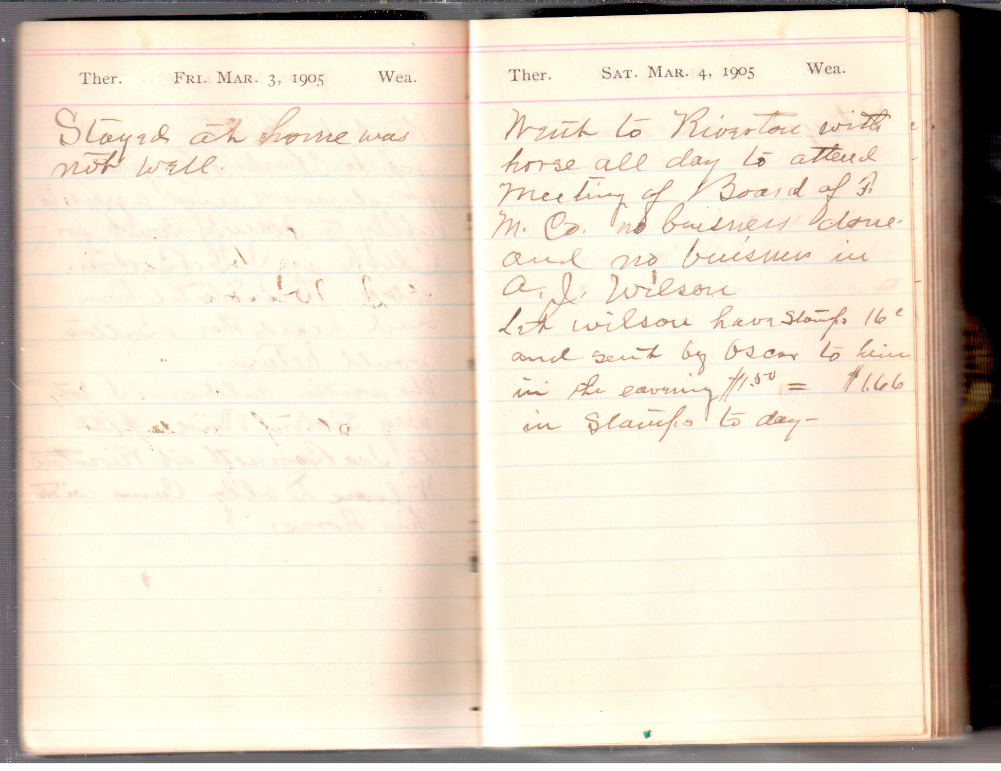 D. A. Landes Diaries: 1905 There are no entries for January 1 - January 11, 1905 Use slideshow or see pages individually: Pages 0-0 Pages 0-1 Pages 0-2 Pages 1-2 Pages 2-3 Pages 4-5 Pages 6-7 Pages 9-10 Pages 11-12 Pages 13-14 Pages 15-16 Pages 17-18 Pages 19-20 Pages 21-22 Pages 23-24 Pages 25-26 Pages 27-28 Pages 29-30 Pages 31-32 Pages 33-34 Pages 35-36 Pages 37-38 Pages 39-40 Pages 41-42 Pages 43-44 Pages 45-46 Pages 47-48 Pages 49-50 Pages 51-52 Pages 53-54 Pages 55-56 Pages 57-58 Pages 59-60 Pages 61-62 Pages 63-64 Pages 65-66 Pages 66-67 Pages 67-68 Pages 69-70 Pages 71-72 Pages 73-74 Pages 75-76 Pages 77-78 Pages 79-80 Pages 81-82 Pages 83-84 Pages 85-86 Pages 87-88 Pages 89-90 Pages 91-92 Pages 93-94 Pages 95-96 Pages 97-98 Pages 99-100 Pages 101-102 Pages 103-104 Pages 105-106 Pages 107-108 Pages 109-110 Pages 111-112 Pages 113-114 Pages 115-116 Pages 117-118 Pages 119-120 Pages 121-122 Pages 123-124 Pages 125-126 Pages 127-128 Pages 129-130 Pages 131-132 Pages 133-134 Pages 135-136 Pages 137-138 Pages 139-140 Pages 141-142 Pages 143-144 Pages 145-146 Pages 147-148 Pages 149-150 Pages 151-152 Pages 152-153 Pages 153-154 Pages 155-156 Pages 157-158 Pages 159-160 Pages 161-162 Pages 163-164 Pages 165-166 Pages 167-168 Pages 169-170 Pages 171-172 Pages 173-174 Pages 175-176 Pages 177-178 Pages 179-180 Pages 181-182 Pages 183-184 Pages 185-186 Pages 187-188 Pages 189-190 Pages 191-192 Pages 193-194 Pages 195-196 Pages 197-198 Pages 199-200 Pages 201-202 Pages 203-204 Pages 205-206 Pages 207-208 Pages 209-210 Pages 211-212 Pages 213-214 Pages 215-216 Pages 217-218 Pages 219-220 Pages 221-222 Pages 223-224 Pages 225-226 Pages 227-228 Pages 229-230 Pages 231-232 Pages 233-234 Pages 235-236 Pages 237-238 Pages 239-240 Pages 241-242 Pages 243-244 Pages 245-246 Pages 247-248 Pages 249-250 Pages 251-252 Pages 252-253 Pages 253-254 Pages 255-256 Pages 257-258 Pages 259-260 Pages 261-262 Pages 263-264 Pages 265-266 Pages 267-268 Pages 269-270 Pages 271-272 Pages 273-274 Pages 275-276 Pages 277-278 Pages 279-280 Pages 281-282 Pages 283-284 Pages 285-286 Pages 287-288 Pages 289-290 Pages 291-292 Pages 293-294 Pages 295-296 Pages 297-298 Pages 199-200 Pages 301-302 Pages 303-304 Pages 305-306 Pages 307-308 Pages 309-310 Pages 311-312 Pages 313-314 Pages 315-316 Pages 317-318 Pages 319-320 Pages 321-322 Pages 323-324 Pages 325-326 Pages 327-328 Pages 329-330 Pages 331-332 Pages 333-334 Pages 335-336 Pages 337-338 Pages 339-340 Pages 341-342 Pages 343-344 Pages 345-346 Pages 347-348 Pages 349-350 Pages 351-352 Pages 352-353 Pages 353-354 Pages 355-356 Pages 357-358 Pages 359-360 Pages 361-362 Pages 363-364