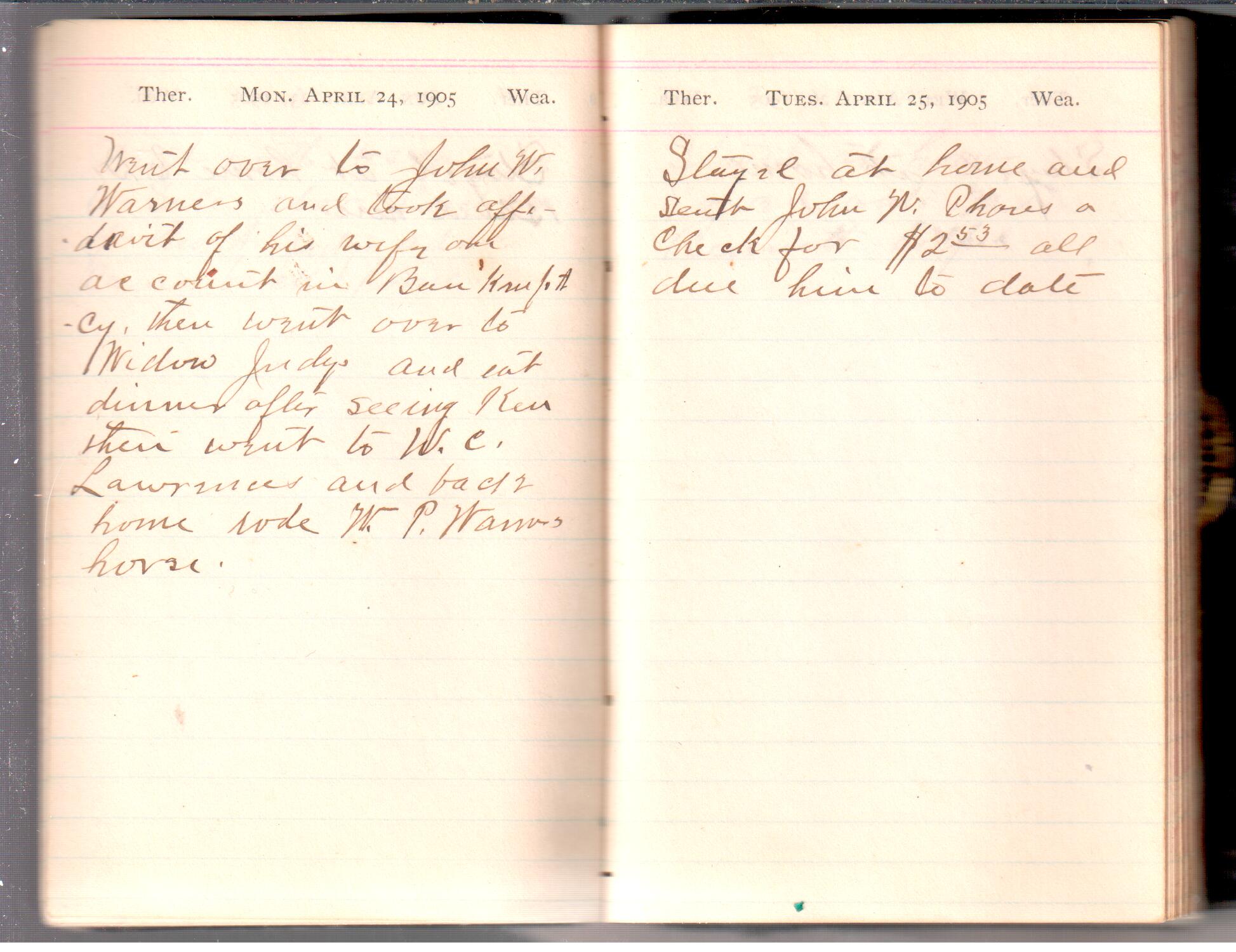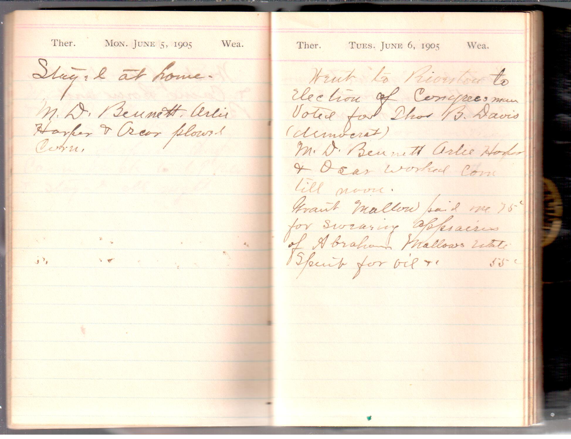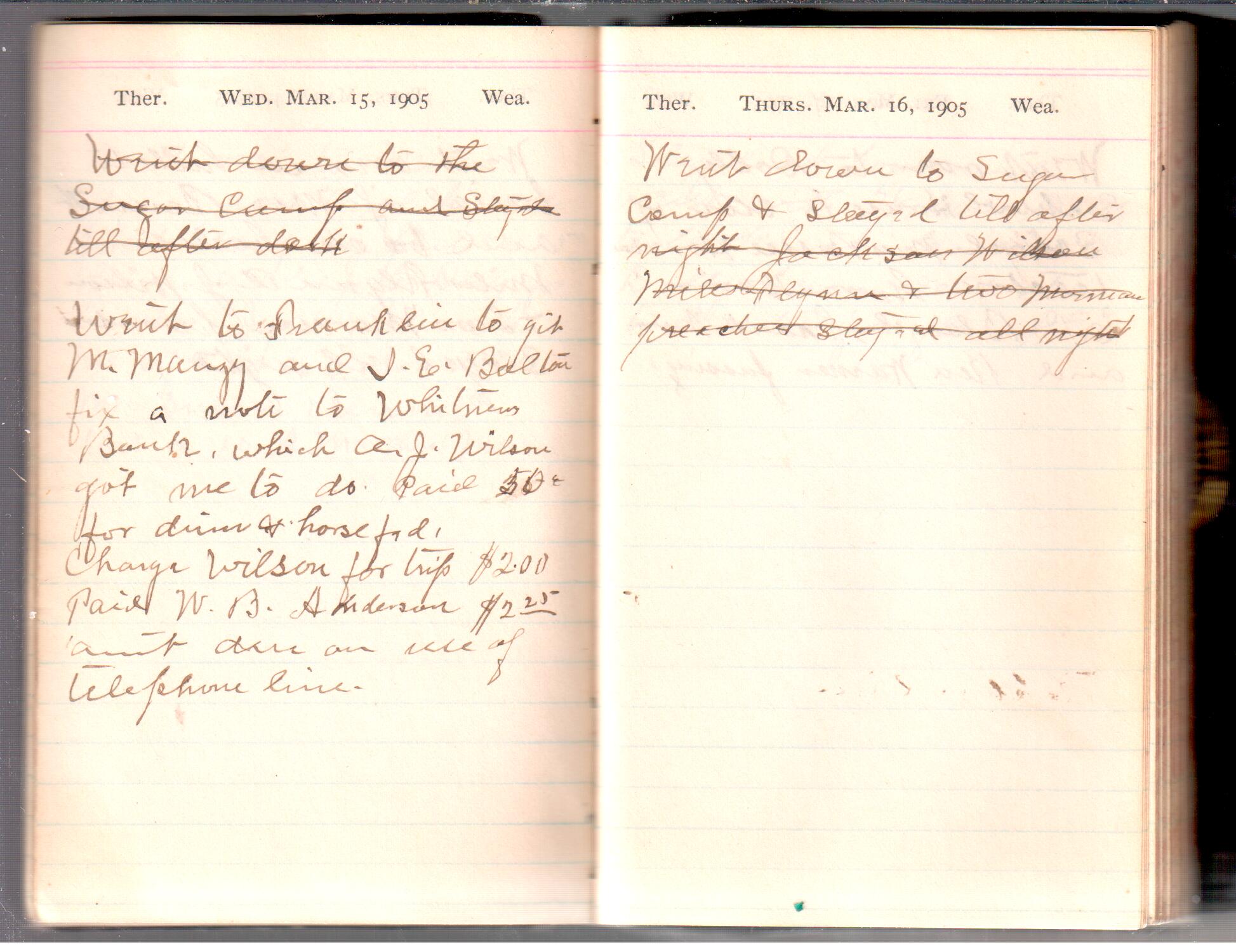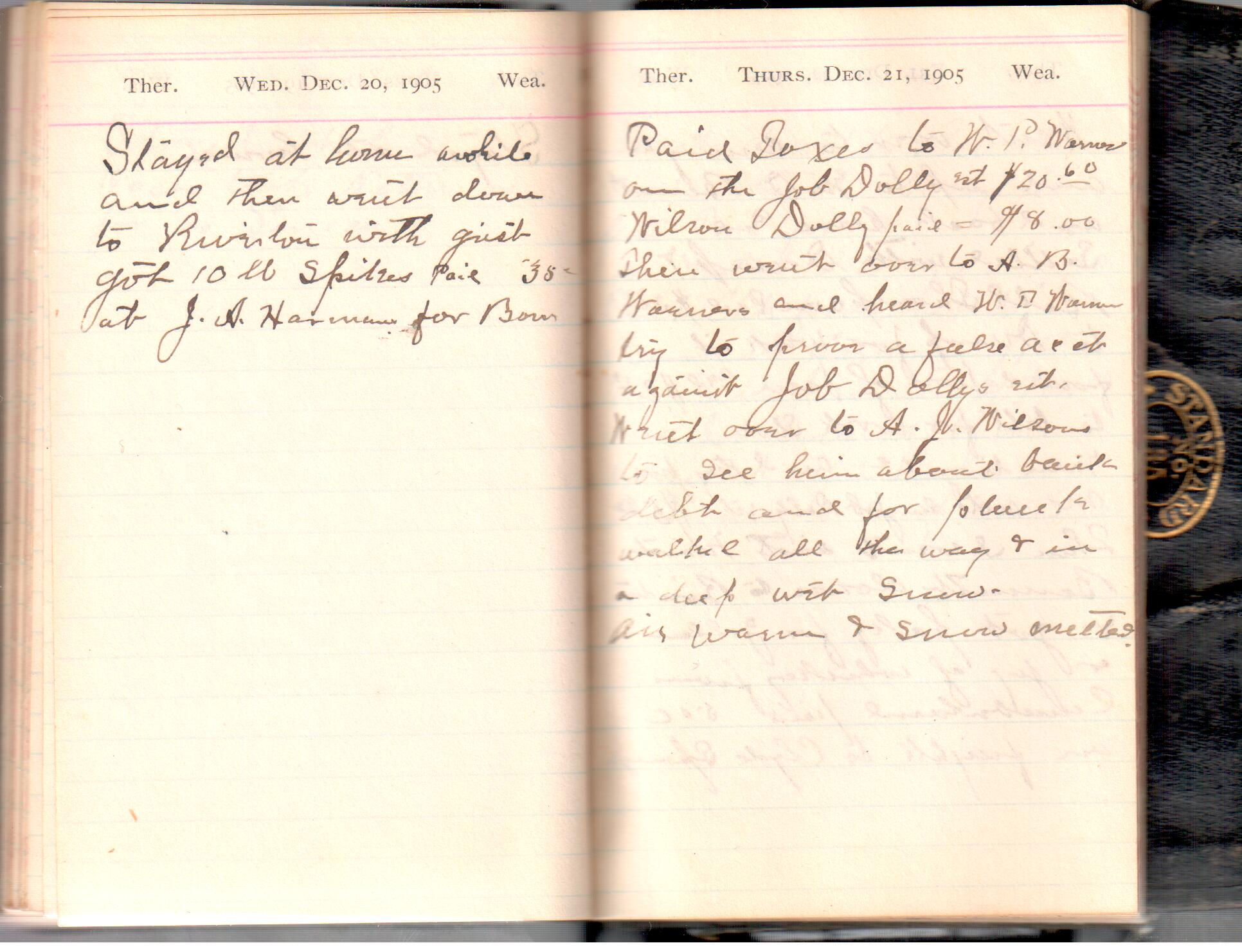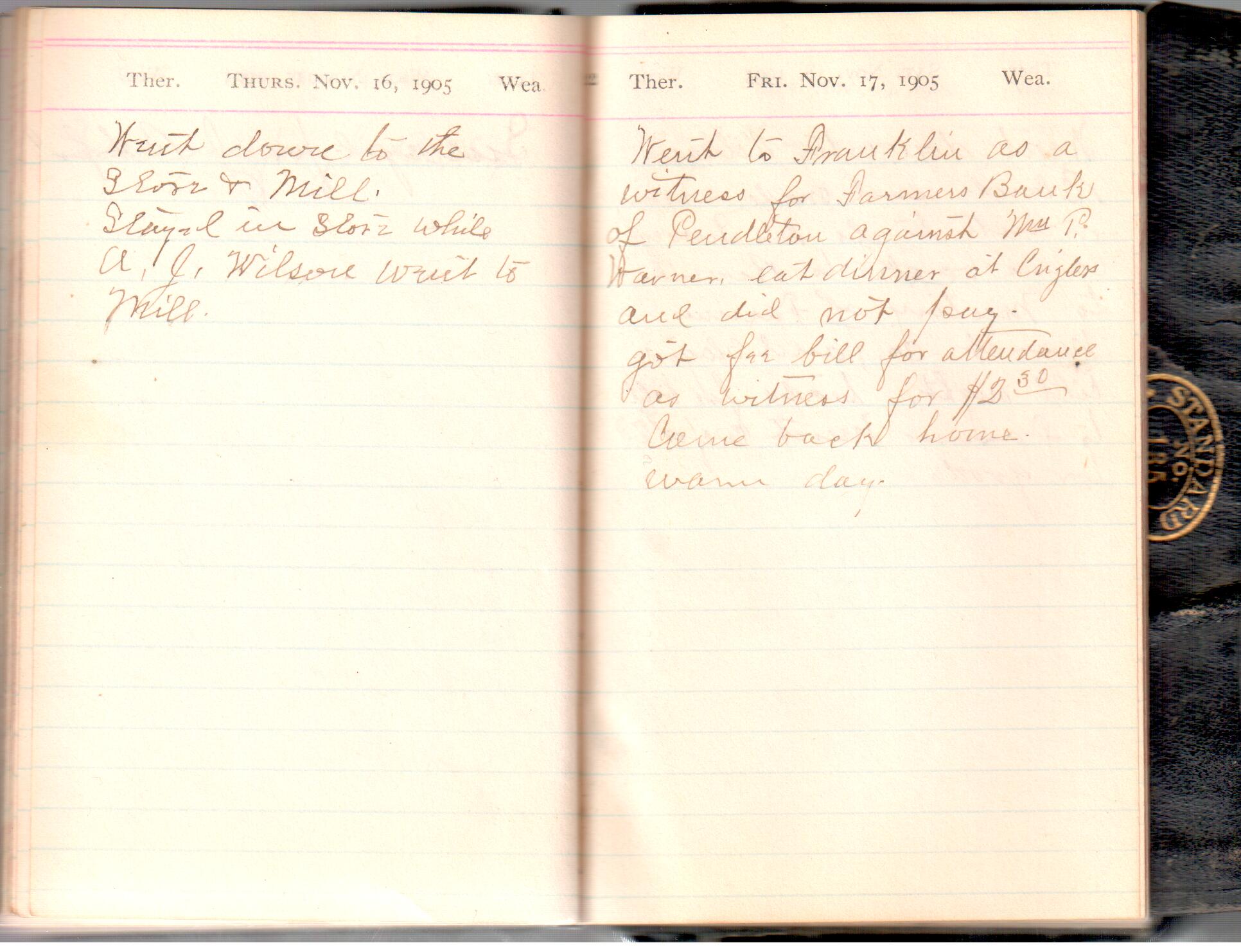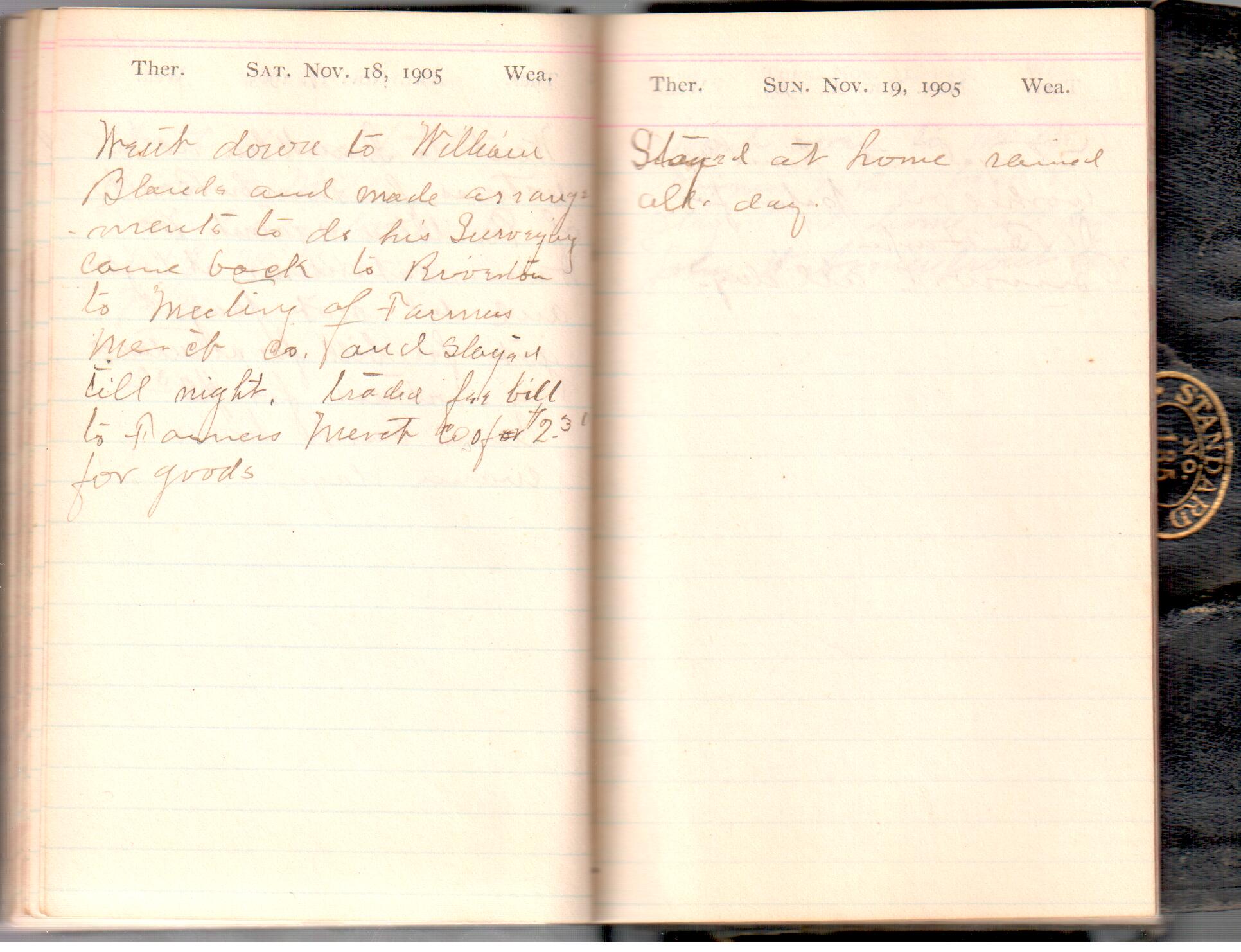 D. A. Landes Diaries: 1905 There are no entries for January 1 - January 11, 1905 Use slideshow or see pages individually: Pages 0-0 Pages 0-1 Pages 0-2 Pages 1-2 Pages 2-3 Pages 4-5 Pages 6-7 Pages 9-10 Pages 11-12 Pages 13-14 Pages 15-16 Pages 17-18 Pages 19-20 Pages 21-22 Pages 23-24 Pages 25-26 Pages 27-28 Pages 29-30 Pages 31-32 Pages 33-34 Pages 35-36 Pages 37-38 Pages 39-40 Pages 41-42 Pages 43-44 Pages 45-46 Pages 47-48 Pages 49-50 Pages 51-52 Pages 53-54 Pages 55-56 Pages 57-58 Pages 59-60 Pages 61-62 Pages 63-64 Pages 65-66 Pages 66-67 Pages 67-68 Pages 69-70 Pages 71-72 Pages 73-74 Pages 75-76 Pages 77-78 Pages 79-80 Pages 81-82 Pages 83-84 Pages 85-86 Pages 87-88 Pages 89-90 Pages 91-92 Pages 93-94 Pages 95-96 Pages 97-98 Pages 99-100 Pages 101-102 Pages 103-104 Pages 105-106 Pages 107-108 Pages 109-110 Pages 111-112 Pages 113-114 Pages 115-116 Pages 117-118 Pages 119-120 Pages 121-122 Pages 123-124 Pages 125-126 Pages 127-128 Pages 129-130 Pages 131-132 Pages 133-134 Pages 135-136 Pages 137-138 Pages 139-140 Pages 141-142 Pages 143-144 Pages 145-146 Pages 147-148 Pages 149-150 Pages 151-152 Pages 152-153 Pages 153-154 Pages 155-156 Pages 157-158 Pages 159-160 Pages 161-162 Pages 163-164 Pages 165-166 Pages 167-168 Pages 169-170 Pages 171-172 Pages 173-174 Pages 175-176 Pages 177-178 Pages 179-180 Pages 181-182 Pages 183-184 Pages 185-186 Pages 187-188 Pages 189-190 Pages 191-192 Pages 193-194 Pages 195-196 Pages 197-198 Pages 199-200 Pages 201-202 Pages 203-204 Pages 205-206 Pages 207-208 Pages 209-210 Pages 211-212 Pages 213-214 Pages 215-216 Pages 217-218 Pages 219-220 Pages 221-222 Pages 223-224 Pages 225-226 Pages 227-228 Pages 229-230 Pages 231-232 Pages 233-234 Pages 235-236 Pages 237-238 Pages 239-240 Pages 241-242 Pages 243-244 Pages 245-246 Pages 247-248 Pages 249-250 Pages 251-252 Pages 252-253 Pages 253-254 Pages 255-256 Pages 257-258 Pages 259-260 Pages 261-262 Pages 263-264 Pages 265-266 Pages 267-268 Pages 269-270 Pages 271-272 Pages 273-274 Pages 275-276 Pages 277-278 Pages 279-280 Pages 281-282 Pages 283-284 Pages 285-286 Pages 287-288 Pages 289-290 Pages 291-292 Pages 293-294 Pages 295-296 Pages 297-298 Pages 199-200 Pages 301-302 Pages 303-304 Pages 305-306 Pages 307-308 Pages 309-310 Pages 311-312 Pages 313-314 Pages 315-316 Pages 317-318 Pages 319-320 Pages 321-322 Pages 323-324 Pages 325-326 Pages 327-328 Pages 329-330 Pages 331-332 Pages 333-334 Pages 335-336 Pages 337-338 Pages 339-340 Pages 341-342 Pages 343-344 Pages 345-346 Pages 347-348 Pages 349-350 Pages 351-352 Pages 352-353 Pages 353-354 Pages 355-356 Pages 357-358 Pages 359-360 Pages 361-362 Pages 363-364