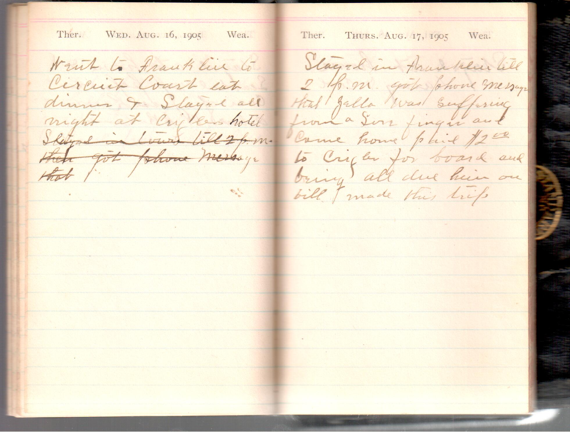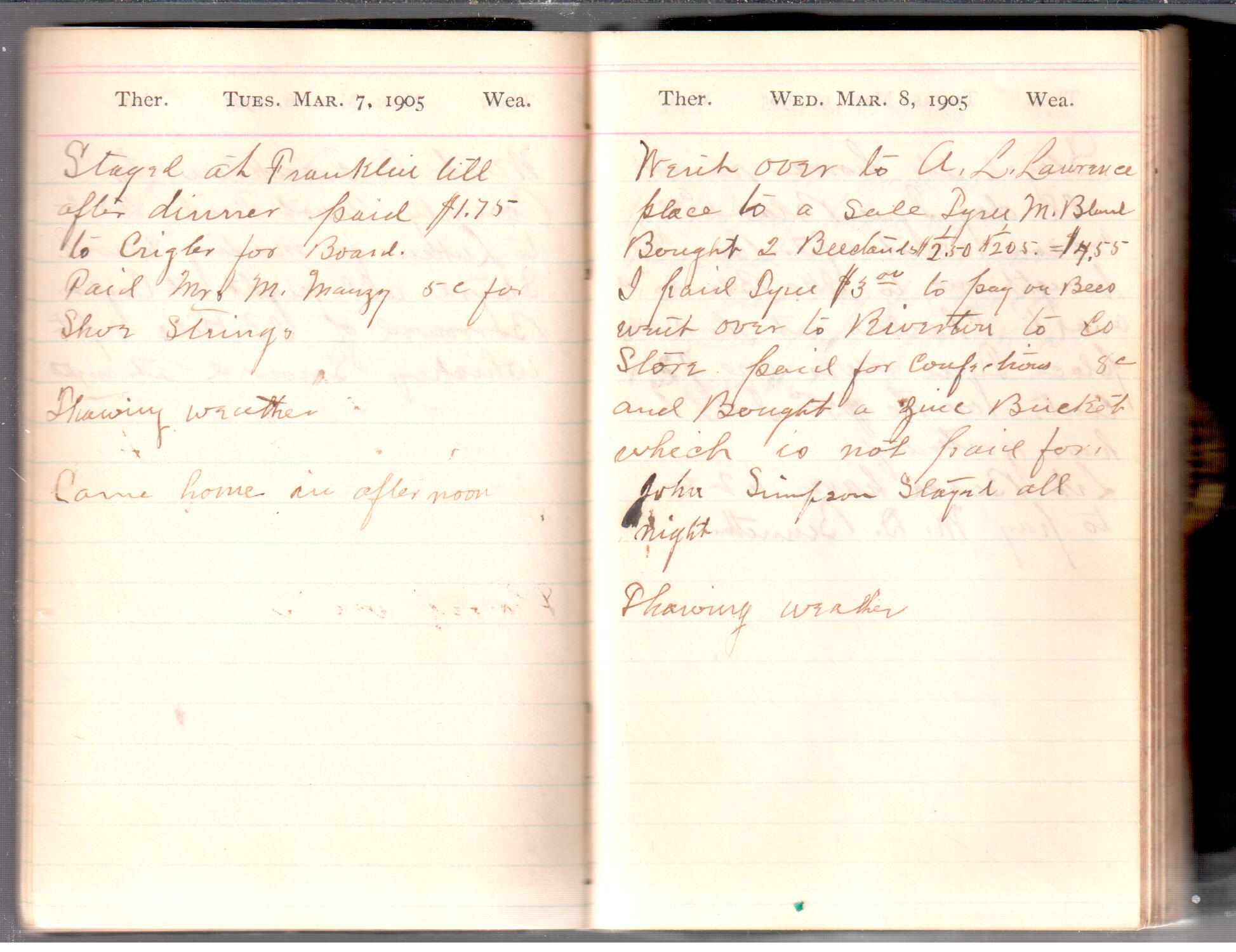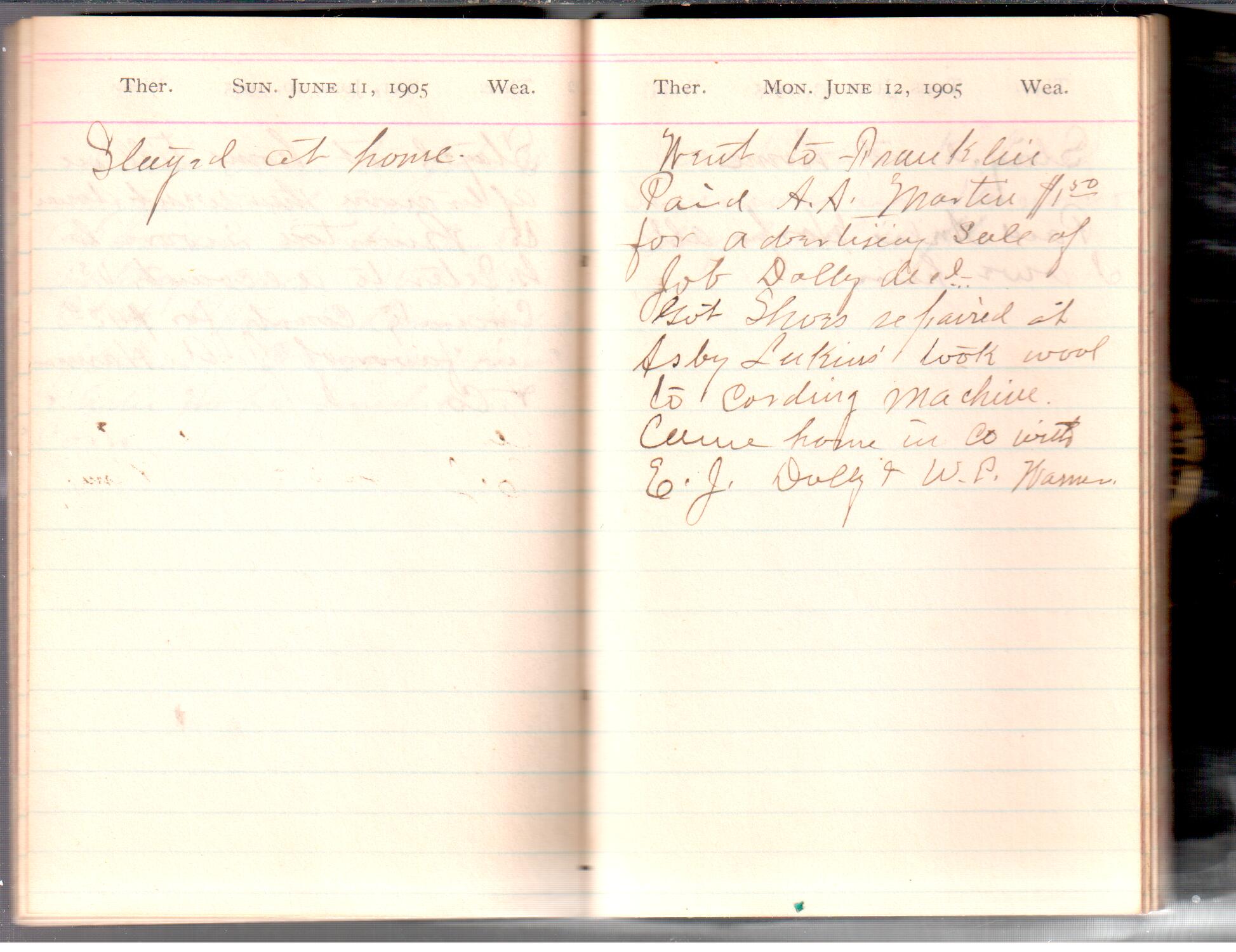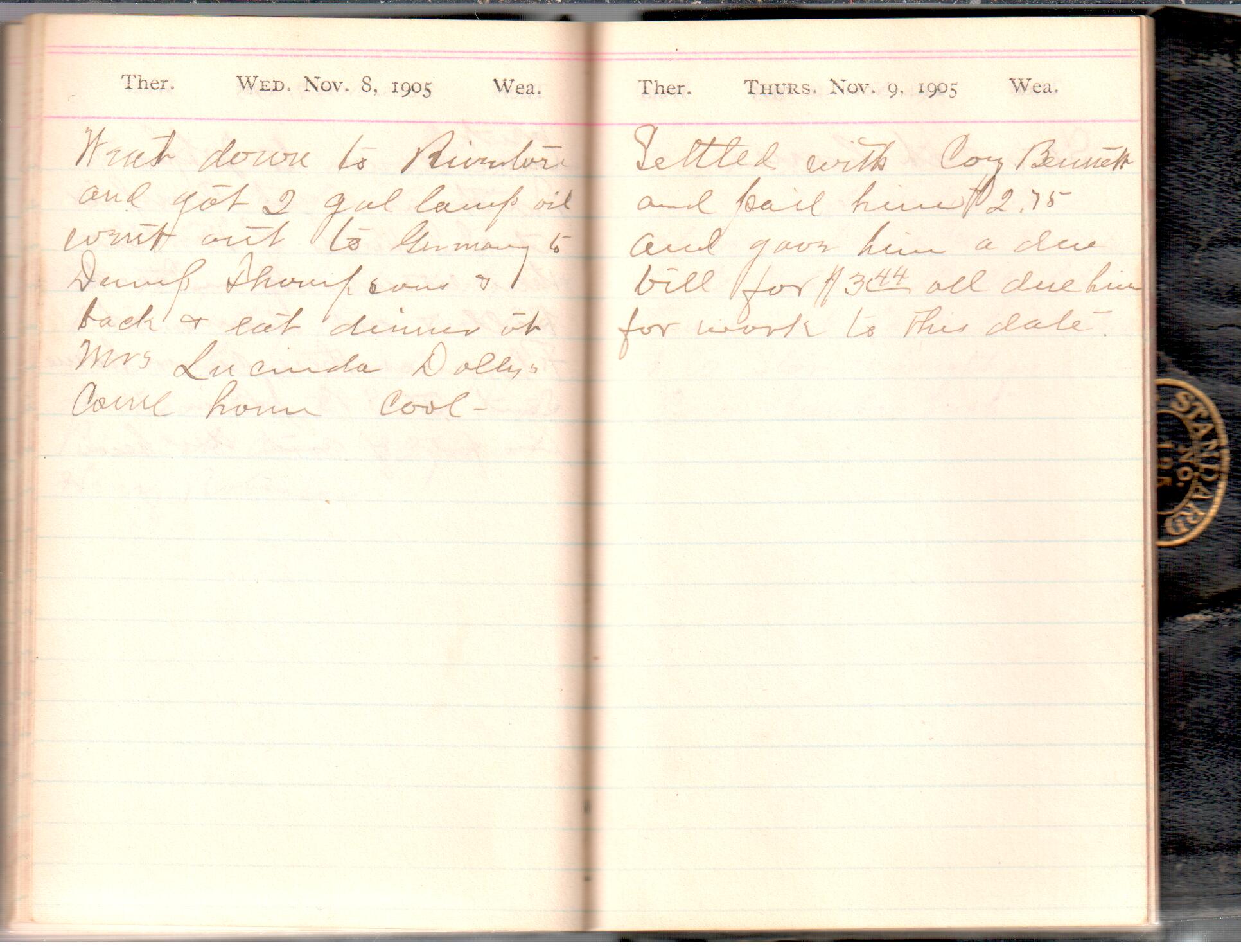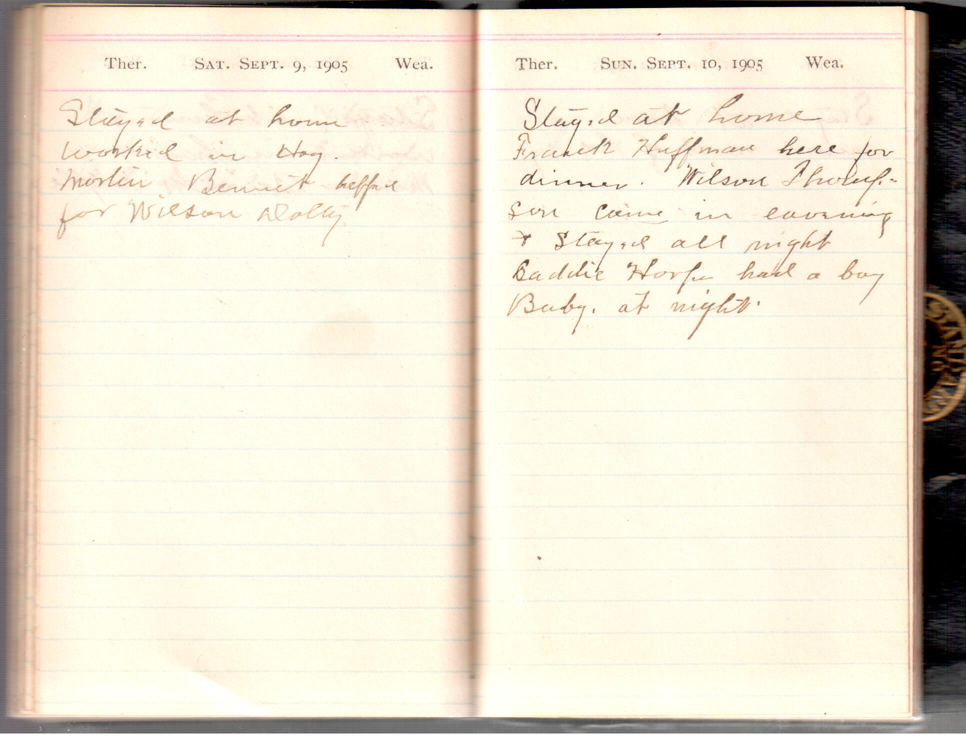 D. A. Landes Diaries: 1905 There are no entries for January 1 - January 11, 1905 Use slideshow or see pages individually: Pages 0-0 Pages 0-1 Pages 0-2 Pages 1-2 Pages 2-3 Pages 4-5 Pages 6-7 Pages 9-10 Pages 11-12 Pages 13-14 Pages 15-16 Pages 17-18 Pages 19-20 Pages 21-22 Pages 23-24 Pages 25-26 Pages 27-28 Pages 29-30 Pages 31-32 Pages 33-34 Pages 35-36 Pages 37-38 Pages 39-40 Pages 41-42 Pages 43-44 Pages 45-46 Pages 47-48 Pages 49-50 Pages 51-52 Pages 53-54 Pages 55-56 Pages 57-58 Pages 59-60 Pages 61-62 Pages 63-64 Pages 65-66 Pages 66-67 Pages 67-68 Pages 69-70 Pages 71-72 Pages 73-74 Pages 75-76 Pages 77-78 Pages 79-80 Pages 81-82 Pages 83-84 Pages 85-86 Pages 87-88 Pages 89-90 Pages 91-92 Pages 93-94 Pages 95-96 Pages 97-98 Pages 99-100 Pages 101-102 Pages 103-104 Pages 105-106 Pages 107-108 Pages 109-110 Pages 111-112 Pages 113-114 Pages 115-116 Pages 117-118 Pages 119-120 Pages 121-122 Pages 123-124 Pages 125-126 Pages 127-128 Pages 129-130 Pages 131-132 Pages 133-134 Pages 135-136 Pages 137-138 Pages 139-140 Pages 141-142 Pages 143-144 Pages 145-146 Pages 147-148 Pages 149-150 Pages 151-152 Pages 152-153 Pages 153-154 Pages 155-156 Pages 157-158 Pages 159-160 Pages 161-162 Pages 163-164 Pages 165-166 Pages 167-168 Pages 169-170 Pages 171-172 Pages 173-174 Pages 175-176 Pages 177-178 Pages 179-180 Pages 181-182 Pages 183-184 Pages 185-186 Pages 187-188 Pages 189-190 Pages 191-192 Pages 193-194 Pages 195-196 Pages 197-198 Pages 199-200 Pages 201-202 Pages 203-204 Pages 205-206 Pages 207-208 Pages 209-210 Pages 211-212 Pages 213-214 Pages 215-216 Pages 217-218 Pages 219-220 Pages 221-222 Pages 223-224 Pages 225-226 Pages 227-228 Pages 229-230 Pages 231-232 Pages 233-234 Pages 235-236 Pages 237-238 Pages 239-240 Pages 241-242 Pages 243-244 Pages 245-246 Pages 247-248 Pages 249-250 Pages 251-252 Pages 252-253 Pages 253-254 Pages 255-256 Pages 257-258 Pages 259-260 Pages 261-262 Pages 263-264 Pages 265-266 Pages 267-268 Pages 269-270 Pages 271-272 Pages 273-274 Pages 275-276 Pages 277-278 Pages 279-280 Pages 281-282 Pages 283-284 Pages 285-286 Pages 287-288 Pages 289-290 Pages 291-292 Pages 293-294 Pages 295-296 Pages 297-298 Pages 199-200 Pages 301-302 Pages 303-304 Pages 305-306 Pages 307-308 Pages 309-310 Pages 311-312 Pages 313-314 Pages 315-316 Pages 317-318 Pages 319-320 Pages 321-322 Pages 323-324 Pages 325-326 Pages 327-328 Pages 329-330 Pages 331-332 Pages 333-334 Pages 335-336 Pages 337-338 Pages 339-340 Pages 341-342 Pages 343-344 Pages 345-346 Pages 347-348 Pages 349-350 Pages 351-352 Pages 352-353 Pages 353-354 Pages 355-356 Pages 357-358 Pages 359-360 Pages 361-362 Pages 363-364