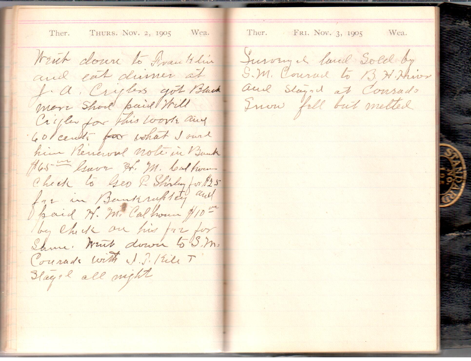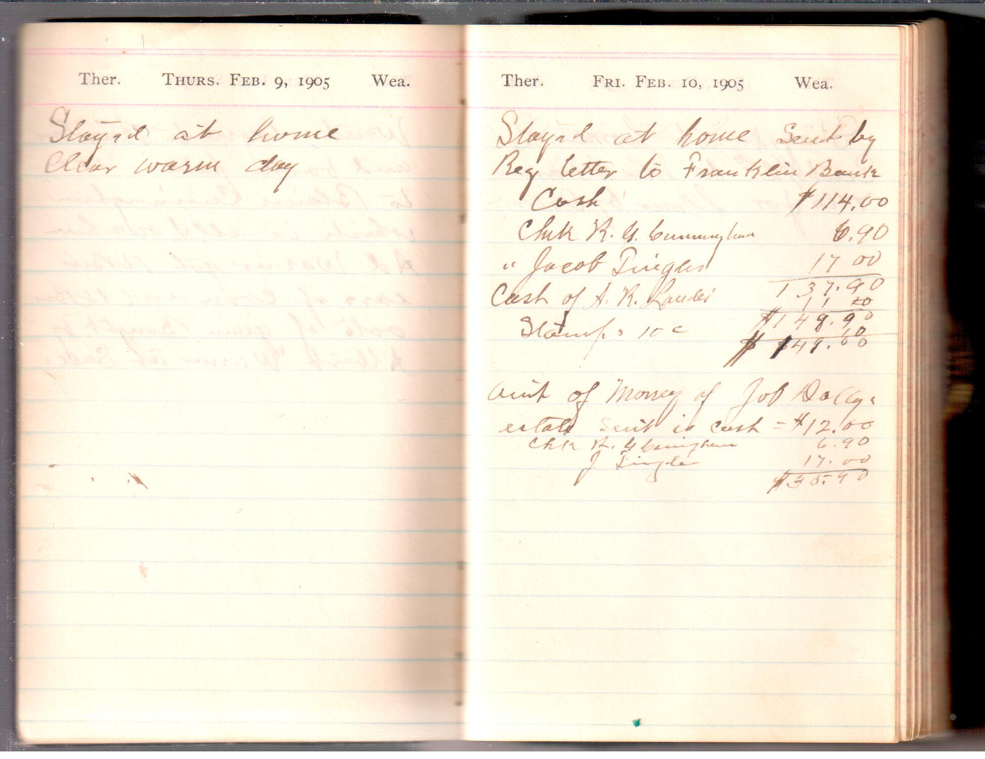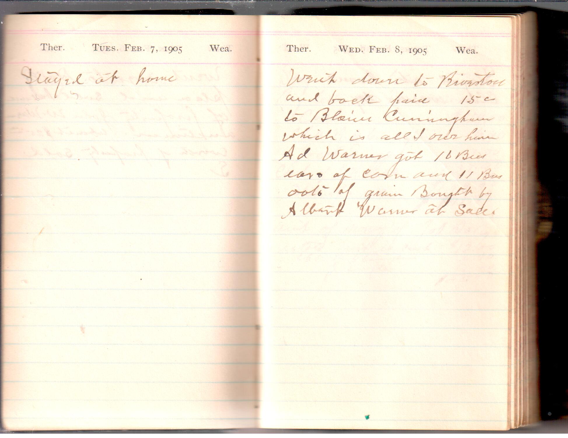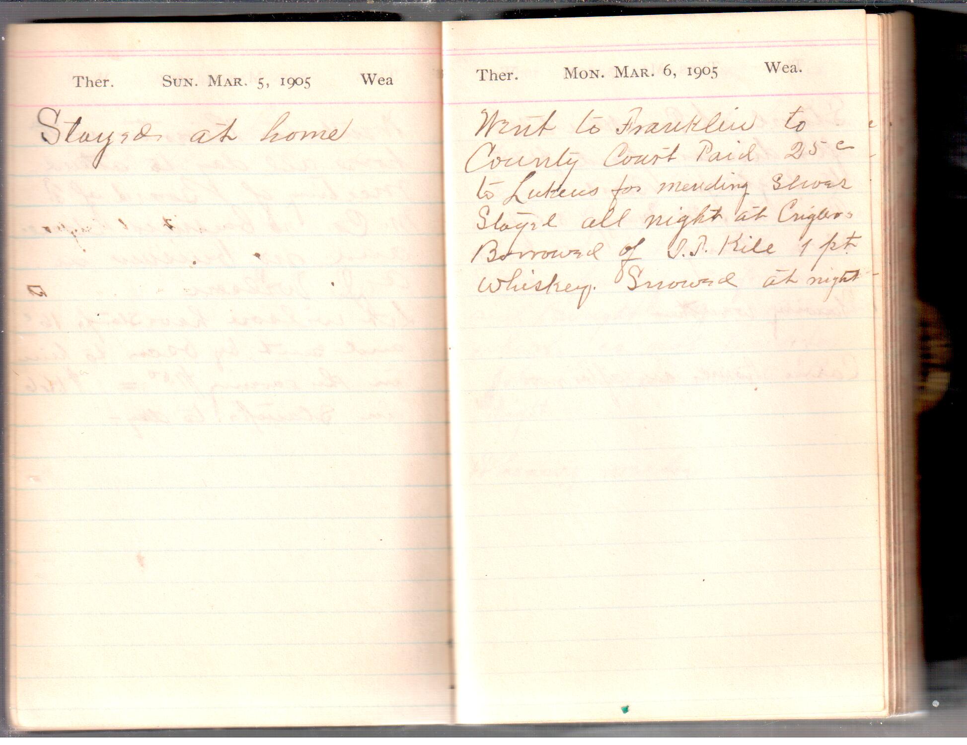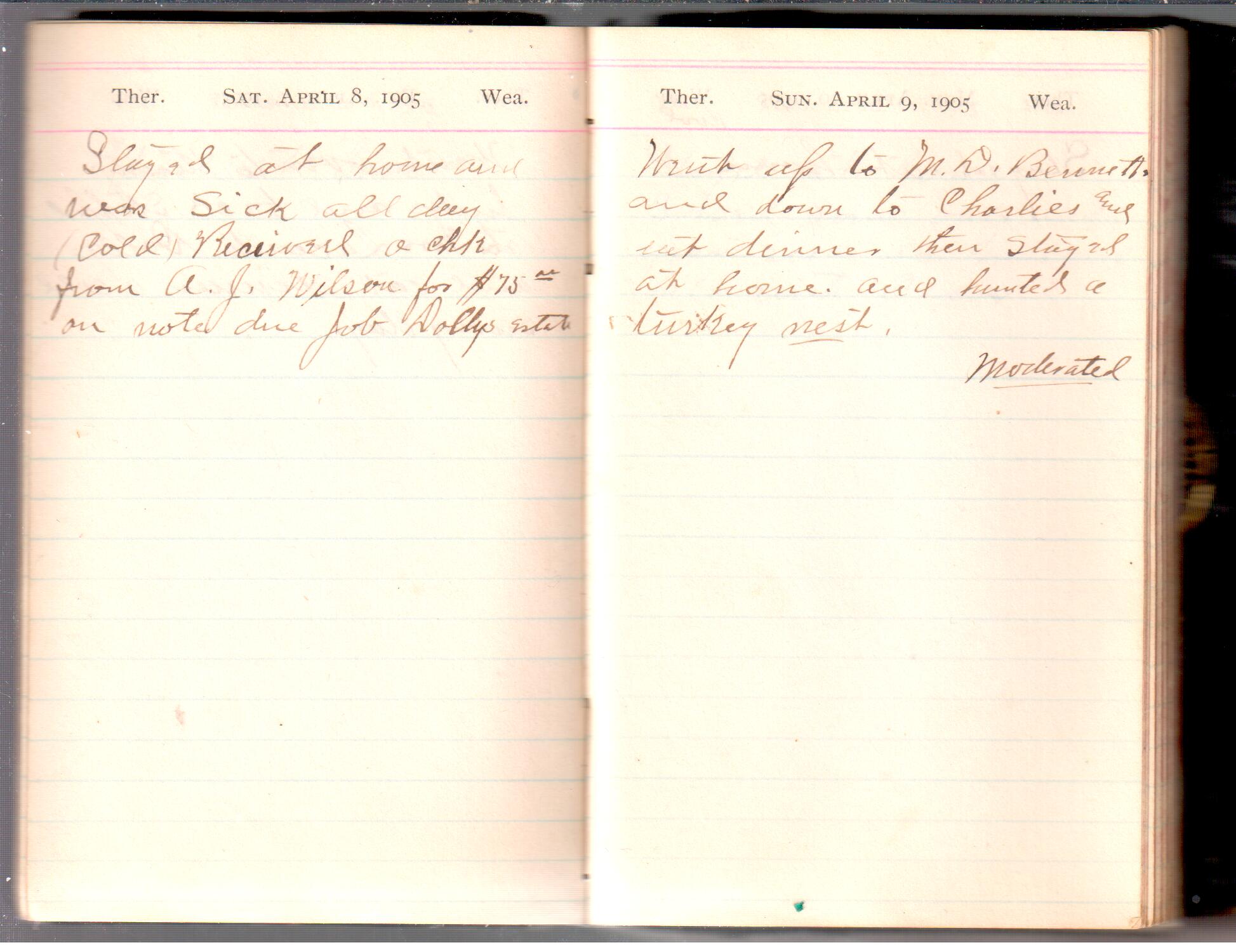 D. A. Landes Diaries: 1905 There are no entries for January 1 - January 11, 1905 Use slideshow or see pages individually: Pages 0-0 Pages 0-1 Pages 0-2 Pages 1-2 Pages 2-3 Pages 4-5 Pages 6-7 Pages 9-10 Pages 11-12 Pages 13-14 Pages 15-16 Pages 17-18 Pages 19-20 Pages 21-22 Pages 23-24 Pages 25-26 Pages 27-28 Pages 29-30 Pages 31-32 Pages 33-34 Pages 35-36 Pages 37-38 Pages 39-40 Pages 41-42 Pages 43-44 Pages 45-46 Pages 47-48 Pages 49-50 Pages 51-52 Pages 53-54 Pages 55-56 Pages 57-58 Pages 59-60 Pages 61-62 Pages 63-64 Pages 65-66 Pages 66-67 Pages 67-68 Pages 69-70 Pages 71-72 Pages 73-74 Pages 75-76 Pages 77-78 Pages 79-80 Pages 81-82 Pages 83-84 Pages 85-86 Pages 87-88 Pages 89-90 Pages 91-92 Pages 93-94 Pages 95-96 Pages 97-98 Pages 99-100 Pages 101-102 Pages 103-104 Pages 105-106 Pages 107-108 Pages 109-110 Pages 111-112 Pages 113-114 Pages 115-116 Pages 117-118 Pages 119-120 Pages 121-122 Pages 123-124 Pages 125-126 Pages 127-128 Pages 129-130 Pages 131-132 Pages 133-134 Pages 135-136 Pages 137-138 Pages 139-140 Pages 141-142 Pages 143-144 Pages 145-146 Pages 147-148 Pages 149-150 Pages 151-152 Pages 152-153 Pages 153-154 Pages 155-156 Pages 157-158 Pages 159-160 Pages 161-162 Pages 163-164 Pages 165-166 Pages 167-168 Pages 169-170 Pages 171-172 Pages 173-174 Pages 175-176 Pages 177-178 Pages 179-180 Pages 181-182 Pages 183-184 Pages 185-186 Pages 187-188 Pages 189-190 Pages 191-192 Pages 193-194 Pages 195-196 Pages 197-198 Pages 199-200 Pages 201-202 Pages 203-204 Pages 205-206 Pages 207-208 Pages 209-210 Pages 211-212 Pages 213-214 Pages 215-216 Pages 217-218 Pages 219-220 Pages 221-222 Pages 223-224 Pages 225-226 Pages 227-228 Pages 229-230 Pages 231-232 Pages 233-234 Pages 235-236 Pages 237-238 Pages 239-240 Pages 241-242 Pages 243-244 Pages 245-246 Pages 247-248 Pages 249-250 Pages 251-252 Pages 252-253 Pages 253-254 Pages 255-256 Pages 257-258 Pages 259-260 Pages 261-262 Pages 263-264 Pages 265-266 Pages 267-268 Pages 269-270 Pages 271-272 Pages 273-274 Pages 275-276 Pages 277-278 Pages 279-280 Pages 281-282 Pages 283-284 Pages 285-286 Pages 287-288 Pages 289-290 Pages 291-292 Pages 293-294 Pages 295-296 Pages 297-298 Pages 199-200 Pages 301-302 Pages 303-304 Pages 305-306 Pages 307-308 Pages 309-310 Pages 311-312 Pages 313-314 Pages 315-316 Pages 317-318 Pages 319-320 Pages 321-322 Pages 323-324 Pages 325-326 Pages 327-328 Pages 329-330 Pages 331-332 Pages 333-334 Pages 335-336 Pages 337-338 Pages 339-340 Pages 341-342 Pages 343-344 Pages 345-346 Pages 347-348 Pages 349-350 Pages 351-352 Pages 352-353 Pages 353-354 Pages 355-356 Pages 357-358 Pages 359-360 Pages 361-362 Pages 363-364