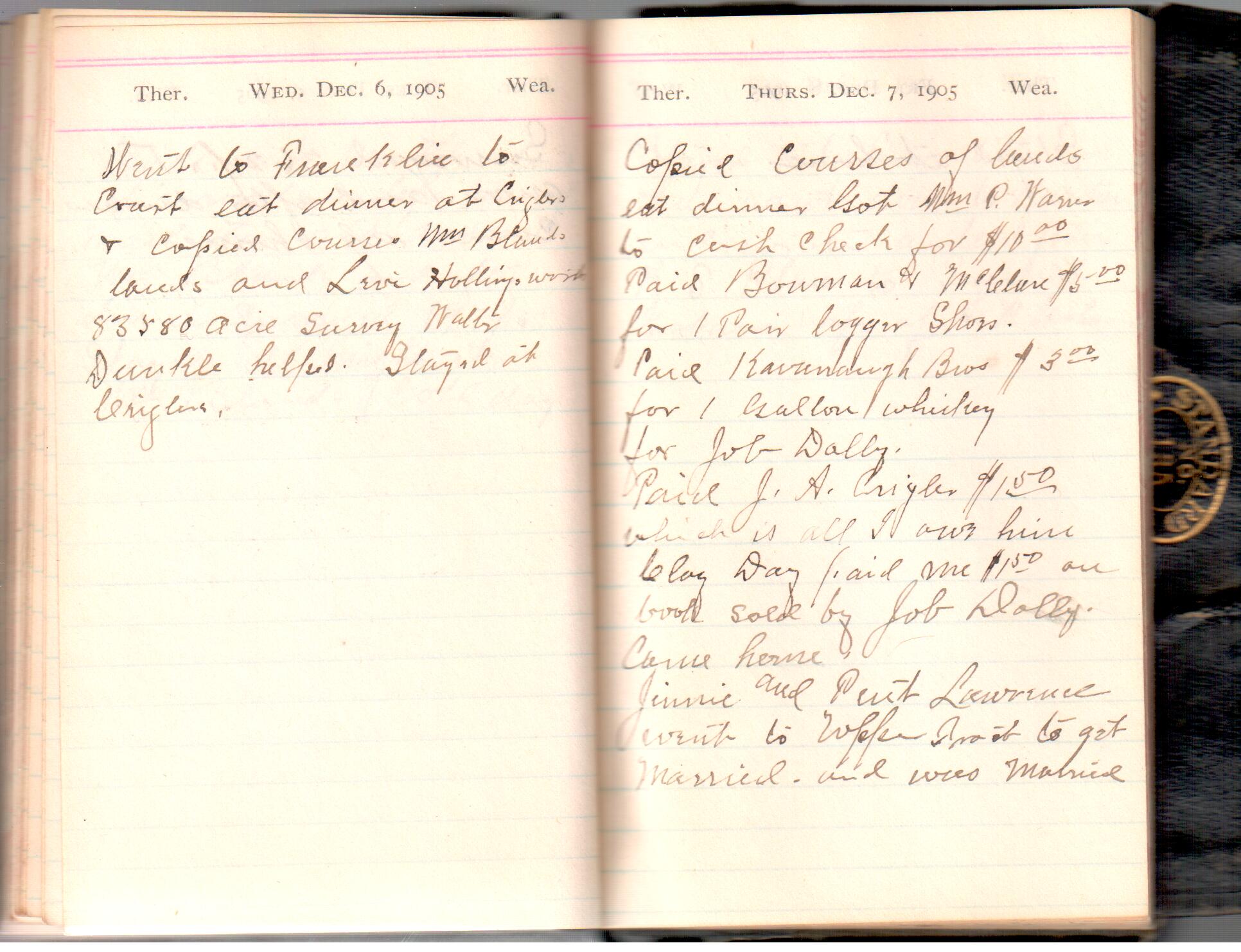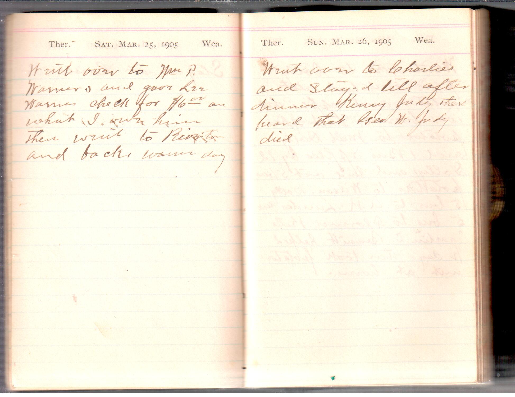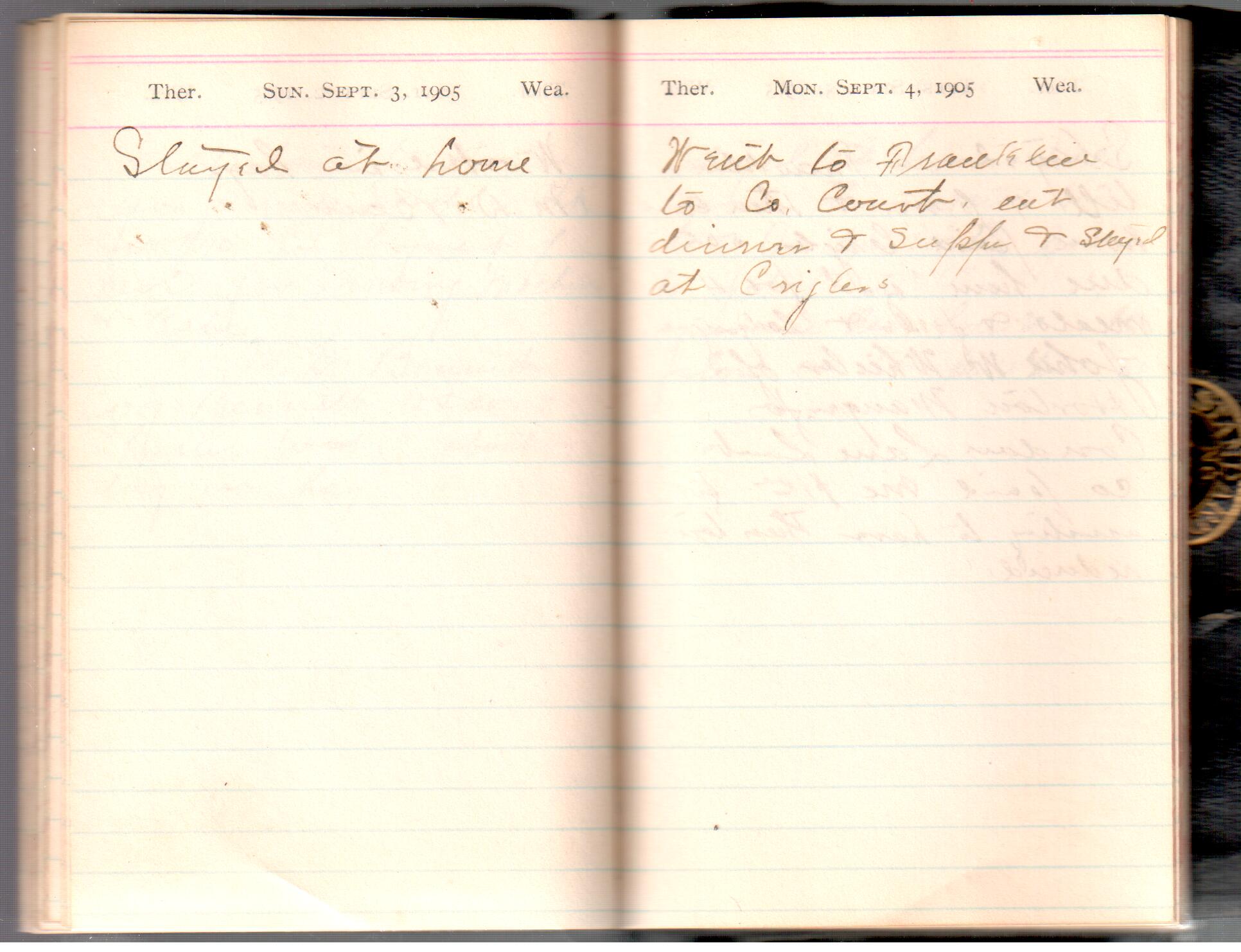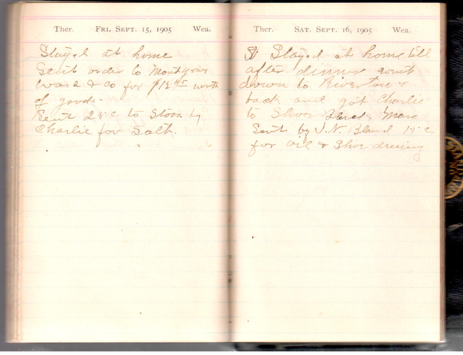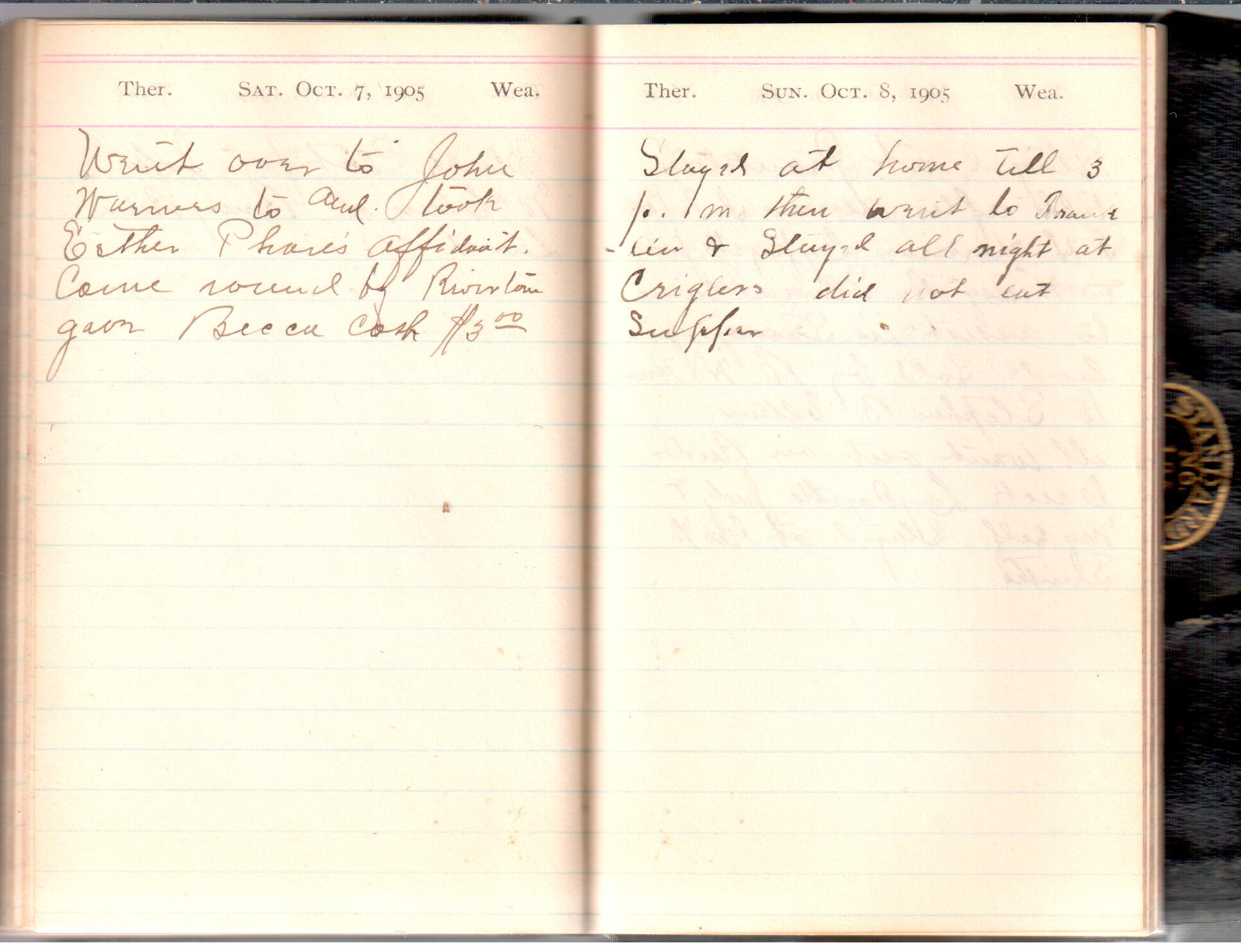 D. A. Landes Diaries: 1905 There are no entries for January 1 - January 11, 1905 Use slideshow or see pages individually: Pages 0-0 Pages 0-1 Pages 0-2 Pages 1-2 Pages 2-3 Pages 4-5 Pages 6-7 Pages 9-10 Pages 11-12 Pages 13-14 Pages 15-16 Pages 17-18 Pages 19-20 Pages 21-22 Pages 23-24 Pages 25-26 Pages 27-28 Pages 29-30 Pages 31-32 Pages 33-34 Pages 35-36 Pages 37-38 Pages 39-40 Pages 41-42 Pages 43-44 Pages 45-46 Pages 47-48 Pages 49-50 Pages 51-52 Pages 53-54 Pages 55-56 Pages 57-58 Pages 59-60 Pages 61-62 Pages 63-64 Pages 65-66 Pages 66-67 Pages 67-68 Pages 69-70 Pages 71-72 Pages 73-74 Pages 75-76 Pages 77-78 Pages 79-80 Pages 81-82 Pages 83-84 Pages 85-86 Pages 87-88 Pages 89-90 Pages 91-92 Pages 93-94 Pages 95-96 Pages 97-98 Pages 99-100 Pages 101-102 Pages 103-104 Pages 105-106 Pages 107-108 Pages 109-110 Pages 111-112 Pages 113-114 Pages 115-116 Pages 117-118 Pages 119-120 Pages 121-122 Pages 123-124 Pages 125-126 Pages 127-128 Pages 129-130 Pages 131-132 Pages 133-134 Pages 135-136 Pages 137-138 Pages 139-140 Pages 141-142 Pages 143-144 Pages 145-146 Pages 147-148 Pages 149-150 Pages 151-152 Pages 152-153 Pages 153-154 Pages 155-156 Pages 157-158 Pages 159-160 Pages 161-162 Pages 163-164 Pages 165-166 Pages 167-168 Pages 169-170 Pages 171-172 Pages 173-174 Pages 175-176 Pages 177-178 Pages 179-180 Pages 181-182 Pages 183-184 Pages 185-186 Pages 187-188 Pages 189-190 Pages 191-192 Pages 193-194 Pages 195-196 Pages 197-198 Pages 199-200 Pages 201-202 Pages 203-204 Pages 205-206 Pages 207-208 Pages 209-210 Pages 211-212 Pages 213-214 Pages 215-216 Pages 217-218 Pages 219-220 Pages 221-222 Pages 223-224 Pages 225-226 Pages 227-228 Pages 229-230 Pages 231-232 Pages 233-234 Pages 235-236 Pages 237-238 Pages 239-240 Pages 241-242 Pages 243-244 Pages 245-246 Pages 247-248 Pages 249-250 Pages 251-252 Pages 252-253 Pages 253-254 Pages 255-256 Pages 257-258 Pages 259-260 Pages 261-262 Pages 263-264 Pages 265-266 Pages 267-268 Pages 269-270 Pages 271-272 Pages 273-274 Pages 275-276 Pages 277-278 Pages 279-280 Pages 281-282 Pages 283-284 Pages 285-286 Pages 287-288 Pages 289-290 Pages 291-292 Pages 293-294 Pages 295-296 Pages 297-298 Pages 199-200 Pages 301-302 Pages 303-304 Pages 305-306 Pages 307-308 Pages 309-310 Pages 311-312 Pages 313-314 Pages 315-316 Pages 317-318 Pages 319-320 Pages 321-322 Pages 323-324 Pages 325-326 Pages 327-328 Pages 329-330 Pages 331-332 Pages 333-334 Pages 335-336 Pages 337-338 Pages 339-340 Pages 341-342 Pages 343-344 Pages 345-346 Pages 347-348 Pages 349-350 Pages 351-352 Pages 352-353 Pages 353-354 Pages 355-356 Pages 357-358 Pages 359-360 Pages 361-362 Pages 363-364