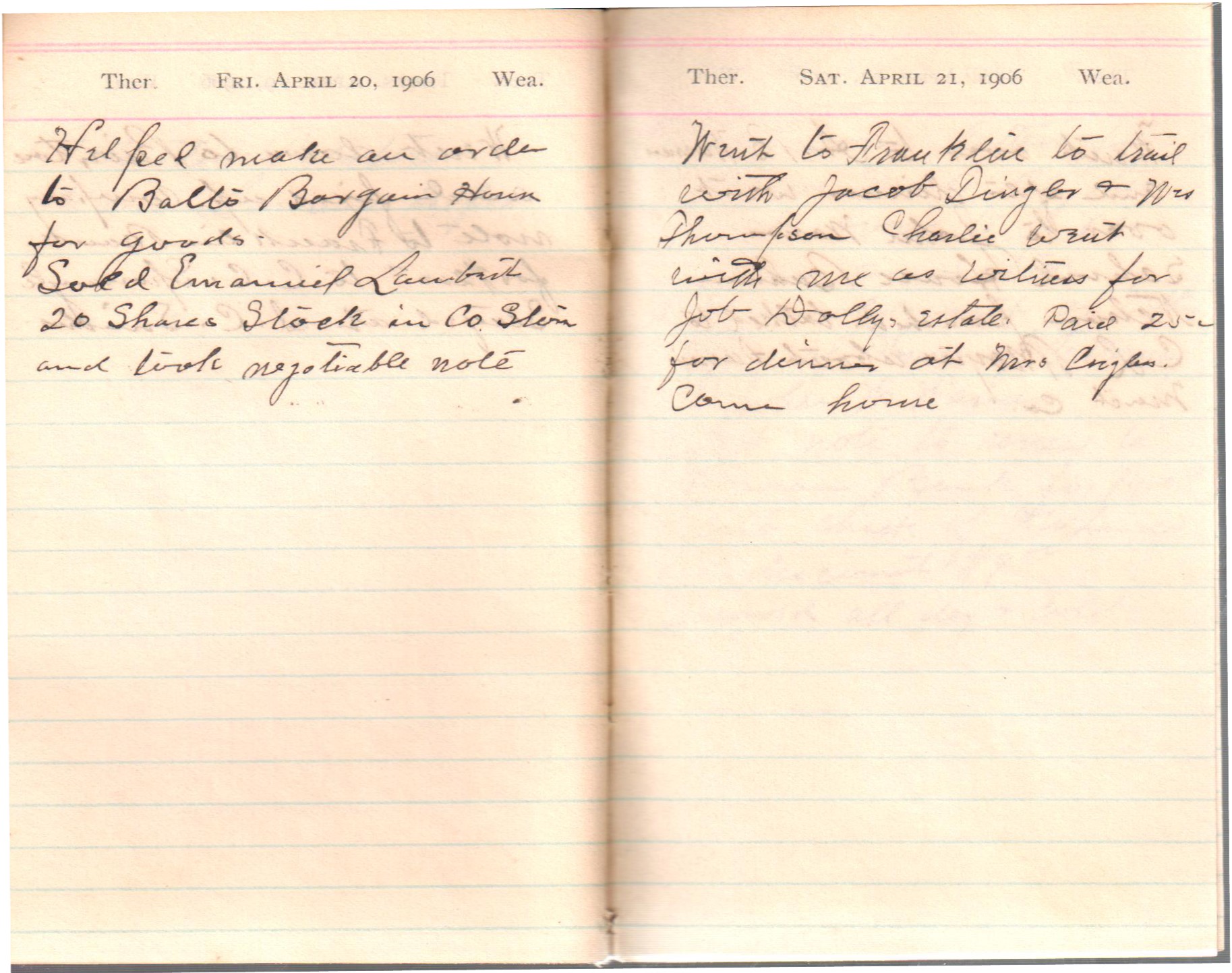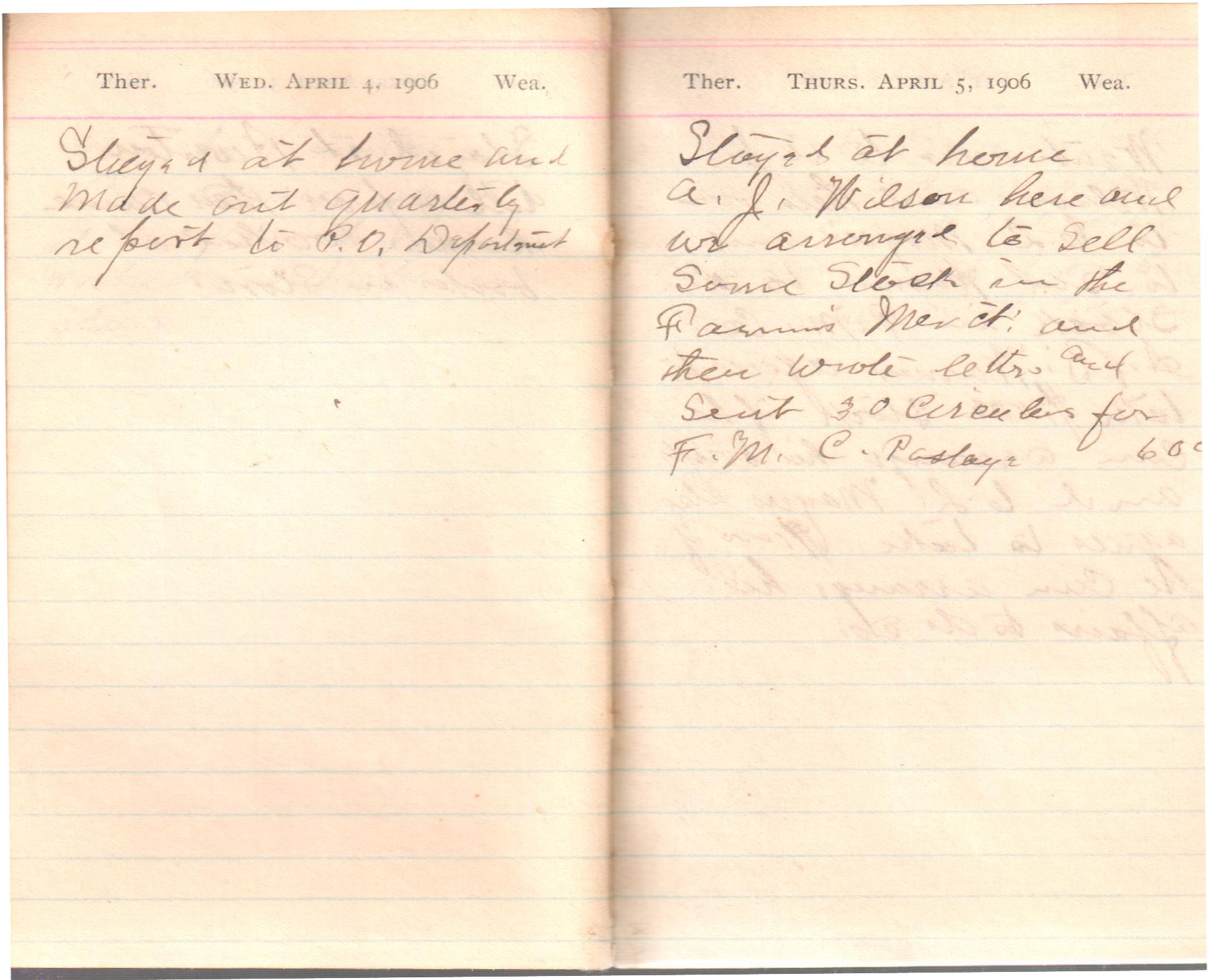 D. A. Landes Diaries: 1906 Use slideshow or see pages individually: Pages cover Pages 0 Pages 0-1 Pages 1-2 Pages 2-3 Pages 4-5 Pages 6-7 Pages 9-10 Pages 11-12 Pages 13-14 Pages 15-16 Pages 17-18 Pages 19-20 Pages 21-22 Pages 23-24 Pages 25-26 Pages 27-28 Pages 29-30 Pages 31-32 Pages 33-34 Pages 35-36 Pages 37-38 Pages 39-40 Pages 41-42 Pages 43-44 Pages 45-46 Pages 47-48 Pages 49-50 Pages 51-52 Pages 53-54 Pages 55-56 Pages 57-58 Pages 59-60 Pages 61-62 Pages 63-64 Pages 65-66 Pages 66-67 Pages 67-68 Pages 69-70 Pages 71-72 Pages 73-74 Pages 75-76 Pages 77-78 Pages 79-80 Pages 81-82 Pages 83-84 Pages 85-86 Pages 87-88 Pages 89-90 Pages 91-92 Pages 93-94 Pages 95-96 Pages 97-98 Pages 99-100 Pages 101-102 Pages 103-104 Pages 105-106 Pages 107-108 Pages 109-110 Pages 111-112 Pages 113-114 Pages 115-116 Pages 117-118 Pages 119-120 Pages 121-122 Pages 123-124 Pages 125-126 Pages 127-128 Pages 129-130 Pages 131-132 Pages 133-134 Pages 135-136 Pages 137-138 Pages 139-140 Pages 141-142 Pages 143-144 Pages 145-146 Pages 147-148 Pages 149-150 Pages 151-152 Pages 152-153 Pages 153-154 Pages 155-156 Pages 157-158 Pages 159-160 Pages 161-162 Pages 163-164 Pages 165-166 Pages 167-168 Pages 169-170 Pages 171-172 Pages 173-174 Pages 175-176 Pages 177-178 Pages 179-180 Pages 181-182 Pages 183-184 Pages 185-186 Pages 187-188 Pages 189-190 Pages 191-192 Pages 193-194 Pages 195-196 Pages 197-198 Pages 199-200 Pages 201-202 Pages 203-204 Pages 205-206 Pages 207-208 Pages 209-210 Pages 211-212 Pages 213-214 Pages 215-216 Pages 217-218 Pages 219-220 Pages 221-222 Pages 223-224 Pages 225-226 Pages 227-228 Pages 229-230 Pages 231-232 Pages 233-234 Pages 235-236 Pages 237-238 Pages 239-240 Pages 241-242 Pages 243-244 Pages 245-246 Pages 247-248 Pages 249-250 Pages 251-252 Pages 252-253 Pages 253-254 Pages 255-256 Pages 257-258 Pages 259-260 Pages 261-262 Pages 263-264 Pages 265-266 Pages 267-268 Pages 269-270 Pages 271-272 Pages 273-274 Pages 275-276 Pages 277-278 Pages 279-280 Pages 281-282 Pages 283-284 Pages 285-286 Pages 287-288 Pages 289-290 Pages 291-292 Pages 293-294 Pages 295-296 Pages 297-298 Pages 199-200 Pages 301-302 Pages 303-304 Pages 305-306 Pages 307-308 Pages 309-310 Pages 311-312 Pages 313-314 Pages 315-316 Pages 317-318 Pages 319-320 Pages 321-322 Pages 323-324 Pages 325-326 Pages 327-328 Pages 329-330 Pages 331-332 Pages 333-334 Pages 335-336 Pages 337-338 Pages 339-340 Pages 341-342 Pages 343-344 Pages 345-346 Pages 347-348 Pages 349-350 Pages 351-352 Pages 352-353 Pages 353-354 Pages 355-356 Pages 357-358 Pages 359-360 Pages 361-362 Pages 363-364 Pages 365-366 Pages 367-368