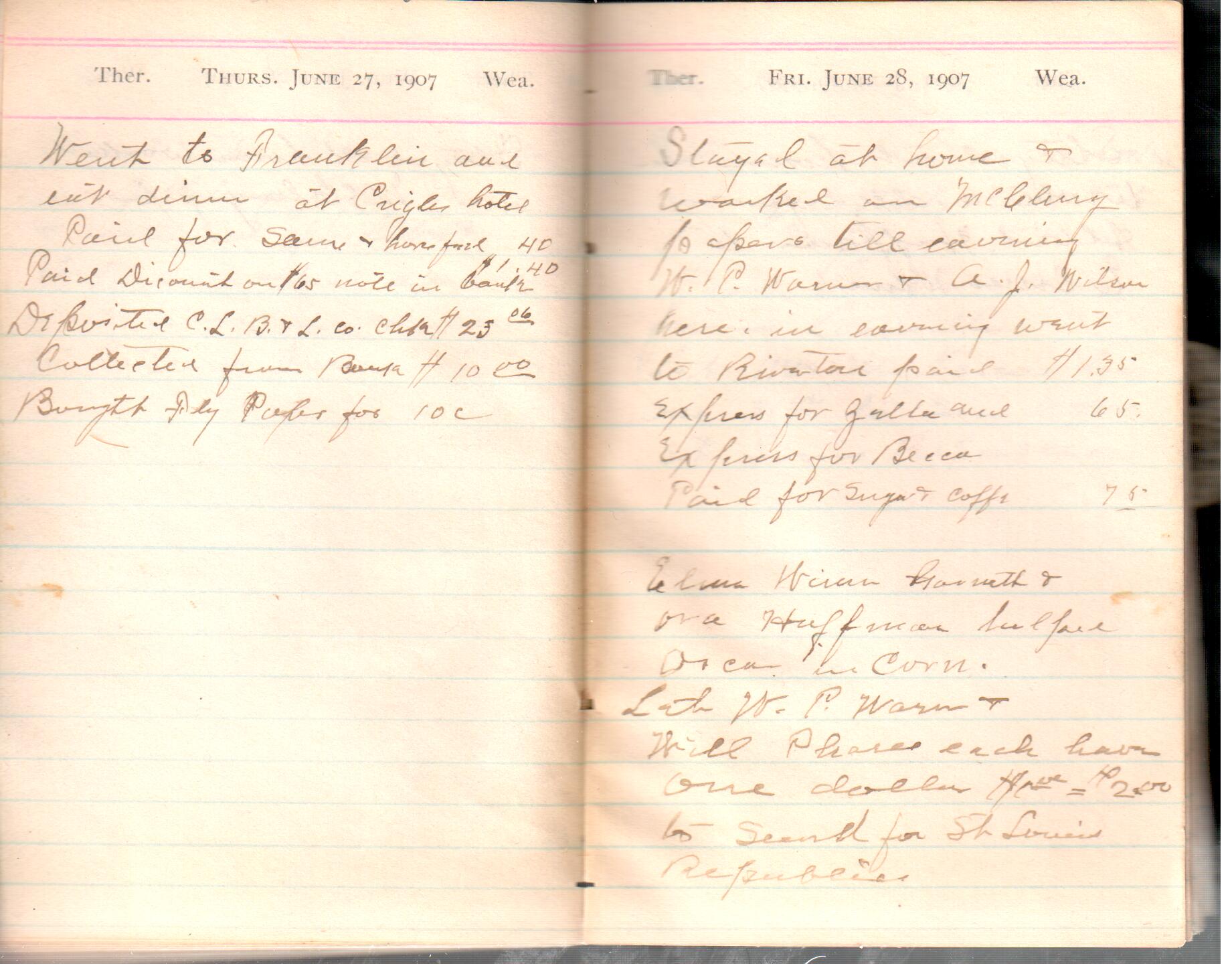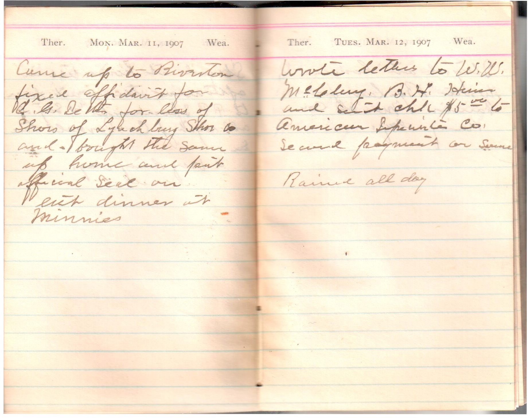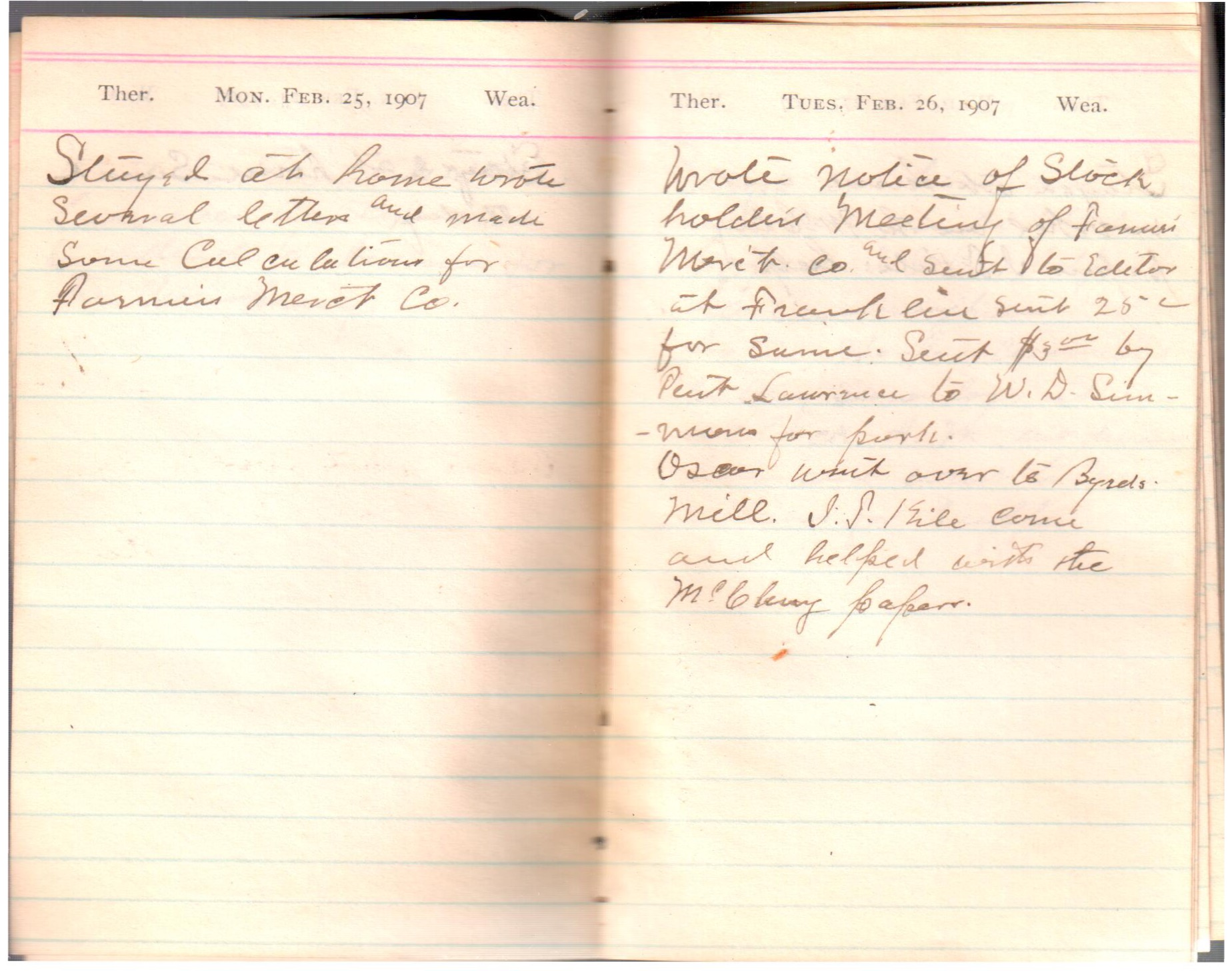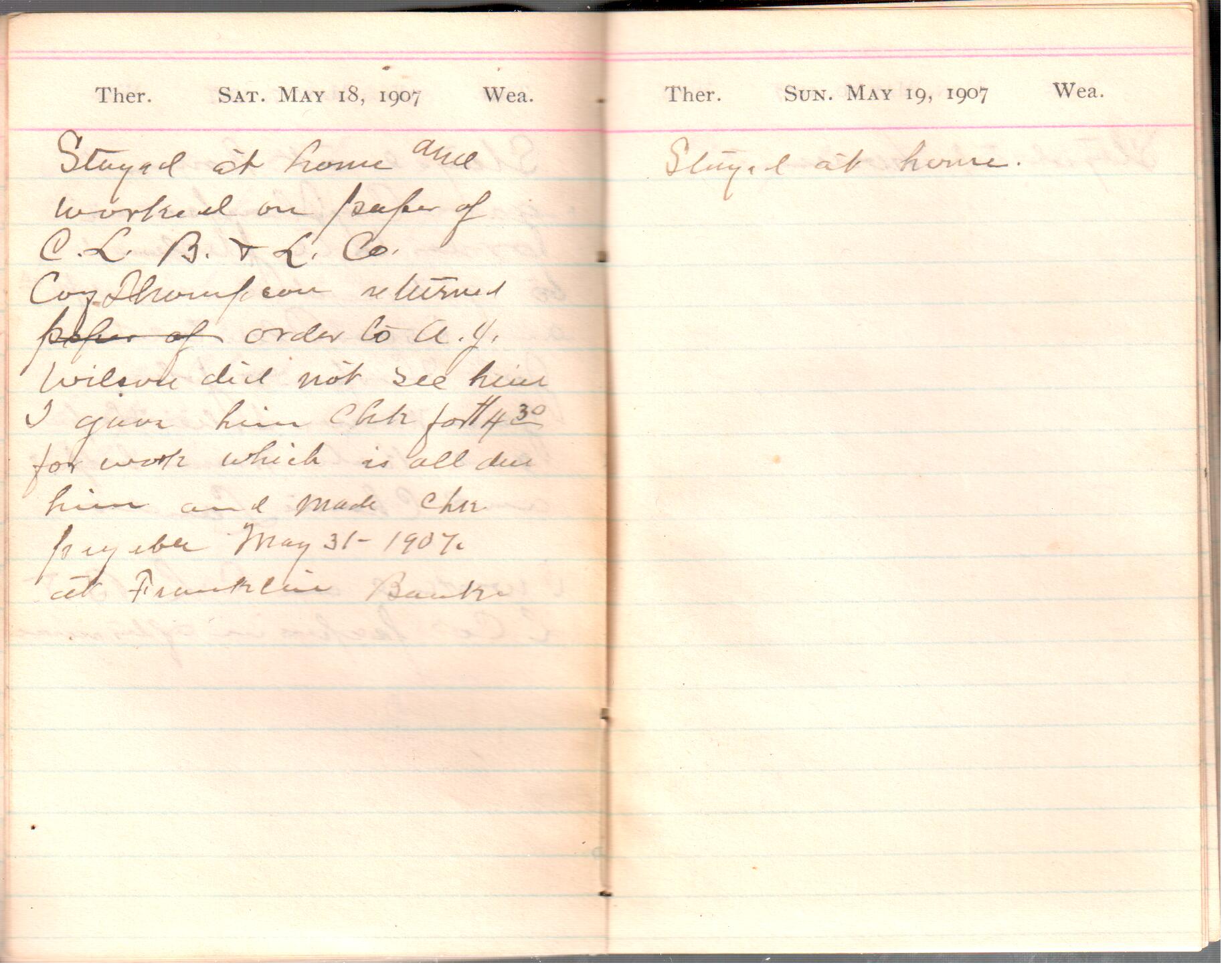 D. A. Landes Diaries: 1907 Use slideshow or see pages individually: Pages cover Pages 0-0 Pages 0-1 Pages 1-2 Pages 2-3 Pages 4-5 Pages 6-7 Pages 9-10 Pages 11-12 Pages 13-14 Pages 15-16 Pages 17-18 Pages 19-20 Pages 21-22 Pages 23-24 Pages 25-26 Pages 27-28 Pages 29-30 Pages 31-32 Pages 33-34 Pages 35-36 Pages 37-38 Pages 39-40 Pages 41-42 Pages 43-44 Pages 45-46 Pages 47-48 Pages 49-50 Pages 51-52 Pages 53-54 Pages 55-56 Pages 57-58 Pages 59-60 Pages 61-62 Pages 63-64 Pages 65-66 Pages 66-67 Pages 67-68 Pages 69-70 Pages 71-72 Pages 73-74 Pages 75-76 Pages 77-78 Pages 79-80 Pages 81-82 Pages 83-84 Pages 85-86 Pages 87-88 Pages 89-90 Pages 91-92 Pages 93-94 Pages 95-96 Pages 97-98 Pages 99-100 Pages 101-102 Pages 103-104 Pages 105-106 Pages 107-108 Pages 109-110 Pages 111-112 Pages 113-114 Pages 115-116 Pages 117-118 Pages 119-120 Pages 121-122 Pages 123-124 Pages 125-126 Pages 127-128 Pages 129-130 Pages 131-132 Pages 133-134 Pages 135-136 Pages 137-138 Pages 139-140 Pages 141-142 Pages 143-144 Pages 145-146 Pages 147-148 Pages 149-150 Pages 151-152 Pages 152-153 Pages 153-154 Pages 155-156 Pages 157-158 Pages 159-160 Pages 161-162 Pages 163-164 Pages 165-166 Pages 167-168 Pages 169-170 Pages 171-172 Pages 173-174 Pages 175-176 Pages 177-178 Pages 179-180 Pages 181-182 Pages 183-184 Pages 185-186 Pages 187-188 Pages 189-190 Pages 191-192 Pages 193-194 Pages 195-196 Pages 197-198 Pages 199-200 Pages 201-202 Pages 203-204 Pages 205-206 Pages 207-208 Pages 209-210 Pages 211-212 Pages 213-214 Pages 215-216 Pages 217-218 Pages 219-220 Pages 221-222 Pages 223-224 Pages 225-226 Pages 227-228 Pages 229-230 Pages 231-232 Pages 233-234 Pages 235-236 Pages 237-238 Pages 239-240 Pages 241-242 Pages 243-244 Pages 245-246 Pages 247-248 Pages 249-250 Pages 251-252 Pages 252-253 Pages 253-254 Pages 255-256 Pages 257-258 Pages 259-260 Pages 261-262 Pages 263-264 Pages 265-266 Pages 267-268 Pages 269-270 Pages 271-272 Pages 273-274 Pages 275-276 Pages 277-278 Pages 279-280 Pages 281-282 Pages 283-284 Pages 285-286 Pages 287-288 Pages 289-290 Pages 291-292 Pages 293-294 Pages 295-296 Pages 297-298 Pages 199-200 Pages 301-302 Pages 303-304 Pages 305-306 Pages 307-308 Pages 309-310 Pages 311-312 Pages 313-314 Pages 315-316 Pages 317-318 Pages 319-320 Pages 321-322 Pages 323-324 Pages 325-326 Pages 327-328 Pages 329-330 Pages 331-332 Pages 333-334 Pages 335-336 Pages 337-338 Pages 339-340 Pages 341-342 Pages 343-344 Pages 345-346 Pages 347-348 Pages 349-350 Pages 351-352 Pages 352-353 Pages 353-354 Pages 355-356 Pages 357-358 Pages 359-360 Pages 361-362 Pages 363-364 Pages 365-366 Pages 367-368