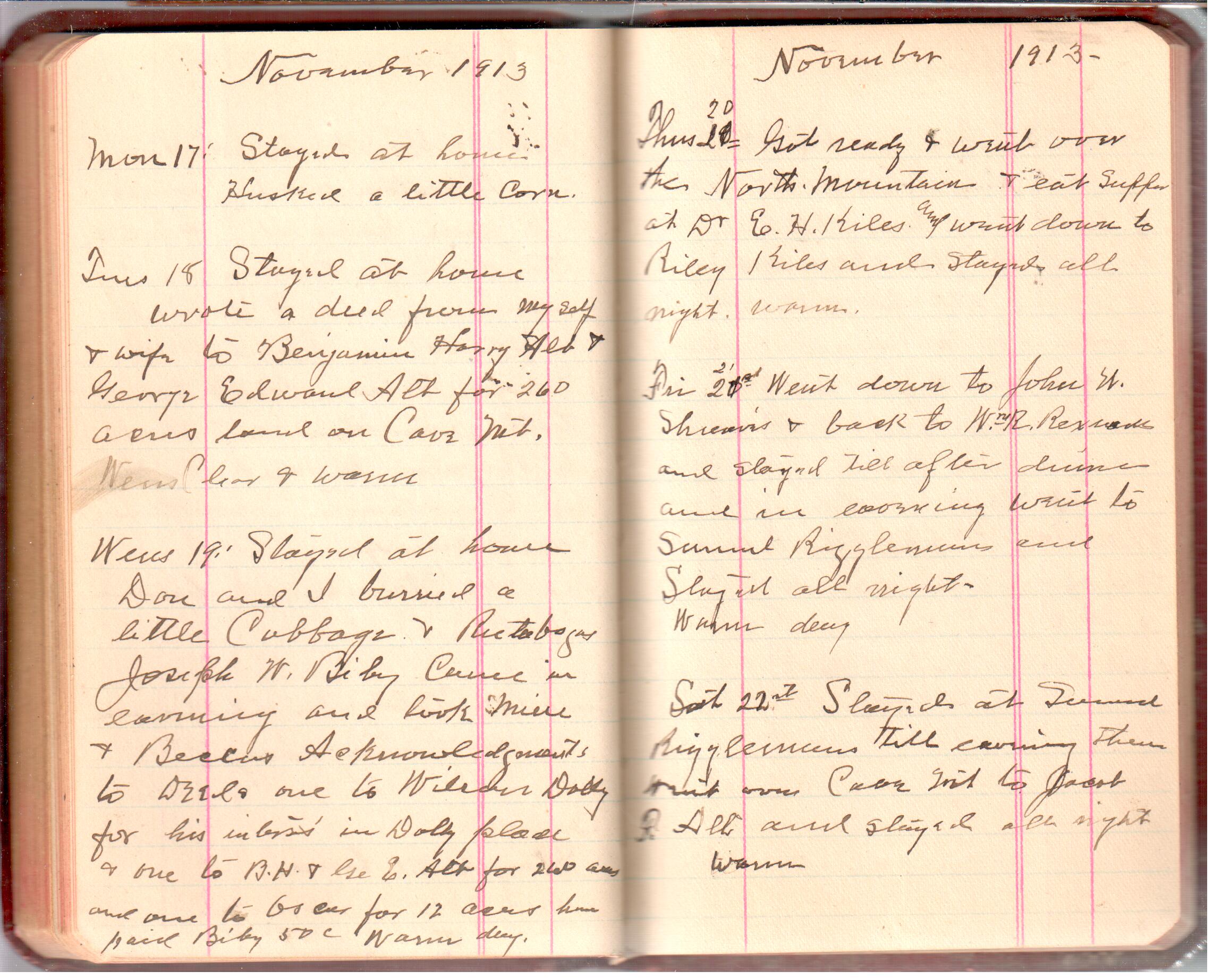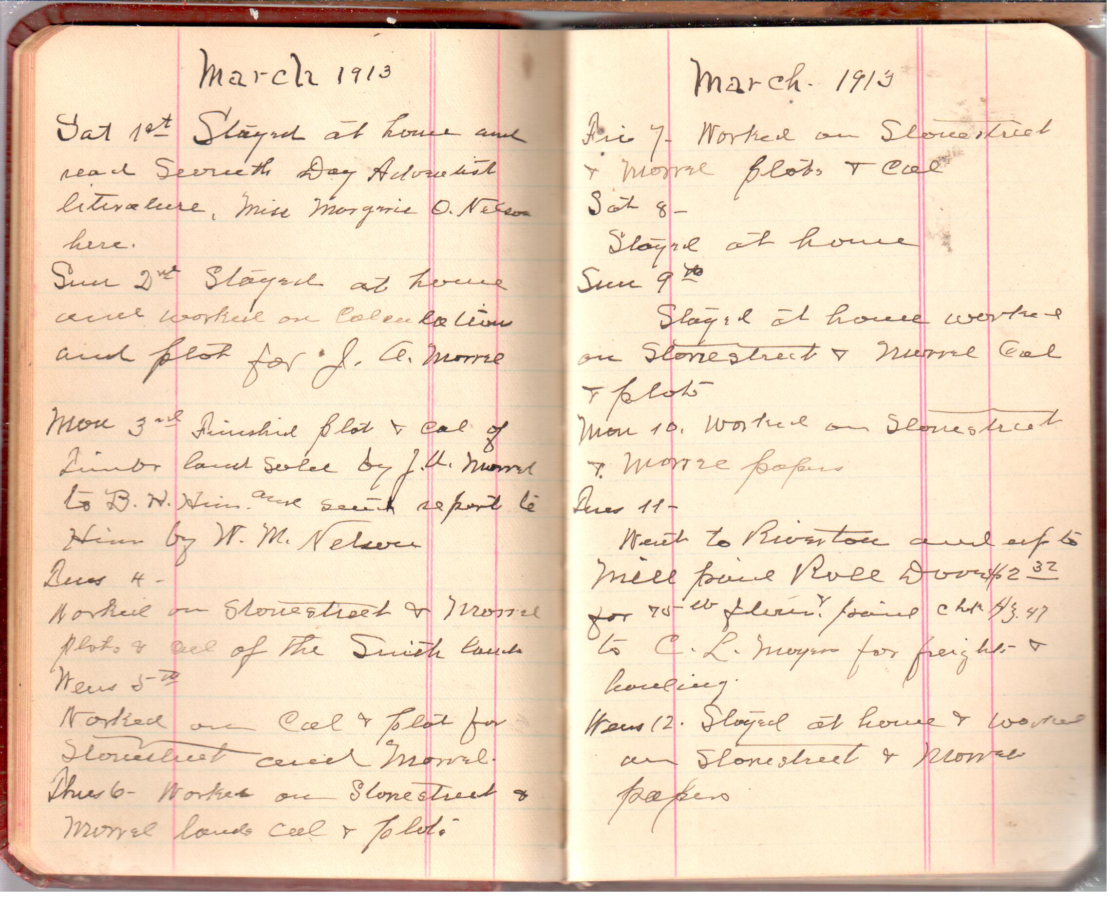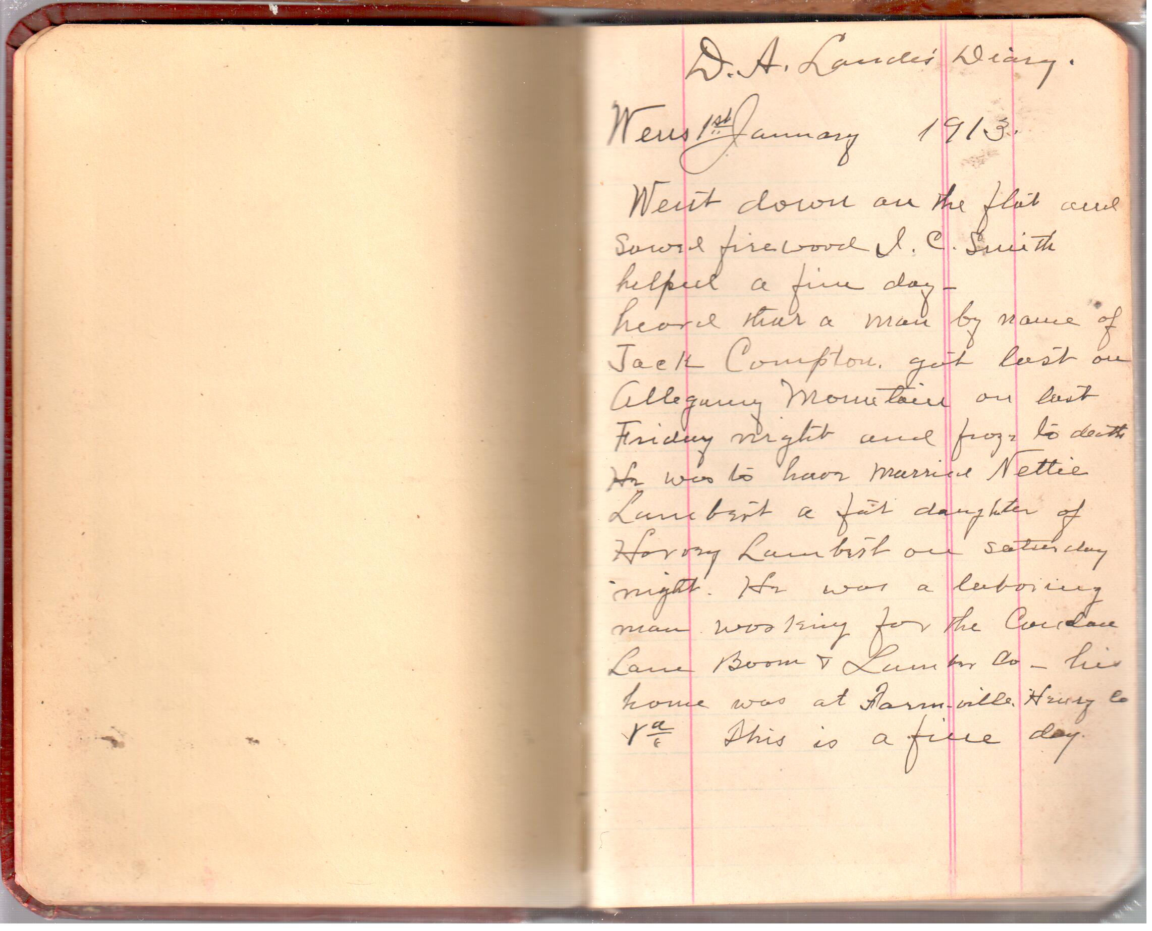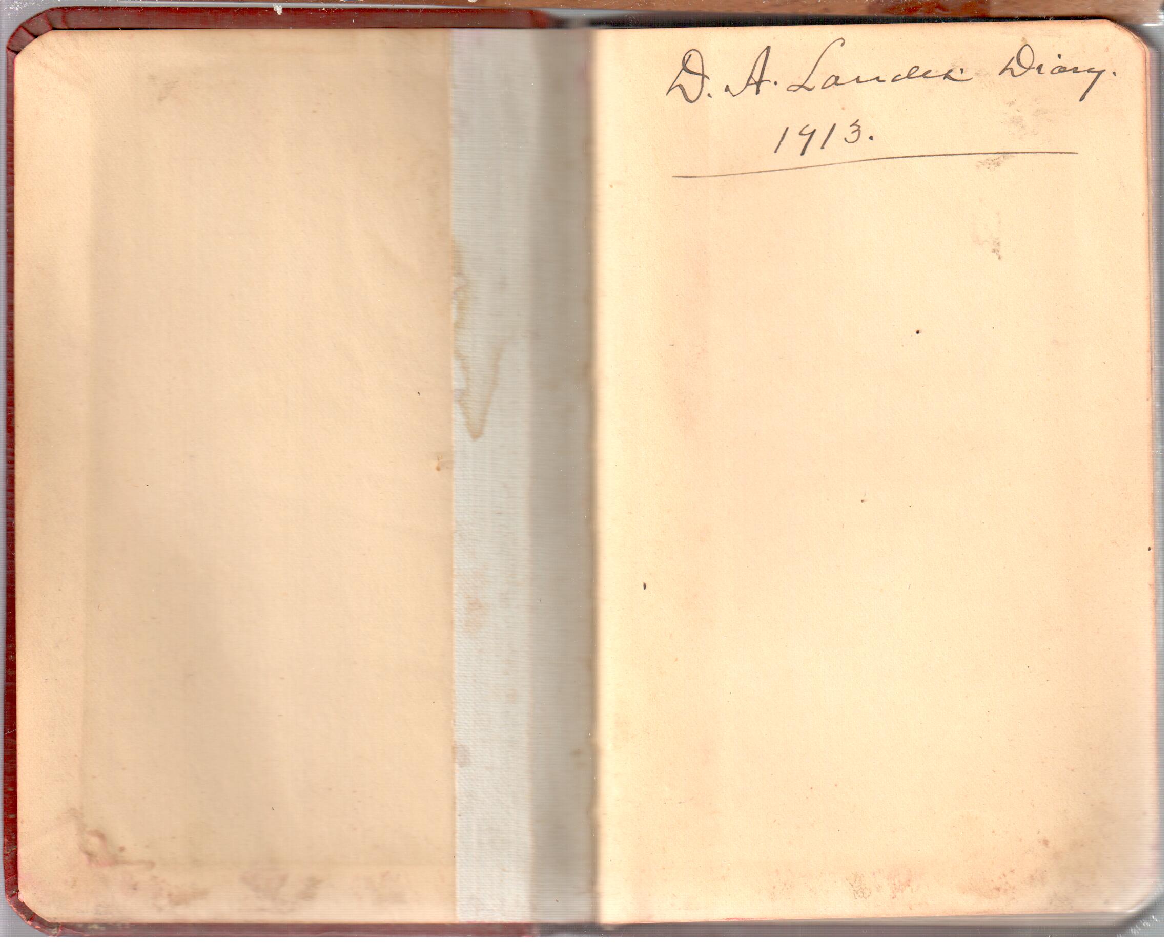D. A. Landes Diaries: 1913 Use slideshow or see pages individually: Pages cover Pages 0-1 Pages 0-2 Pages 1-2 Pages 2-3 Pages 4-5 Pages 6-7 Pages 9-10 Pages 11-12 Pages 13-14 Pages 15-16 Pages 17-18 Pages 19-20 Pages 21-22 Pages 23-24 Pages 25-26 Pages 27-28 Pages 29-30 Pages 31-32 Pages 33-34 Pages 35-36 Pages 37-38 Pages 39-40 Pages 41-42 Pages 43-44 Pages 45-46 Pages 47-48 Pages 49-50 Pages 51-52 Pages 51-52b Pages 53-54 Pages 55-56 Pages 57-58 Pages 59-60 Pages 61-62 Pages 63-64 Pages 65-66 Pages 66-67 Pages 67-68 Pages 69-70 Pages 71-72 Pages 73-74 Pages 75-76 Pages 77-78 Pages 79-80 Pages 81-82 Pages 83-84 Pages 85-86 Pages 87-88 Pages 89-90 Pages 91-92 Pages 93-94 Pages 95-96 Pages 97-98 Pages 99-100 Pages 101-102