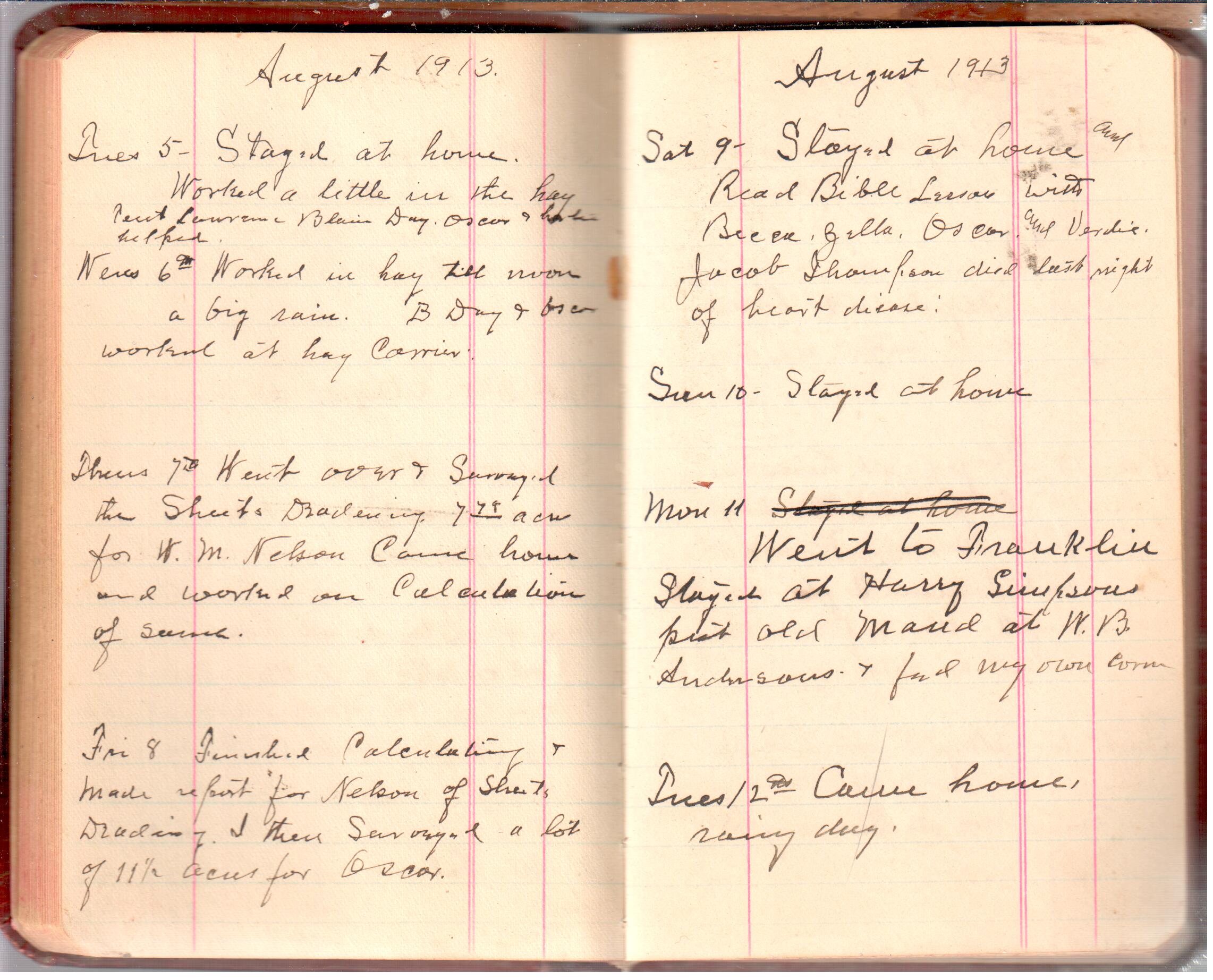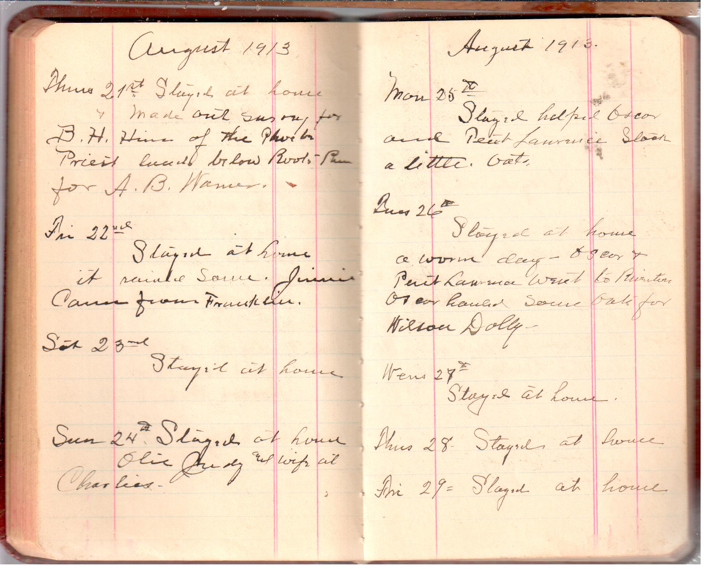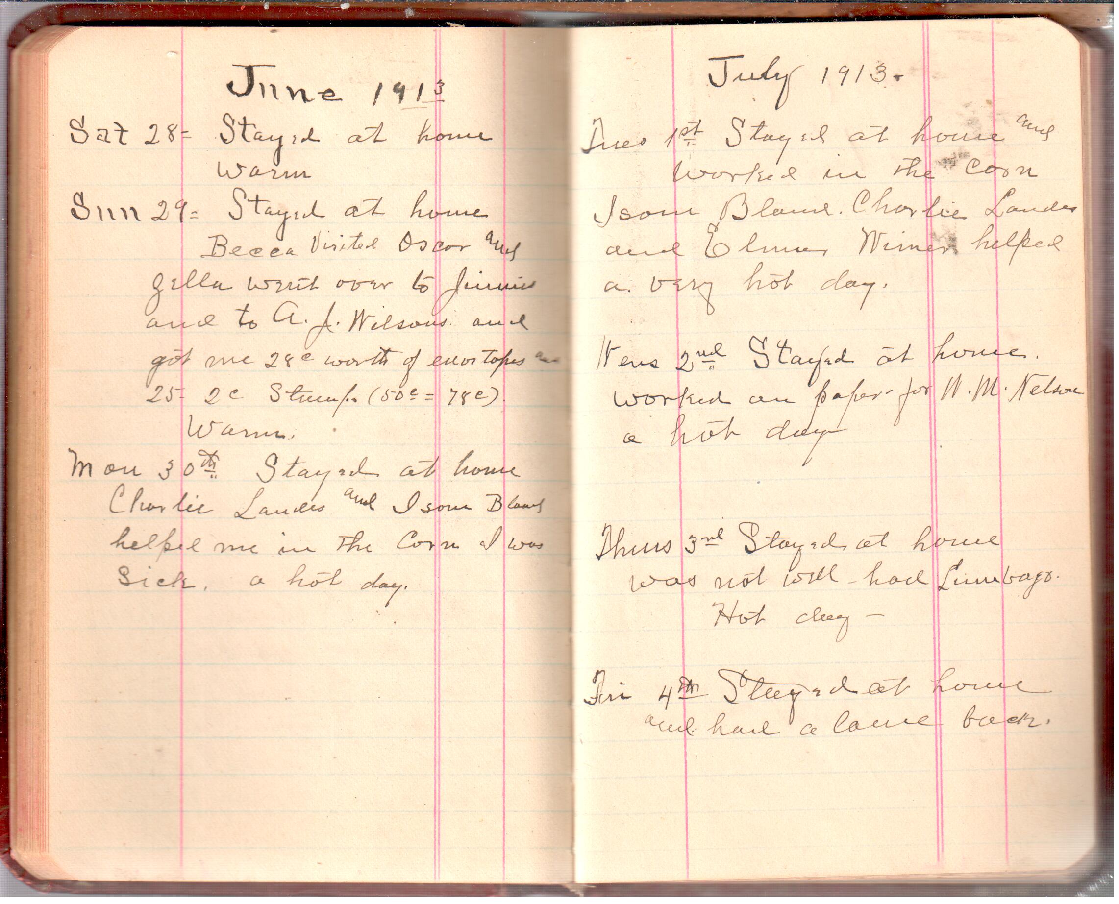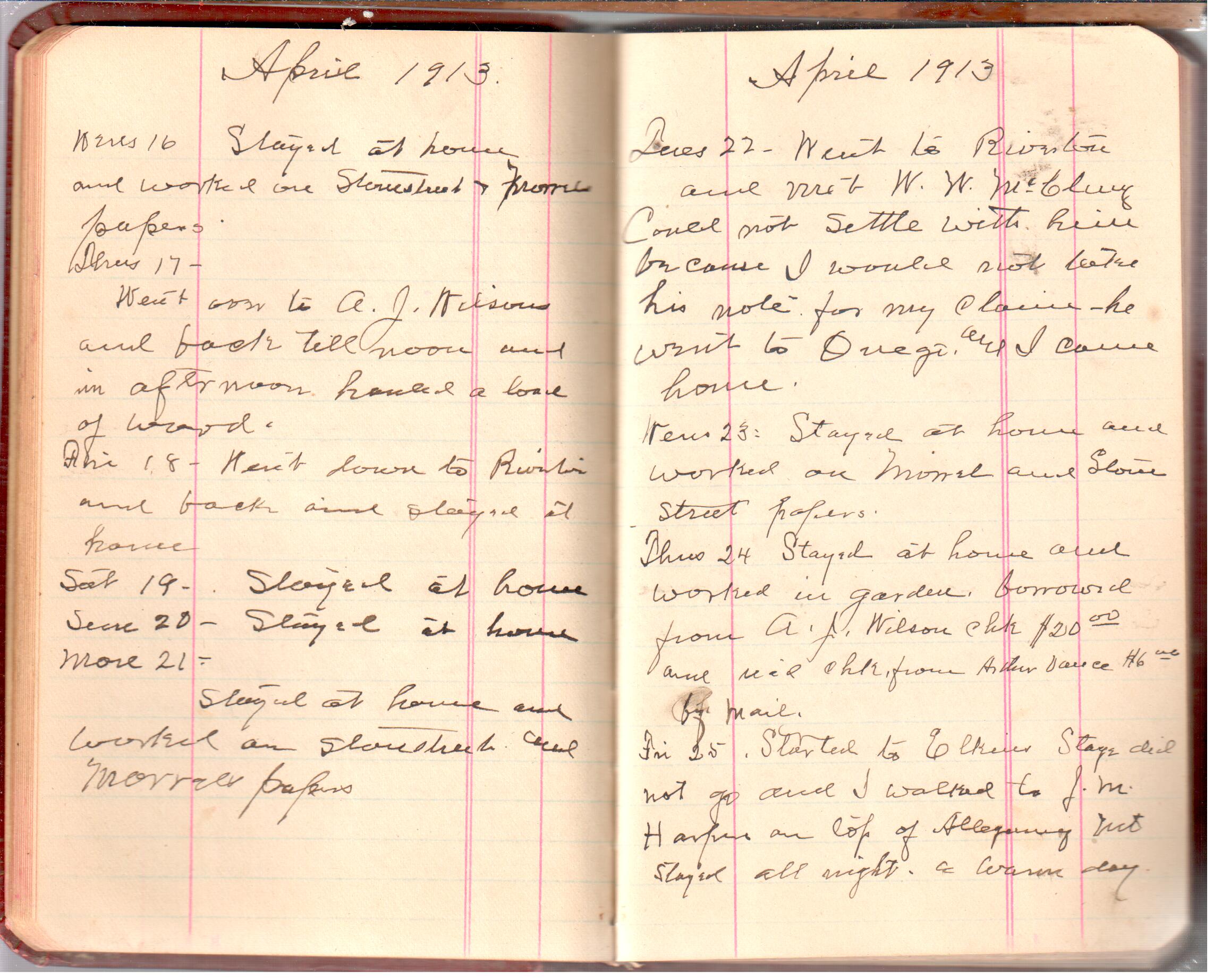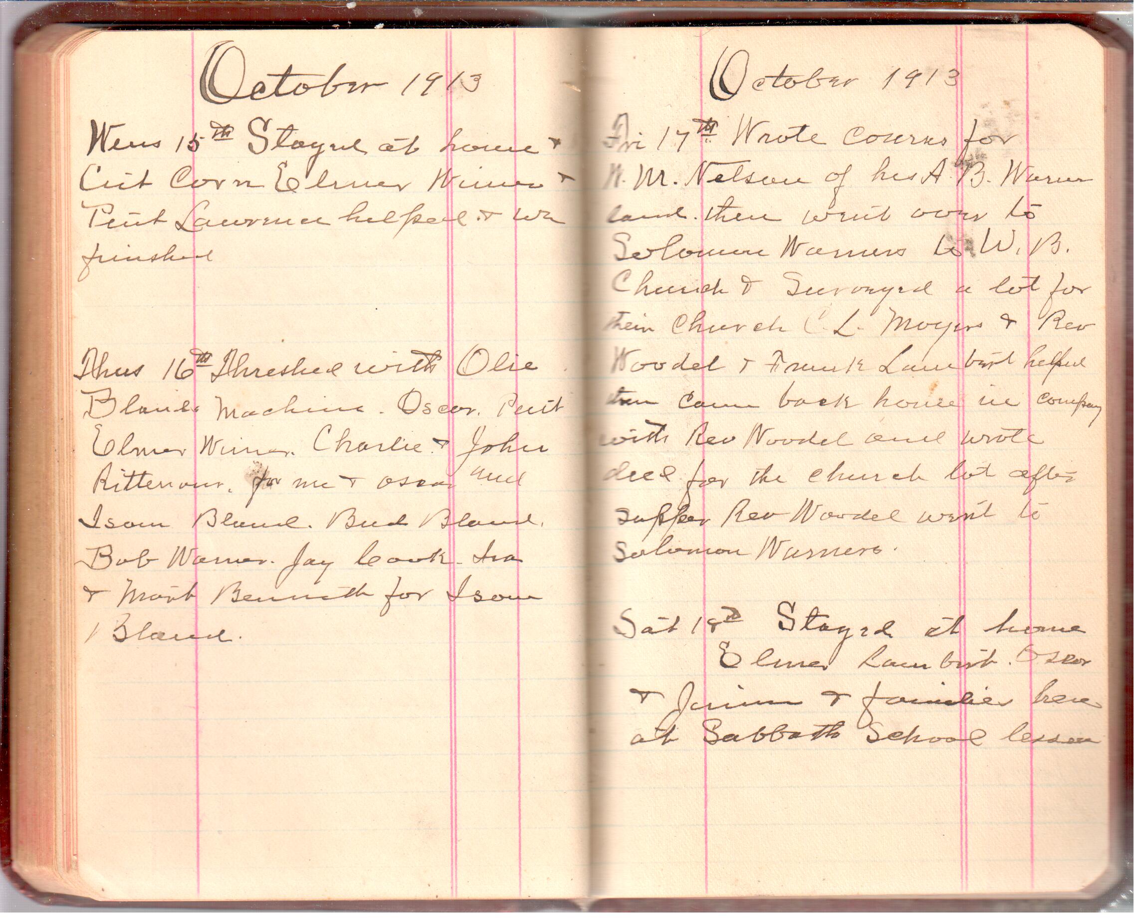 D. A. Landes Diaries: 1913 Use slideshow or see pages individually: Pages cover Pages 0-1 Pages 0-2 Pages 1-2 Pages 2-3 Pages 4-5 Pages 6-7 Pages 9-10 Pages 11-12 Pages 13-14 Pages 15-16 Pages 17-18 Pages 19-20 Pages 21-22 Pages 23-24 Pages 25-26 Pages 27-28 Pages 29-30 Pages 31-32 Pages 33-34 Pages 35-36 Pages 37-38 Pages 39-40 Pages 41-42 Pages 43-44 Pages 45-46 Pages 47-48 Pages 49-50 Pages 51-52 Pages 51-52b Pages 53-54 Pages 55-56 Pages 57-58 Pages 59-60 Pages 61-62 Pages 63-64 Pages 65-66 Pages 66-67 Pages 67-68 Pages 69-70 Pages 71-72 Pages 73-74 Pages 75-76 Pages 77-78 Pages 79-80 Pages 81-82 Pages 83-84 Pages 85-86 Pages 87-88 Pages 89-90 Pages 91-92 Pages 93-94 Pages 95-96 Pages 97-98 Pages 99-100 Pages 101-102