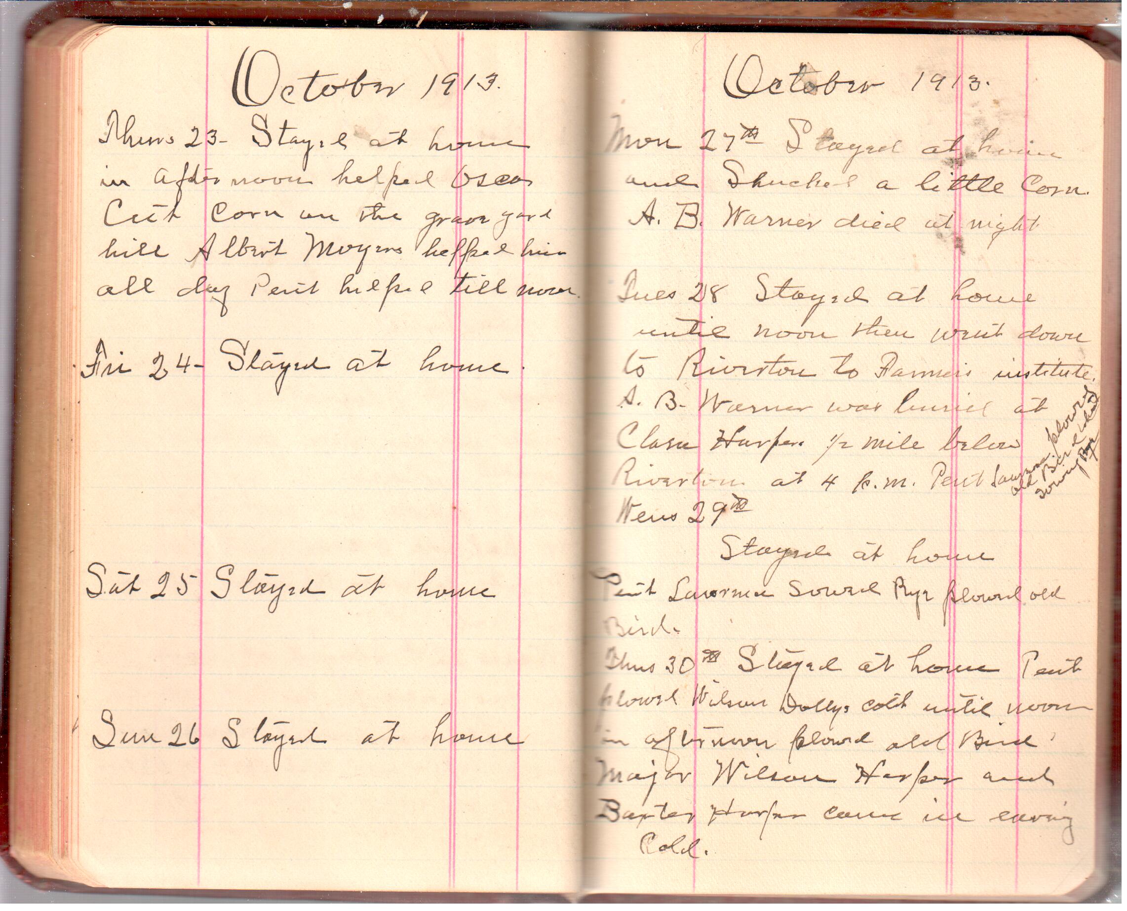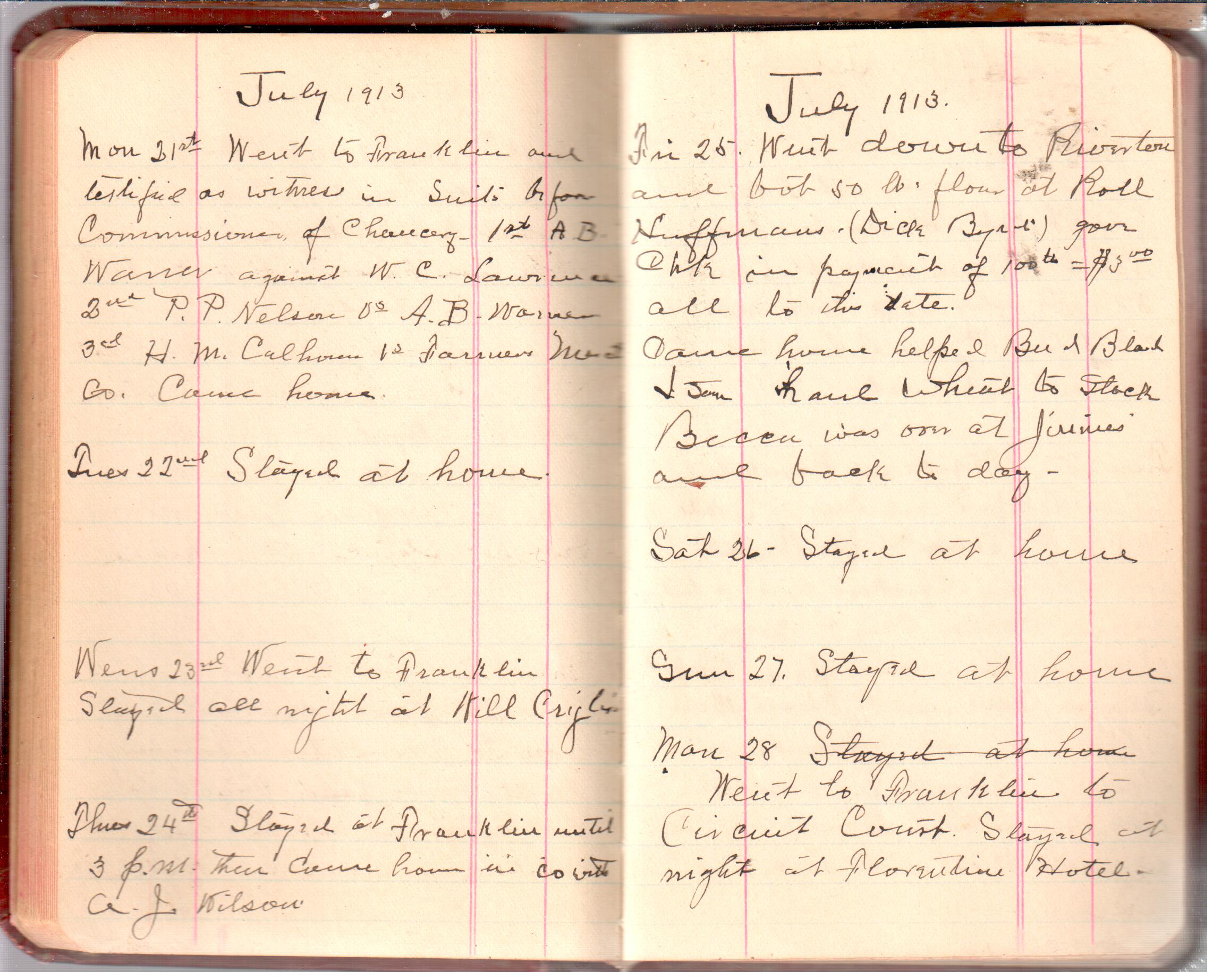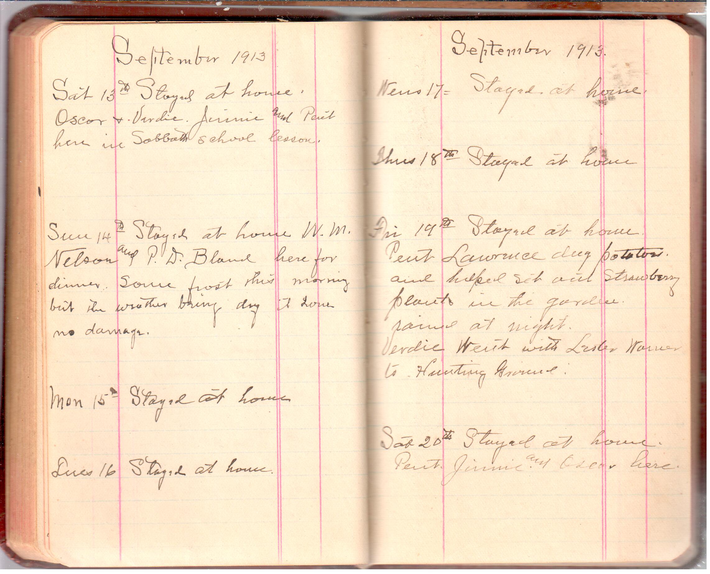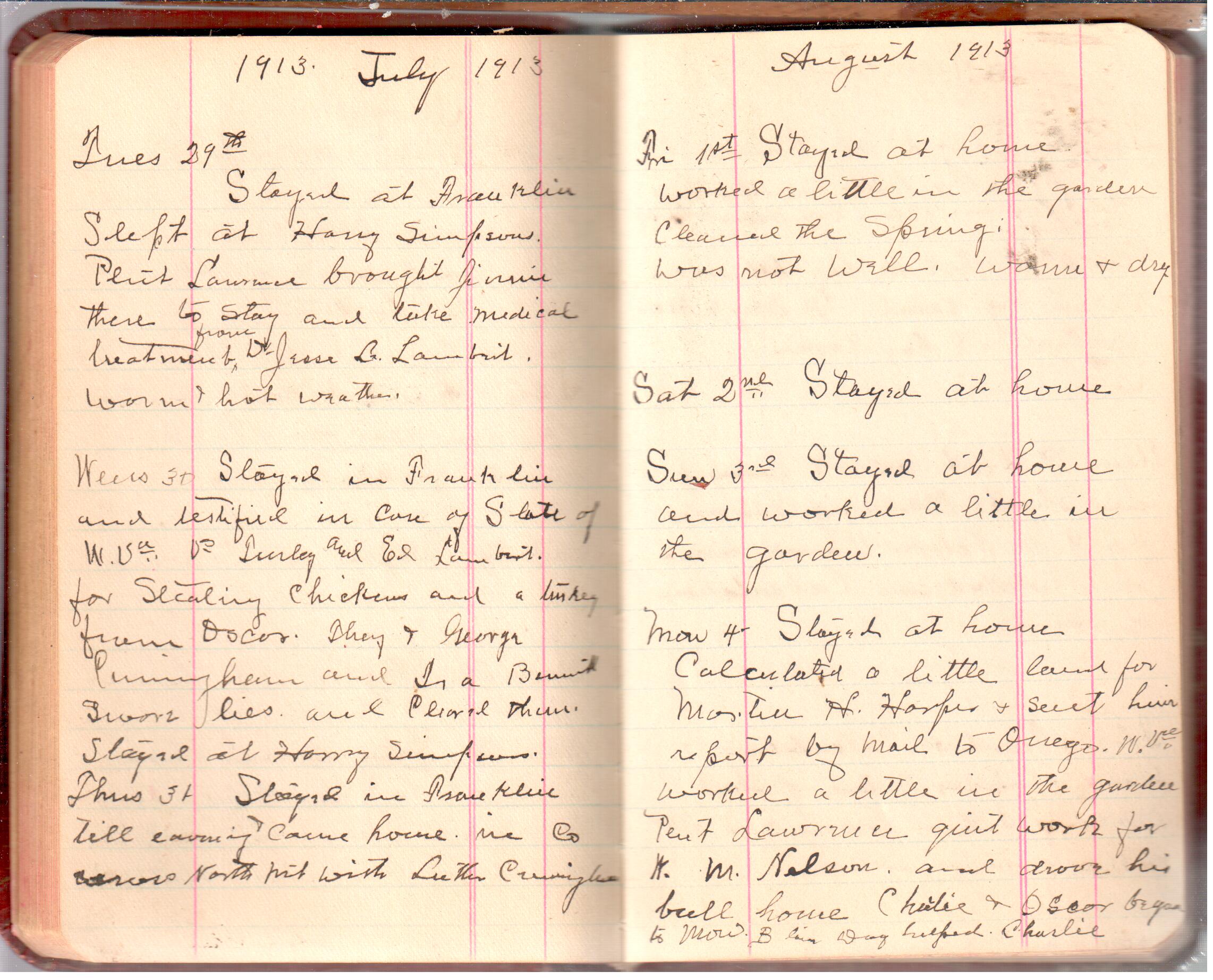 D. A. Landes Diaries: 1913 Use slideshow or see pages individually: Pages cover Pages 0-1 Pages 0-2 Pages 1-2 Pages 2-3 Pages 4-5 Pages 6-7 Pages 9-10 Pages 11-12 Pages 13-14 Pages 15-16 Pages 17-18 Pages 19-20 Pages 21-22 Pages 23-24 Pages 25-26 Pages 27-28 Pages 29-30 Pages 31-32 Pages 33-34 Pages 35-36 Pages 37-38 Pages 39-40 Pages 41-42 Pages 43-44 Pages 45-46 Pages 47-48 Pages 49-50 Pages 51-52 Pages 51-52b Pages 53-54 Pages 55-56 Pages 57-58 Pages 59-60 Pages 61-62 Pages 63-64 Pages 65-66 Pages 66-67 Pages 67-68 Pages 69-70 Pages 71-72 Pages 73-74 Pages 75-76 Pages 77-78 Pages 79-80 Pages 81-82 Pages 83-84 Pages 85-86 Pages 87-88 Pages 89-90 Pages 91-92 Pages 93-94 Pages 95-96 Pages 97-98 Pages 99-100 Pages 101-102