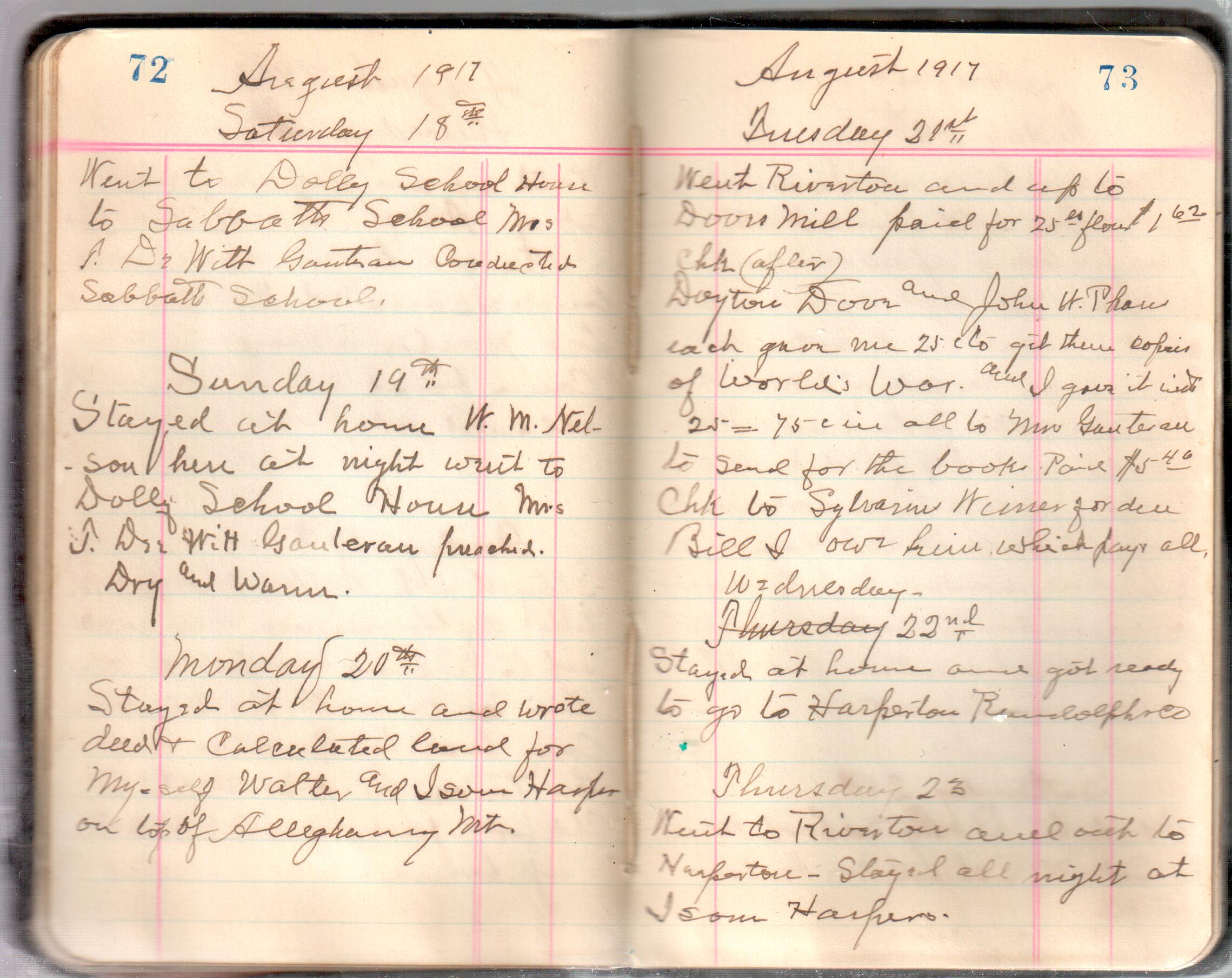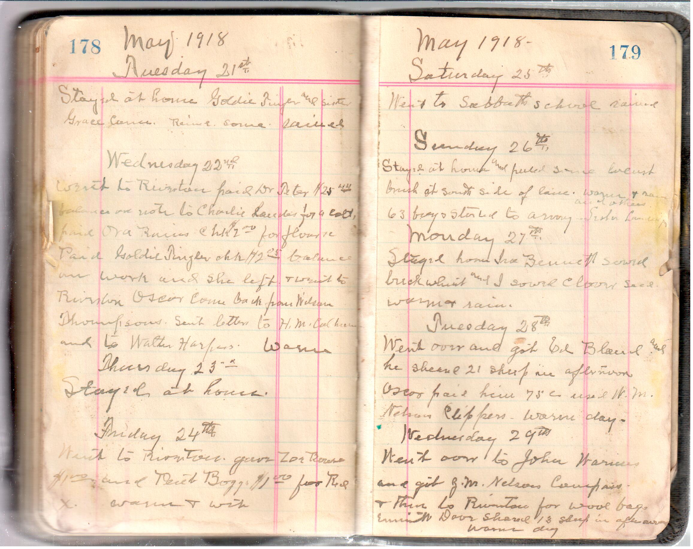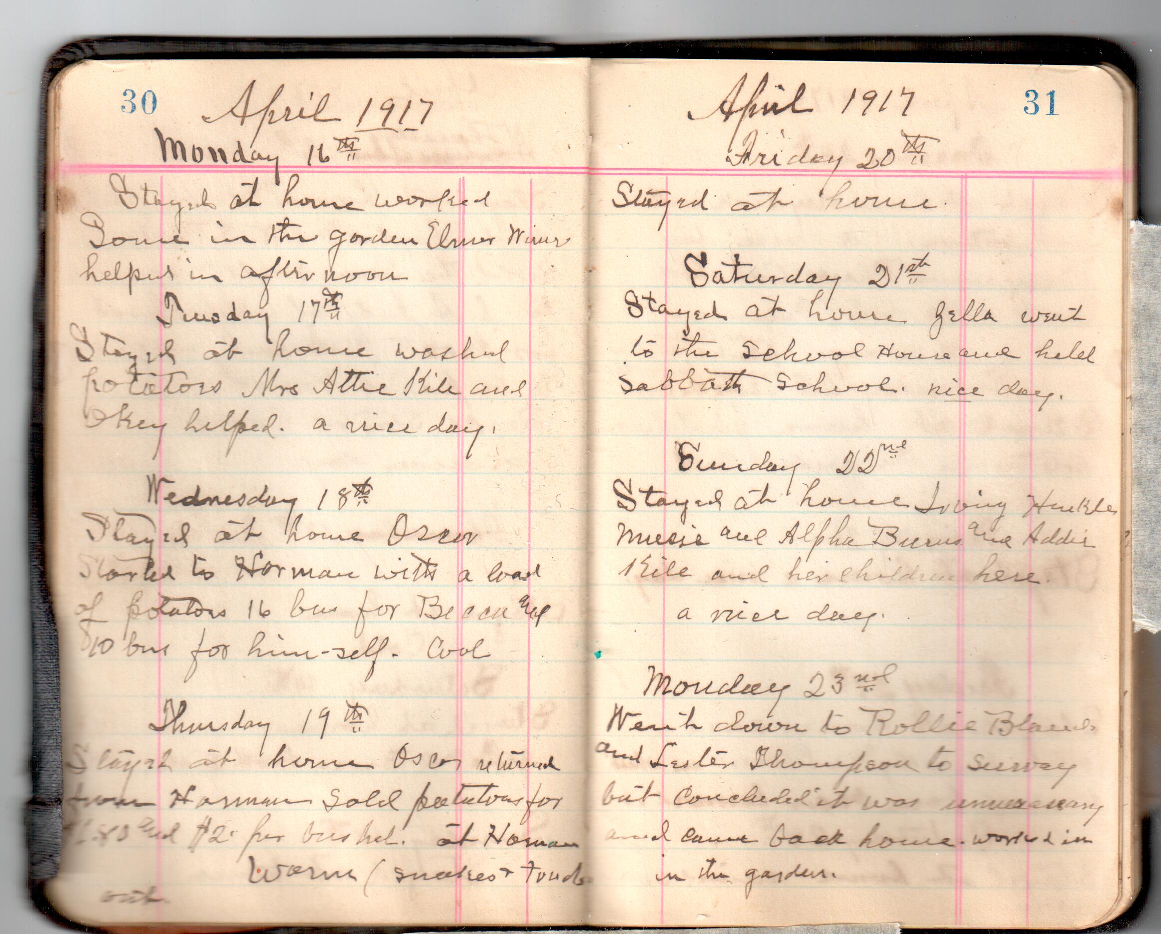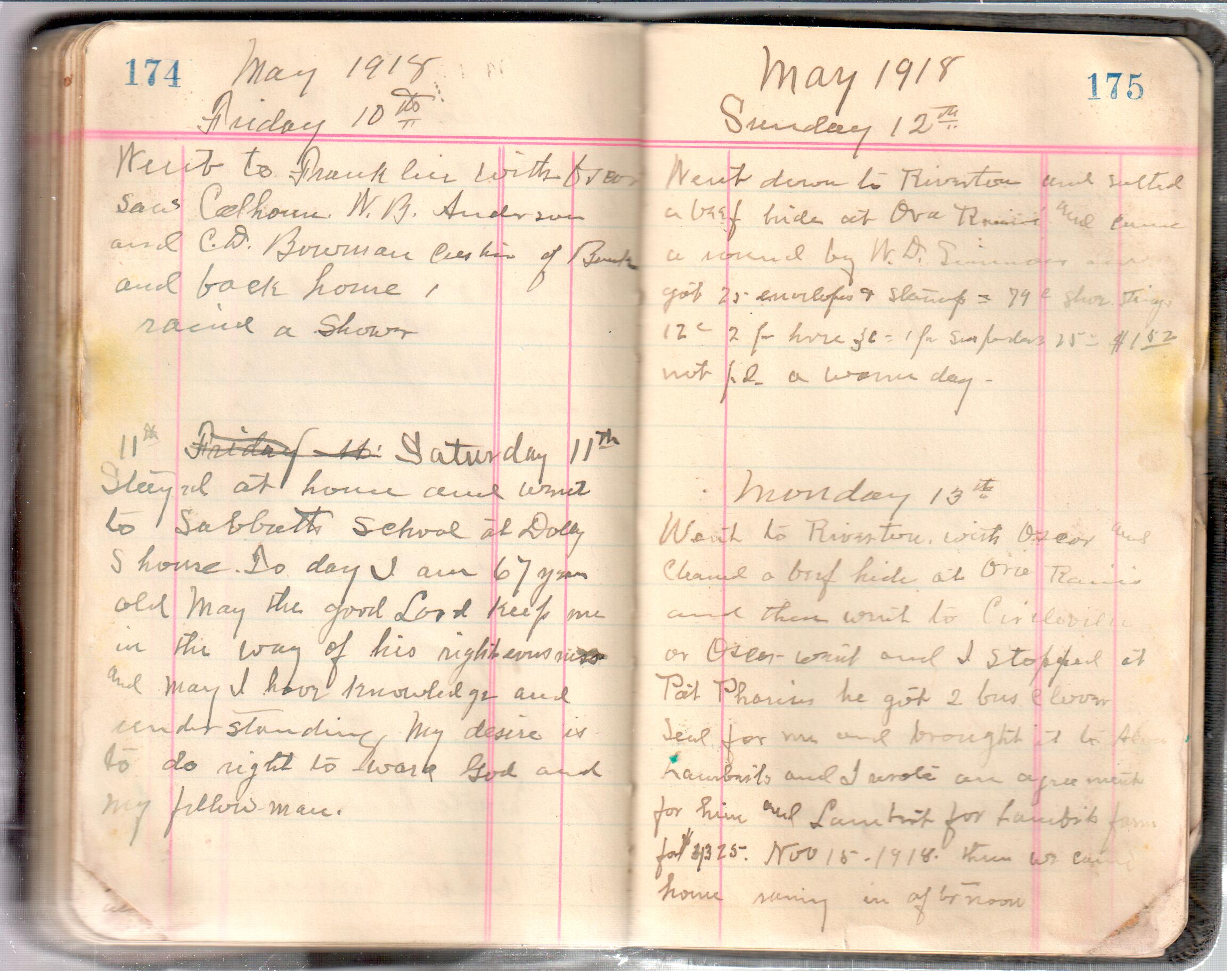 D. A. Landes Diaries: 1917-18 This diary spans January 1, 1917 - May 31, 1918. Use slideshow or see pages individually: Covers Inside Front Cover ABCD EFGH Pages 0-1 Pages 2-3 Pages 4-5 Pages 6-7 Pages 8-9 Pages 10-11 Pages 12-13 Pages 14-15 Pages 16-17 Pages 18-19 Pages 20-21 Pages 22-23 Pages 24-25 Pages 26-27 Pages 28-29 Pages 30-31 Pages 32-33 Pages 34-35 Pages 36-37 Pages 38-39 Pages 40-41 Pages 42-43 Pages 44-45 Pages 46-47 Pages 48-49 Pages 50-51 Pages 52-53 Pages 54-55 Pages 56-57 Pages 58-59 Pages 60-61 Pages 62-63 Pages 64-65 Pages 66-67 Pages 68-69 Pages 70-71 Pages 72-73 Pages 74-75 Pages 76-77 Pages 78-79 Pages 80-81 Pages 82-83 Pages 84-85 Pages 86-87 Pages 88-89 Pages 90-91 Pages 92-93 Pages 94-95 Pages 96-97 Pages 98-99 Pages 100-101 Pages 102-103 Pages 104-105 Pages 106-107 Pages 108-019 Pages 110-111 Pages 112-113 Pages 114-115 Pages 116-117 Pages 118-119 Pages 120-121 Pages 122-123 Pages 124-125 Pages 126-127 Pages 128-129 Pages 130-131 Pages 132-133 Pages 134-135 Pages 136-137 Pages 138-139 Pages 140-141 Pages 142-143 Pages 144-145 Pages 146-147 Pages 148-149 Pages 150-151 Pages 152-153 Pages 154-155 Pages 156-157 Pages 158-159 Pages 160-161 Pages 162-163 Pages 164-165 Pages 166-167 Pages 168-169 Pages 170-171 Pages 172-173 Pages 174-175 Pages 176-177 Pages 178-179 Pages 180-181 Pages 182-183