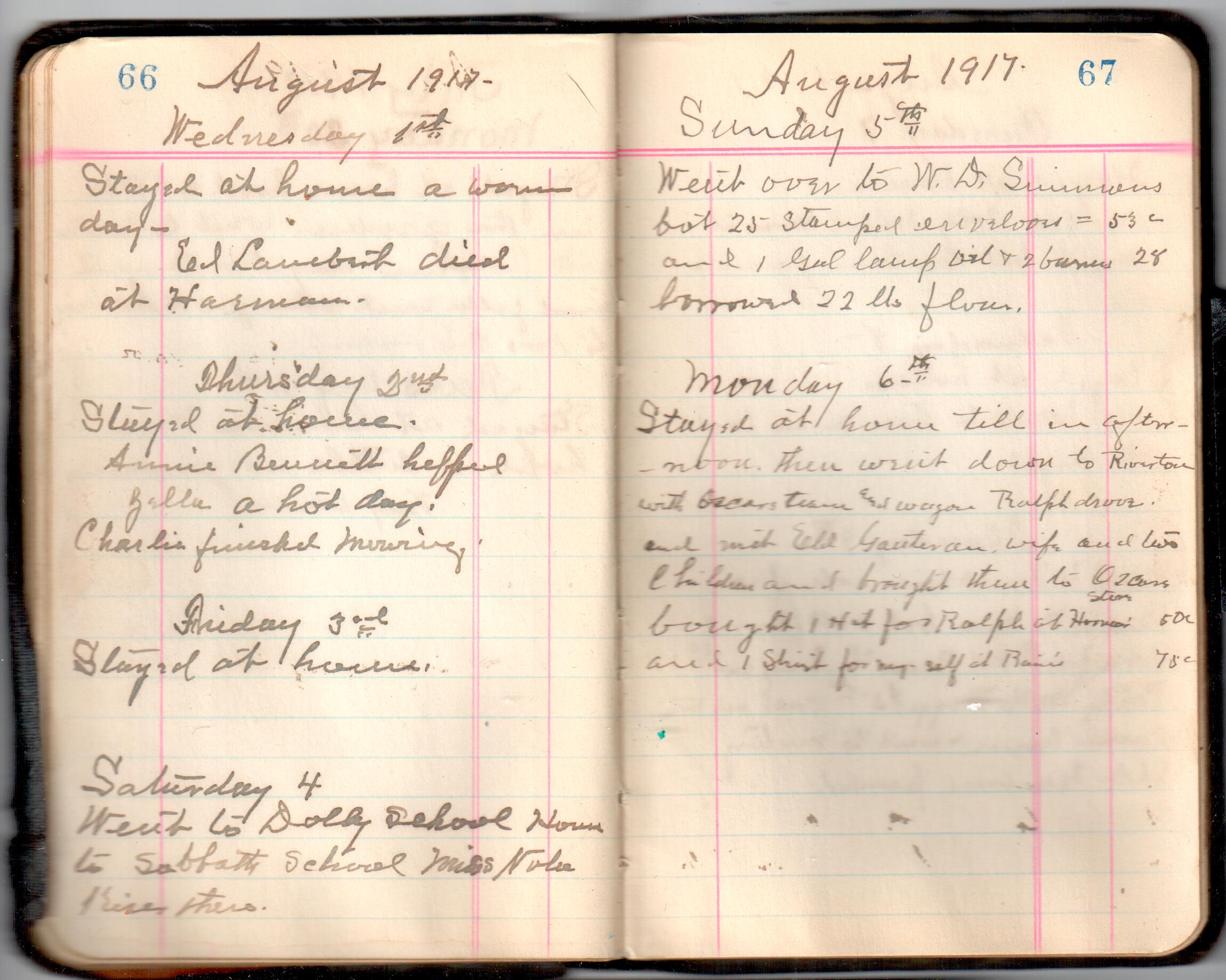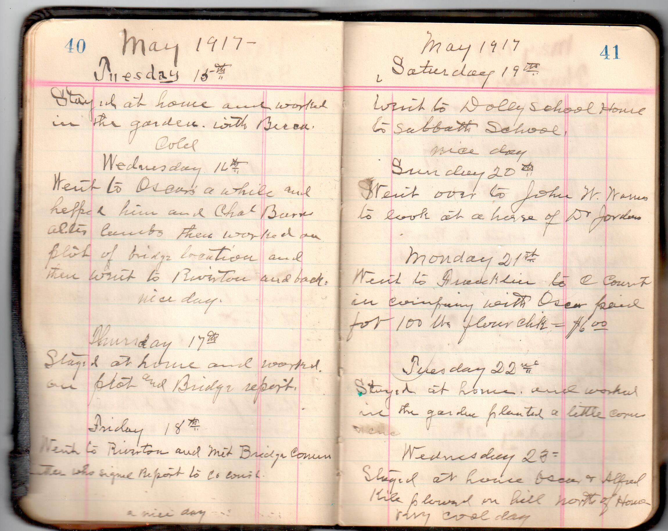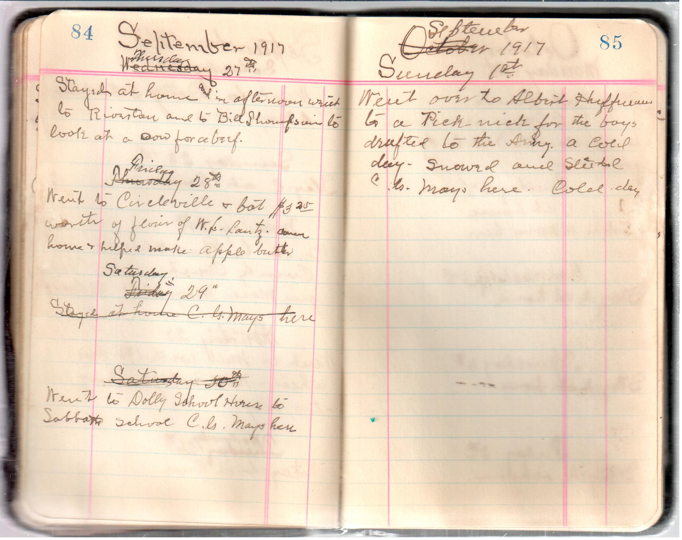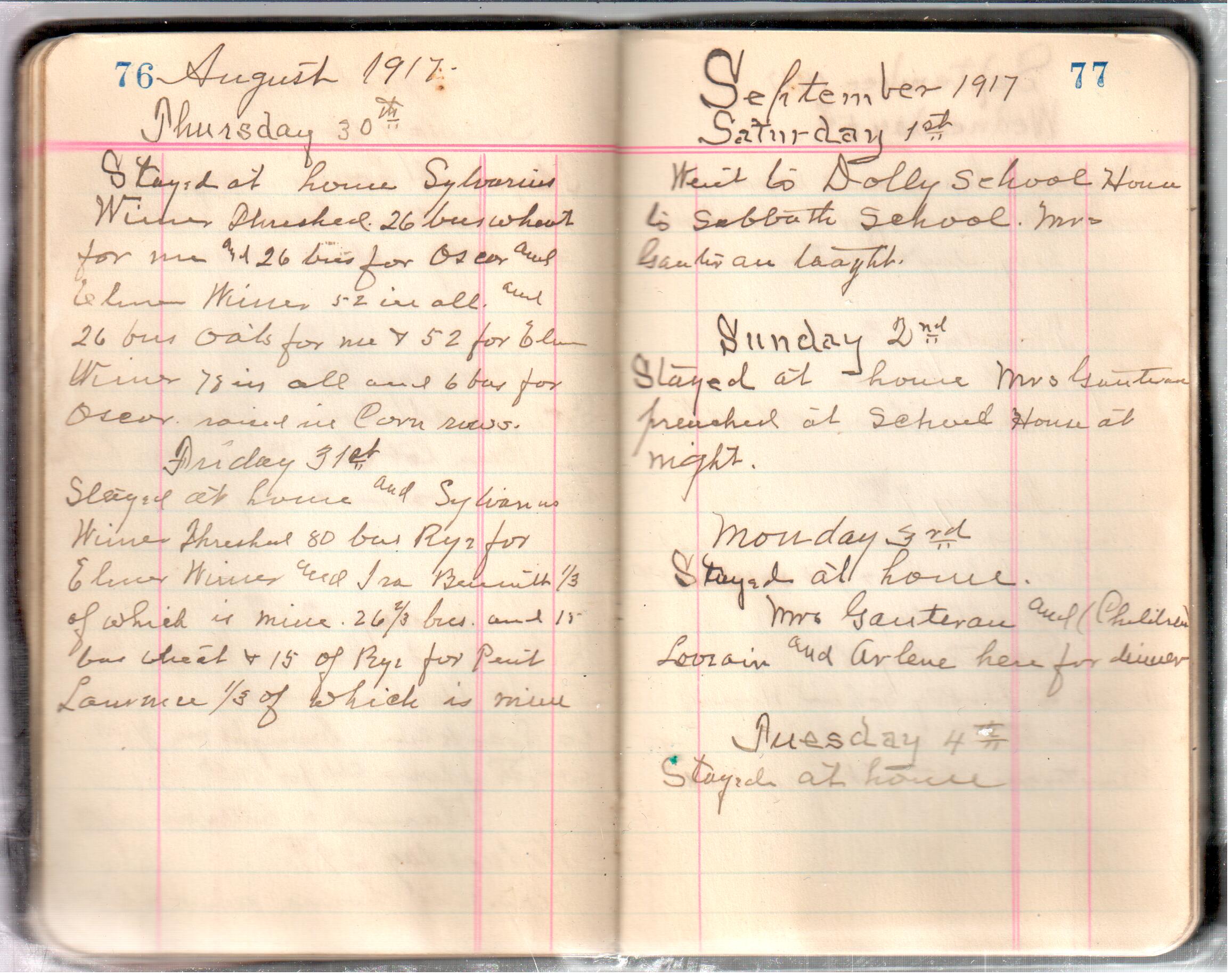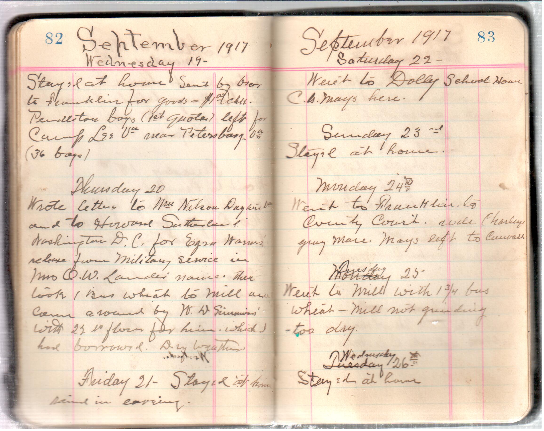 D. A. Landes Diaries: 1917-18 This diary spans January 1, 1917 - May 31, 1918. Use slideshow or see pages individually: Covers Inside Front Cover ABCD EFGH Pages 0-1 Pages 2-3 Pages 4-5 Pages 6-7 Pages 8-9 Pages 10-11 Pages 12-13 Pages 14-15 Pages 16-17 Pages 18-19 Pages 20-21 Pages 22-23 Pages 24-25 Pages 26-27 Pages 28-29 Pages 30-31 Pages 32-33 Pages 34-35 Pages 36-37 Pages 38-39 Pages 40-41 Pages 42-43 Pages 44-45 Pages 46-47 Pages 48-49 Pages 50-51 Pages 52-53 Pages 54-55 Pages 56-57 Pages 58-59 Pages 60-61 Pages 62-63 Pages 64-65 Pages 66-67 Pages 68-69 Pages 70-71 Pages 72-73 Pages 74-75 Pages 76-77 Pages 78-79 Pages 80-81 Pages 82-83 Pages 84-85 Pages 86-87 Pages 88-89 Pages 90-91 Pages 92-93 Pages 94-95 Pages 96-97 Pages 98-99 Pages 100-101 Pages 102-103 Pages 104-105 Pages 106-107 Pages 108-019 Pages 110-111 Pages 112-113 Pages 114-115 Pages 116-117 Pages 118-119 Pages 120-121 Pages 122-123 Pages 124-125 Pages 126-127 Pages 128-129 Pages 130-131 Pages 132-133 Pages 134-135 Pages 136-137 Pages 138-139 Pages 140-141 Pages 142-143 Pages 144-145 Pages 146-147 Pages 148-149 Pages 150-151 Pages 152-153 Pages 154-155 Pages 156-157 Pages 158-159 Pages 160-161 Pages 162-163 Pages 164-165 Pages 166-167 Pages 168-169 Pages 170-171 Pages 172-173 Pages 174-175 Pages 176-177 Pages 178-179 Pages 180-181 Pages 182-183