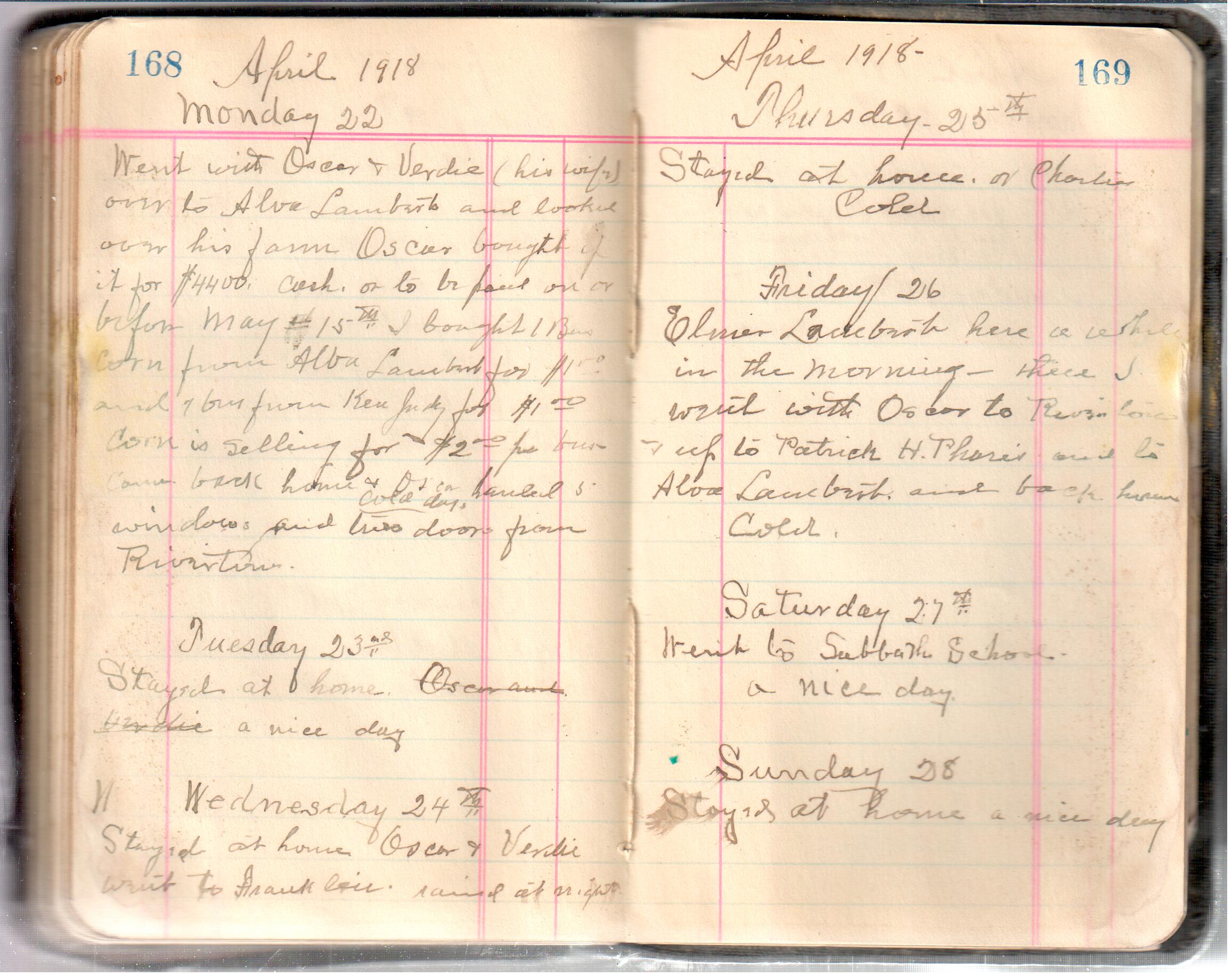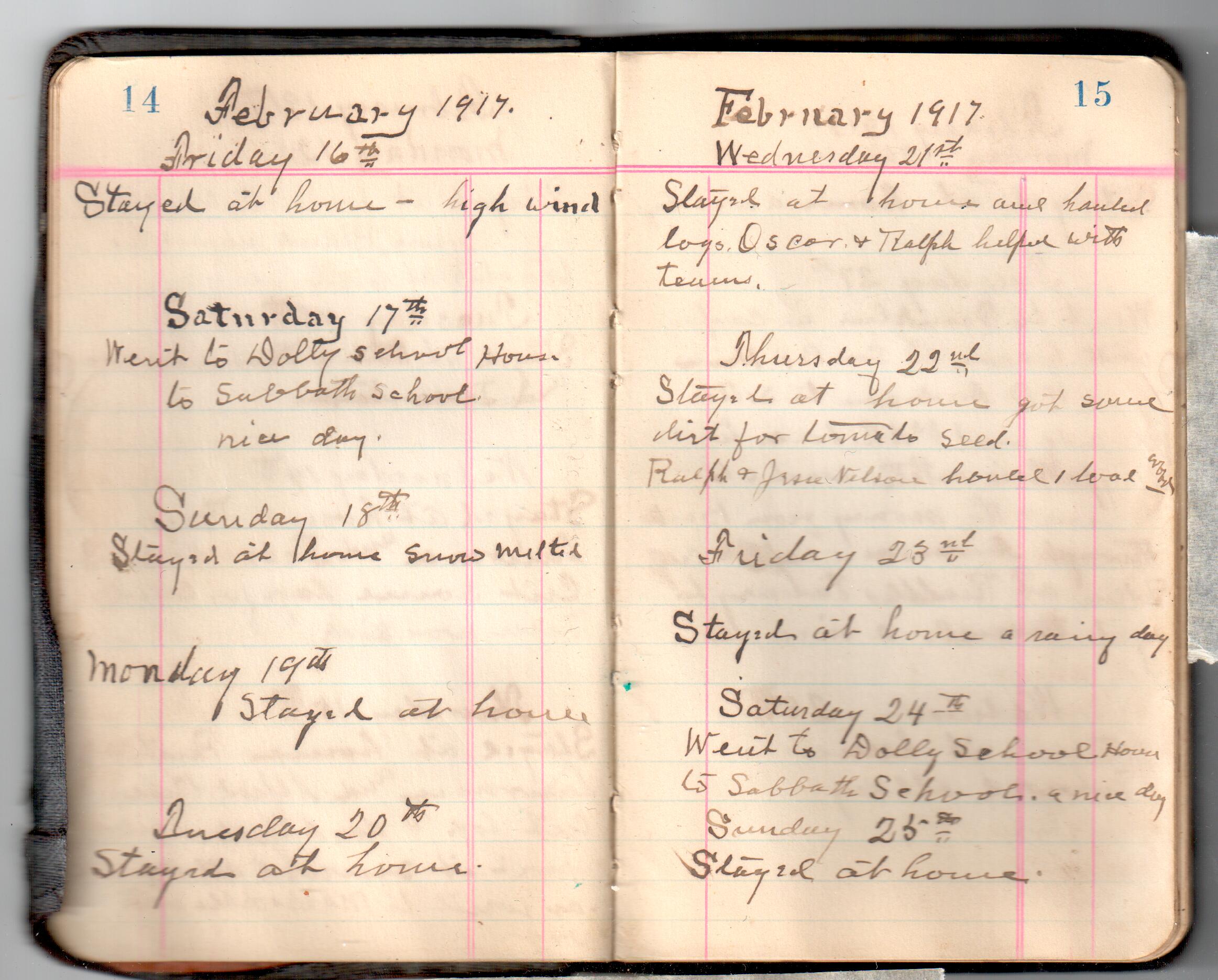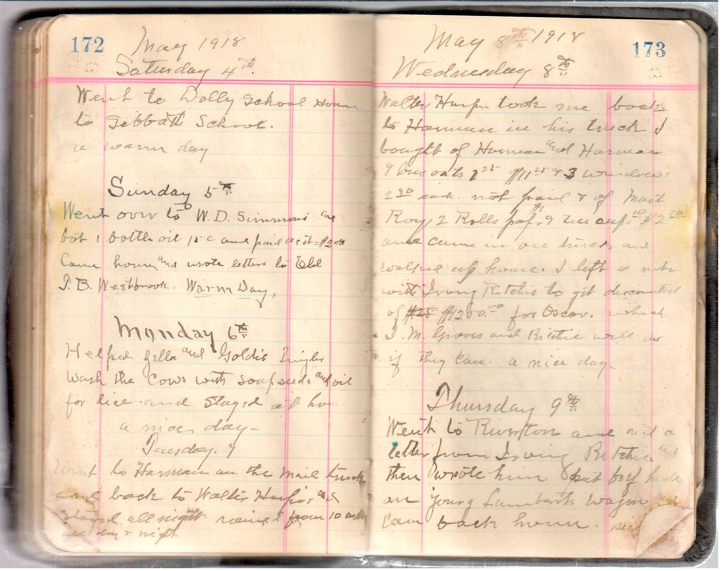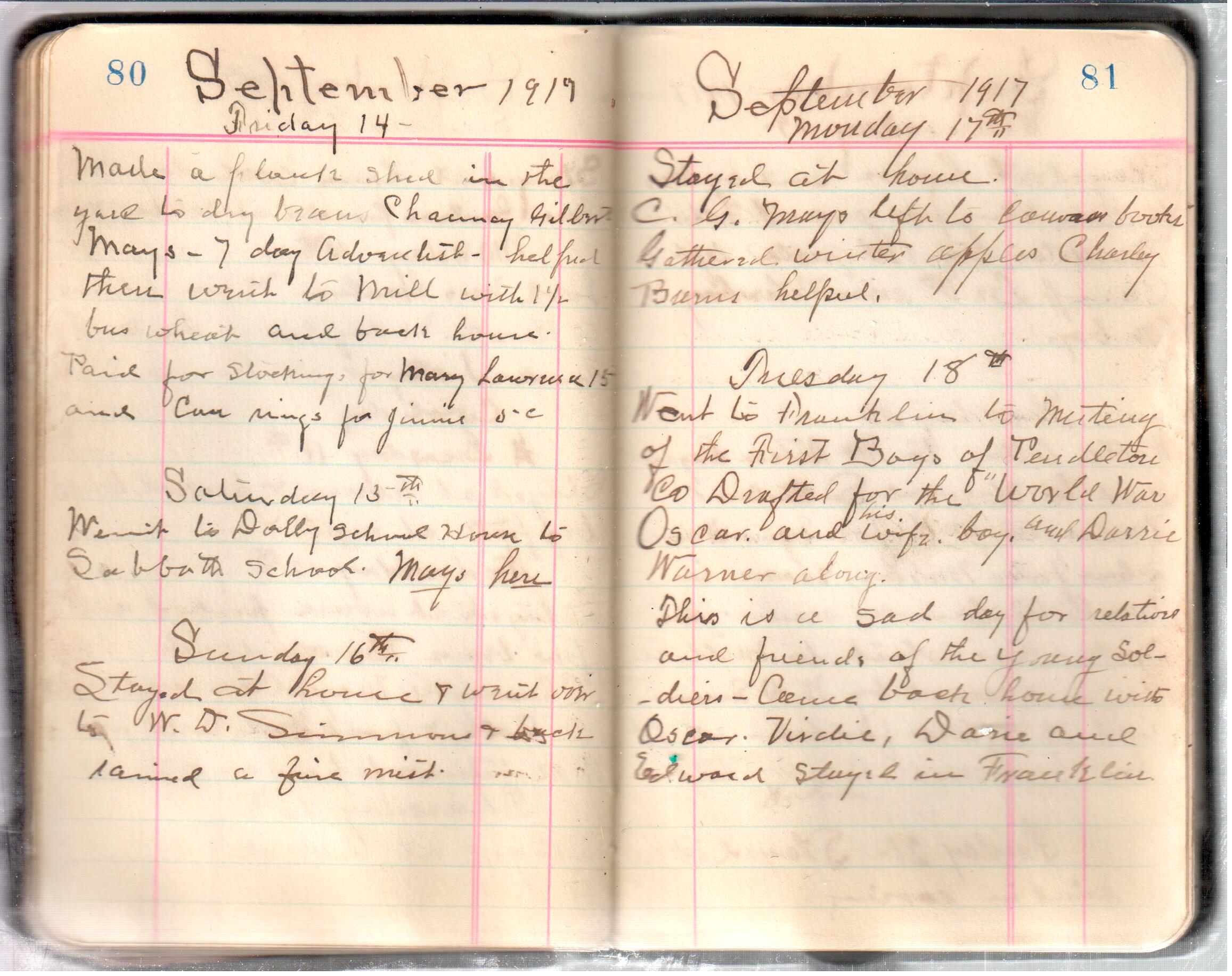 D. A. Landes Diaries: 1917-18 This diary spans January 1, 1917 - May 31, 1918. Use slideshow or see pages individually: Covers Inside Front Cover ABCD EFGH Pages 0-1 Pages 2-3 Pages 4-5 Pages 6-7 Pages 8-9 Pages 10-11 Pages 12-13 Pages 14-15 Pages 16-17 Pages 18-19 Pages 20-21 Pages 22-23 Pages 24-25 Pages 26-27 Pages 28-29 Pages 30-31 Pages 32-33 Pages 34-35 Pages 36-37 Pages 38-39 Pages 40-41 Pages 42-43 Pages 44-45 Pages 46-47 Pages 48-49 Pages 50-51 Pages 52-53 Pages 54-55 Pages 56-57 Pages 58-59 Pages 60-61 Pages 62-63 Pages 64-65 Pages 66-67 Pages 68-69 Pages 70-71 Pages 72-73 Pages 74-75 Pages 76-77 Pages 78-79 Pages 80-81 Pages 82-83 Pages 84-85 Pages 86-87 Pages 88-89 Pages 90-91 Pages 92-93 Pages 94-95 Pages 96-97 Pages 98-99 Pages 100-101 Pages 102-103 Pages 104-105 Pages 106-107 Pages 108-019 Pages 110-111 Pages 112-113 Pages 114-115 Pages 116-117 Pages 118-119 Pages 120-121 Pages 122-123 Pages 124-125 Pages 126-127 Pages 128-129 Pages 130-131 Pages 132-133 Pages 134-135 Pages 136-137 Pages 138-139 Pages 140-141 Pages 142-143 Pages 144-145 Pages 146-147 Pages 148-149 Pages 150-151 Pages 152-153 Pages 154-155 Pages 156-157 Pages 158-159 Pages 160-161 Pages 162-163 Pages 164-165 Pages 166-167 Pages 168-169 Pages 170-171 Pages 172-173 Pages 174-175 Pages 176-177 Pages 178-179 Pages 180-181 Pages 182-183