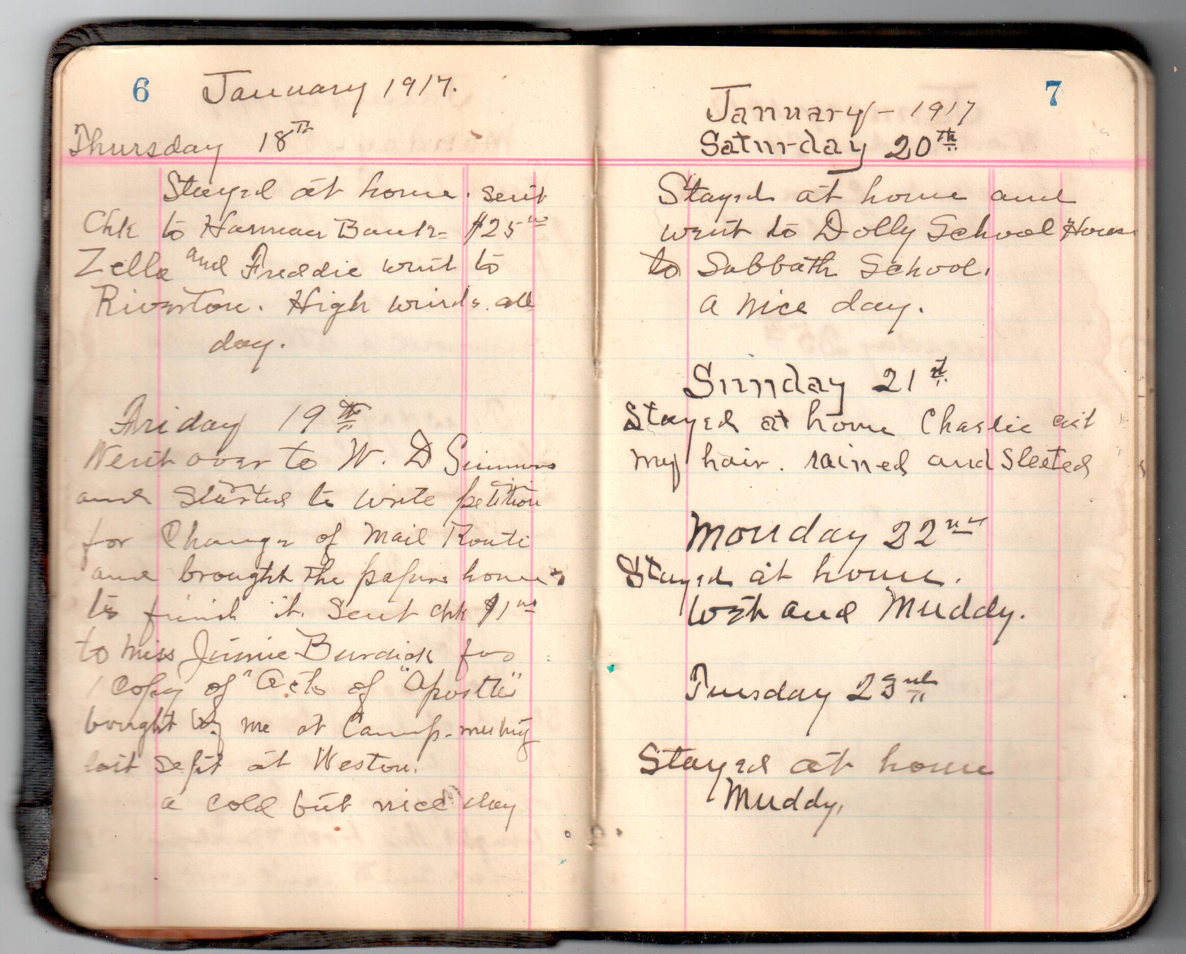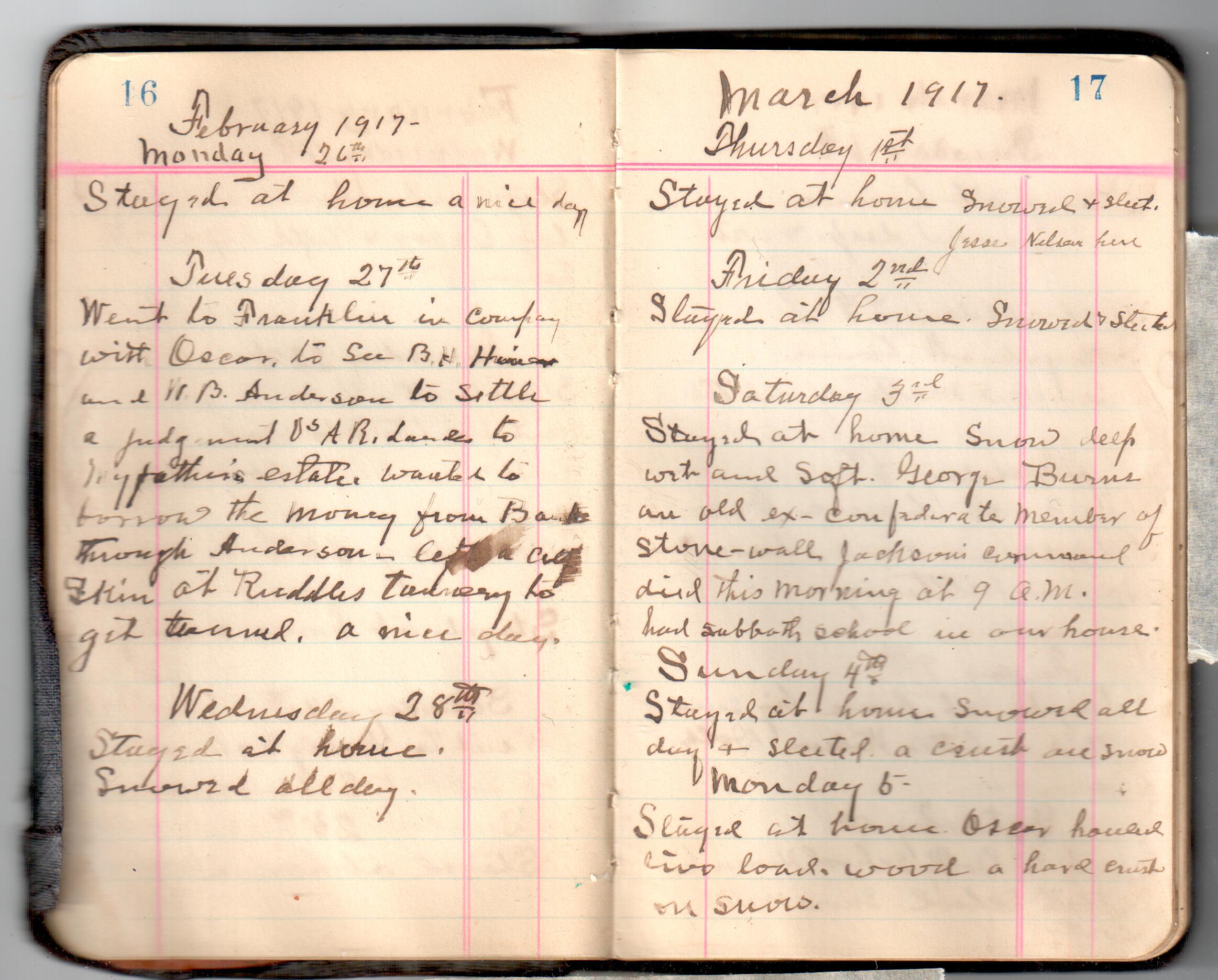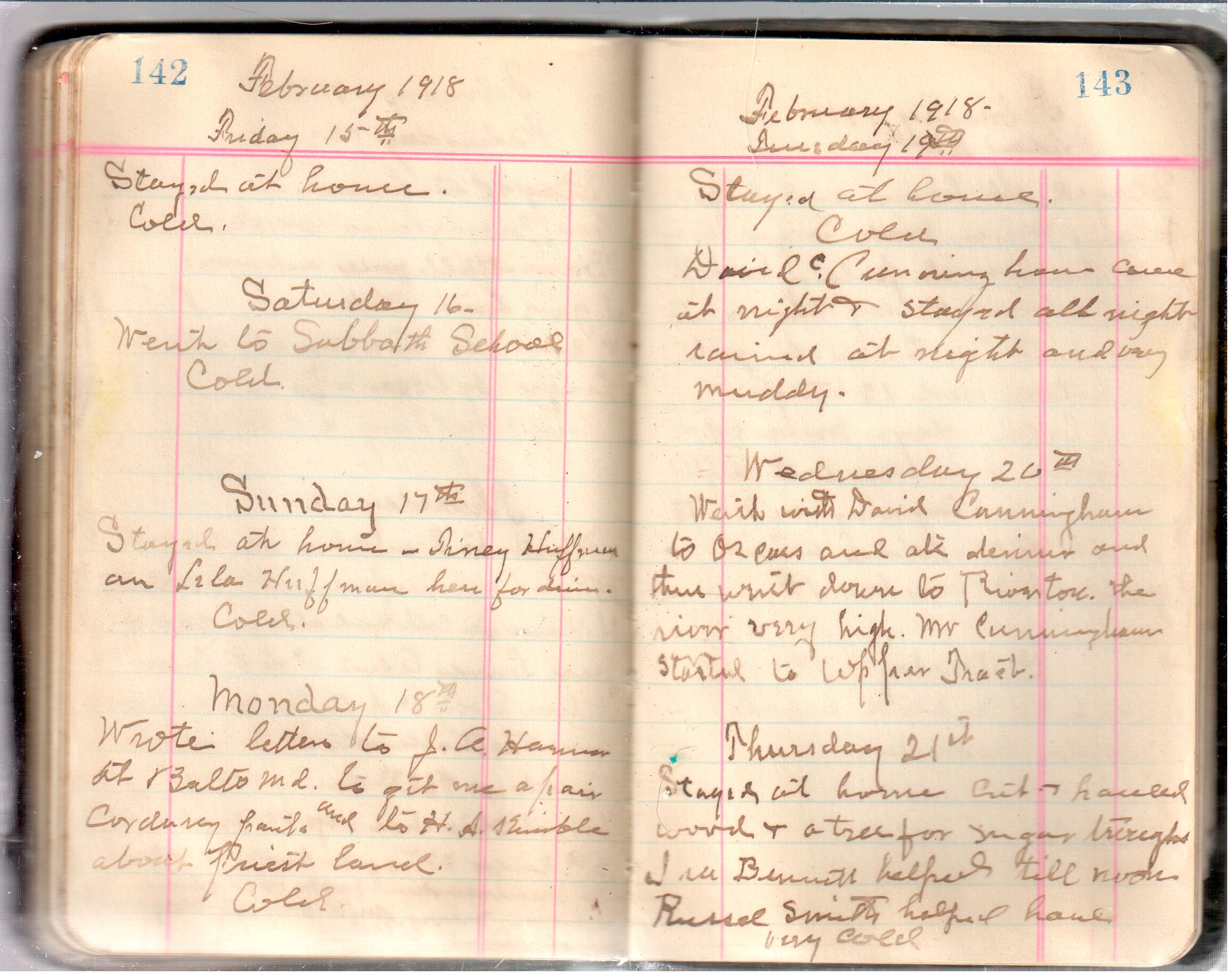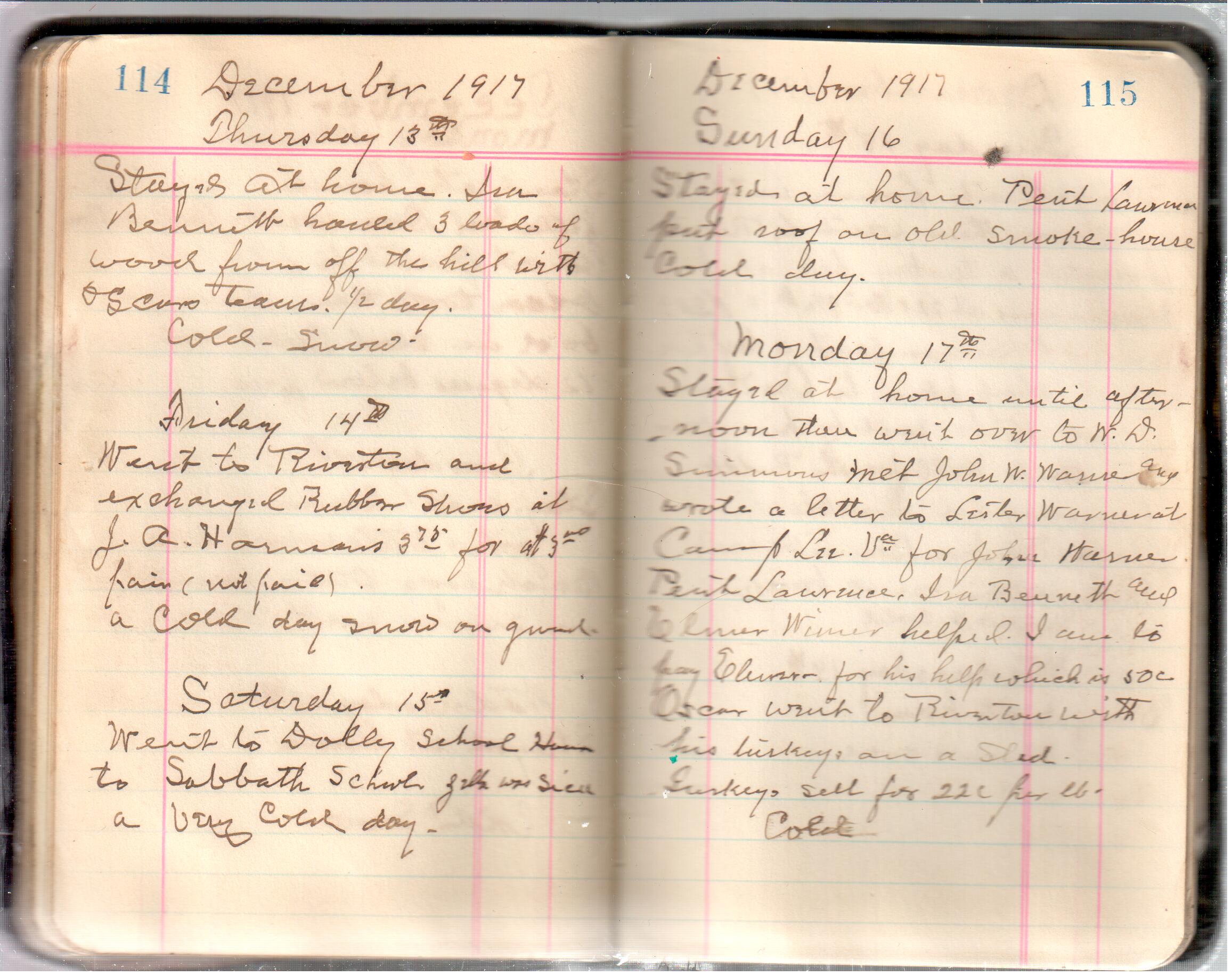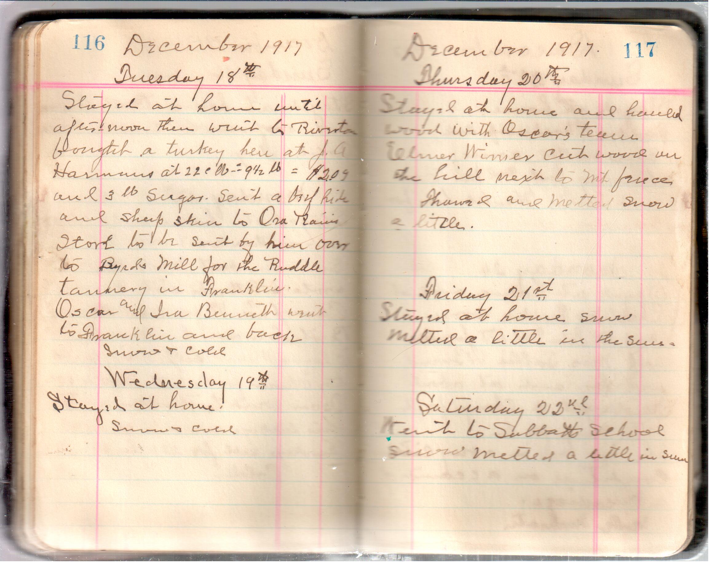 D. A. Landes Diaries: 1917-18 This diary spans January 1, 1917 - May 31, 1918. Use slideshow or see pages individually: Covers Inside Front Cover ABCD EFGH Pages 0-1 Pages 2-3 Pages 4-5 Pages 6-7 Pages 8-9 Pages 10-11 Pages 12-13 Pages 14-15 Pages 16-17 Pages 18-19 Pages 20-21 Pages 22-23 Pages 24-25 Pages 26-27 Pages 28-29 Pages 30-31 Pages 32-33 Pages 34-35 Pages 36-37 Pages 38-39 Pages 40-41 Pages 42-43 Pages 44-45 Pages 46-47 Pages 48-49 Pages 50-51 Pages 52-53 Pages 54-55 Pages 56-57 Pages 58-59 Pages 60-61 Pages 62-63 Pages 64-65 Pages 66-67 Pages 68-69 Pages 70-71 Pages 72-73 Pages 74-75 Pages 76-77 Pages 78-79 Pages 80-81 Pages 82-83 Pages 84-85 Pages 86-87 Pages 88-89 Pages 90-91 Pages 92-93 Pages 94-95 Pages 96-97 Pages 98-99 Pages 100-101 Pages 102-103 Pages 104-105 Pages 106-107 Pages 108-019 Pages 110-111 Pages 112-113 Pages 114-115 Pages 116-117 Pages 118-119 Pages 120-121 Pages 122-123 Pages 124-125 Pages 126-127 Pages 128-129 Pages 130-131 Pages 132-133 Pages 134-135 Pages 136-137 Pages 138-139 Pages 140-141 Pages 142-143 Pages 144-145 Pages 146-147 Pages 148-149 Pages 150-151 Pages 152-153 Pages 154-155 Pages 156-157 Pages 158-159 Pages 160-161 Pages 162-163 Pages 164-165 Pages 166-167 Pages 168-169 Pages 170-171 Pages 172-173 Pages 174-175 Pages 176-177 Pages 178-179 Pages 180-181 Pages 182-183