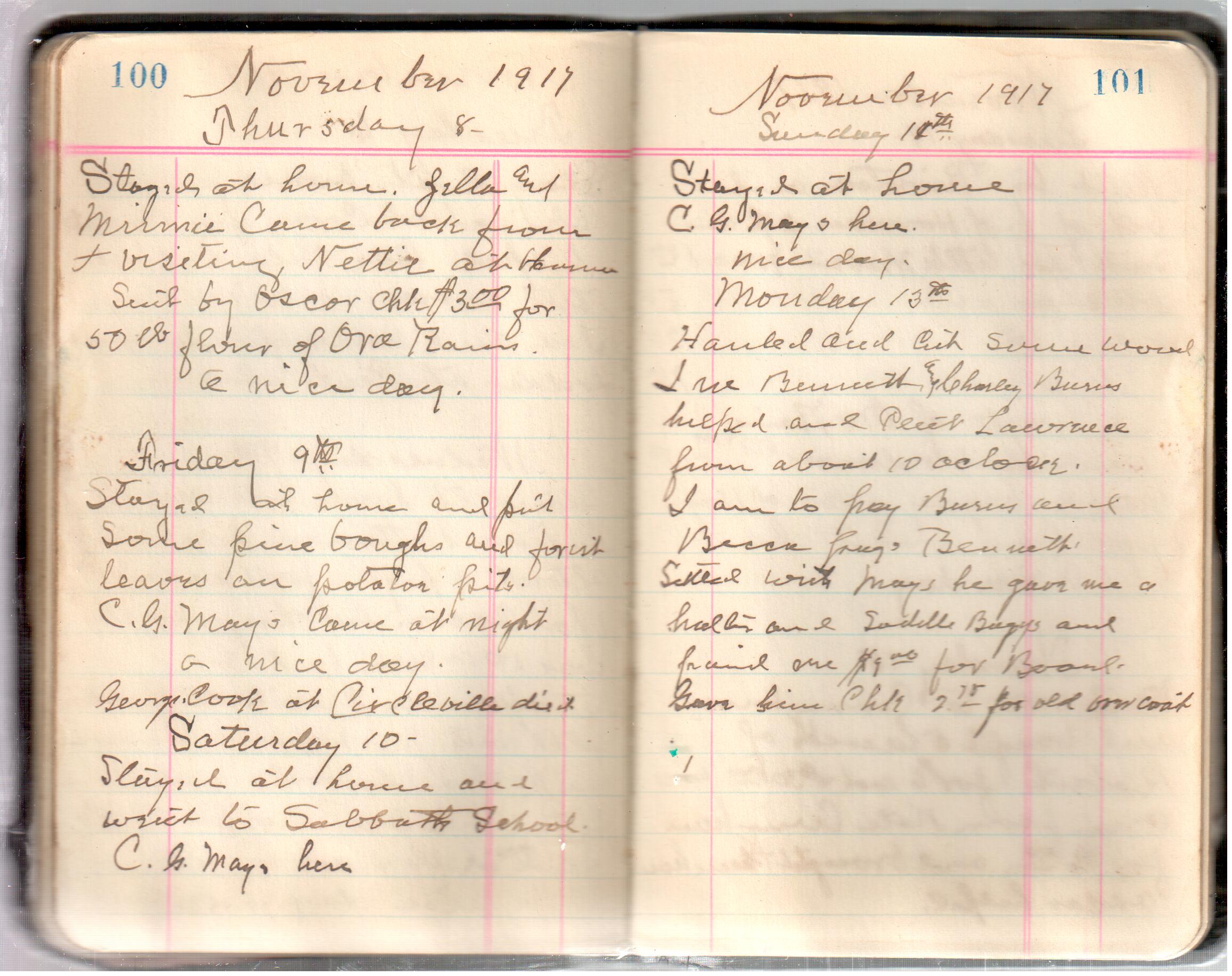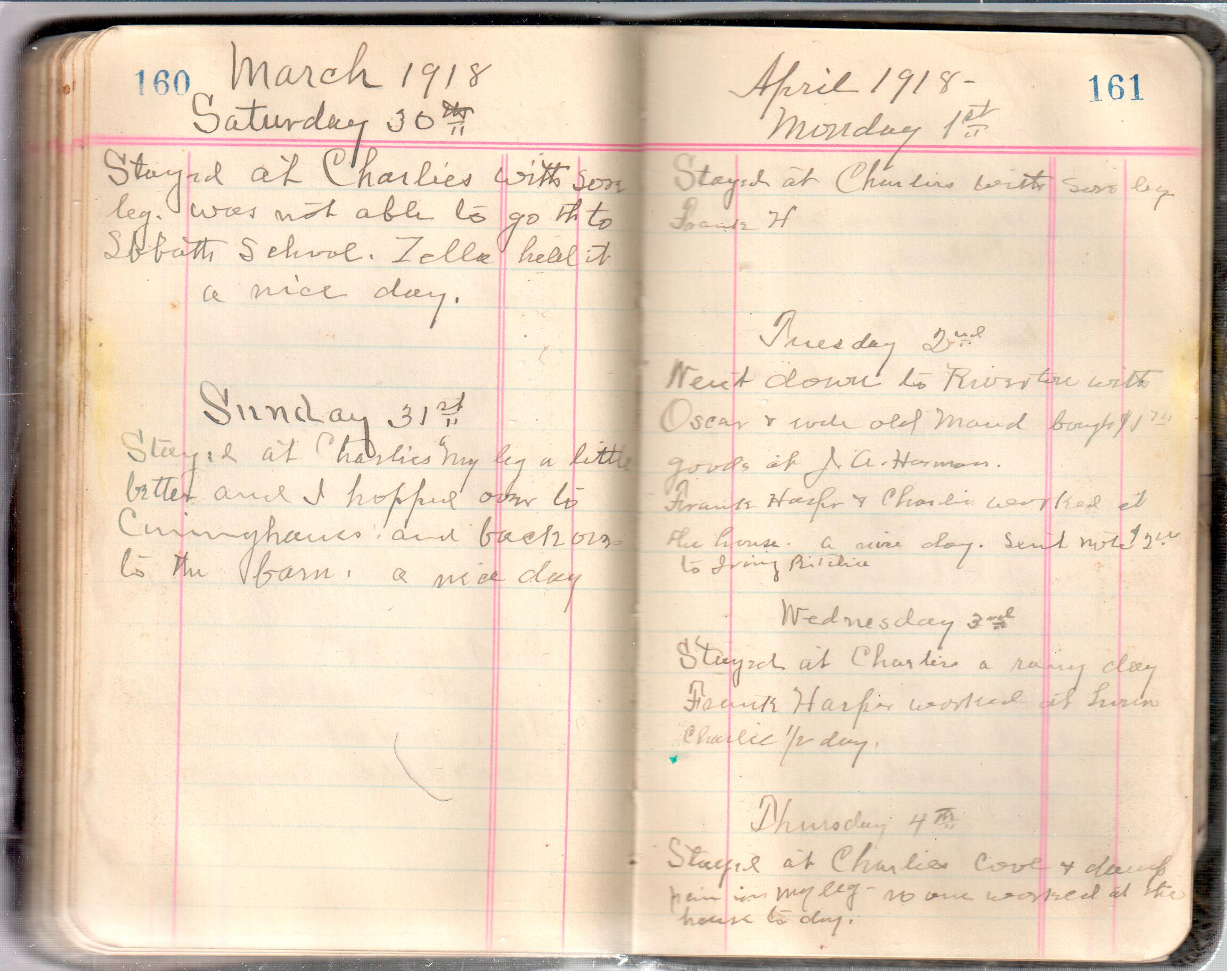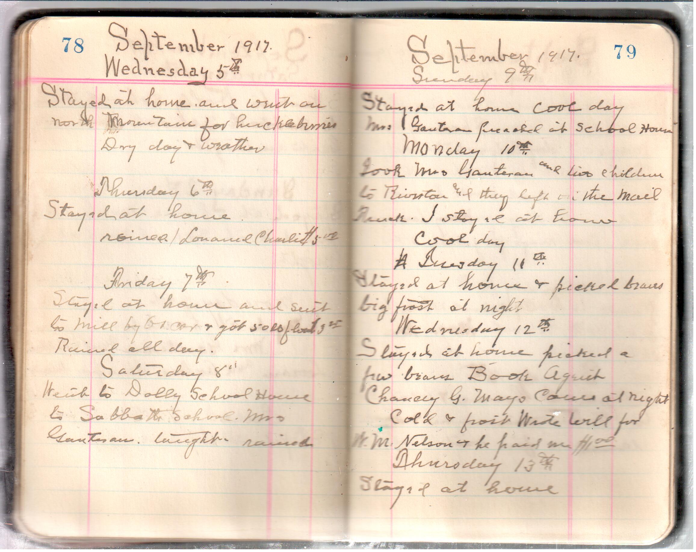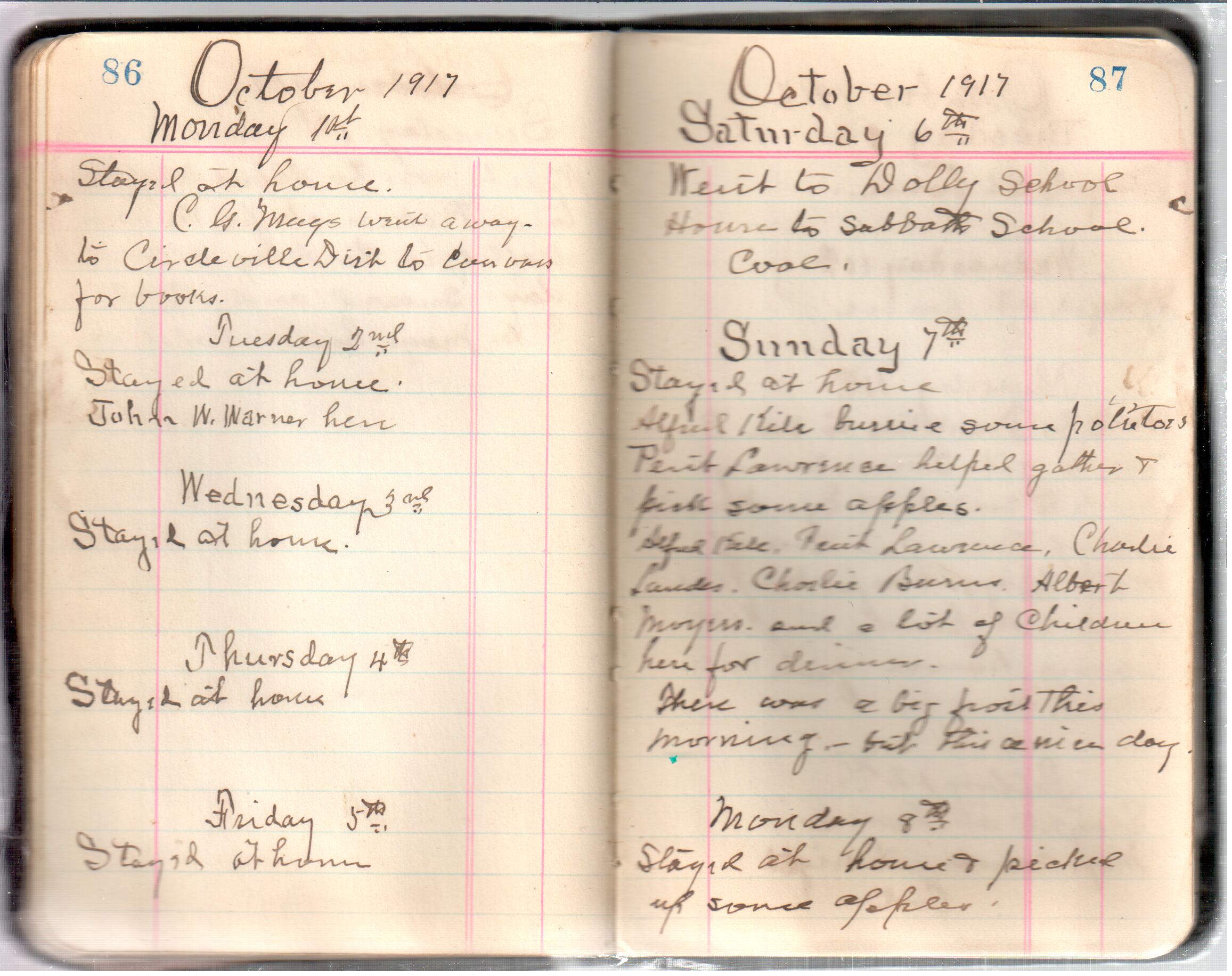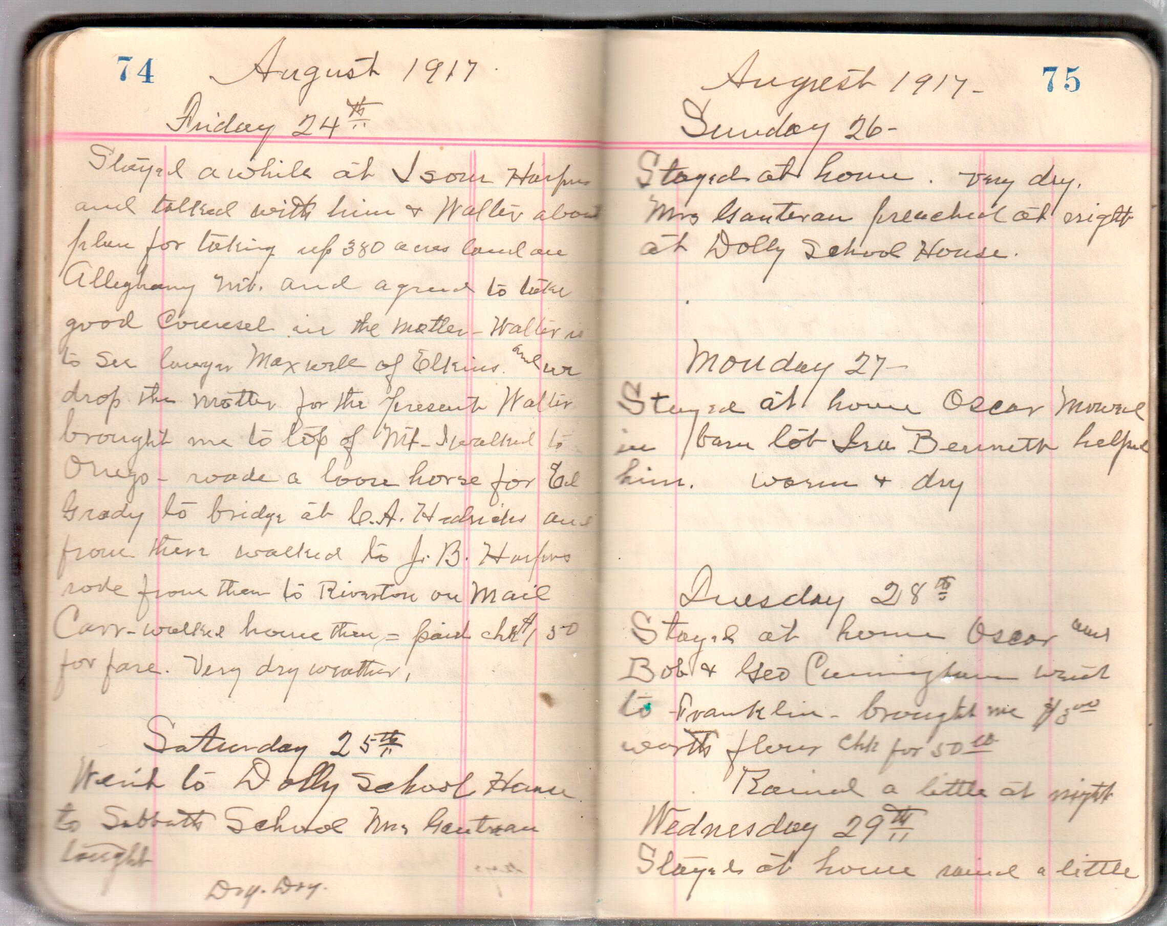 D. A. Landes Diaries: 1917-18 This diary spans January 1, 1917 - May 31, 1918. Use slideshow or see pages individually: Covers Inside Front Cover ABCD EFGH Pages 0-1 Pages 2-3 Pages 4-5 Pages 6-7 Pages 8-9 Pages 10-11 Pages 12-13 Pages 14-15 Pages 16-17 Pages 18-19 Pages 20-21 Pages 22-23 Pages 24-25 Pages 26-27 Pages 28-29 Pages 30-31 Pages 32-33 Pages 34-35 Pages 36-37 Pages 38-39 Pages 40-41 Pages 42-43 Pages 44-45 Pages 46-47 Pages 48-49 Pages 50-51 Pages 52-53 Pages 54-55 Pages 56-57 Pages 58-59 Pages 60-61 Pages 62-63 Pages 64-65 Pages 66-67 Pages 68-69 Pages 70-71 Pages 72-73 Pages 74-75 Pages 76-77 Pages 78-79 Pages 80-81 Pages 82-83 Pages 84-85 Pages 86-87 Pages 88-89 Pages 90-91 Pages 92-93 Pages 94-95 Pages 96-97 Pages 98-99 Pages 100-101 Pages 102-103 Pages 104-105 Pages 106-107 Pages 108-019 Pages 110-111 Pages 112-113 Pages 114-115 Pages 116-117 Pages 118-119 Pages 120-121 Pages 122-123 Pages 124-125 Pages 126-127 Pages 128-129 Pages 130-131 Pages 132-133 Pages 134-135 Pages 136-137 Pages 138-139 Pages 140-141 Pages 142-143 Pages 144-145 Pages 146-147 Pages 148-149 Pages 150-151 Pages 152-153 Pages 154-155 Pages 156-157 Pages 158-159 Pages 160-161 Pages 162-163 Pages 164-165 Pages 166-167 Pages 168-169 Pages 170-171 Pages 172-173 Pages 174-175 Pages 176-177 Pages 178-179 Pages 180-181 Pages 182-183