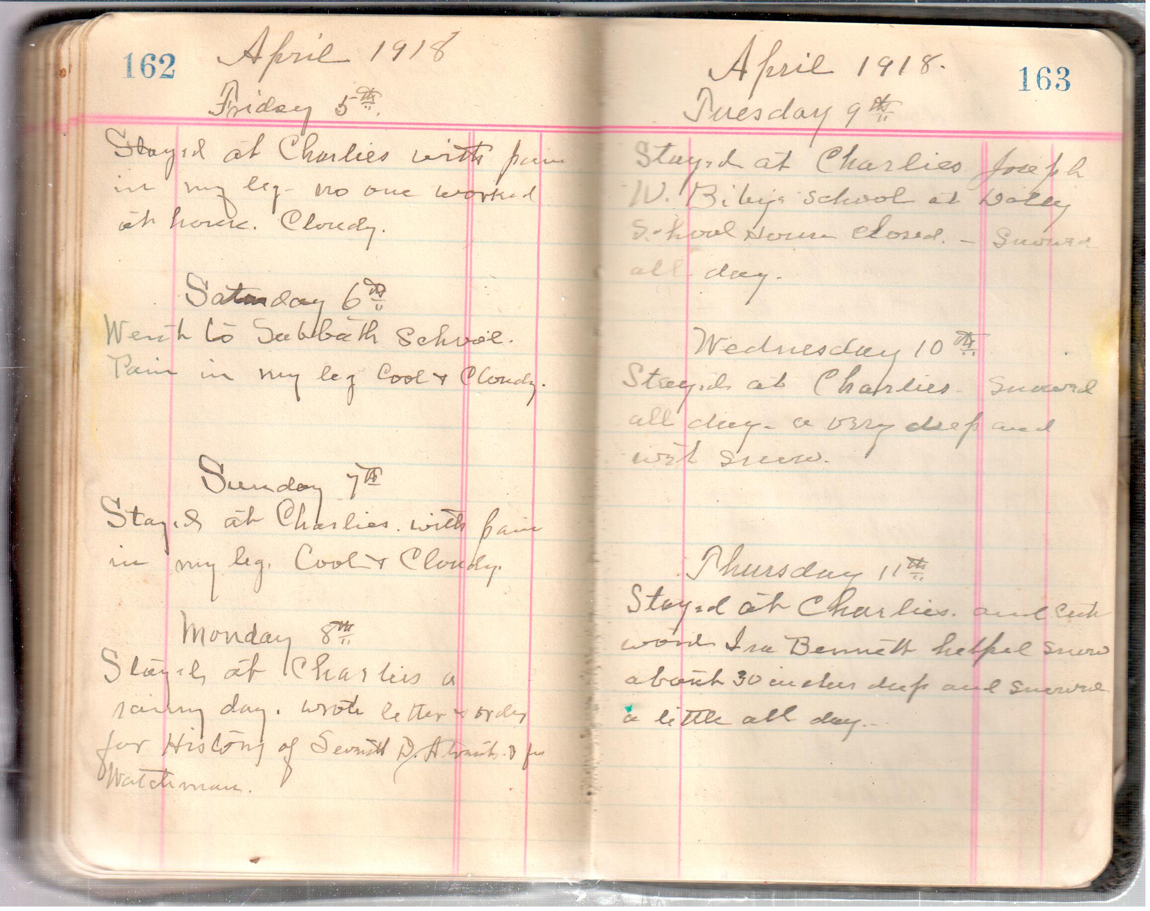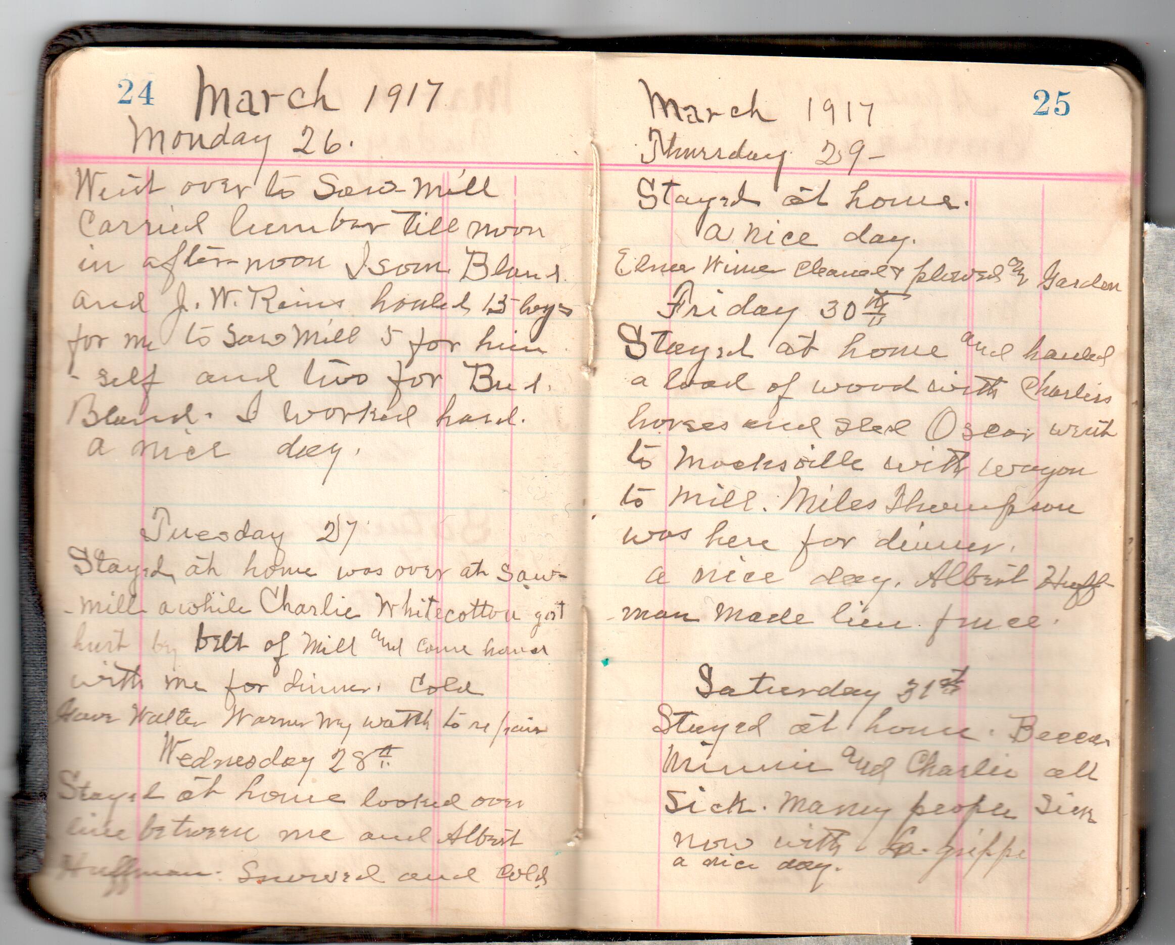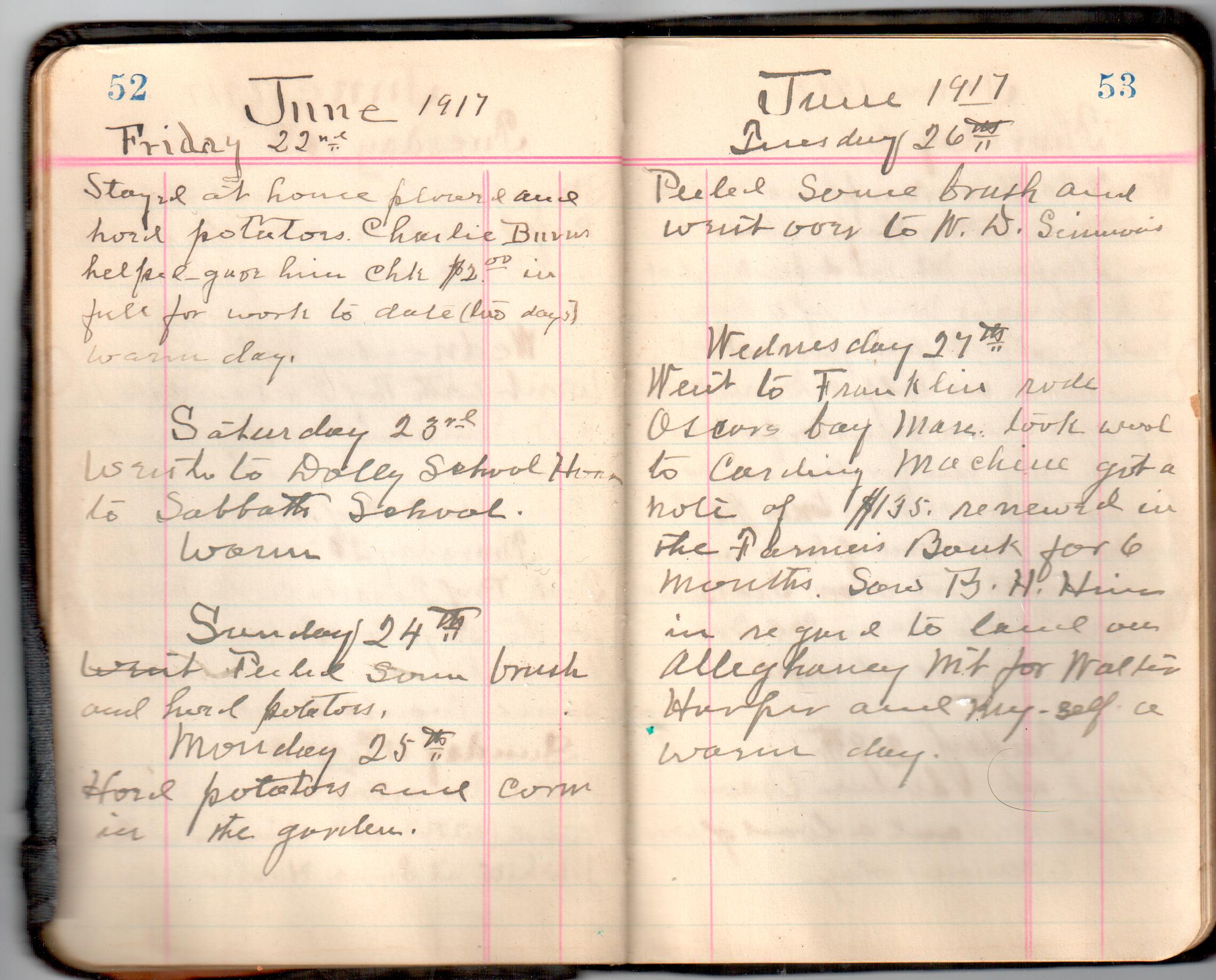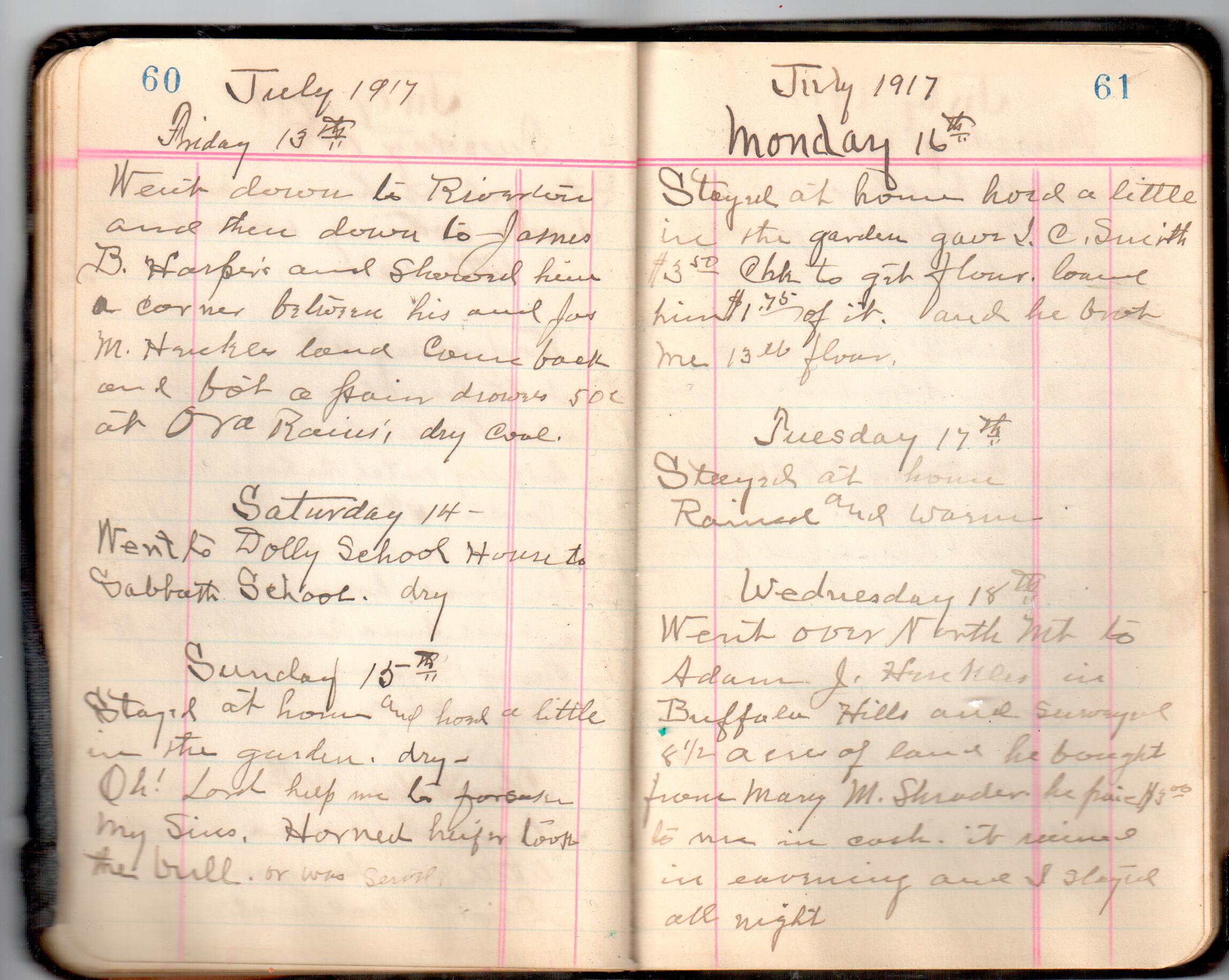 D. A. Landes Diaries: 1917-18 This diary spans January 1, 1917 - May 31, 1918. Use slideshow or see pages individually: Covers Inside Front Cover ABCD EFGH Pages 0-1 Pages 2-3 Pages 4-5 Pages 6-7 Pages 8-9 Pages 10-11 Pages 12-13 Pages 14-15 Pages 16-17 Pages 18-19 Pages 20-21 Pages 22-23 Pages 24-25 Pages 26-27 Pages 28-29 Pages 30-31 Pages 32-33 Pages 34-35 Pages 36-37 Pages 38-39 Pages 40-41 Pages 42-43 Pages 44-45 Pages 46-47 Pages 48-49 Pages 50-51 Pages 52-53 Pages 54-55 Pages 56-57 Pages 58-59 Pages 60-61 Pages 62-63 Pages 64-65 Pages 66-67 Pages 68-69 Pages 70-71 Pages 72-73 Pages 74-75 Pages 76-77 Pages 78-79 Pages 80-81 Pages 82-83 Pages 84-85 Pages 86-87 Pages 88-89 Pages 90-91 Pages 92-93 Pages 94-95 Pages 96-97 Pages 98-99 Pages 100-101 Pages 102-103 Pages 104-105 Pages 106-107 Pages 108-019 Pages 110-111 Pages 112-113 Pages 114-115 Pages 116-117 Pages 118-119 Pages 120-121 Pages 122-123 Pages 124-125 Pages 126-127 Pages 128-129 Pages 130-131 Pages 132-133 Pages 134-135 Pages 136-137 Pages 138-139 Pages 140-141 Pages 142-143 Pages 144-145 Pages 146-147 Pages 148-149 Pages 150-151 Pages 152-153 Pages 154-155 Pages 156-157 Pages 158-159 Pages 160-161 Pages 162-163 Pages 164-165 Pages 166-167 Pages 168-169 Pages 170-171 Pages 172-173 Pages 174-175 Pages 176-177 Pages 178-179 Pages 180-181 Pages 182-183