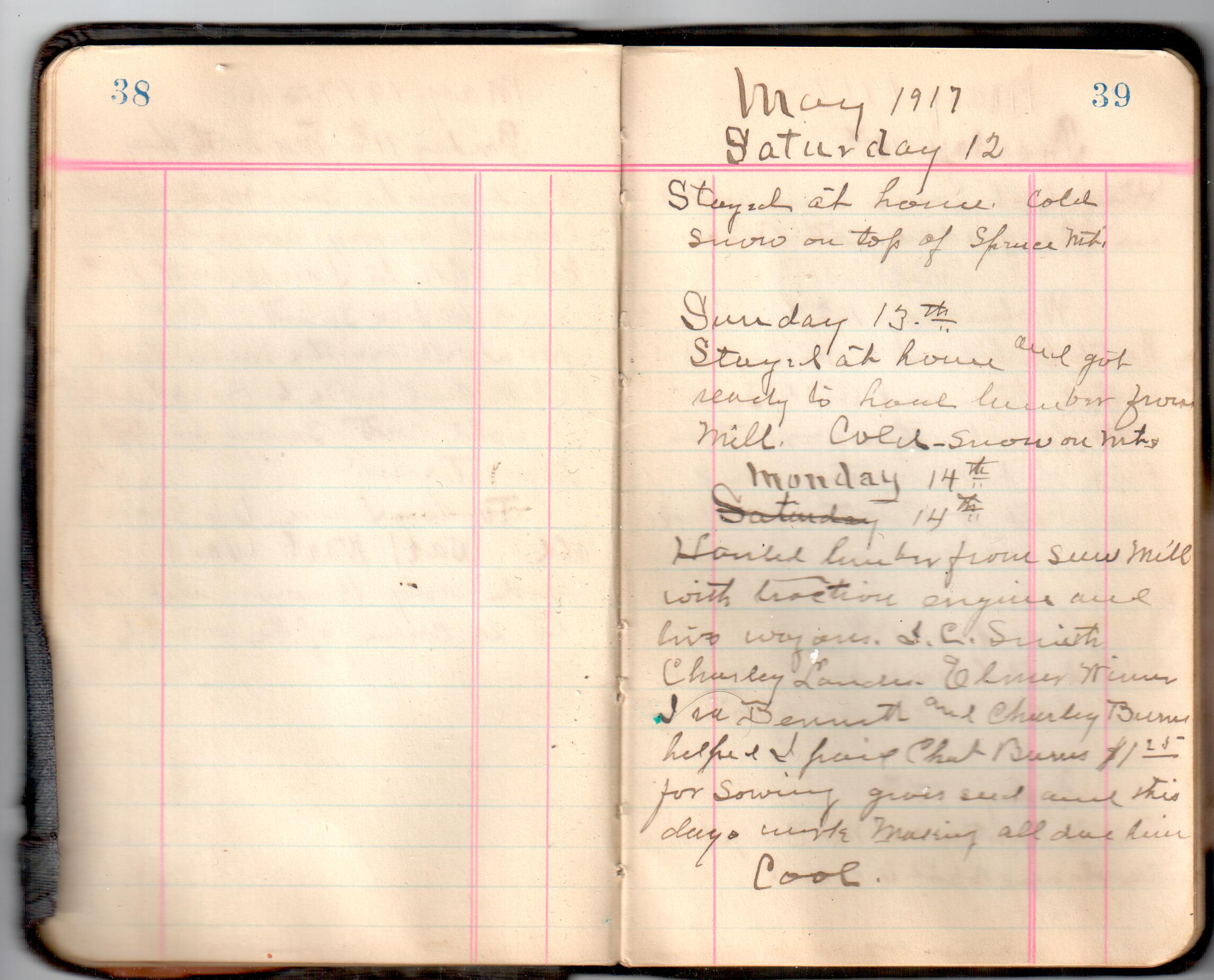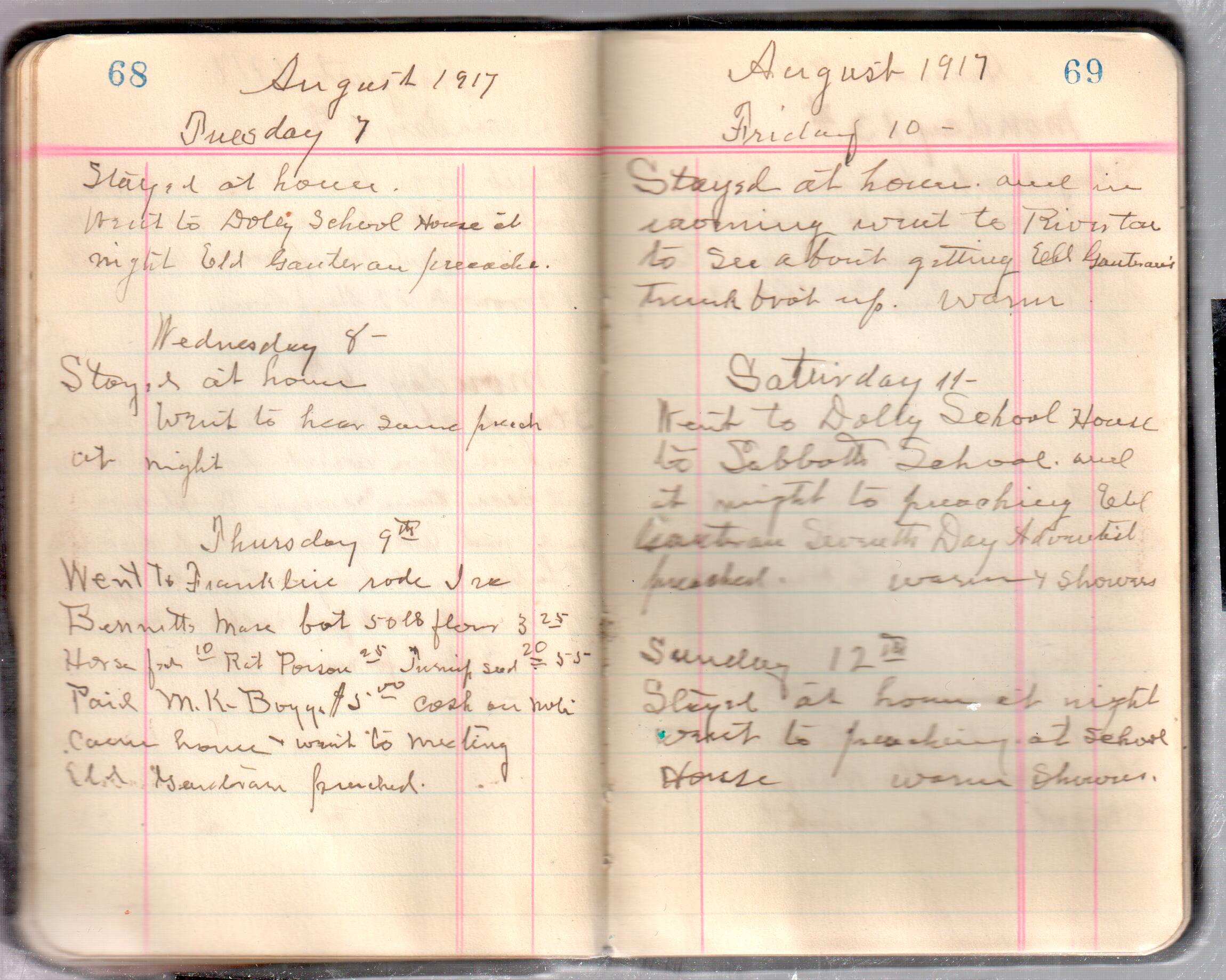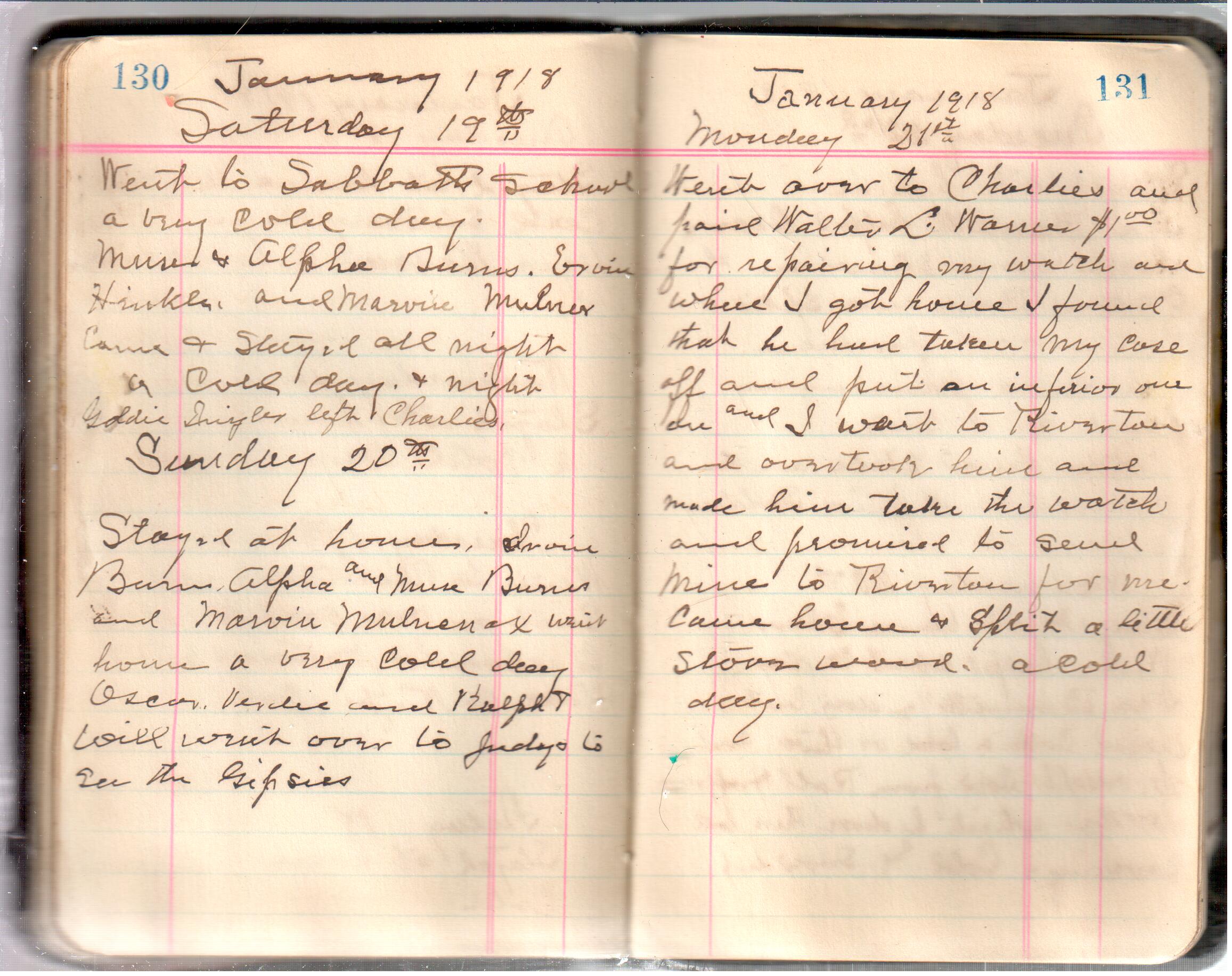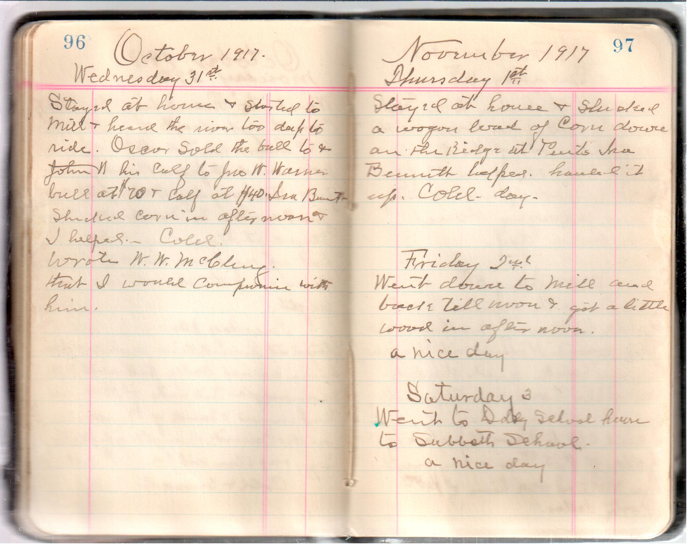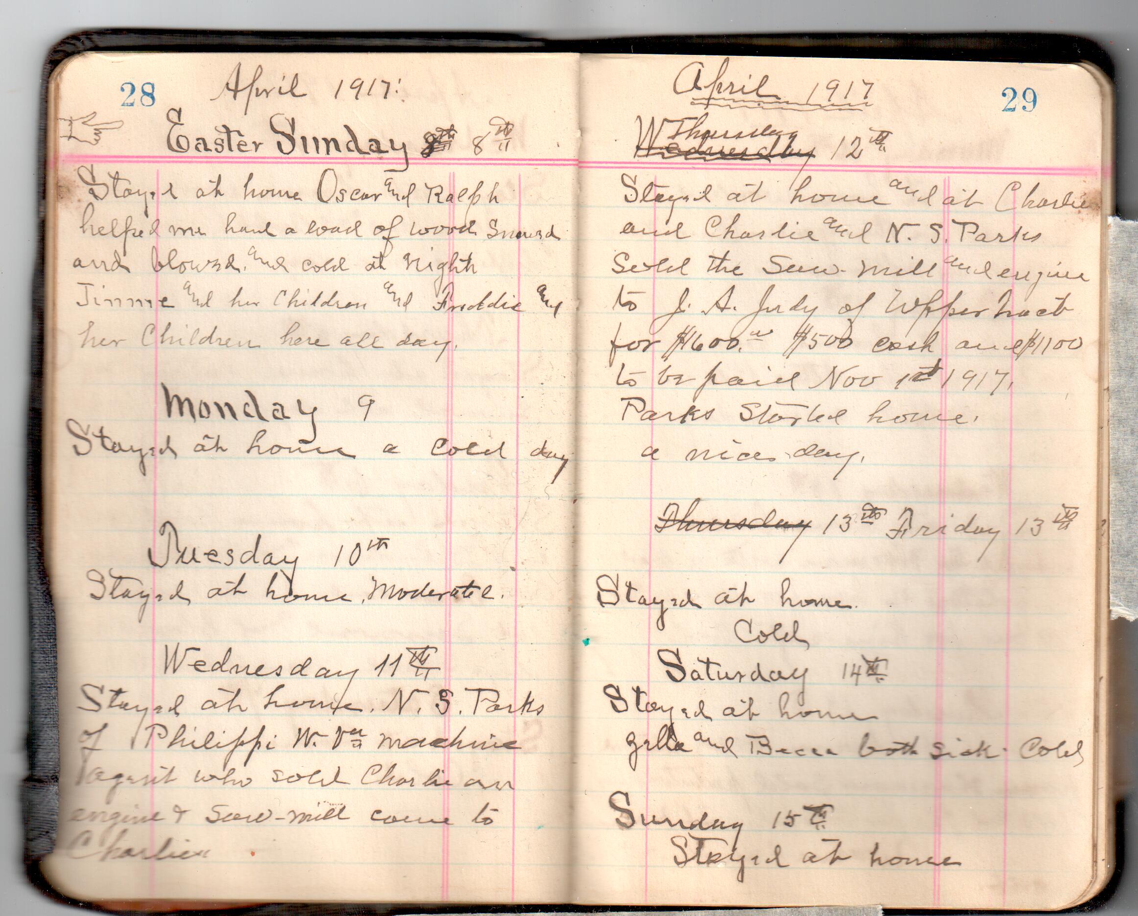 D. A. Landes Diaries: 1917-18 This diary spans January 1, 1917 - May 31, 1918. Use slideshow or see pages individually: Covers Inside Front Cover ABCD EFGH Pages 0-1 Pages 2-3 Pages 4-5 Pages 6-7 Pages 8-9 Pages 10-11 Pages 12-13 Pages 14-15 Pages 16-17 Pages 18-19 Pages 20-21 Pages 22-23 Pages 24-25 Pages 26-27 Pages 28-29 Pages 30-31 Pages 32-33 Pages 34-35 Pages 36-37 Pages 38-39 Pages 40-41 Pages 42-43 Pages 44-45 Pages 46-47 Pages 48-49 Pages 50-51 Pages 52-53 Pages 54-55 Pages 56-57 Pages 58-59 Pages 60-61 Pages 62-63 Pages 64-65 Pages 66-67 Pages 68-69 Pages 70-71 Pages 72-73 Pages 74-75 Pages 76-77 Pages 78-79 Pages 80-81 Pages 82-83 Pages 84-85 Pages 86-87 Pages 88-89 Pages 90-91 Pages 92-93 Pages 94-95 Pages 96-97 Pages 98-99 Pages 100-101 Pages 102-103 Pages 104-105 Pages 106-107 Pages 108-019 Pages 110-111 Pages 112-113 Pages 114-115 Pages 116-117 Pages 118-119 Pages 120-121 Pages 122-123 Pages 124-125 Pages 126-127 Pages 128-129 Pages 130-131 Pages 132-133 Pages 134-135 Pages 136-137 Pages 138-139 Pages 140-141 Pages 142-143 Pages 144-145 Pages 146-147 Pages 148-149 Pages 150-151 Pages 152-153 Pages 154-155 Pages 156-157 Pages 158-159 Pages 160-161 Pages 162-163 Pages 164-165 Pages 166-167 Pages 168-169 Pages 170-171 Pages 172-173 Pages 174-175 Pages 176-177 Pages 178-179 Pages 180-181 Pages 182-183