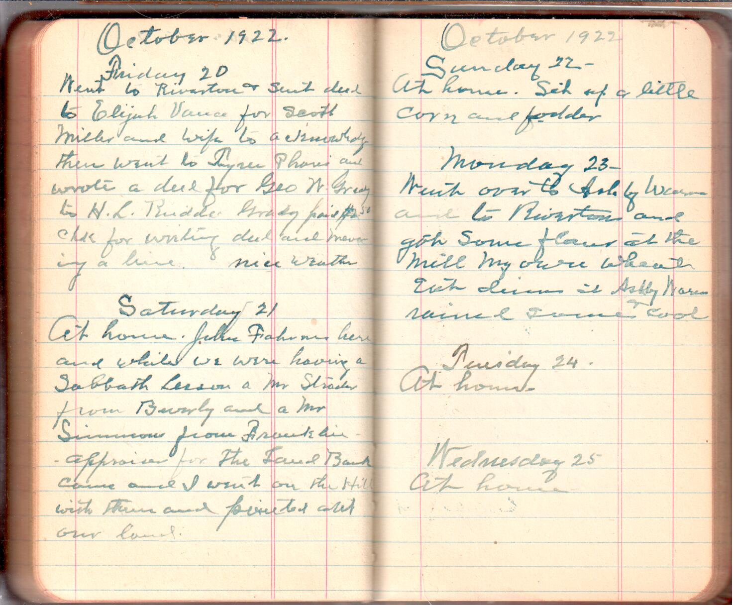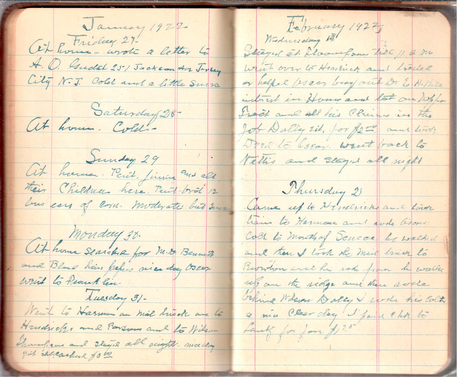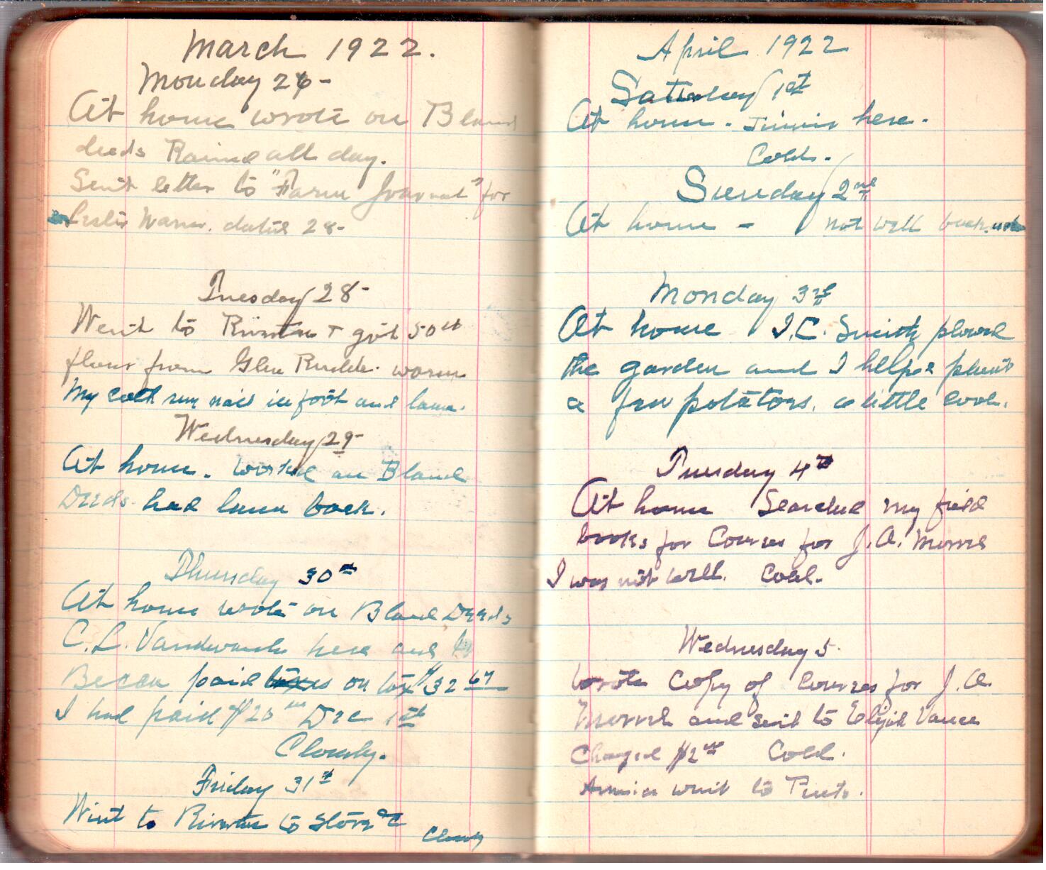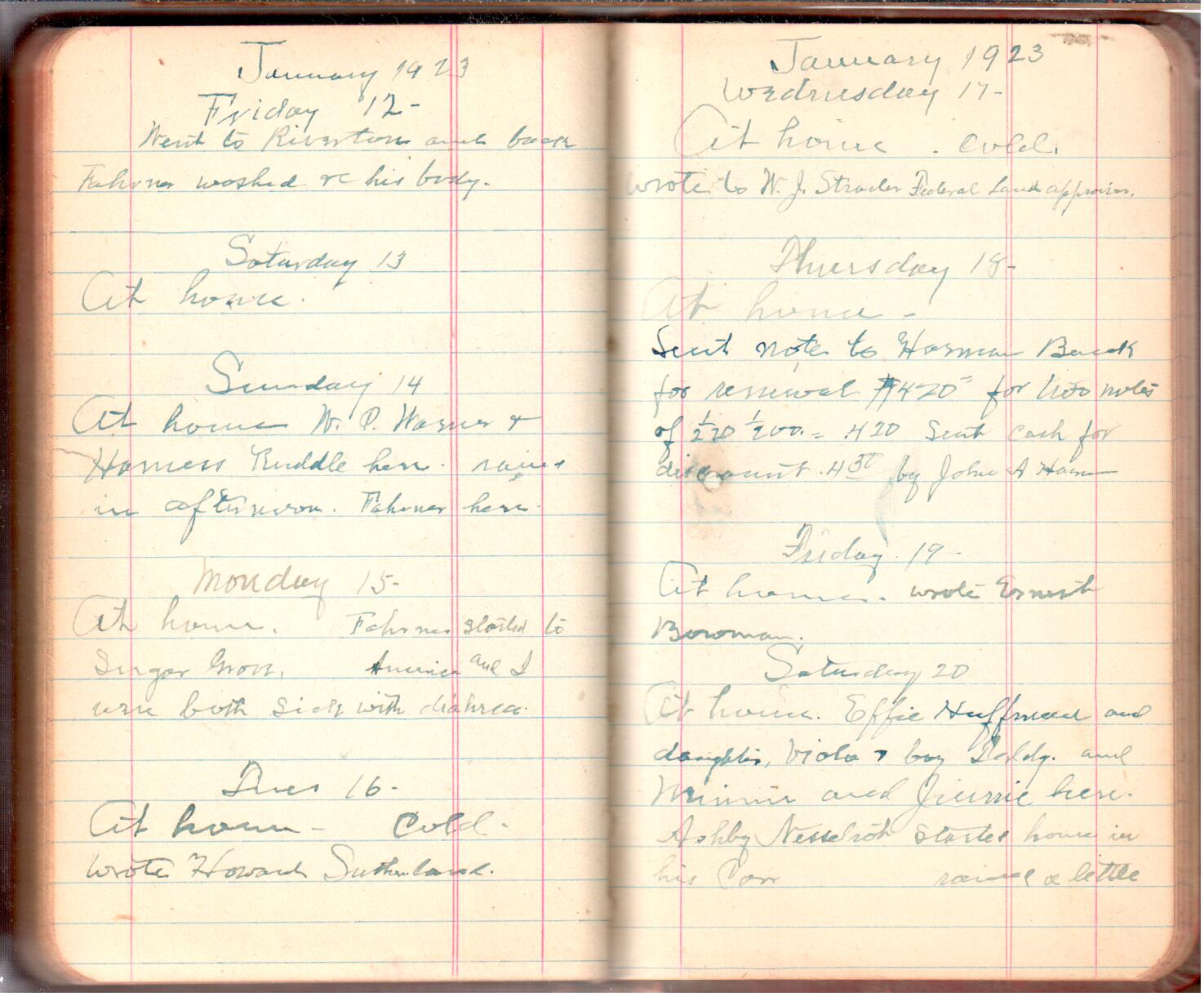 D. A. Landes Diaries: 1921-23 This diary spans November 27, 1921 - April 30, 1923 Use slideshow or see pages individually: Outside cover Pages 0-0 Pages 0-1 Pages 1-2 Pages 2-3 Pages 4-5 Pages 6-7 Pages 9-10 Pages 11-12 Pages 13-14 Pages 15-16 Pages 17-18 Pages 19-20 Pages 21-22 Pages 23-24 Pages 25-26 Pages 27-28 Pages 29-30 Pages 31-32 Pages 33-34 Pages 35-36 Pages 37-38 Pages 39-40 Pages 41-42 Pages 43-44 Pages 45-46 Pages 47-48 Pages 49-50 Pages 51-52 Pages 53-54 Pages 55-56 Pages 57-58 Pages 59-60 Pages 61-62 Pages 63-64 Pages 65-66 Pages 66-67 Pages 67-68 Pages 69-70 Pages 71-72 Pages 73-74 Pages 75-76 Pages 77-78 Pages 79-80 Pages 81-82 Pages 83-84 Pages 85-86 Pages 87-88 Pages 89-90 Pages 91-92 Pages 93-94 Pages 95-96 Pages 97-98 Pages 99-100 Pages 101-102 Pages 103-104 Pages 105-106 Pages 107-108 Pages 109-110 Pages 111-112 Pages 113-114 Pages 115-116 Pages 117-118 Pages 119-120 Pages 121-122 Pages 123-124 Pages 125-126 Pages 127-128 Pages 129-130 Pages 131-132 Pages 133-134 Pages 135-136 Pages 137-138 Pages 139-140