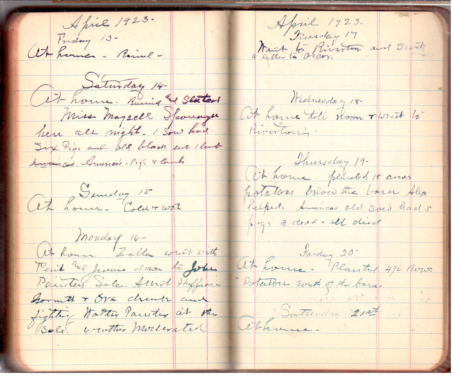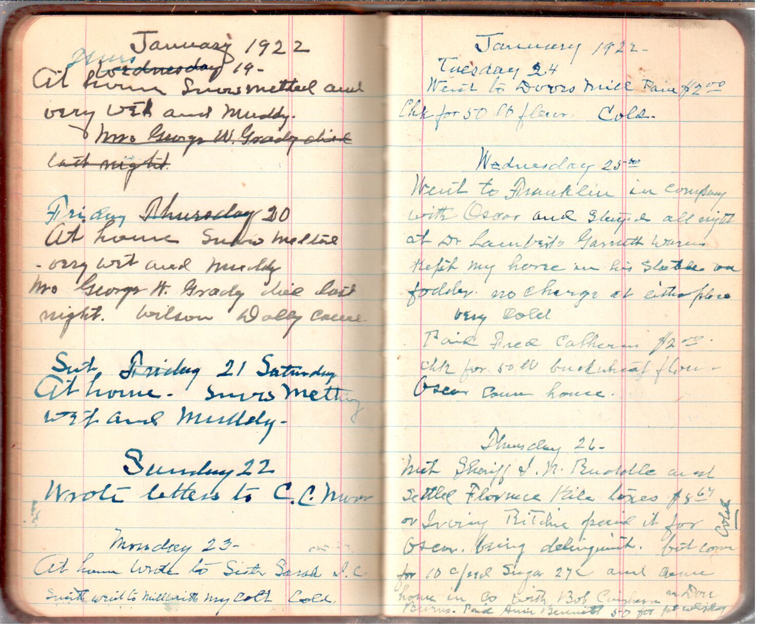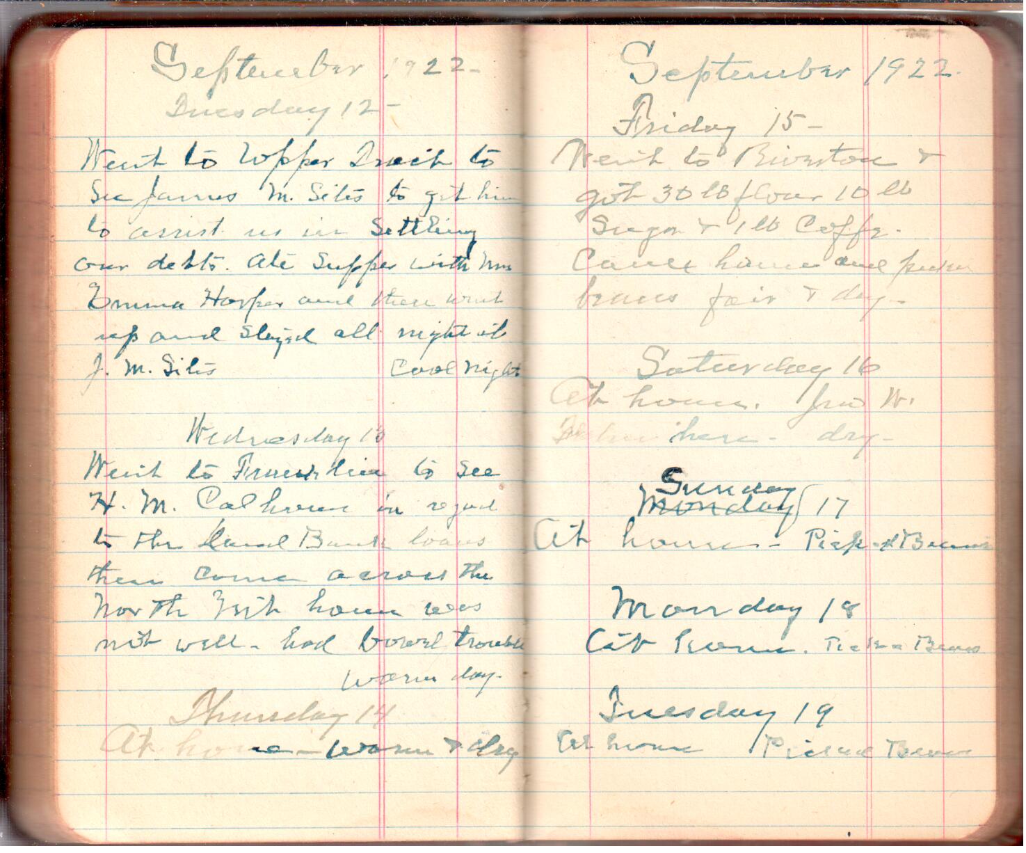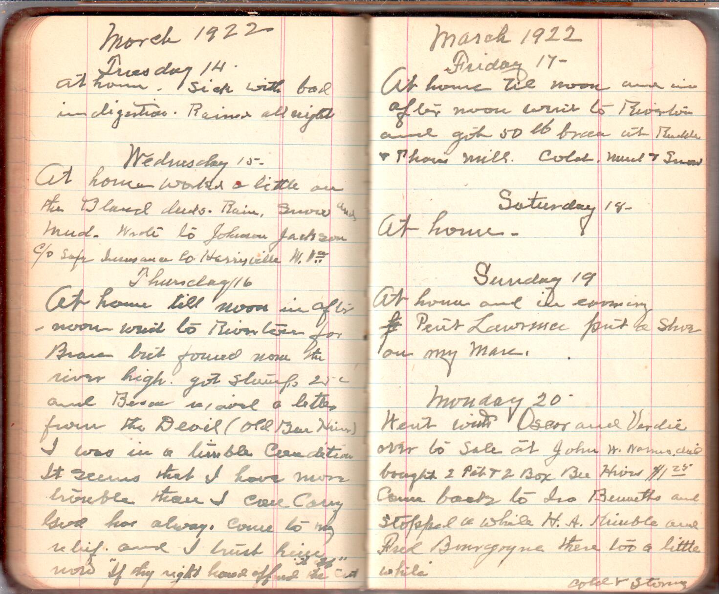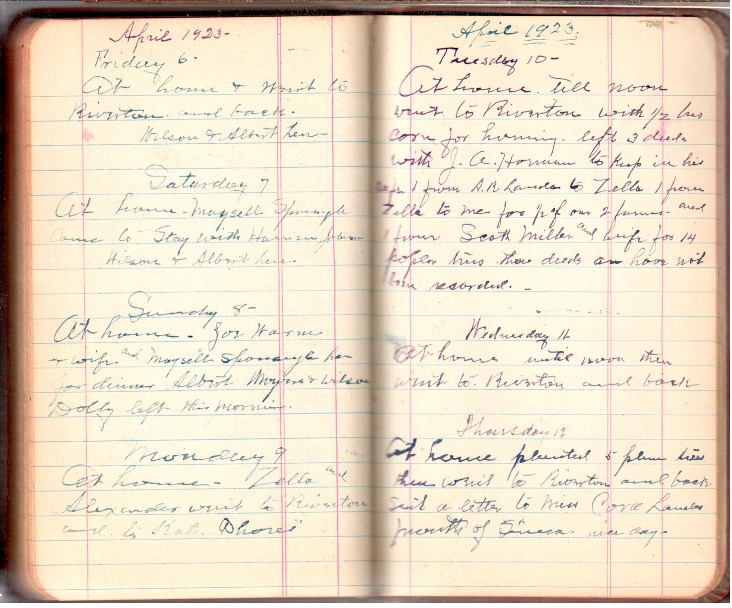D. A. Landes Diaries: 1921-23 This diary spans November 27, 1921 - April 30, 1923 Use slideshow or see pages individually: Outside cover Pages 0-0 Pages 0-1 Pages 1-2 Pages 2-3 Pages 4-5 Pages 6-7 Pages 9-10 Pages 11-12 Pages 13-14 Pages 15-16 Pages 17-18 Pages 19-20 Pages 21-22 Pages 23-24 Pages 25-26 Pages 27-28 Pages 29-30 Pages 31-32 Pages 33-34 Pages 35-36 Pages 37-38 Pages 39-40 Pages 41-42 Pages 43-44 Pages 45-46 Pages 47-48 Pages 49-50 Pages 51-52 Pages 53-54 Pages 55-56 Pages 57-58 Pages 59-60 Pages 61-62 Pages 63-64 Pages 65-66 Pages 66-67 Pages 67-68 Pages 69-70 Pages 71-72 Pages 73-74 Pages 75-76 Pages 77-78 Pages 79-80 Pages 81-82 Pages 83-84 Pages 85-86 Pages 87-88 Pages 89-90 Pages 91-92 Pages 93-94 Pages 95-96 Pages 97-98 Pages 99-100 Pages 101-102 Pages 103-104 Pages 105-106 Pages 107-108 Pages 109-110 Pages 111-112 Pages 113-114 Pages 115-116 Pages 117-118 Pages 119-120 Pages 121-122 Pages 123-124 Pages 125-126 Pages 127-128 Pages 129-130 Pages 131-132 Pages 133-134 Pages 135-136 Pages 137-138 Pages 139-140