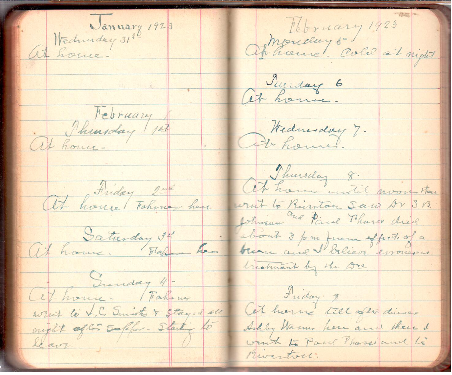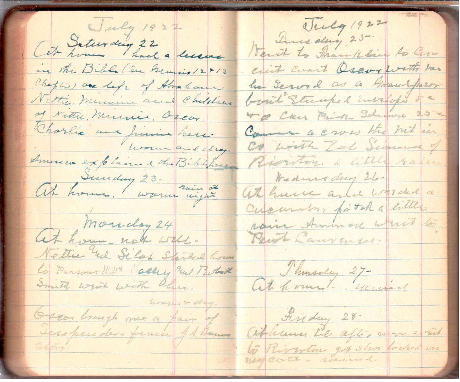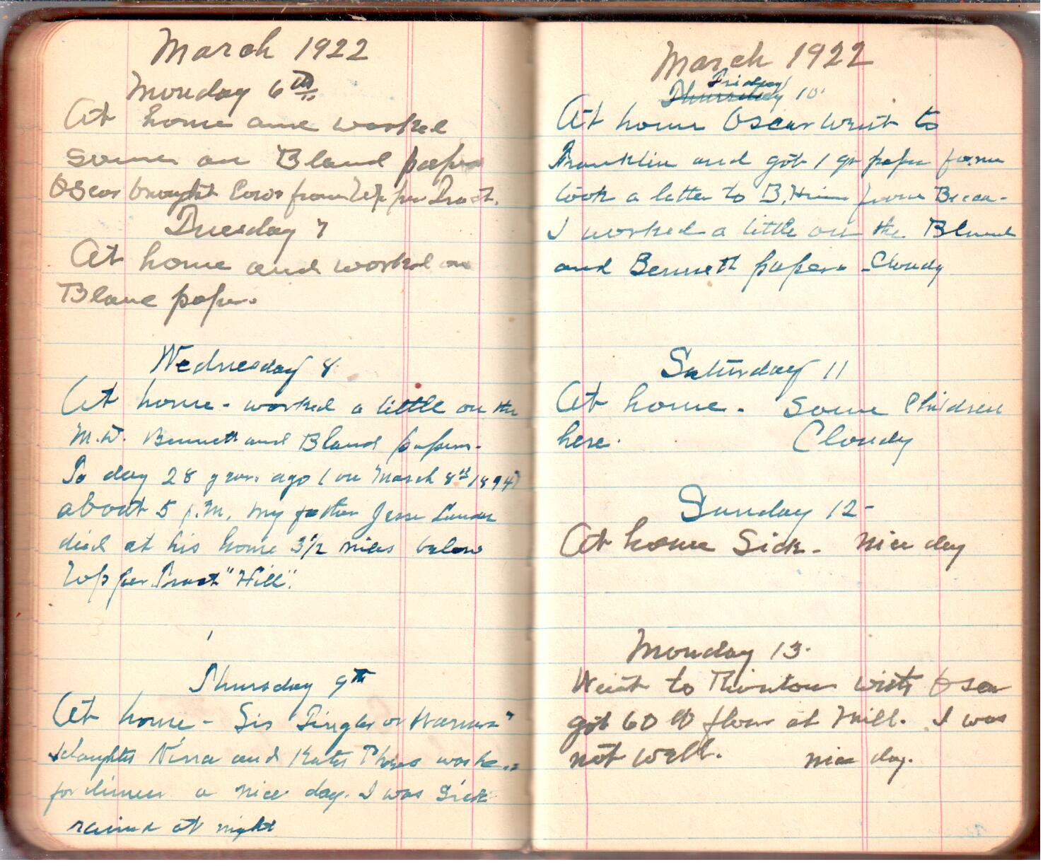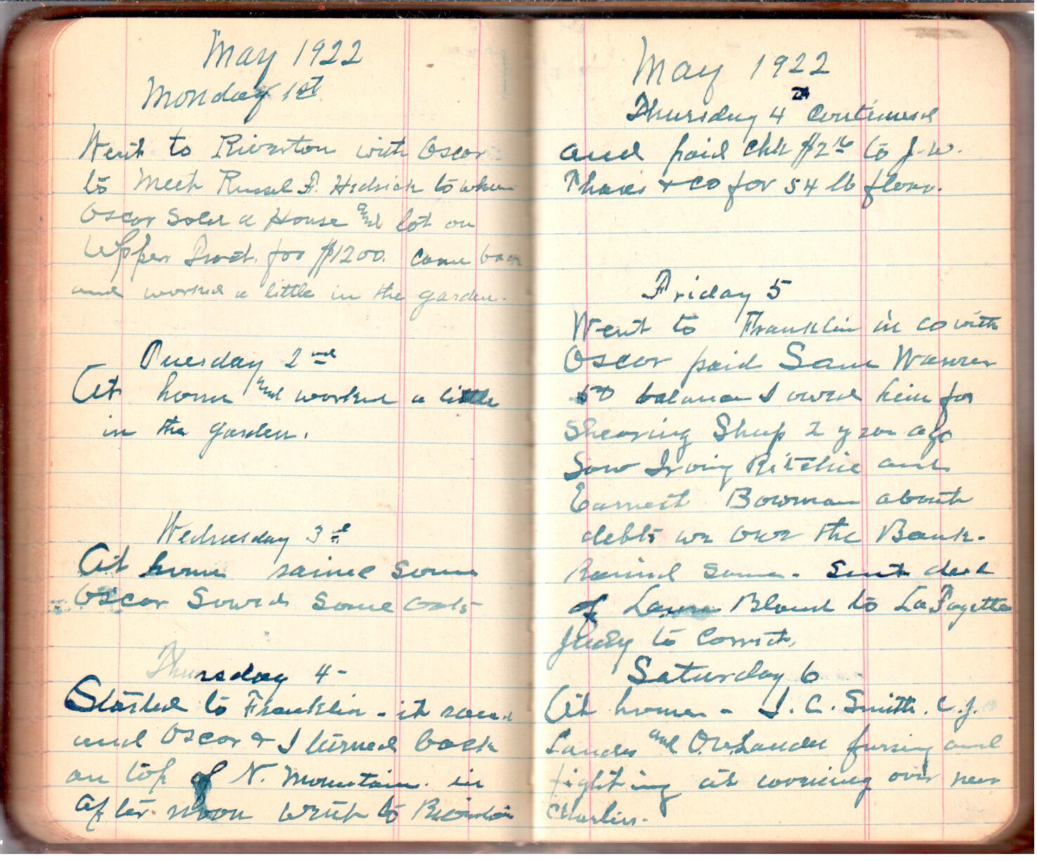 D. A. Landes Diaries: 1921-23 This diary spans November 27, 1921 - April 30, 1923 Use slideshow or see pages individually: Outside cover Pages 0-0 Pages 0-1 Pages 1-2 Pages 2-3 Pages 4-5 Pages 6-7 Pages 9-10 Pages 11-12 Pages 13-14 Pages 15-16 Pages 17-18 Pages 19-20 Pages 21-22 Pages 23-24 Pages 25-26 Pages 27-28 Pages 29-30 Pages 31-32 Pages 33-34 Pages 35-36 Pages 37-38 Pages 39-40 Pages 41-42 Pages 43-44 Pages 45-46 Pages 47-48 Pages 49-50 Pages 51-52 Pages 53-54 Pages 55-56 Pages 57-58 Pages 59-60 Pages 61-62 Pages 63-64 Pages 65-66 Pages 66-67 Pages 67-68 Pages 69-70 Pages 71-72 Pages 73-74 Pages 75-76 Pages 77-78 Pages 79-80 Pages 81-82 Pages 83-84 Pages 85-86 Pages 87-88 Pages 89-90 Pages 91-92 Pages 93-94 Pages 95-96 Pages 97-98 Pages 99-100 Pages 101-102 Pages 103-104 Pages 105-106 Pages 107-108 Pages 109-110 Pages 111-112 Pages 113-114 Pages 115-116 Pages 117-118 Pages 119-120 Pages 121-122 Pages 123-124 Pages 125-126 Pages 127-128 Pages 129-130 Pages 131-132 Pages 133-134 Pages 135-136 Pages 137-138 Pages 139-140