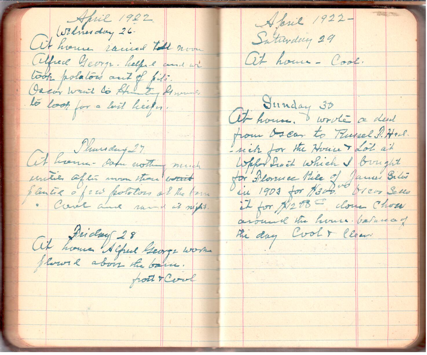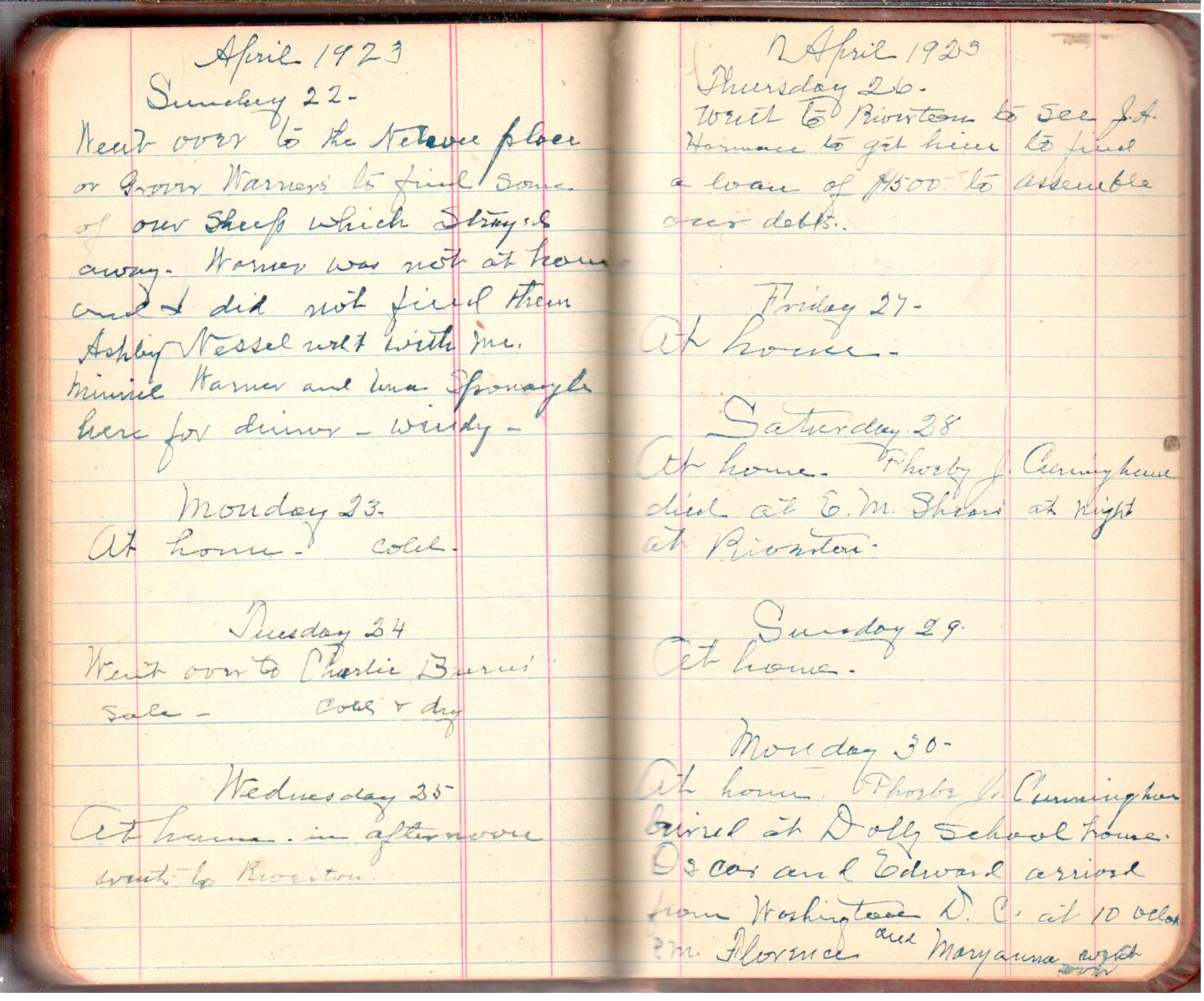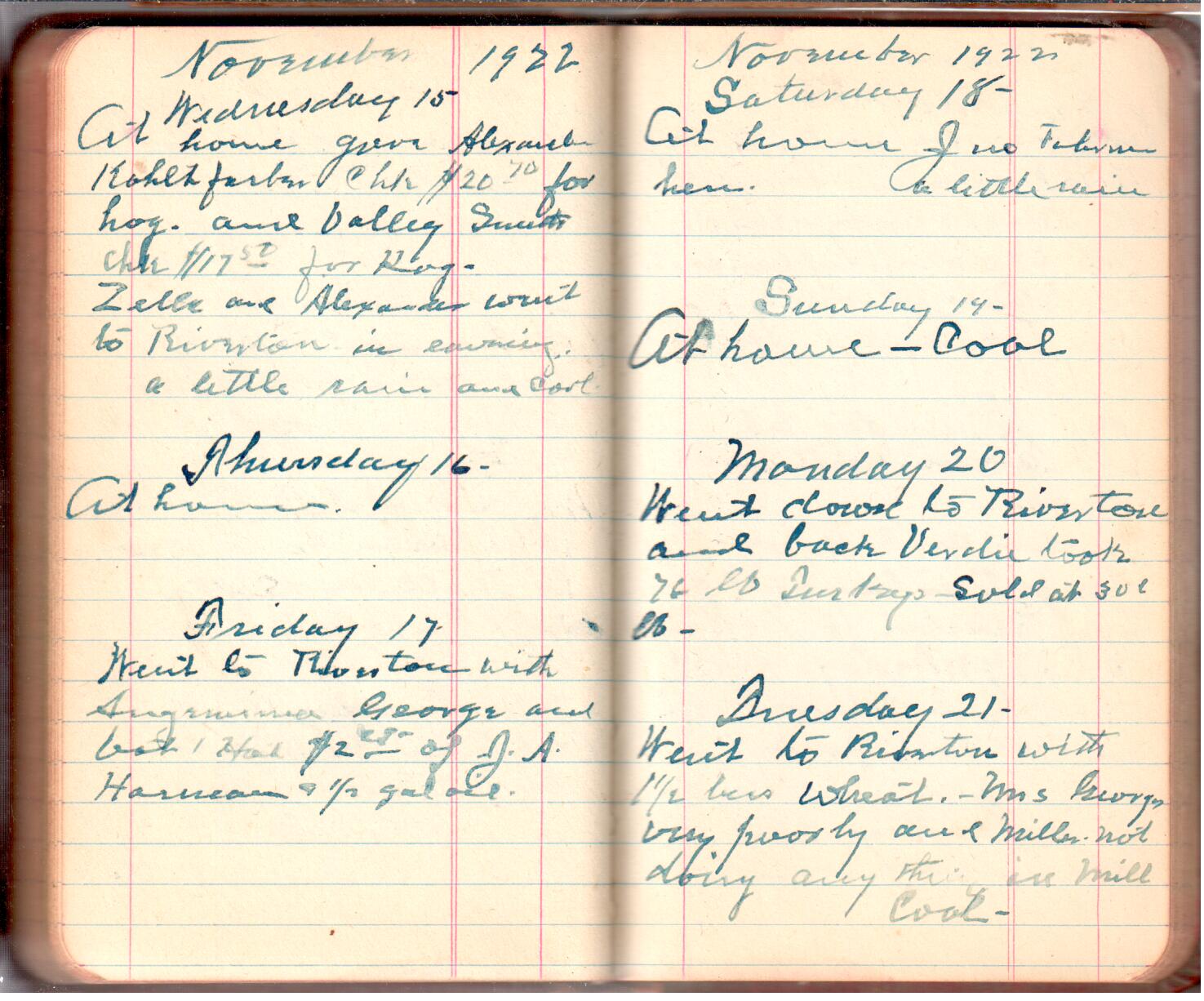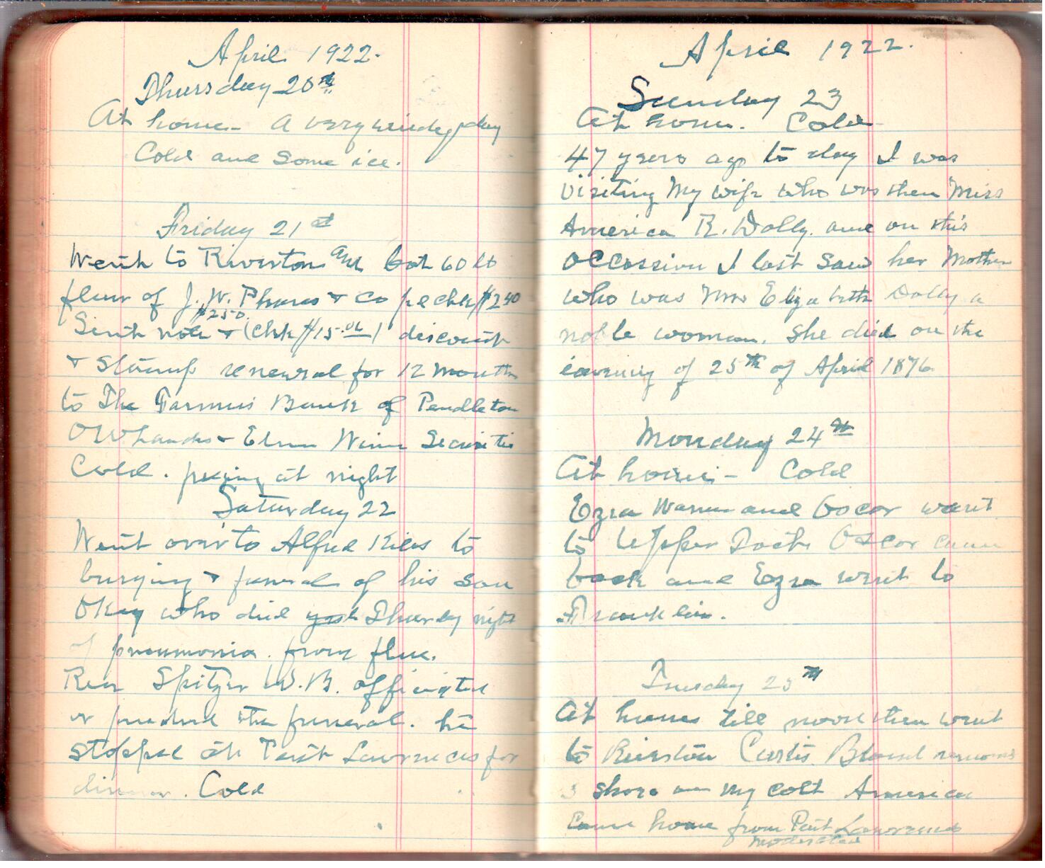 This diary spans November 27, 1921 - April 30, 1923 Use slideshow or see pages individually: