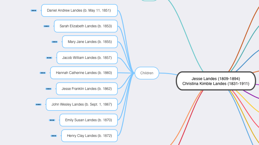 Mindmap graphic of the children of Jesse and Christina Landes