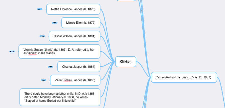 Mindmap graphic of the children of Daniel A. and America R. Landes