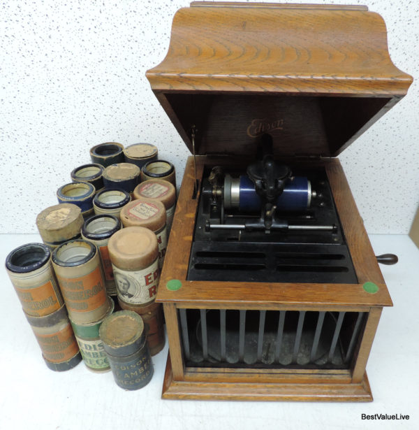 Freddie Landes with son Ralph, probably around 1915 along with their Edison Amberola phonograph and cylinder recordings. |