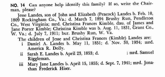 Jesse's father was, no doubt, a "John Landes," and this is why this is complicated -- there were SO many John Landeses in what is now Pendleton, Grant, and Hardy Counties in WV, and in Augusta and Rockingham Counties in VA, between the years of 1750 - 1810 that it is extrmely difficult sorting them all out.