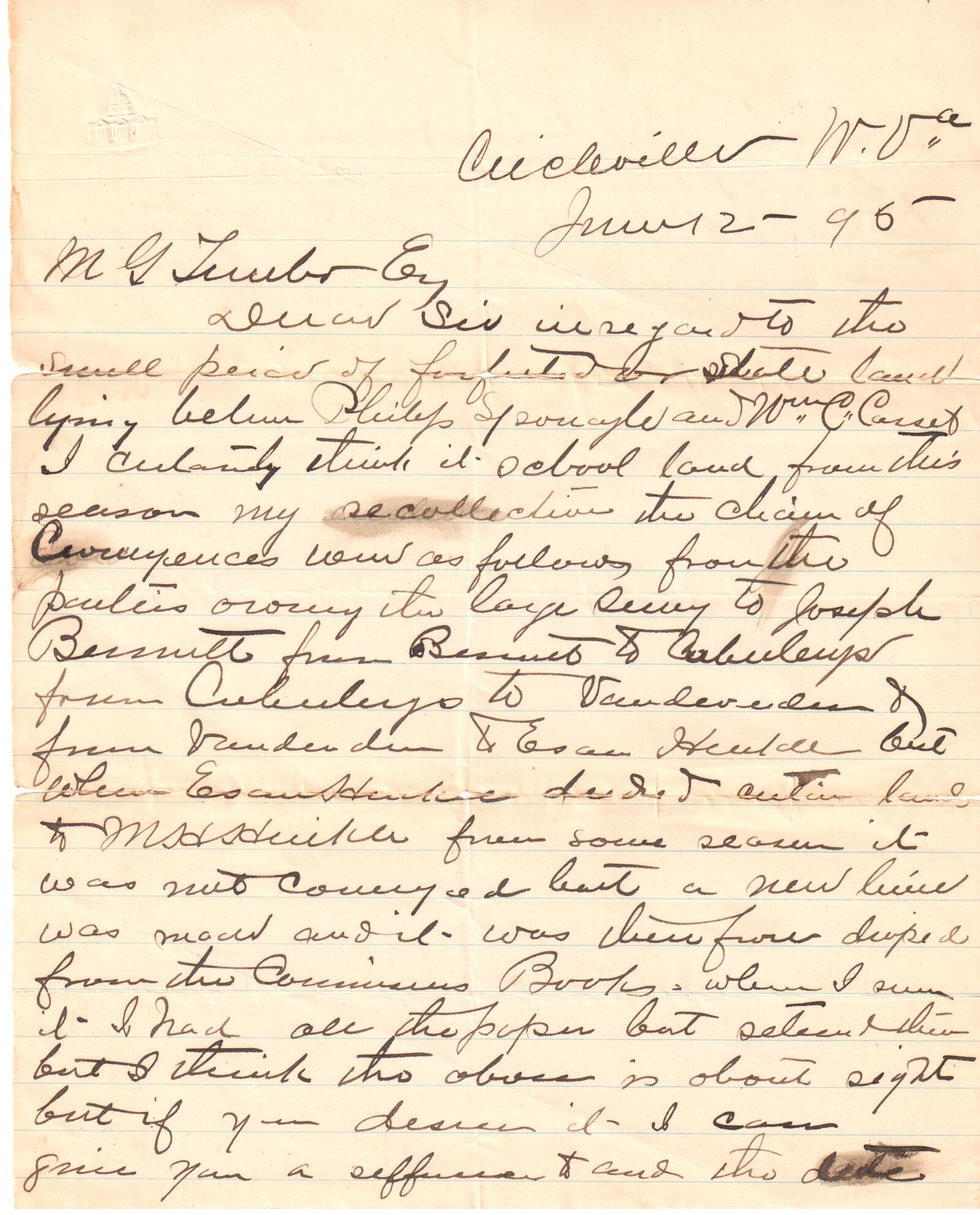 June 2, 1895: Letter to M G Lumber Co. letter.