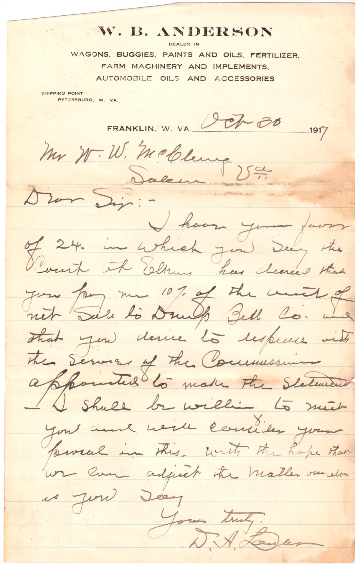 Oct. 30, 1917: Letter to W. W. McClung, Salem, VA