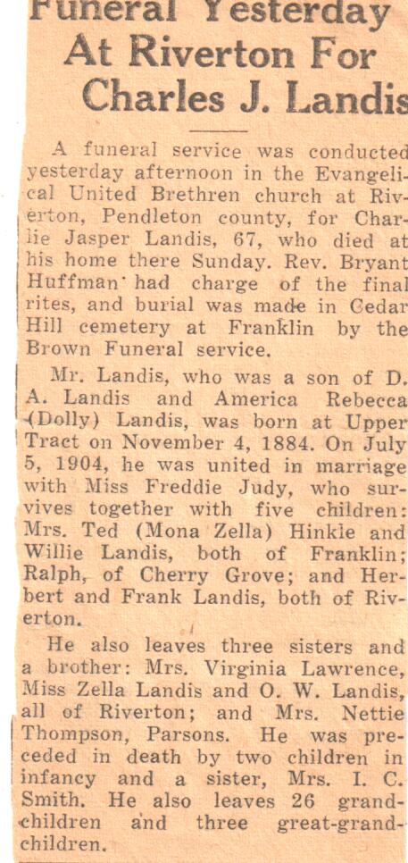 C. J. Landes Obituary, 1952