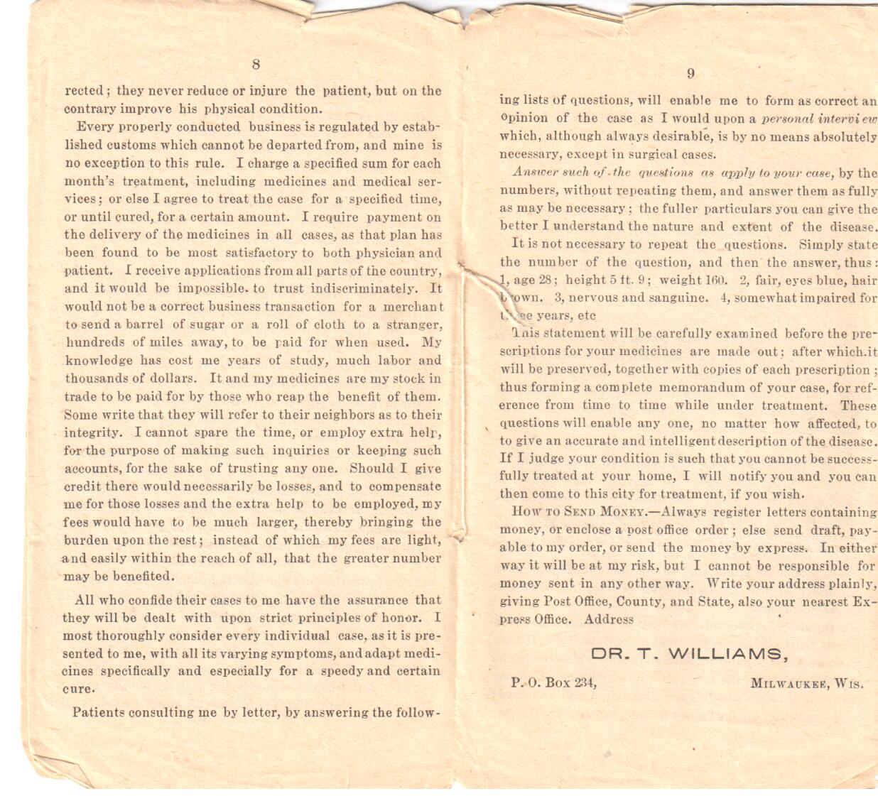 Dr. Williams Medical Pamphlet: