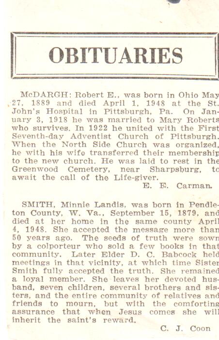 Minnie Landes obituary, 1948